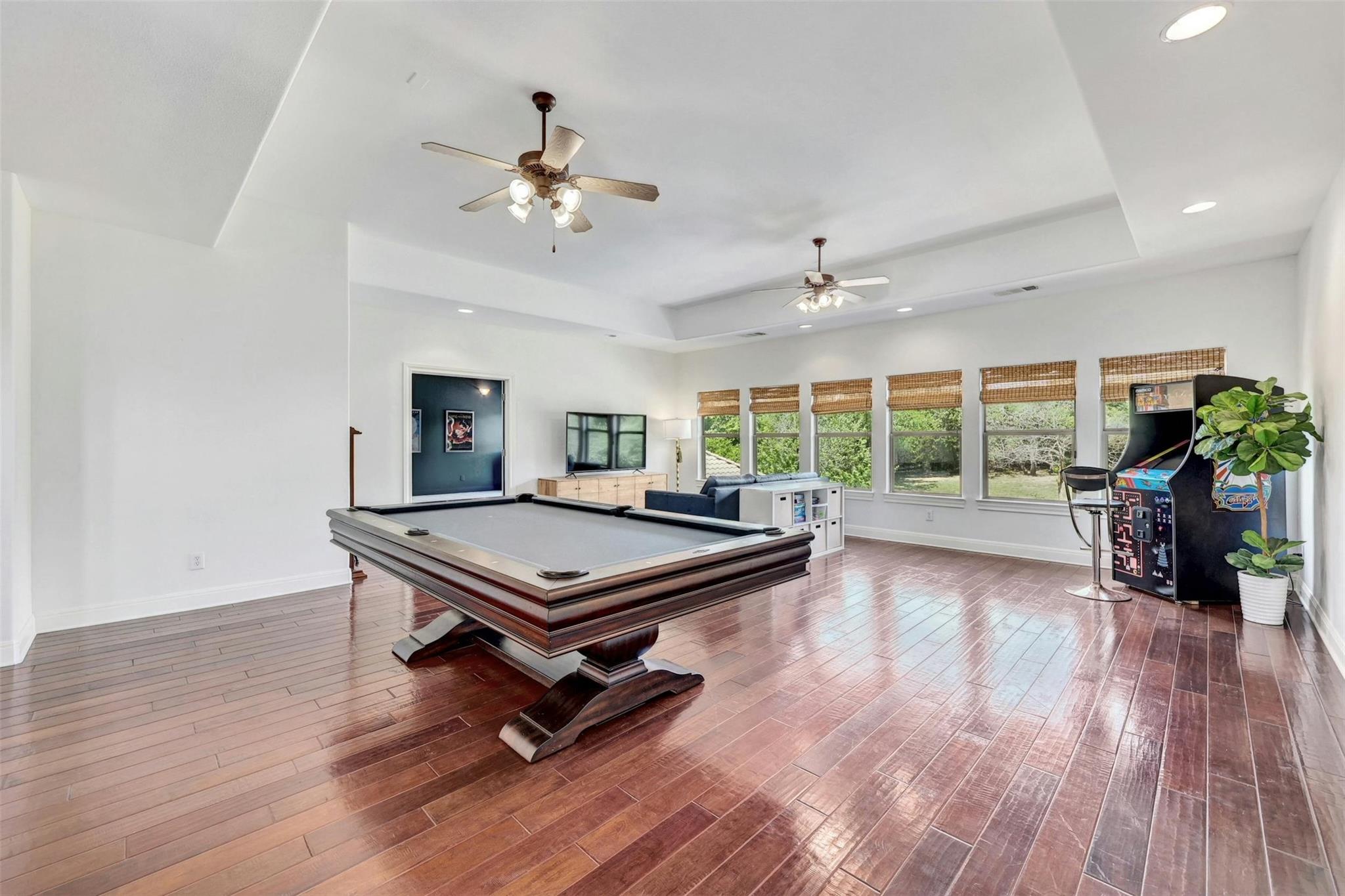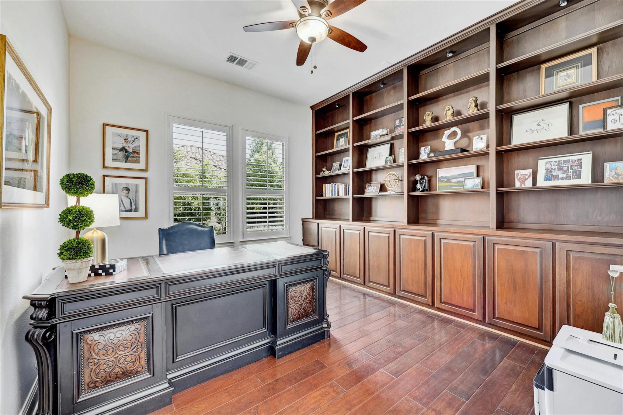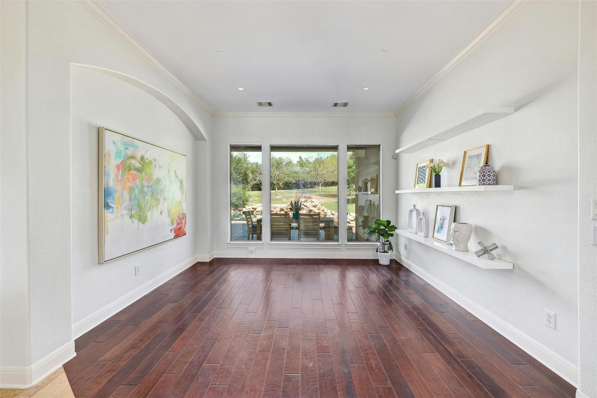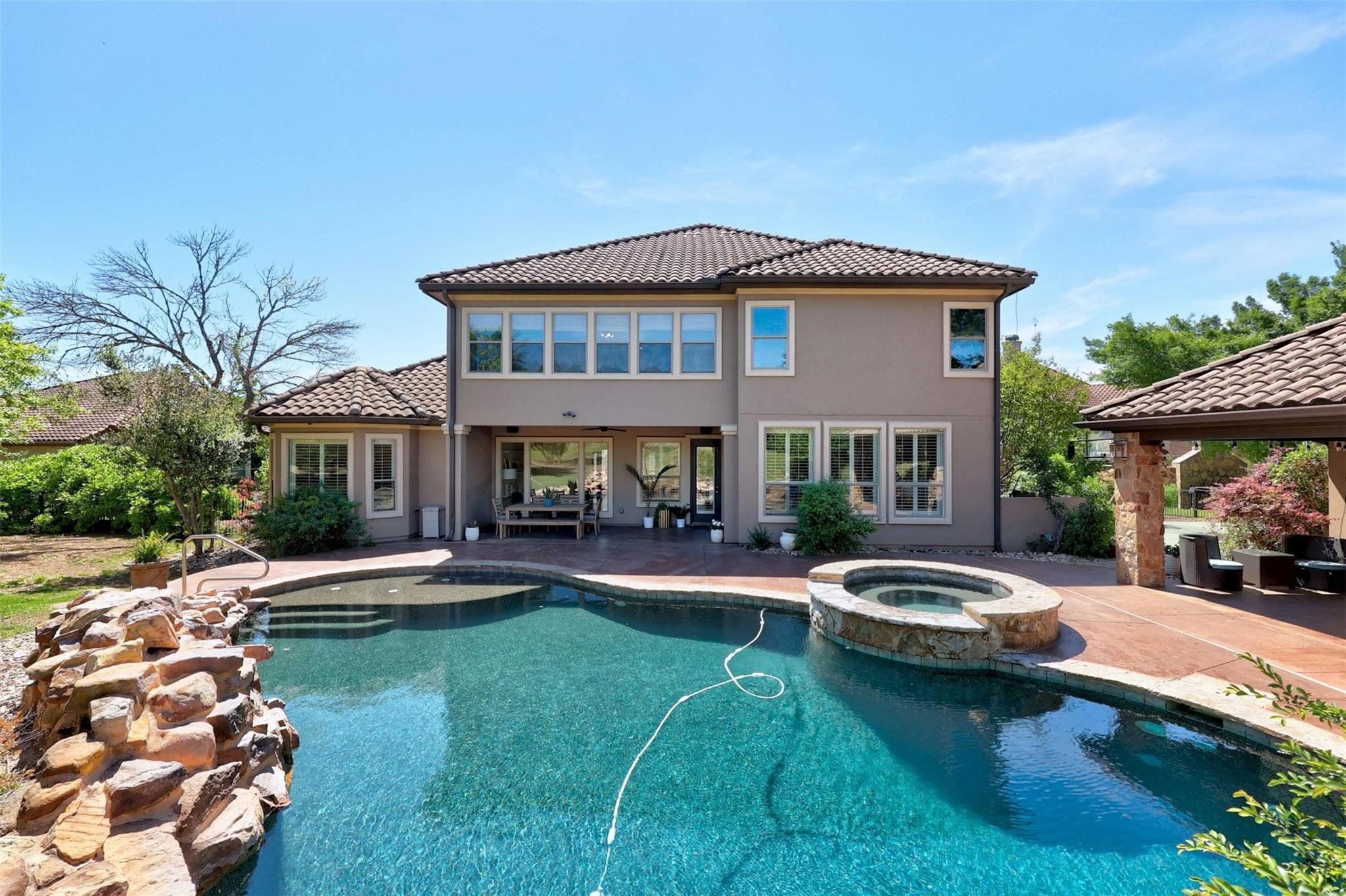 Tucked away in the esteemed Falconhead golf course community, 15713 Spillman Ranch Loop emerges as a stunning example of luxury and architectural grace. This remarkable estate, adorned with a stucco/stone façade and a sophisticated tile roof, extends across 1.05 acres, providing a sense of vast and secluded luxury. The main home boasts 4 bdrms, 3.5 baths, in a well-designed floor plan that places the primary suite on the main level, complete with a HUGE walk-in closet, with custom features. The secondary bedrooms are thoughtfully positioned upstairs, creating a comfortable separation of living spaces. The interior includes 2 adaptable offices, perfect for the modern professional or creative artist. Entertainment options abound, featuring a dedicated media room ideal for movie nights and a spacious game room designed for family fun. The open kitchen merges effortlessly into the family room, illuminated by large windows that capture the beauty of natural light, creating a warm, inviting atmosphere. Unique to this property is a charming casita, perfect for guests or extended family, featuring 2 bdrms, kitchen, and a full bathroom. The backyard is designed to deliver an unparalleled outdoor living experience, where a covered patio creates a cool, shaded retreat overlooking the invigorating pool—guaranteeing endless opportunities for relaxation and enjoyment. Nearby, a basketball court invites family-friendly games and competition. Set against the vast expanse of the property, these features promise limitless possibilities for entertainment and leisure. This home also boasts the distinct advantage of two separate attached garages, offering generous room for vehicles and hobbies, enhancing the property's functionality. This estate merges practicality and comfort in a way that transforms daily life into a refined experience. *Our sellers are completely out of pocket on Saturdays and Sundays. All offers received over the weekend will be presented first thing on Monday.*