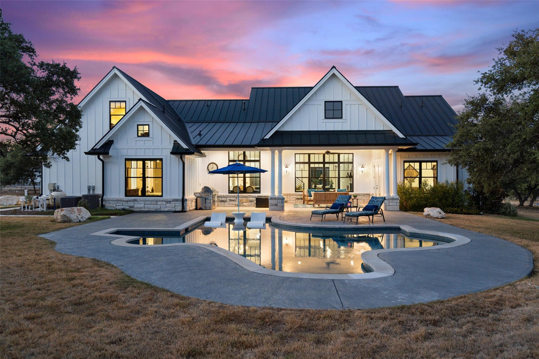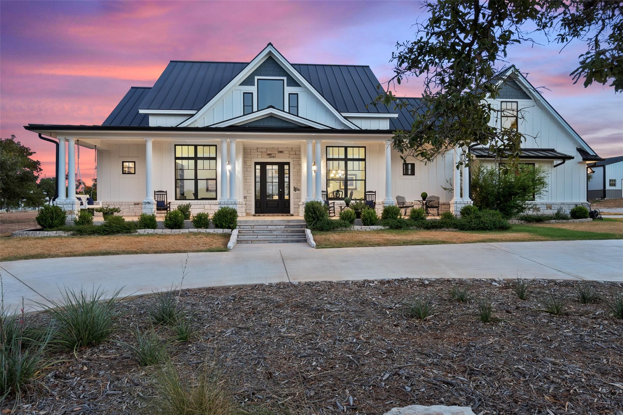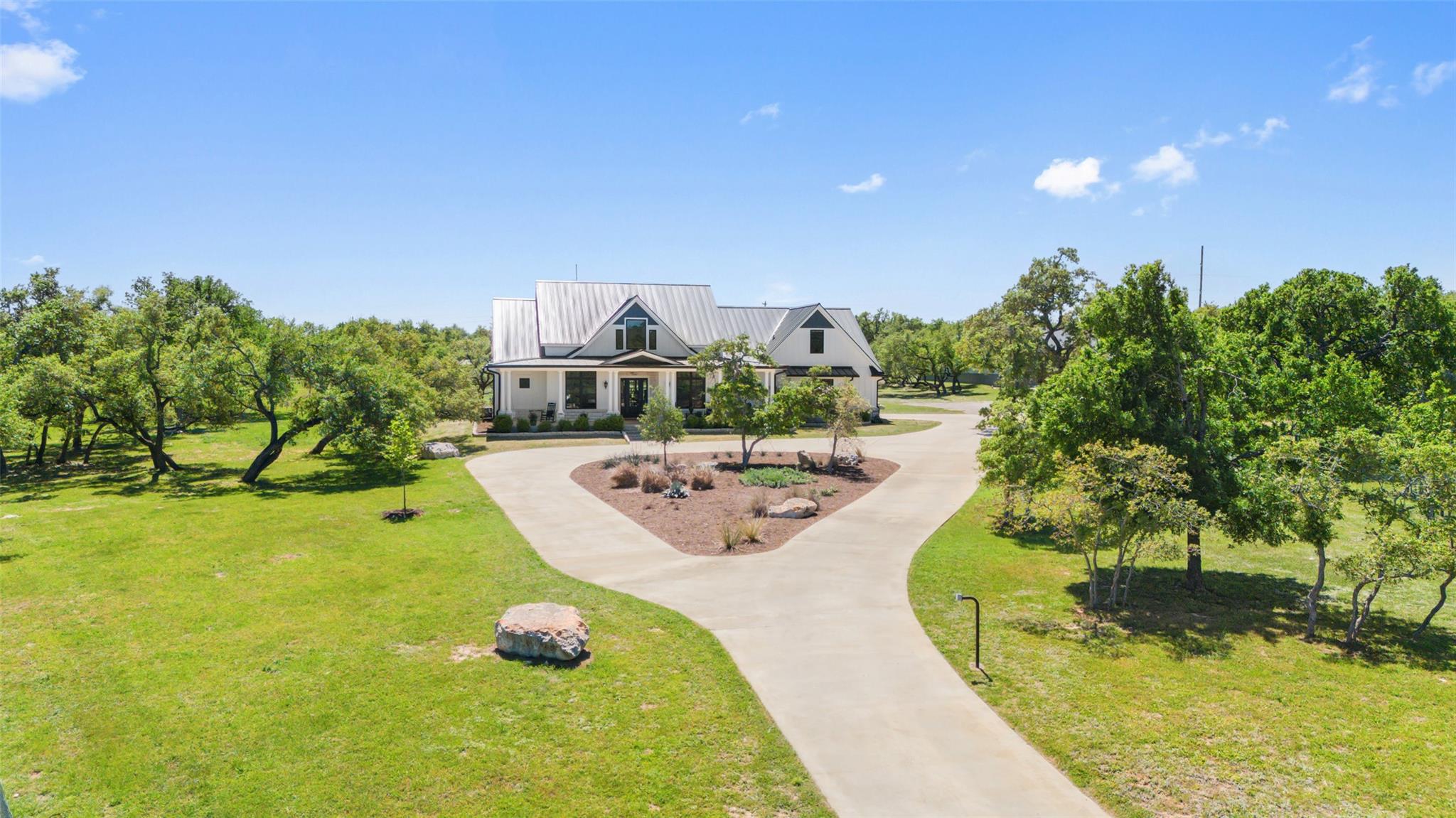 Welcome to Texas Hill Country living in the heart of Dripping Springs! A rare opportunity to own a private 5.047 acre gated estate, with a new modern farmhouse, large 40x60 metal barn, chicken coop, covered pergola, a one-of-a-kind Texas shaped pool, & more! Bring your horses as this lot is fully fenced & cross fenced, all usable land covered in mature oak trees. This stunning 2020 built home welcomes you with lush landscaping & an idyllic front porch, ideal for enjoying a slower-paced lifestyle. The floor plan is perfectly designed for comfortable living, entertaining, hosting guests, or accommodating family. Offering 4 bedrooms, 3.5 bathrooms, 3,947 sqft, high-end finishes throughout, smart storage options, luxurious living & sitting areas/office, an elegantly designed formal dining, to the grand chef's kitchen with an abundance of cabinet & counter space, plus modern black SS appliances, Ceasarstone counters, wine fridge, massive walk-in pantry, & butler's pantry. This kitchen is an entertainer's dream! Indulge in the cool pool views from the spacious primary suite that offers a spa-like bath with an oversized walk-in shower, dual vanities, & roomy walk-in closet. The home lives like a 1.5 story, with one bedroom, secondary living space, full bath, & secret playroom up. Large laundry with sink adjacent to mudroom/drop zone. Outdoor living & entertaining are made effortless with a large covered patio, a beautiful walk-out pool, outdoor kitchen with built-in gas grill, & a spacious yard with raised garden beds & deer proof fencing. Endless opportunities with the metal barn that offers a half bath, mini-split AC unit, 2 oversized ceiling fans, 220V separate from home, & a rain water collection for surrounding flower beds. See agent for additional features. Come enjoy the stars at night & country living with all of the modern conveniences including high-speed internet, nearby dining & entertainment, less than 30 minutes to downtown Austin. City water. DSISD schools!