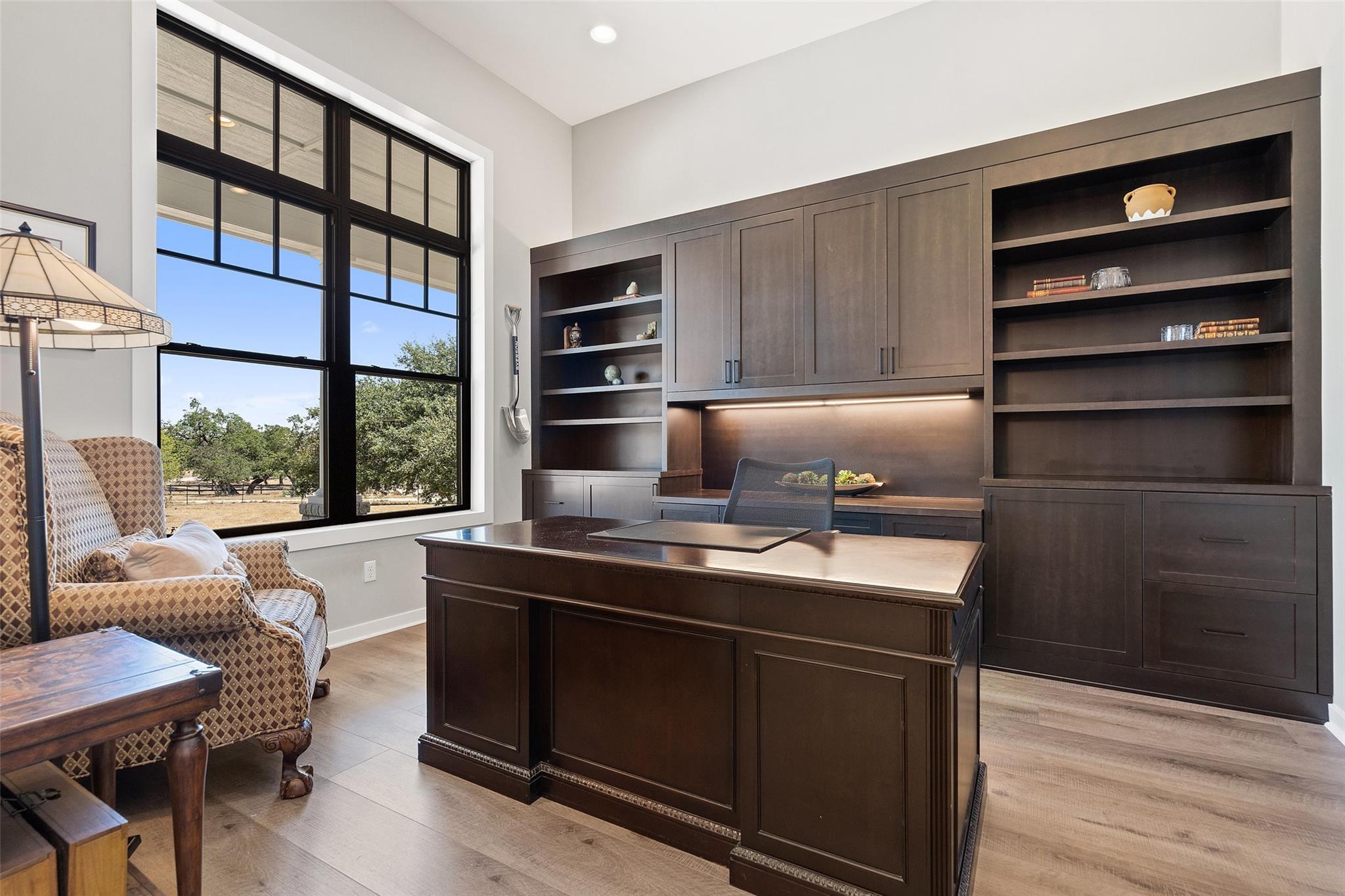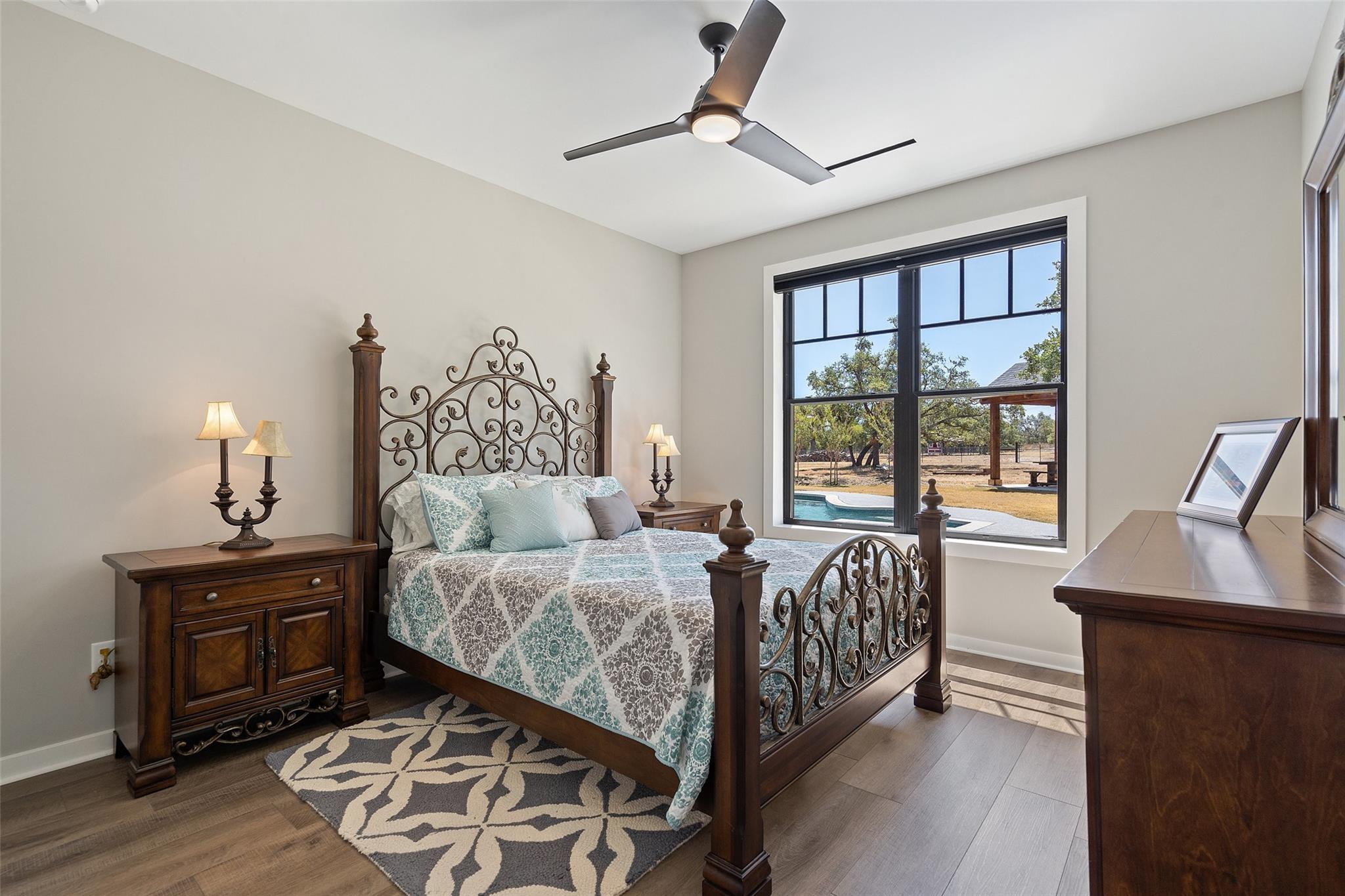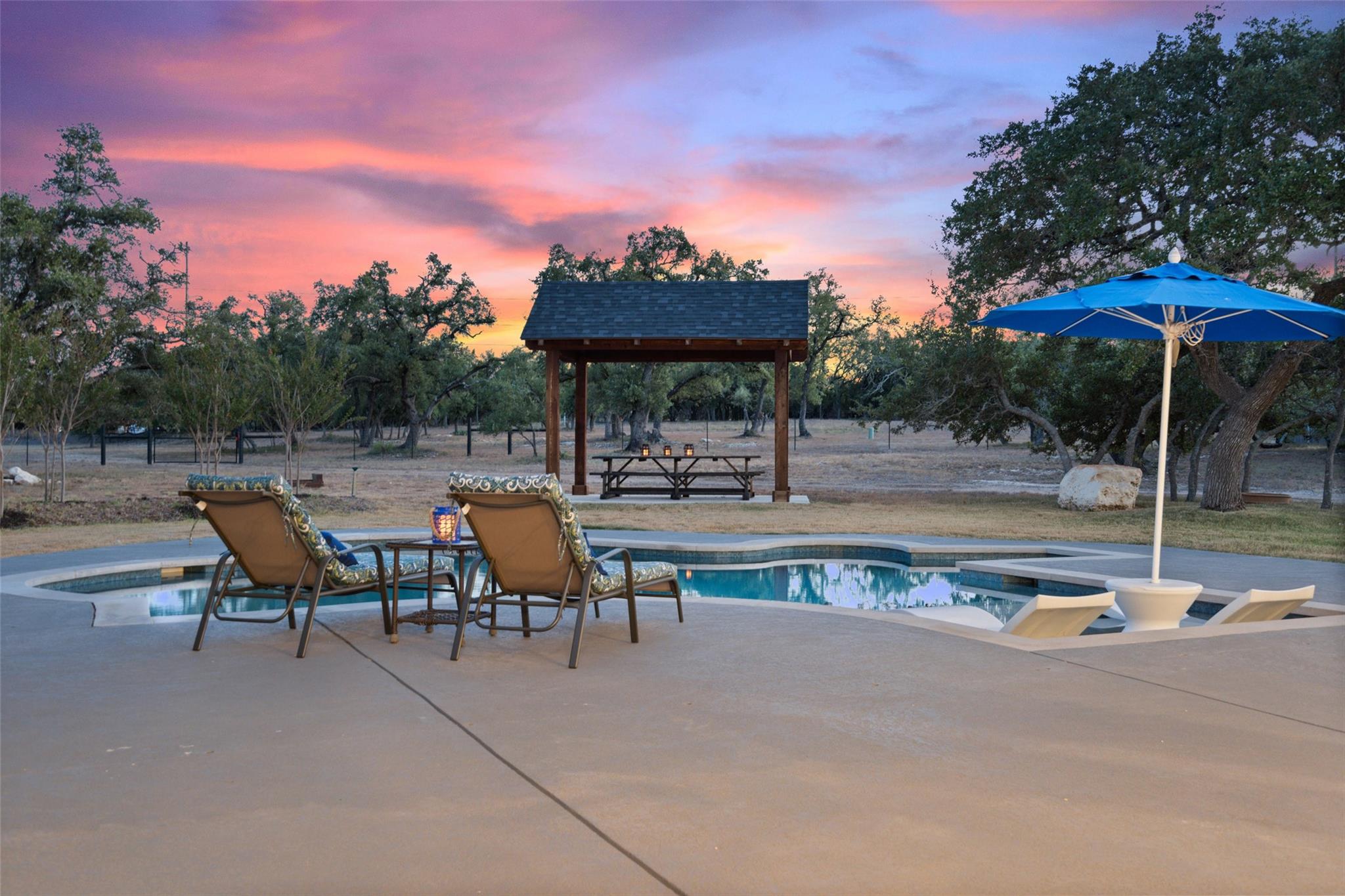Welcome to Texas Hill Country living in the heart of Dripping Springs! A rare opportunity to own a private 5.047 acre gated estate, with a new modern farmhouse, large 40x60 metal barn, chicken coop, covered pergola, a one-of-a-kind Texas shaped pool, & more! Bring your horses as this lot is fully fenced & cross fenced, all usable land covered in mature oak trees. This stunning 2020 built home welcomes you with lush landscaping & an idyllic front porch, ideal for enjoying a slower-paced lifestyle. The floor plan is perfectly designed for comfortable living, entertaining, hosting guests, or accommodating family. Offering 4 bedrooms, 3.5 bathrooms, 3,947 sqft, high-end finishes throughout, smart storage options, luxurious living & sitting areas/office, an elegantly designed formal dining, to the grand chef's kitchen with an abundance of cabinet & counter space, plus modern black SS appliances, Ceasarstone counters, wine fridge, massive walk-in pantry, & butler's pantry. This kitchen is an entertainer's dream! Indulge in the cool pool views from the spacious primary suite that offers a spa-like bath with an oversized walk-in shower, dual vanities, & roomy walk-in closet. The home lives like a 1.5 story, with one bedroom, secondary living space, full bath, & secret playroom up. Large laundry with sink adjacent to mudroom/drop zone. Outdoor living & entertaining are made effortless with a large covered patio, a beautiful walk-out pool, outdoor kitchen with built-in gas grill, & a spacious yard with raised garden beds & deer proof fencing. Endless opportunities with the metal barn that offers a half bath, mini-split AC unit, 2 oversized ceiling fans, 220V separate from home, & a rain water collection for surrounding flower beds. See agent for additional features. Come enjoy the stars at night & country living with all of the modern conveniences including high-speed internet, nearby dining & entertainment, less than 30 minutes to downtown Austin. City water. DSISD schools!