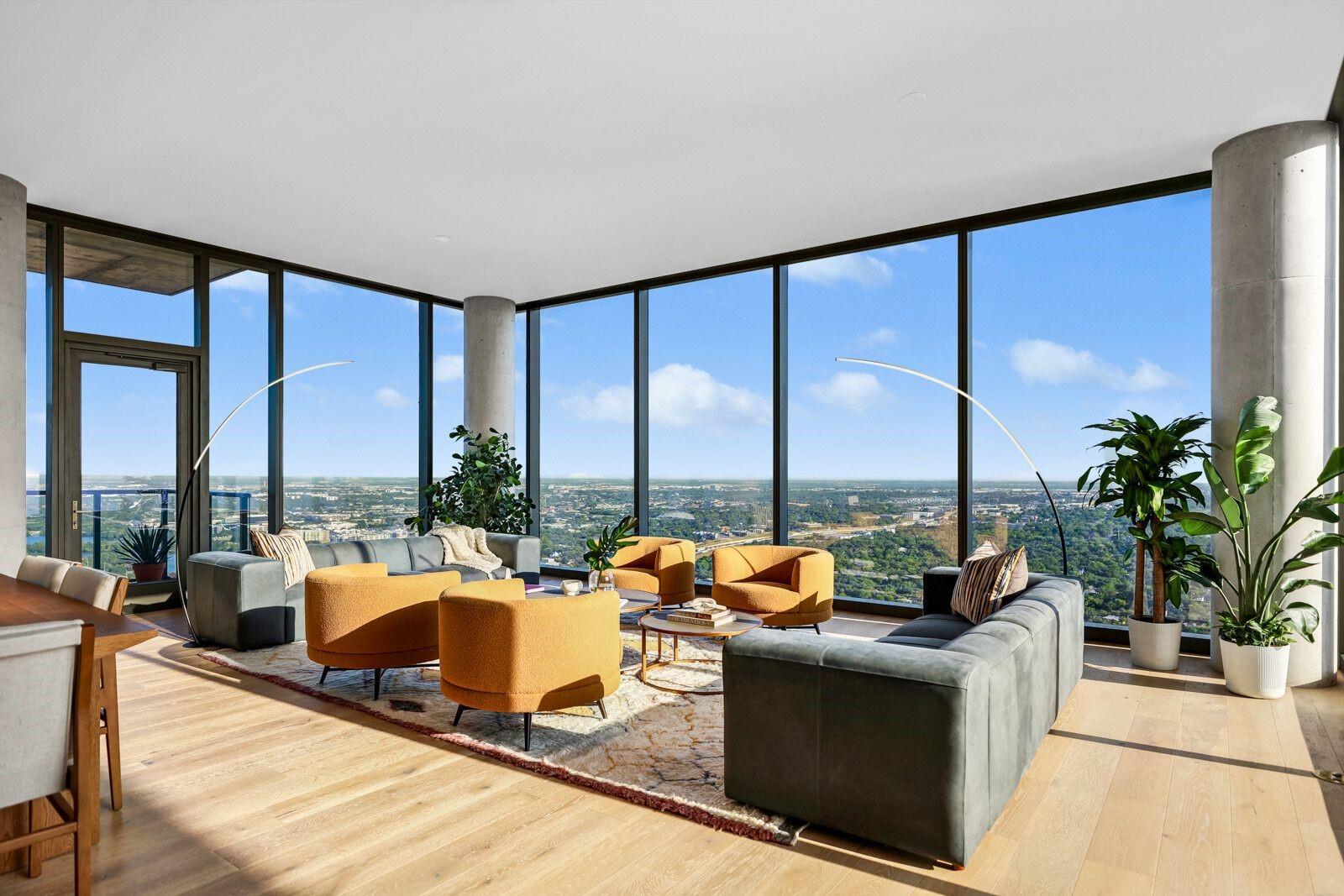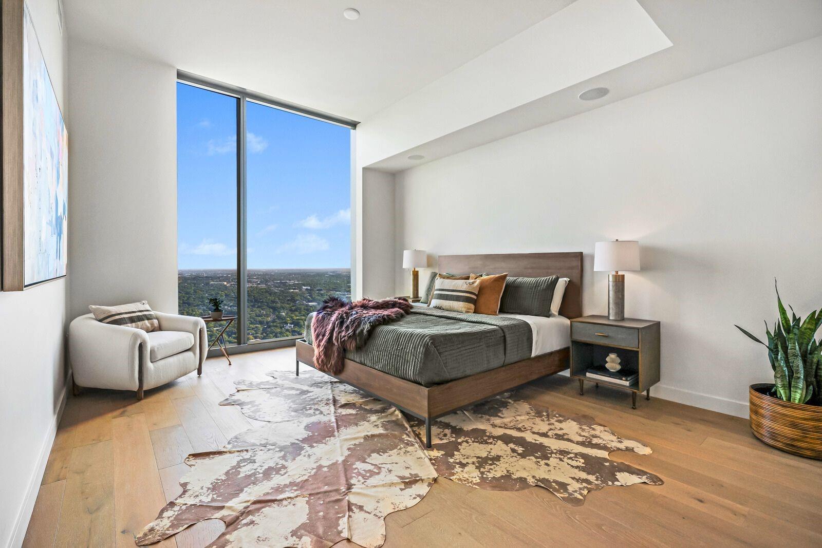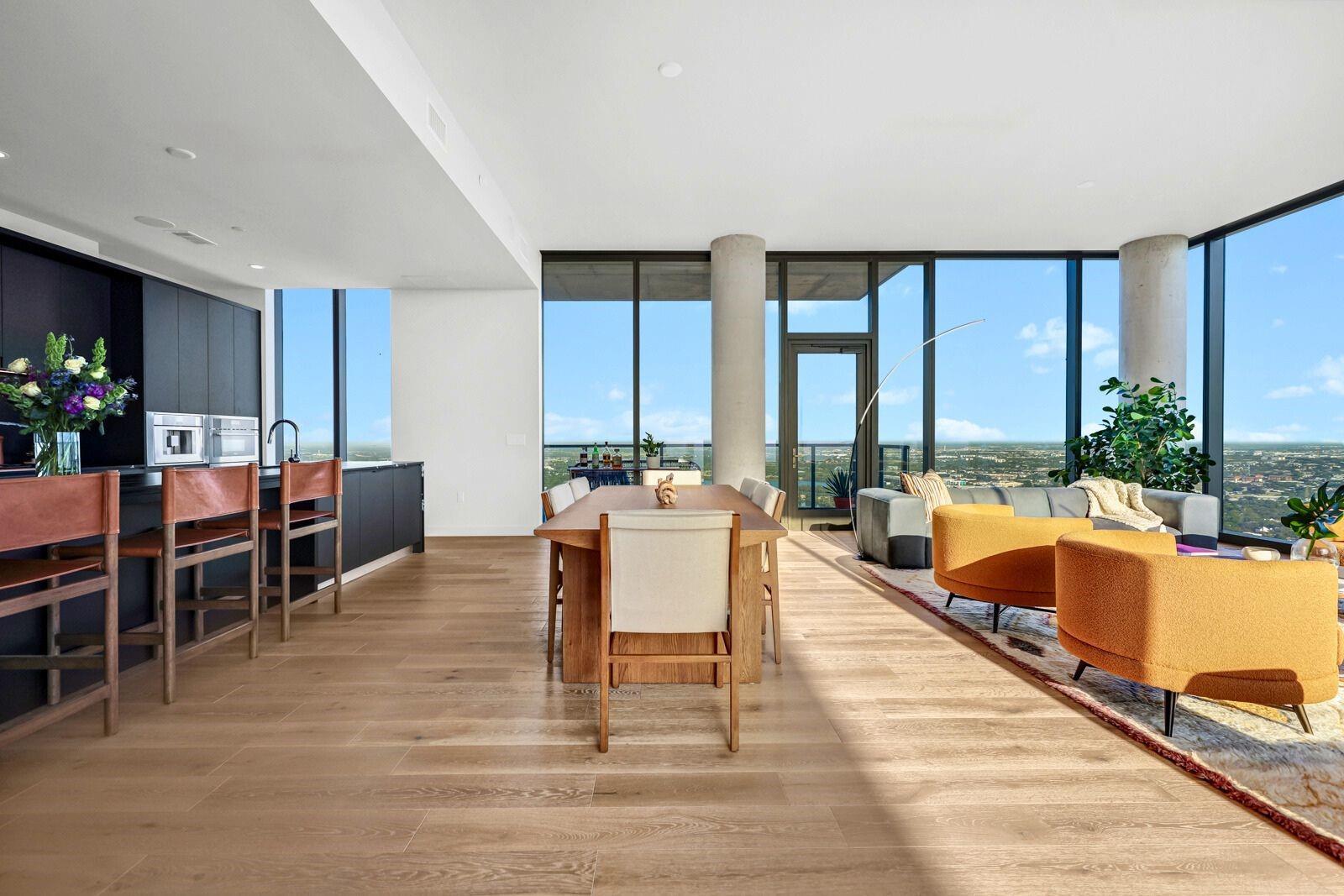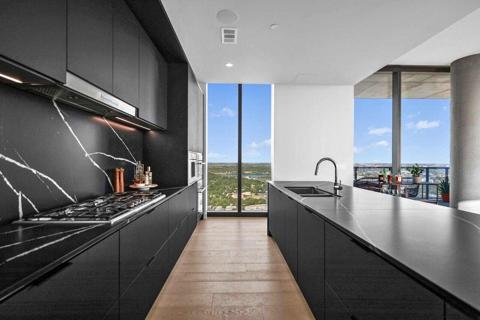 Embrace convenience and luxury in this sky-high penthouse, perfectly positioned in vibrant Austin, TX on Rainey street! Bask in breathtaking panoramic views from the 46th story through floor-to-ceiling windows and modern finishes that speak for themselves. The primary bedroom offers an ensuite with a soaking tub, walk-in shower, and double vanities, while three additional bedrooms provide unlimited possibilities for optimal use. The well-equipped kitchen boasts top-of-the-line Thermador appliances, a wine fridge, and all you need to elevate your hosting abilities. With an open-concept floor plan that flows seamlessly, stepping onto the balcony will make you feel as if you're floating amidst the clouds. Explore over 13,000 sq ft of amenities, including a pool, fitness center, dog park, spa, and sky lounge – offering a variety of indulgent experiences. Enjoy seamless access to the renowned Lady Bird Lake Hike & Bike Trail and discover a myriad of exquisite dining options just a stone's throw away. Embrace a lifestyle of luxury and comfort in this extraordinary penthouse residence.
