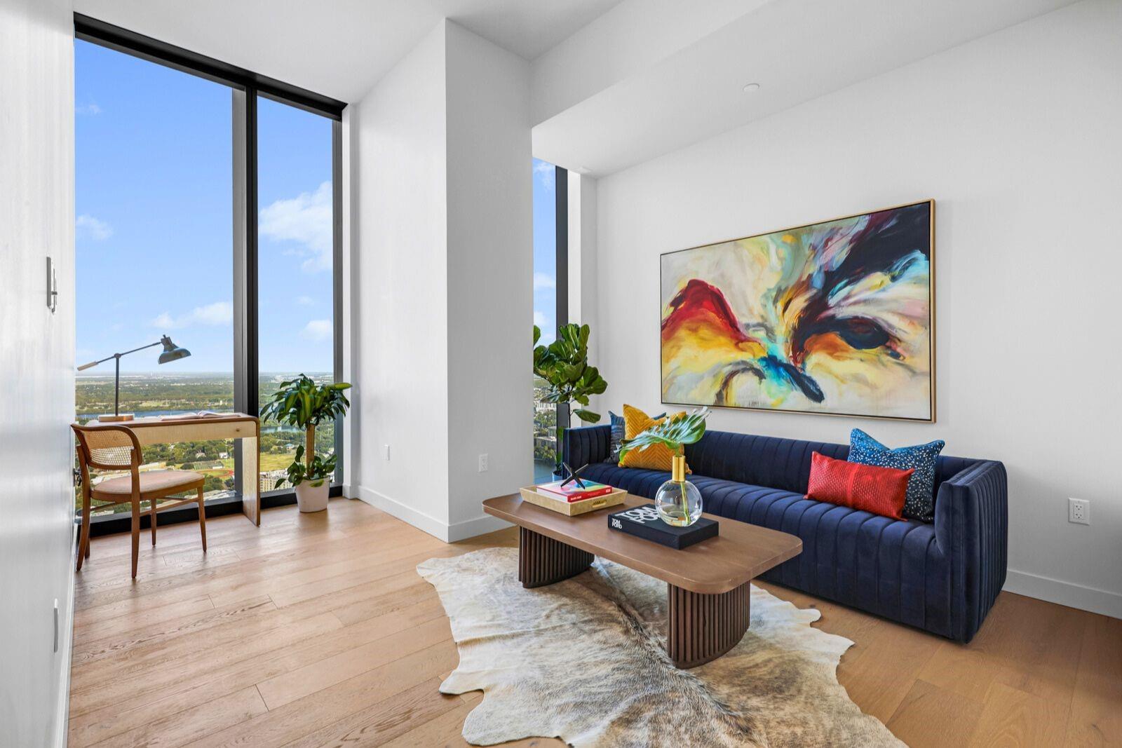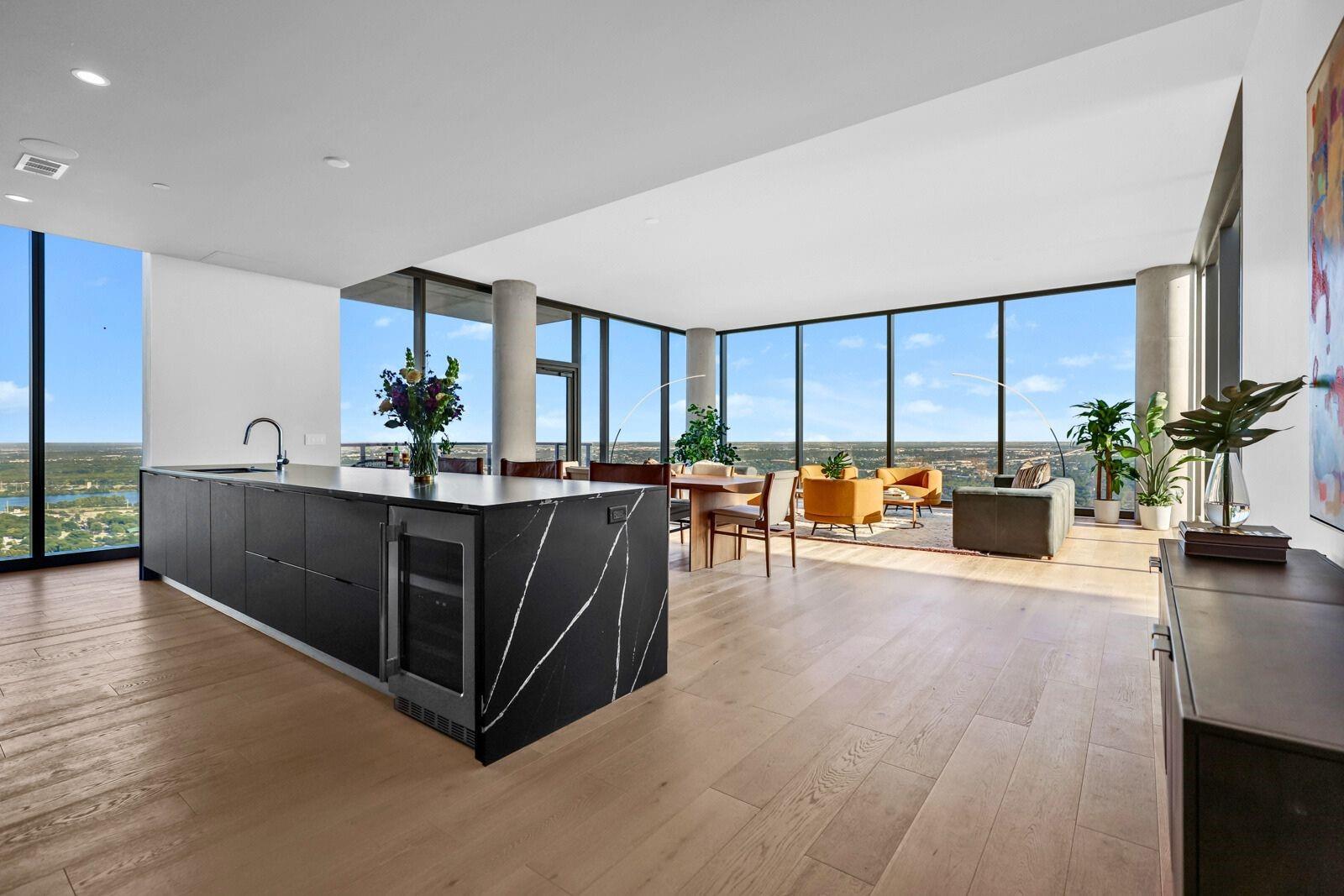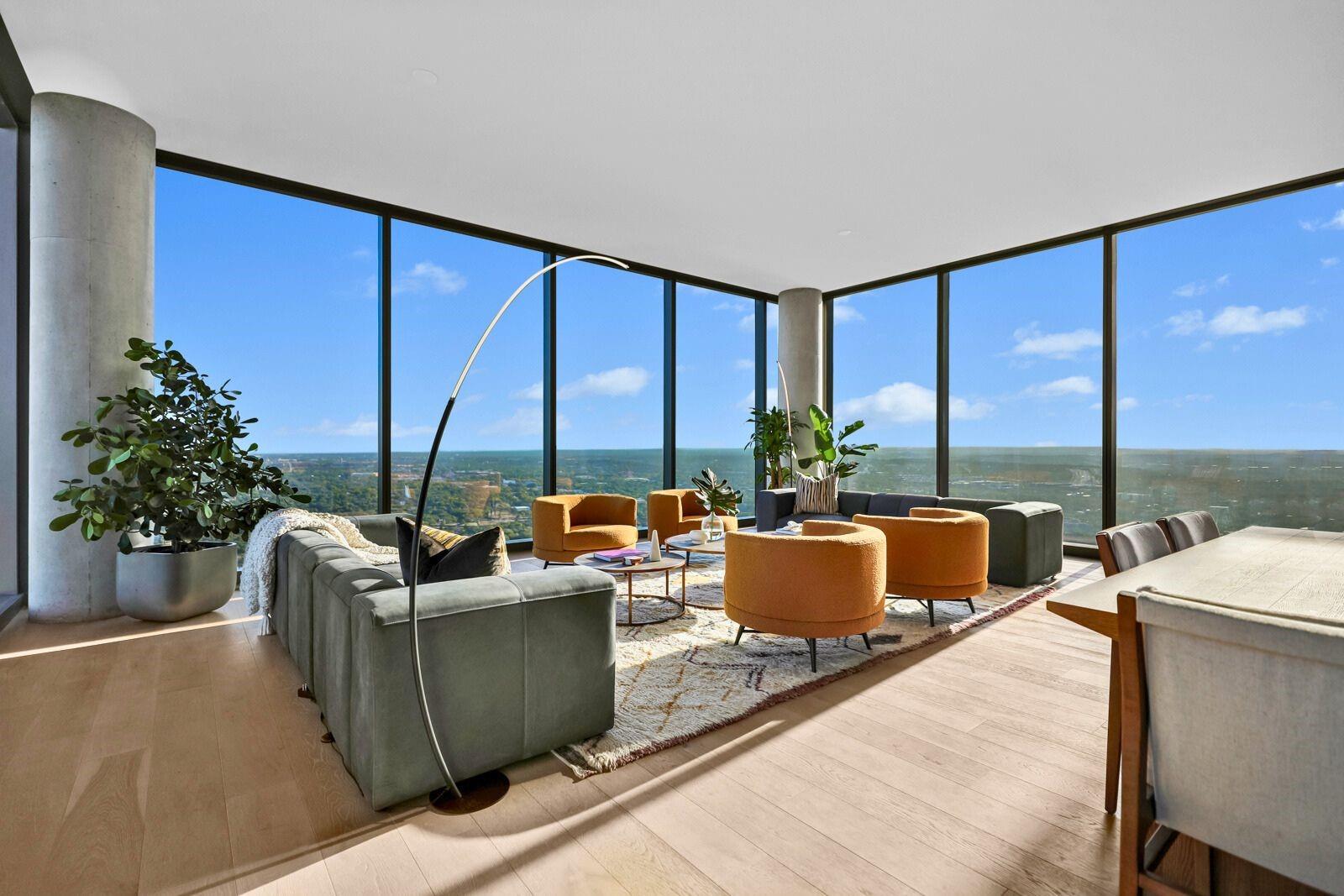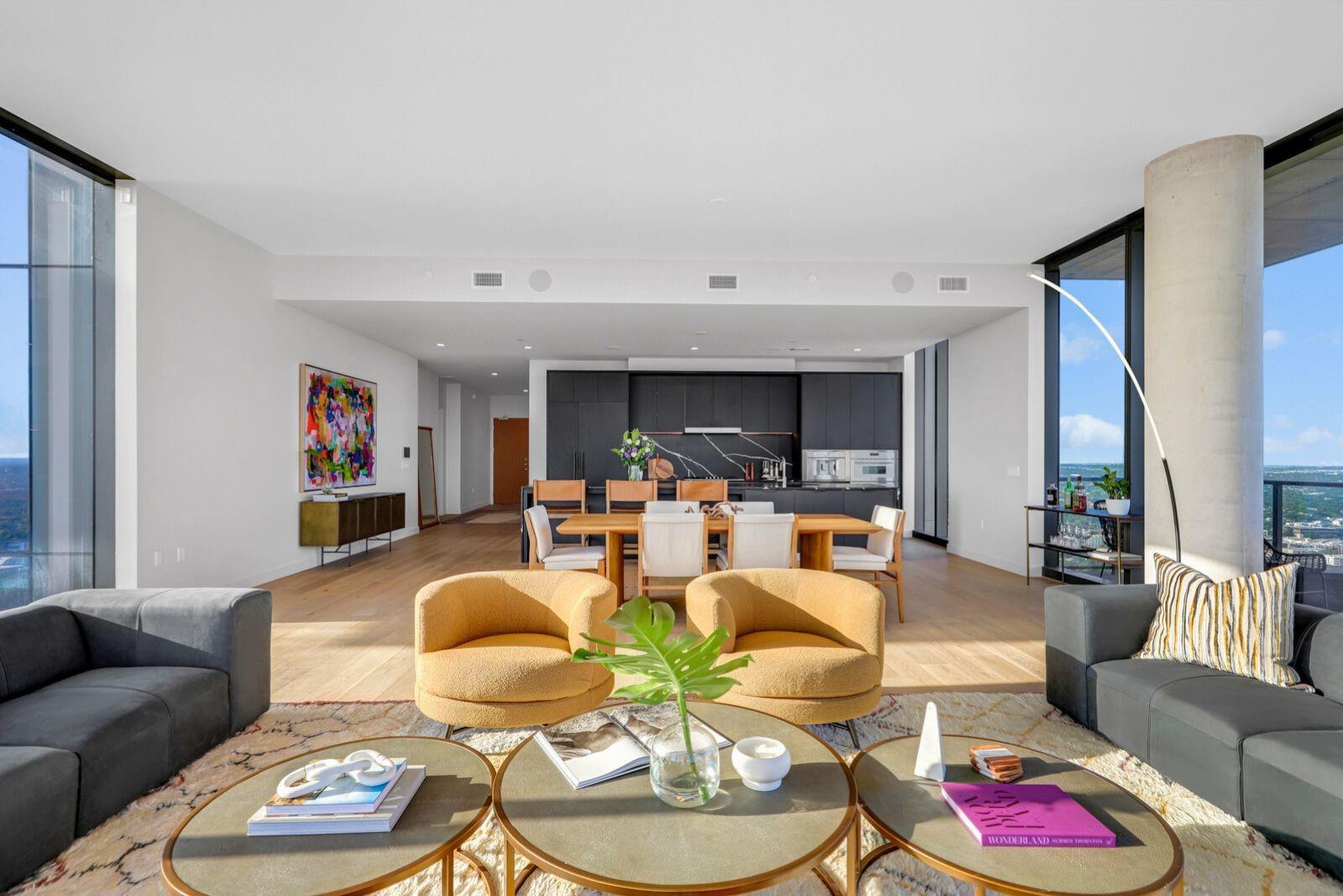Embrace convenience and luxury in this sky-high penthouse, perfectly positioned in vibrant Austin, TX on Rainey street! Bask in breathtaking panoramic views from the 46th story through floor-to-ceiling windows and modern finishes that speak for themselves. The primary bedroom offers an ensuite with a soaking tub, walk-in shower, and double vanities, while three additional bedrooms provide unlimited possibilities for optimal use. The well-equipped kitchen boasts top-of-the-line Thermador appliances, a wine fridge, and all you need to elevate your hosting abilities. With an open-concept floor plan that flows seamlessly, stepping onto the balcony will make you feel as if you're floating amidst the clouds. Explore over 13,000 sq ft of amenities, including a pool, fitness center, dog park, spa, and sky lounge – offering a variety of indulgent experiences. Enjoy seamless access to the renowned Lady Bird Lake Hike & Bike Trail and discover a myriad of exquisite dining options just a stone's throw away. Embrace a lifestyle of luxury and comfort in this extraordinary penthouse residence.