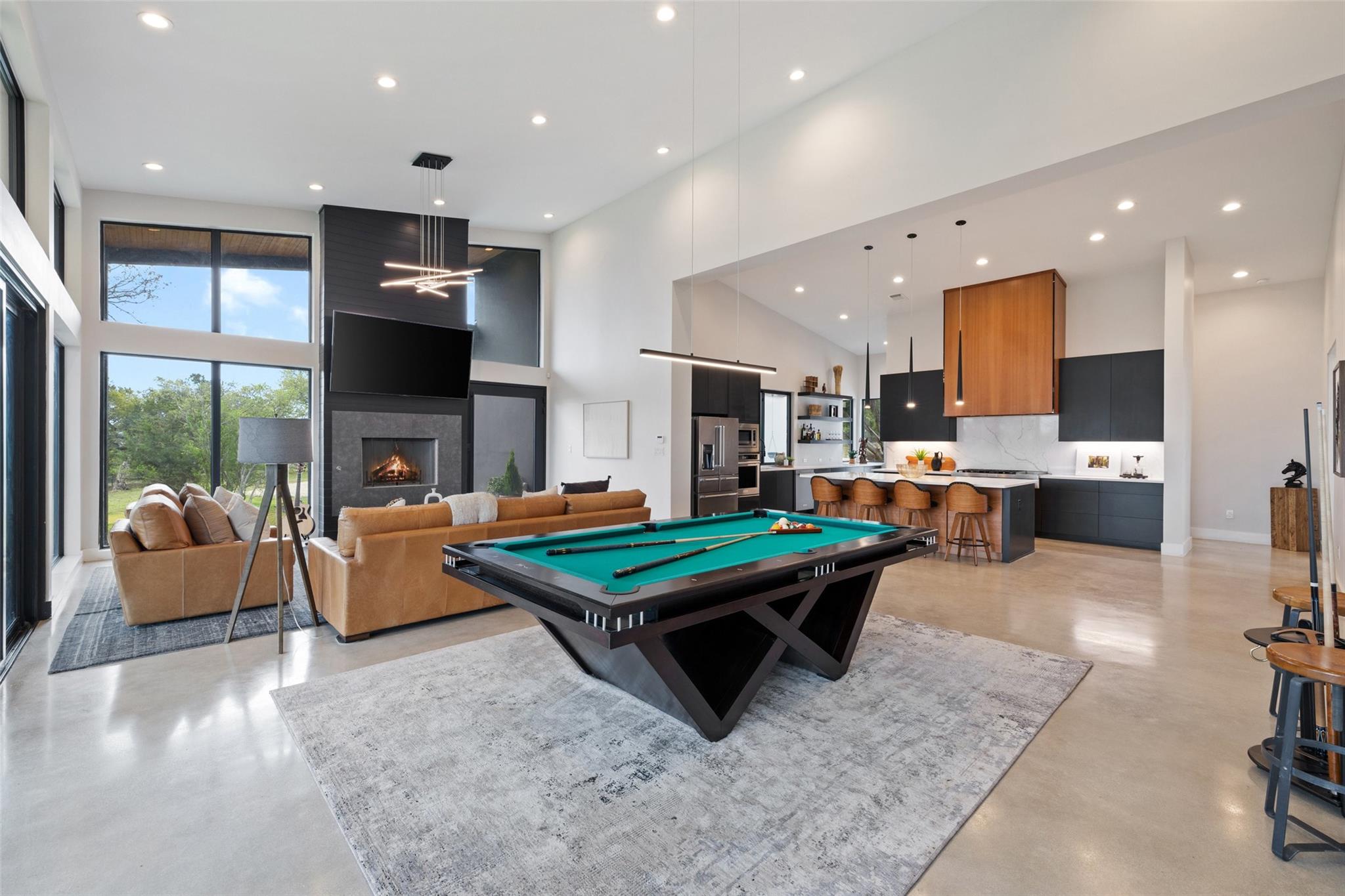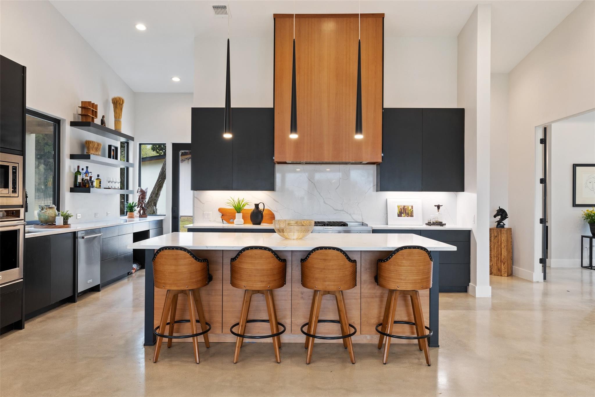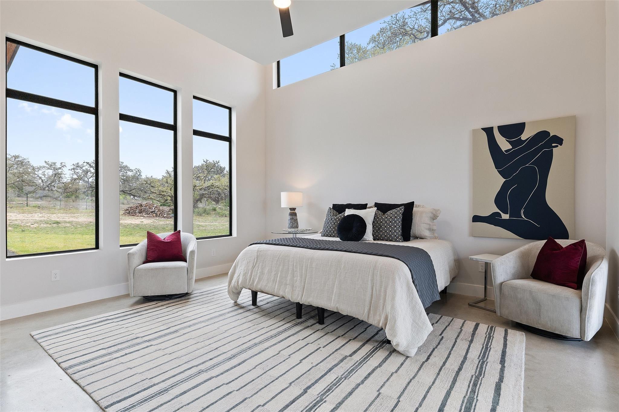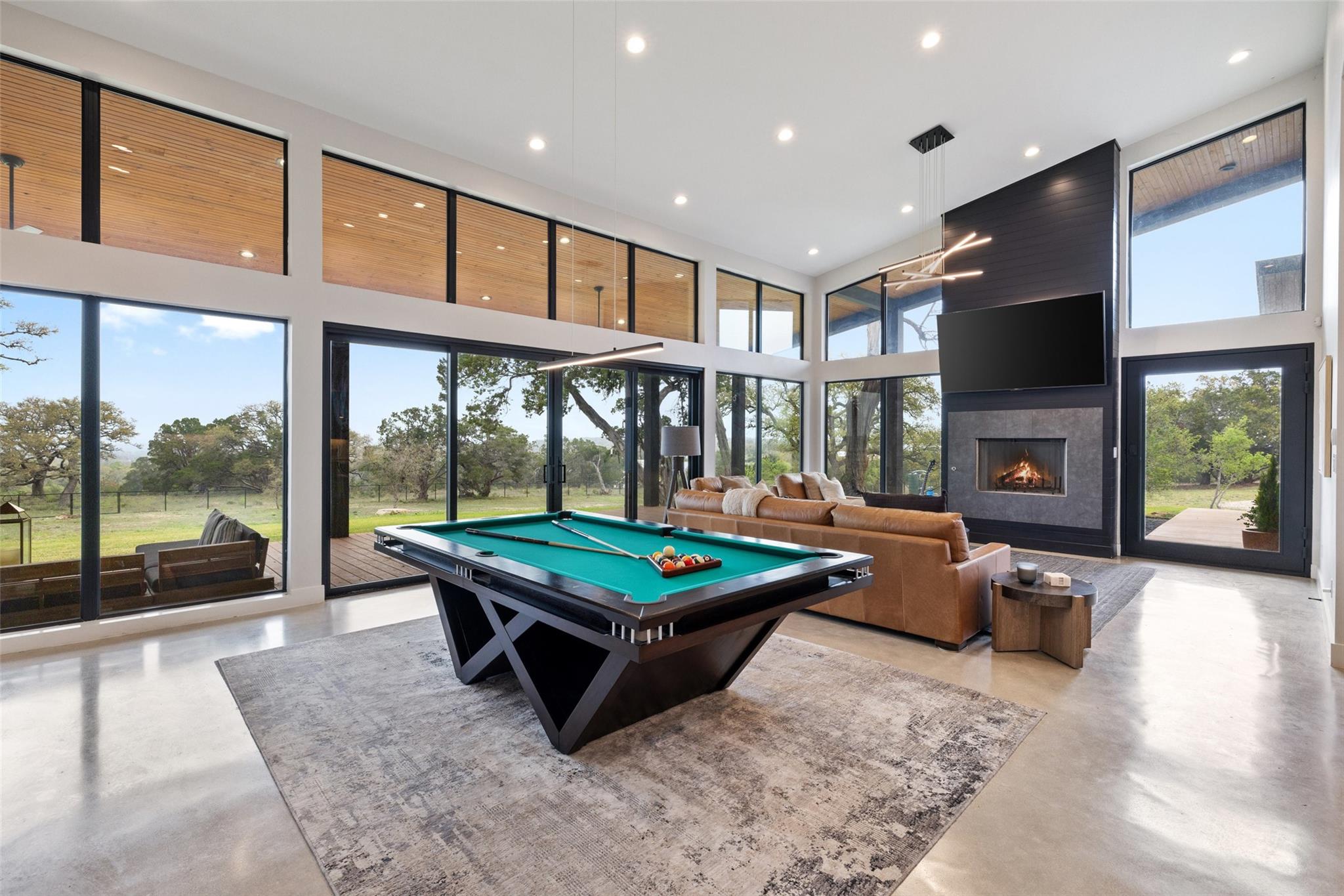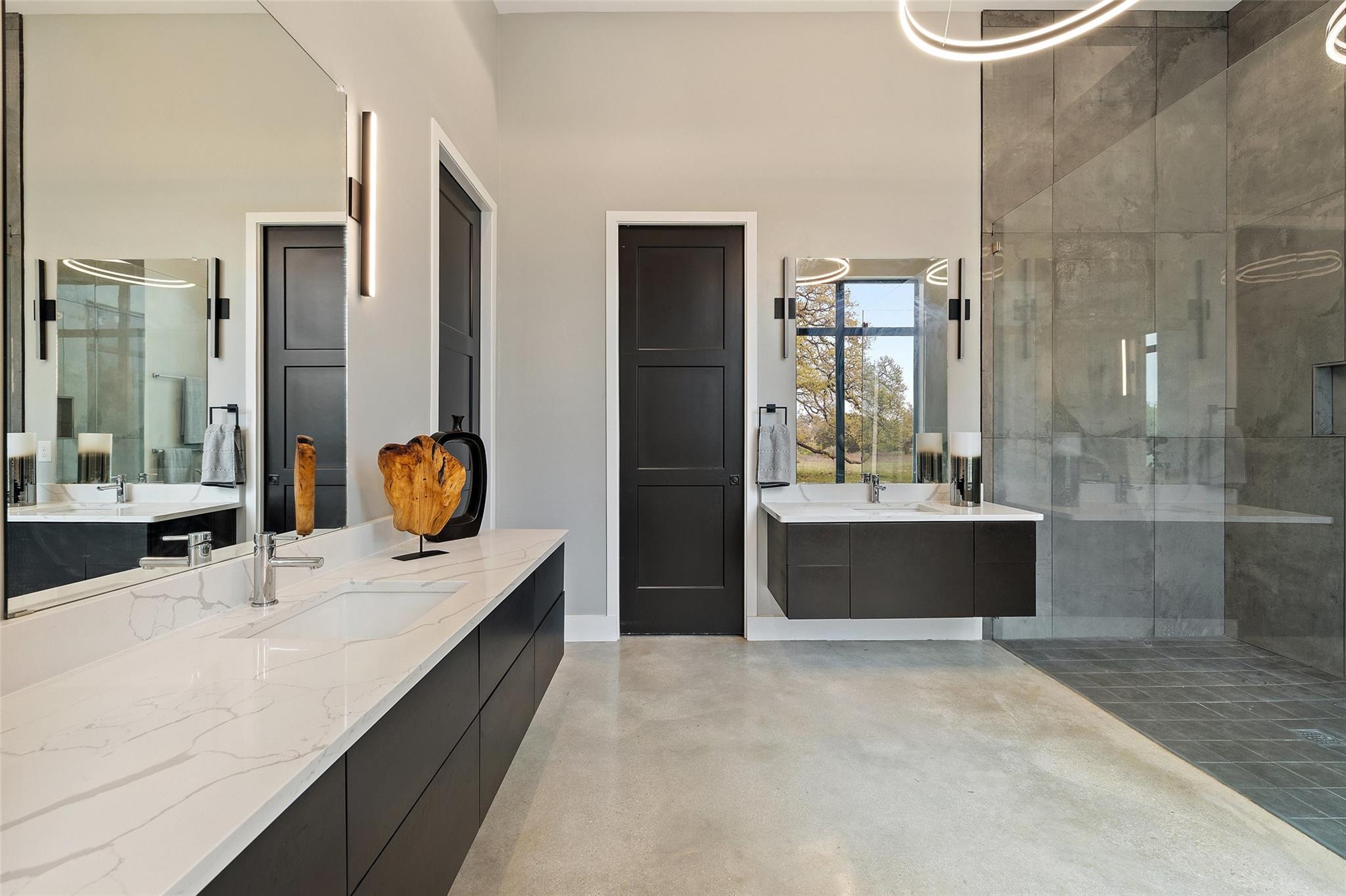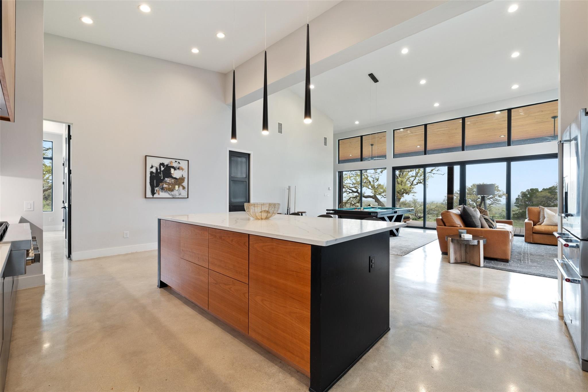 Come walk through this luxurious contemporary home in the fantastic Texas Hill Country. This beautiful home sits on 10.25 acres with extravagant hill country panoramic views. Built by the exceptional Dynamic Custom homes and featuring Oscar Flores Design, this home boasts fantastic craftsmanship with bright, natural light, clean lines, and abundant open floor space. The timeless and elegant detail and flawlessly designed bring joy and excitement from any perspective. This dream kitchen features an oversized kitchen island, ample countertop space, and exceptional gas stove that opens to both the dining and living rooms for both culinary enthusiasts and those who appreciate entertaining. Throughout the house, custom light fixtures add a touch of elegance and uniqueness bringing a sophistication to the residence, creating a captivating ambiance that complements the modern aesthetic. The primary suite is a sanctuary of comfort featuring a large walking shower and access to the exterior patio. Just outside is a huge, covered patio overlooking the Hill Country. Additionally, the home has a two-car detached garage. There is no better place within the Texas Hill Country to call home. Schedule your private tour of this home today! 9 Acres Ag Exempt!
