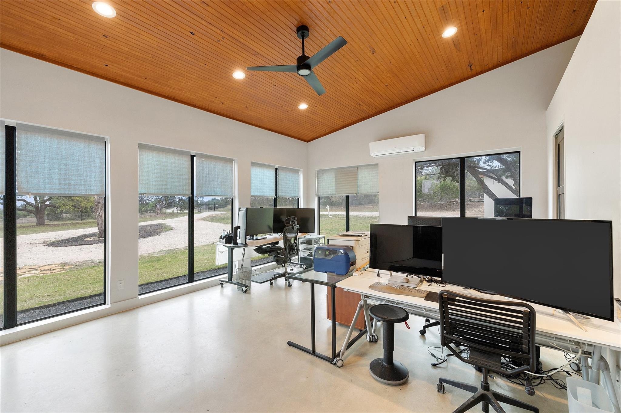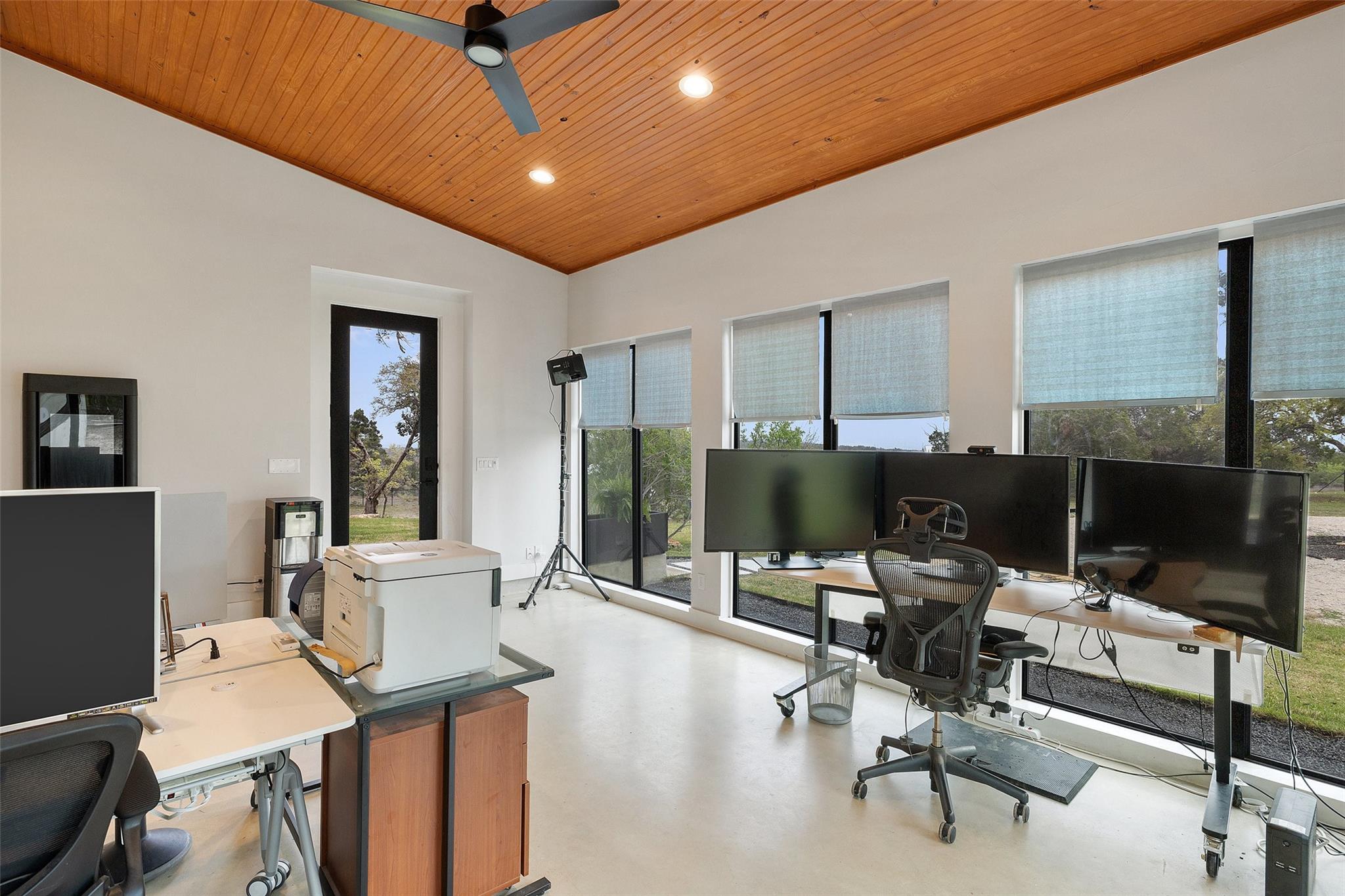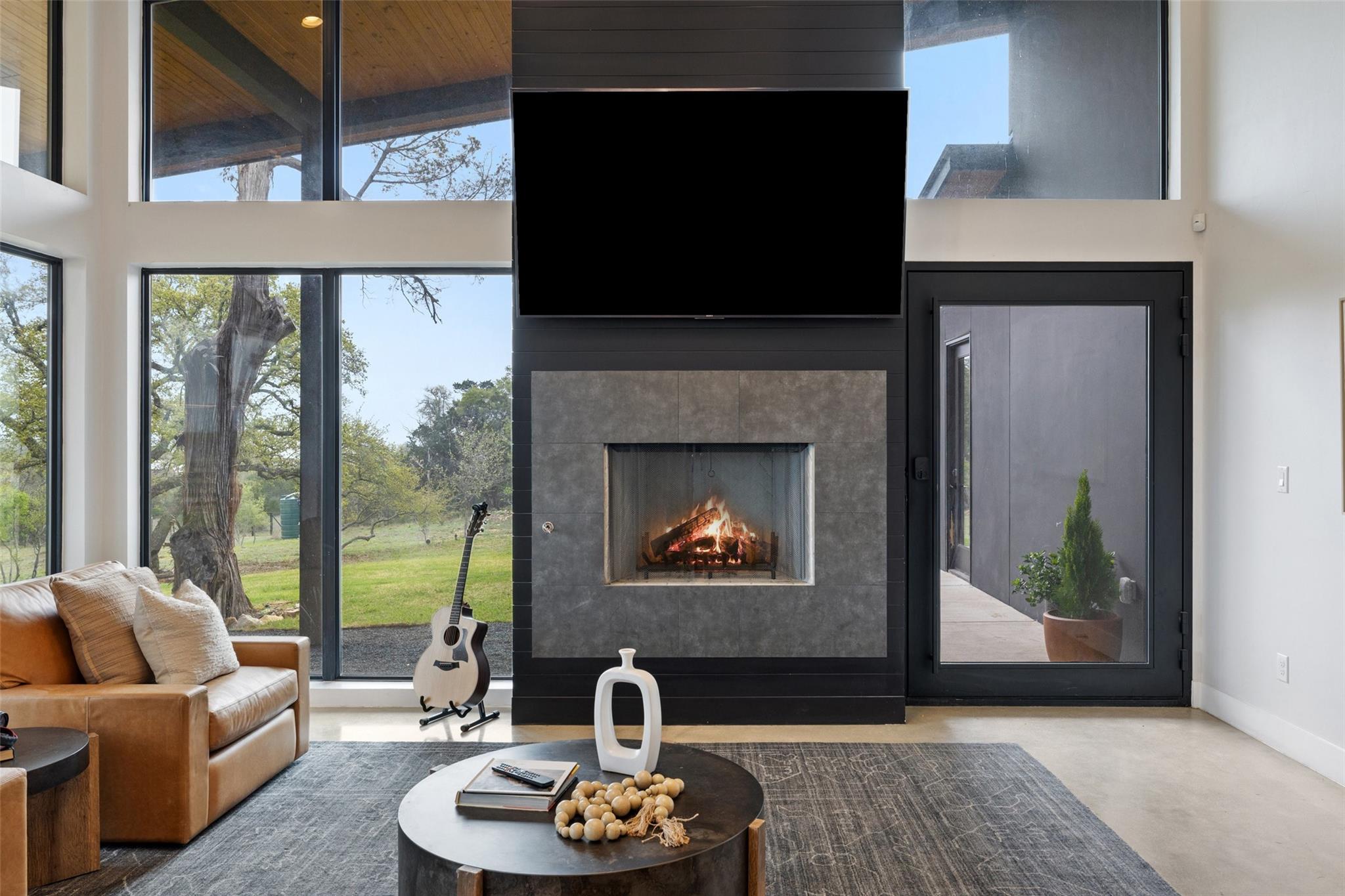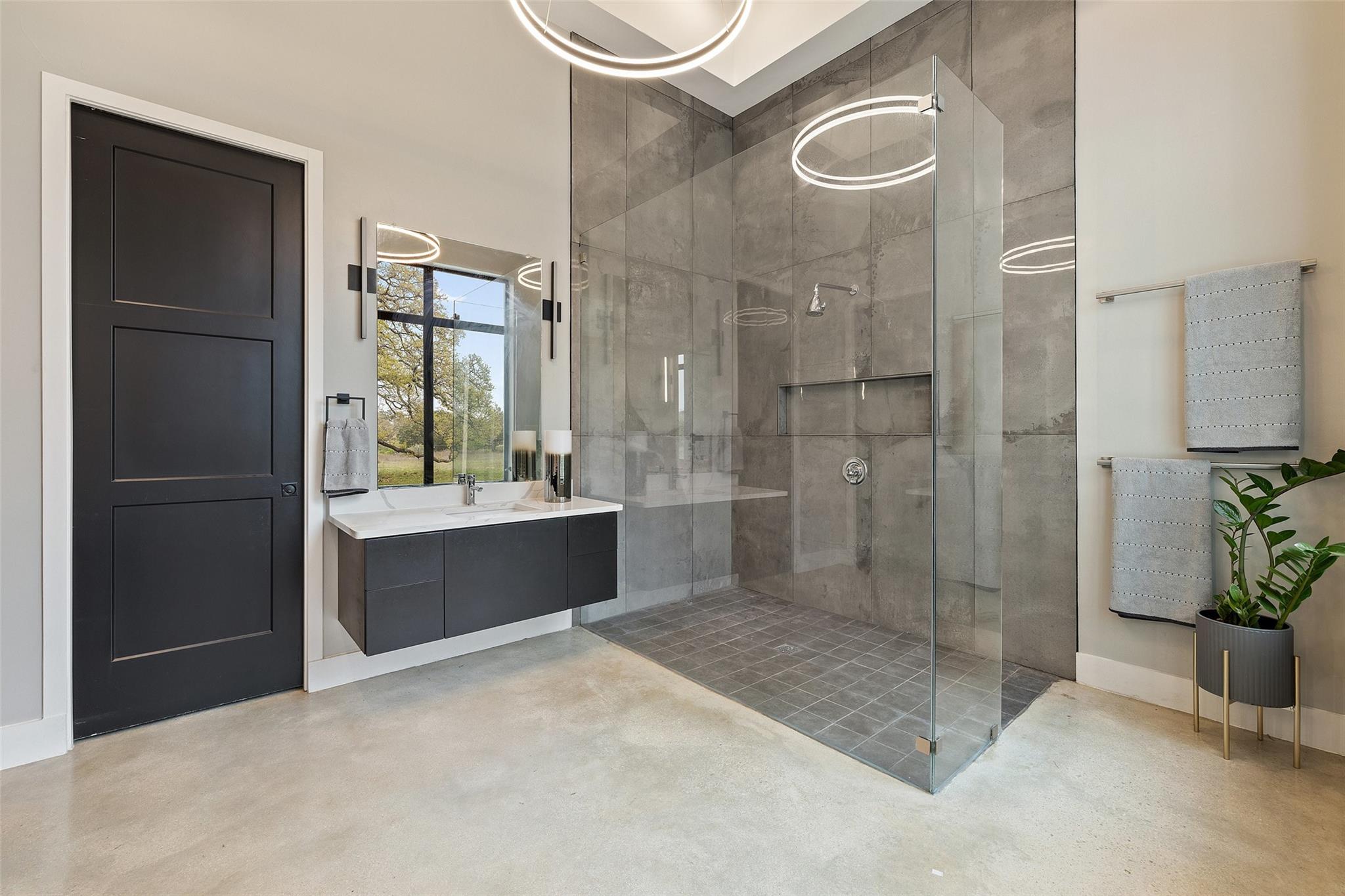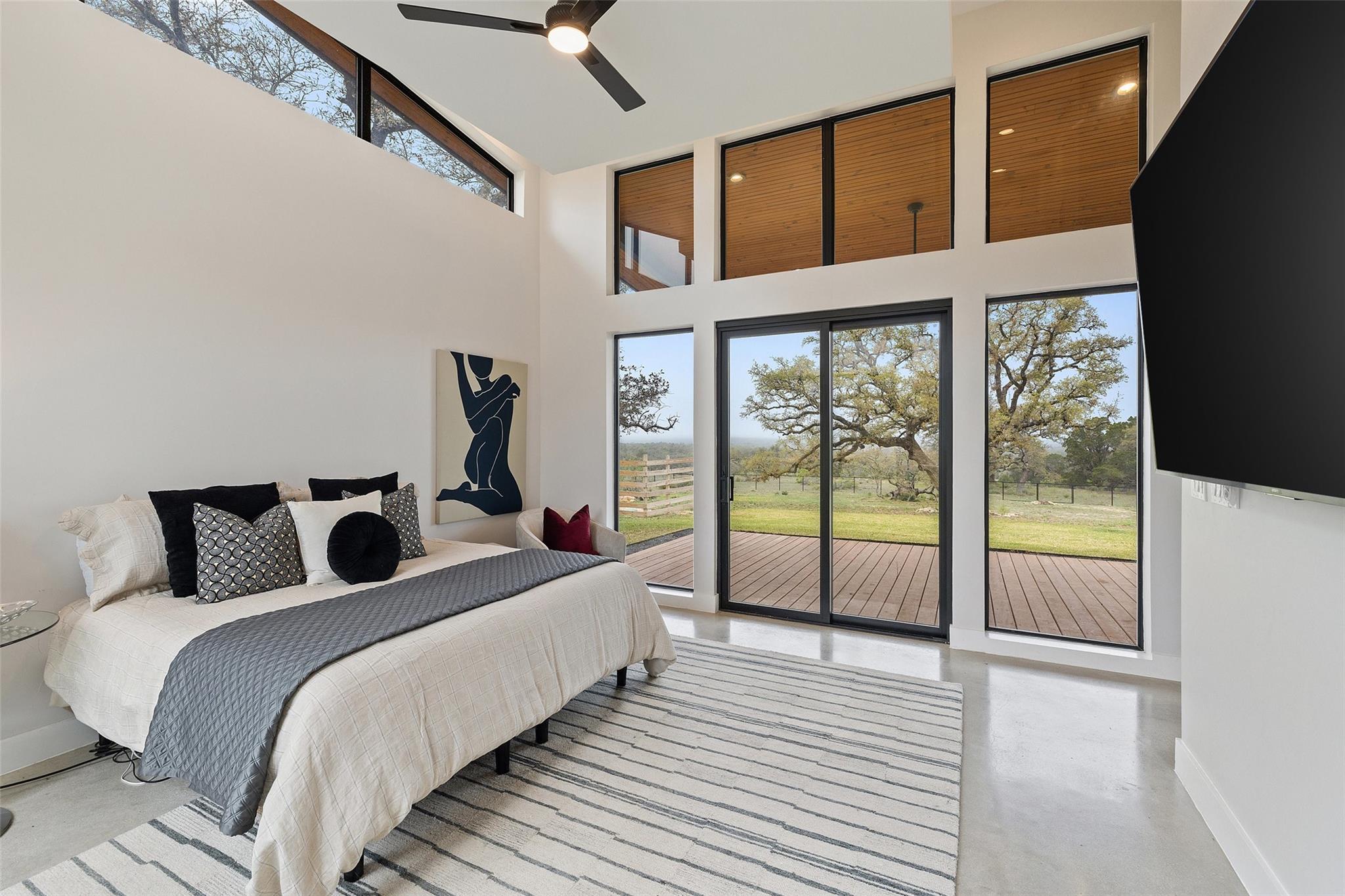 Come walk through this luxurious contemporary home in the fantastic Texas Hill Country. This beautiful home sits on 10.25 acres with extravagant hill country panoramic views. Built by the exceptional Dynamic Custom homes and featuring Oscar Flores Design, this home boasts fantastic craftsmanship with bright, natural light, clean lines, and abundant open floor space. The timeless and elegant detail and flawlessly designed bring joy and excitement from any perspective. This dream kitchen features an oversized kitchen island, ample countertop space, and exceptional gas stove that opens to both the dining and living rooms for both culinary enthusiasts and those who appreciate entertaining. Throughout the house, custom light fixtures add a touch of elegance and uniqueness bringing a sophistication to the residence, creating a captivating ambiance that complements the modern aesthetic. The primary suite is a sanctuary of comfort featuring a large walking shower and access to the exterior patio. Just outside is a huge, covered patio overlooking the Hill Country. Additionally, the home has a two-car detached garage. There is no better place within the Texas Hill Country to call home. Schedule your private tour of this home today! 9 Acres Ag Exempt!