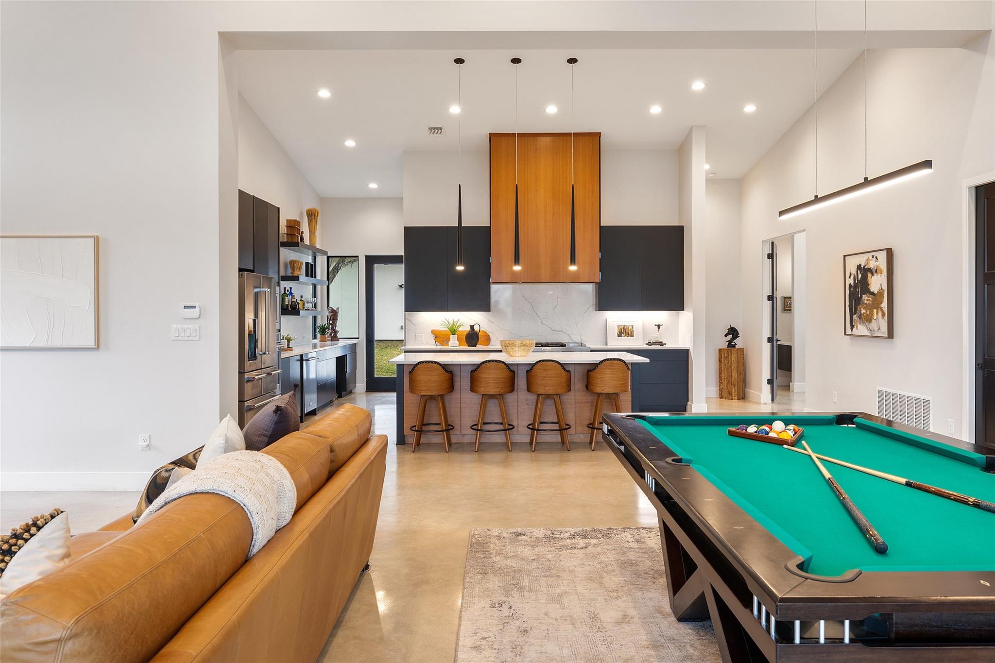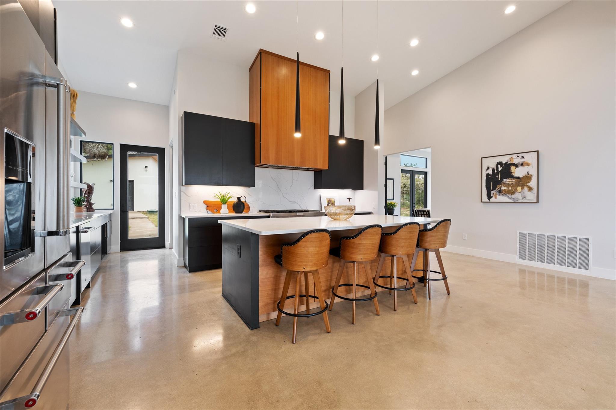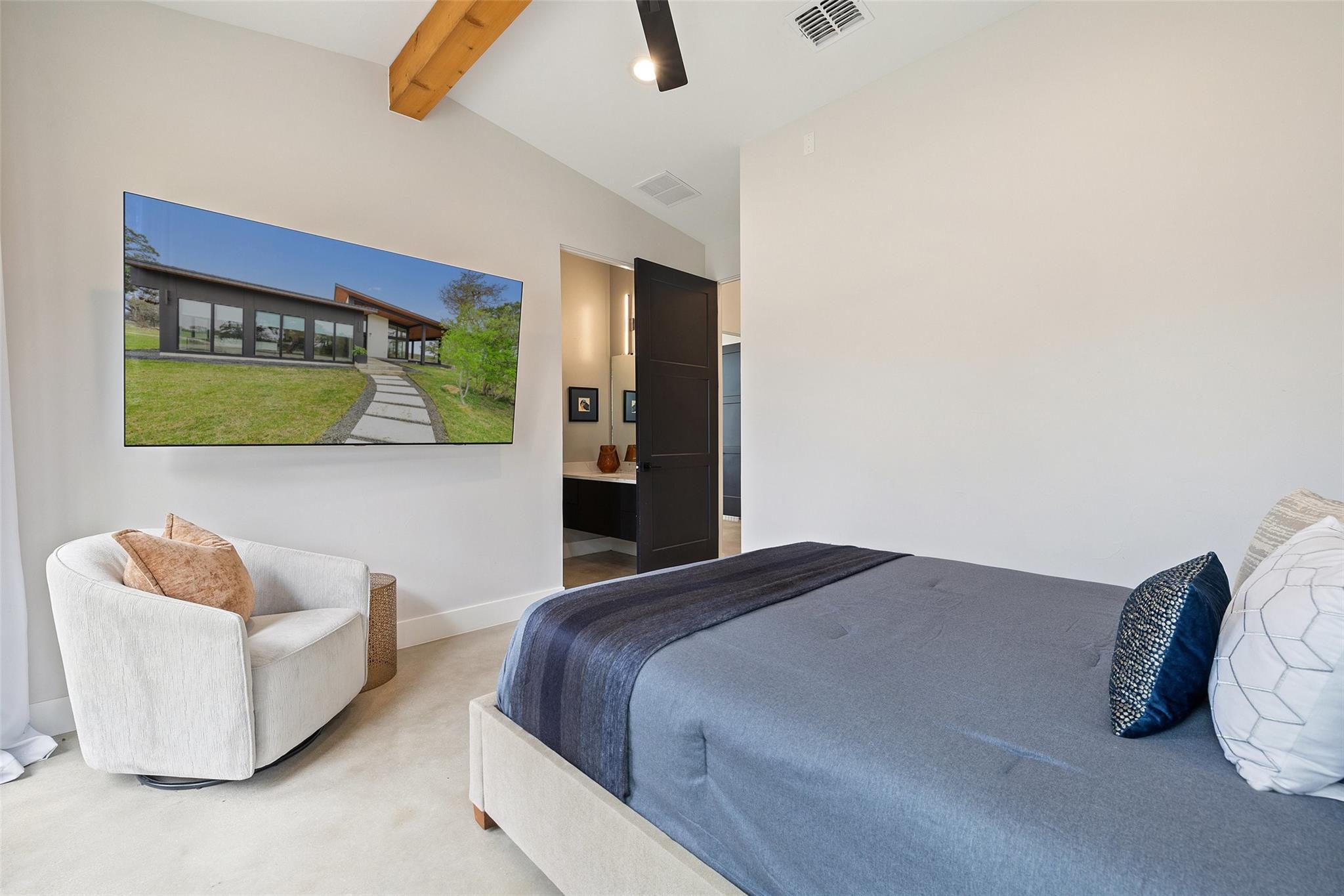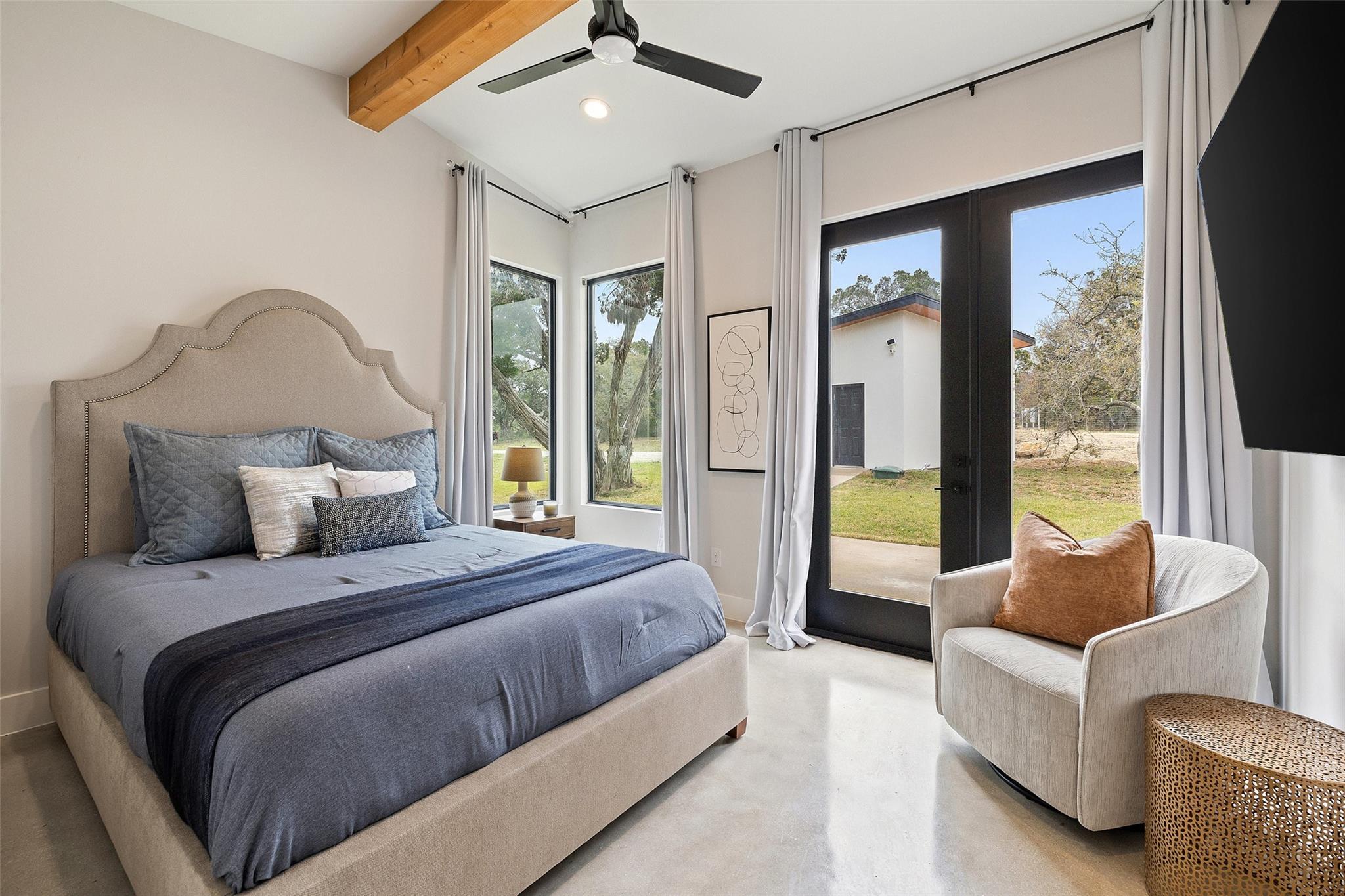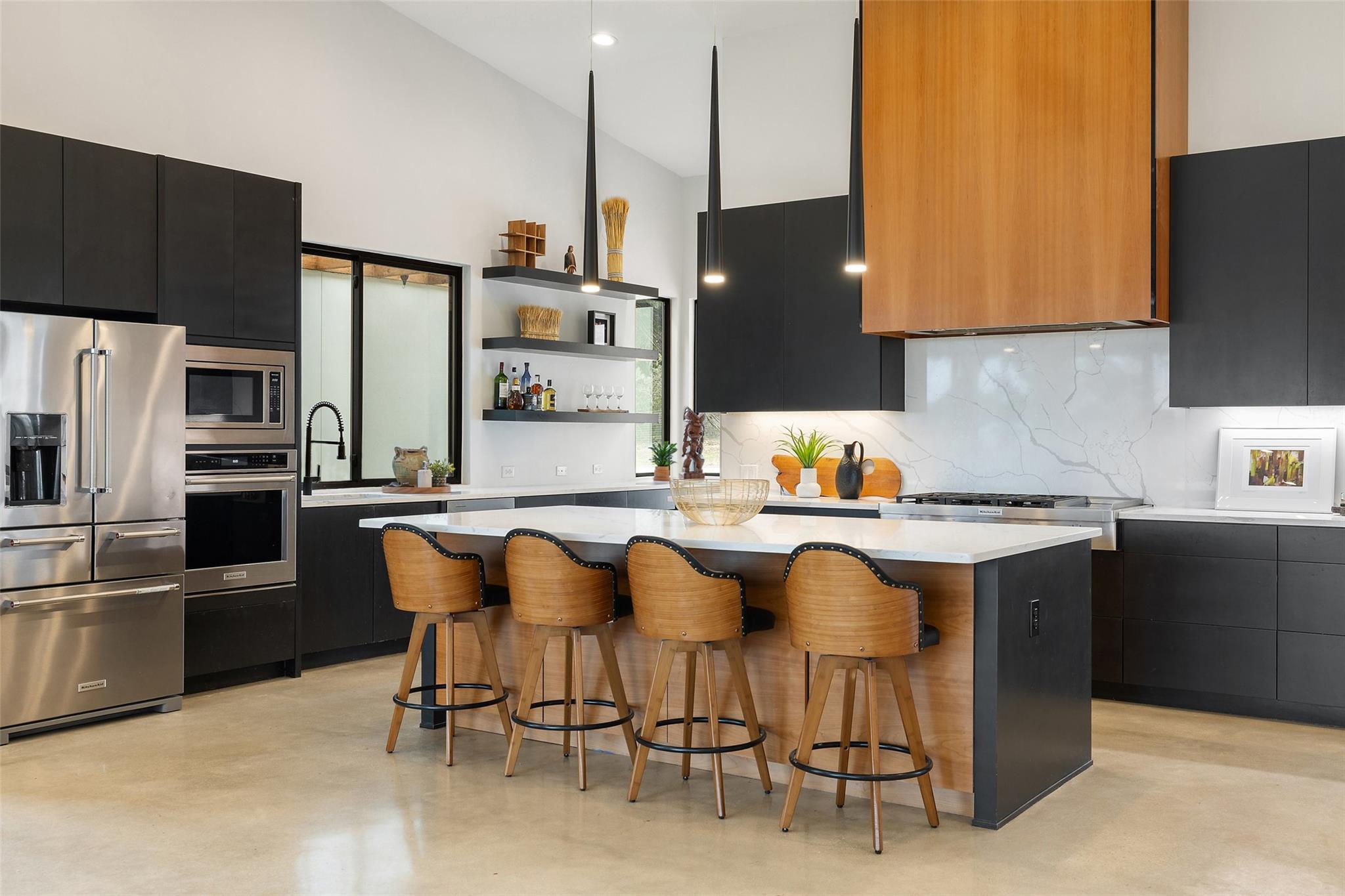 Come walk through this luxurious contemporary home in the fantastic Texas Hill Country. This beautiful home sits on 10.25 acres with extravagant hill country panoramic views. Built by the exceptional Dynamic Custom homes and featuring Oscar Flores Design, this home boasts fantastic craftsmanship with bright, natural light, clean lines, and abundant open floor space. The timeless and elegant detail and flawlessly designed bring joy and excitement from any perspective. This dream kitchen features an oversized kitchen island, ample countertop space, and exceptional gas stove that opens to both the dining and living rooms for both culinary enthusiasts and those who appreciate entertaining. Throughout the house, custom light fixtures add a touch of elegance and uniqueness bringing a sophistication to the residence, creating a captivating ambiance that complements the modern aesthetic. The primary suite is a sanctuary of comfort featuring a large walking shower and access to the exterior patio. Just outside is a huge, covered patio overlooking the Hill Country. Additionally, the home has a two-car detached garage. There is no better place within the Texas Hill Country to call home. Schedule your private tour of this home today! 9 Acres Ag Exempt!