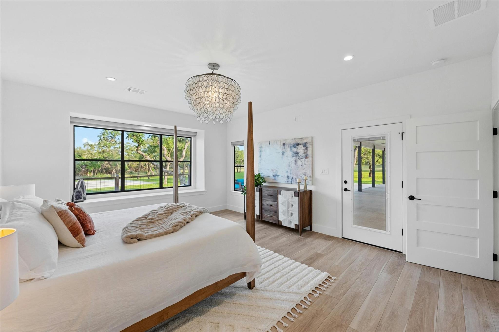 | Interior Features | Two Primary Baths, Two Primary Suties, Breakfast Bar, Ceiling Fan(s), Beamed Ceilings, High Ceilings, Vaulted Ceiling(s), Chandelier, Double Vanity, French Doors, High Speed Internet, In-Law Floorplan, Interior Steps, Kitchen Island, Multiple Dining Areas, Open Floorplan, Pantry, Recessed Lighting, Smart Thermostat, Soaking Tub, Stackable W/D Connections, Storage, Walk-In Closet(s) | |