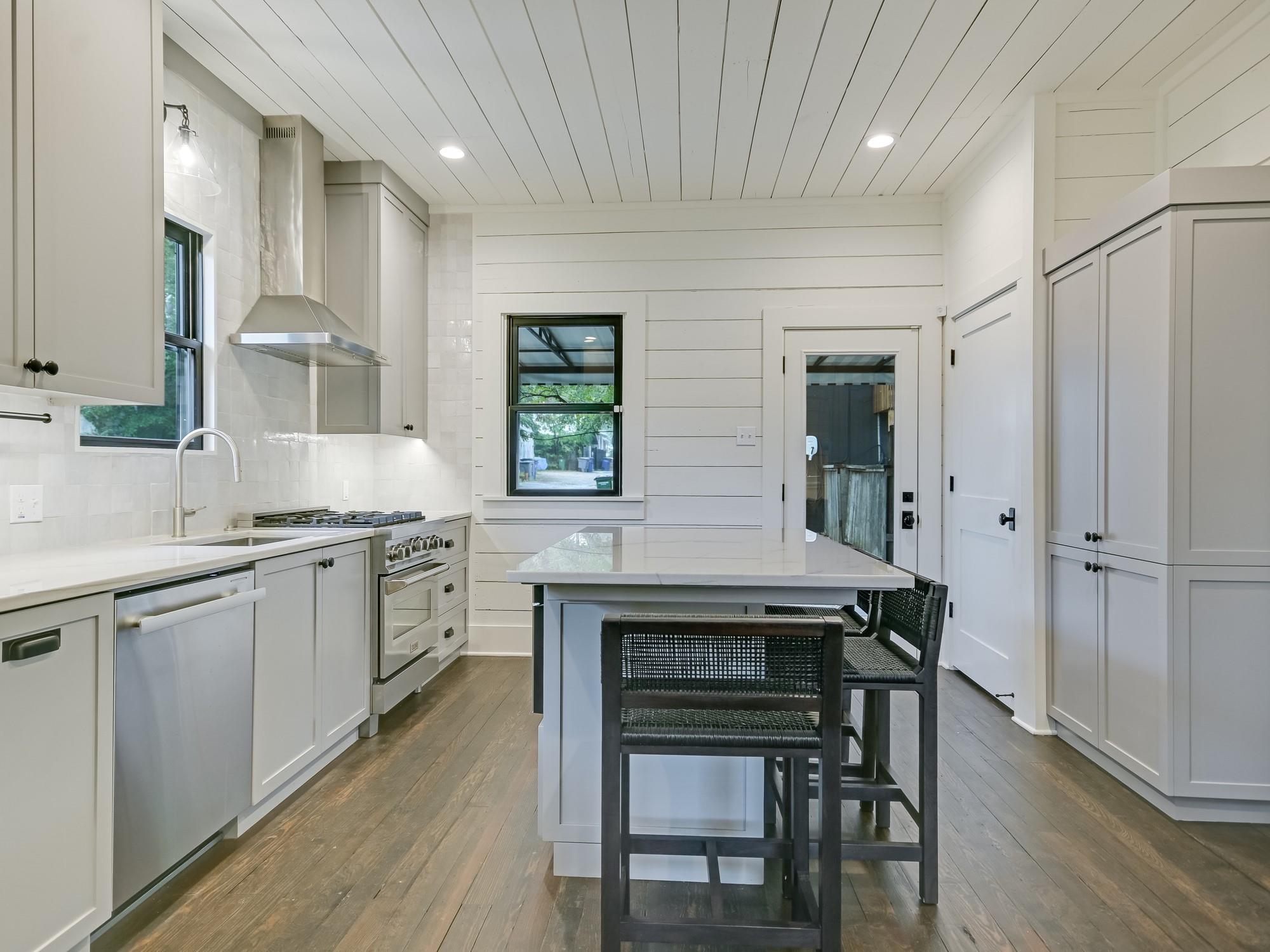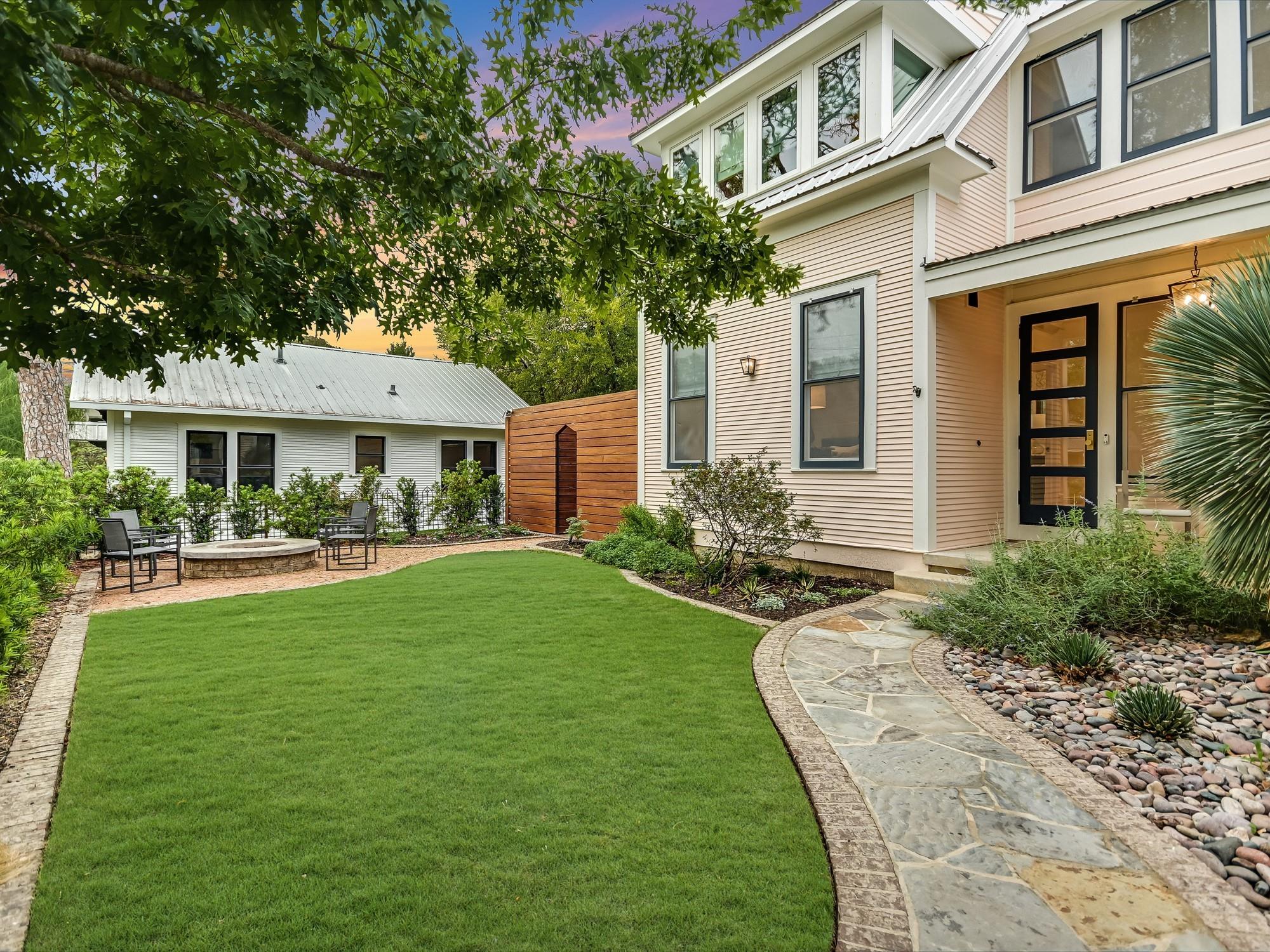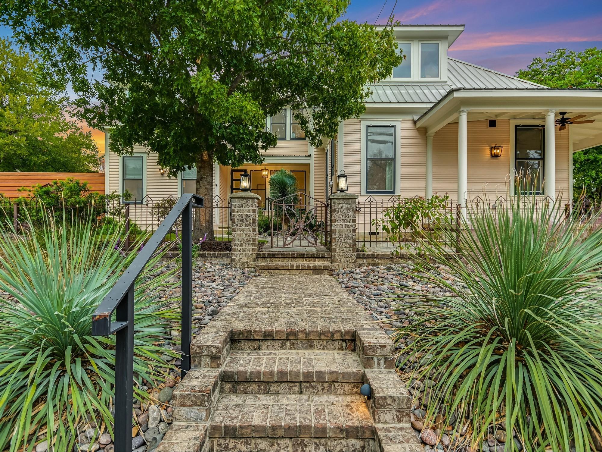 MAIN HOUSE : 3 bedrooms, 2.5 bathrooms, 2,195 sqft (floorplan) GUEST HOUSE: 2 bedrooms, 1 bathroom, 904 sqft (floorplan) This beautiful Old West Austin Victorian home has been meticulously updated and enhanced with the luxuries of today's lifestyles, while still maintaining its vintage 1905 character. Poised on a corner lot with city views from the wrap around porch, this charming home is a treasure located just steps from the fabulous West Austin Park. The main level includes a spacious living room, gourmet kitchen, a formal dining room and the primary bedroom suite. The upper level includes two secondary bedrooms, a full bathroom, and loft space. As a continuation of the historic charm and uniqueness of the property, there is an entirely independent guest house. The inviting home with clapboard walls has a living room with a fireplace, a stunning full kitchen, two bedrooms and a full bath. Fully gated, the yard has a fire pit area and an outdoor kitchen. There is also a 2-car covered carport and outdoor storage. Both impeccable homes create a true treasure in this urban neighborhood.