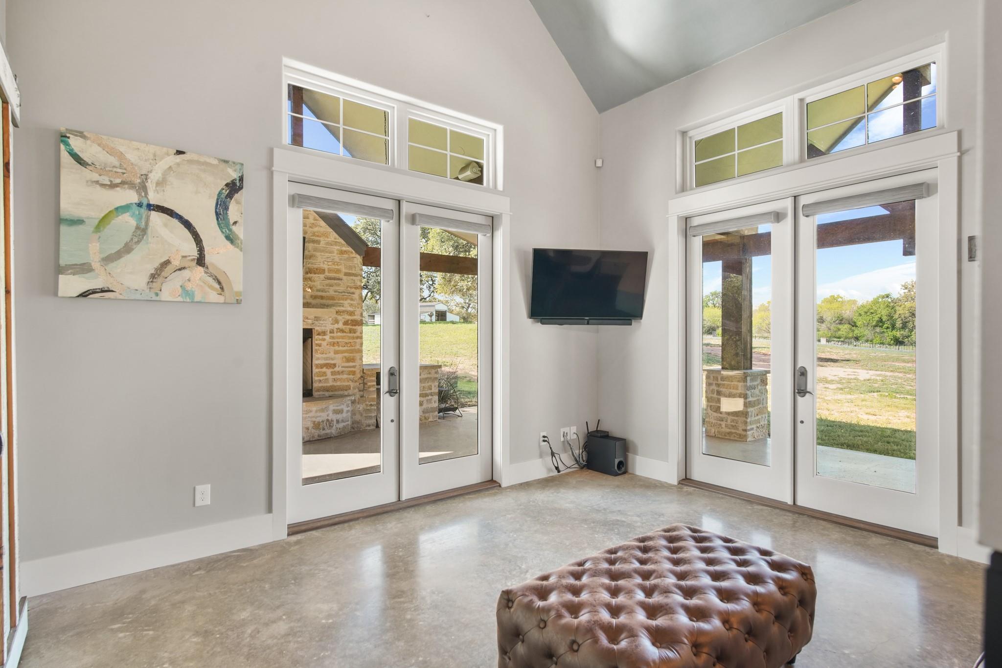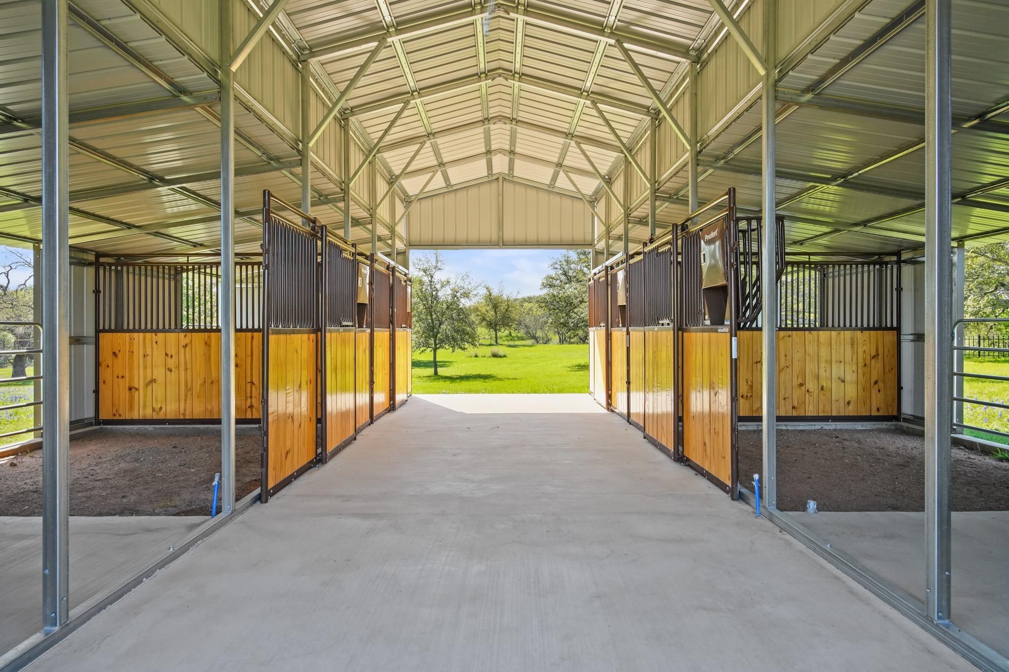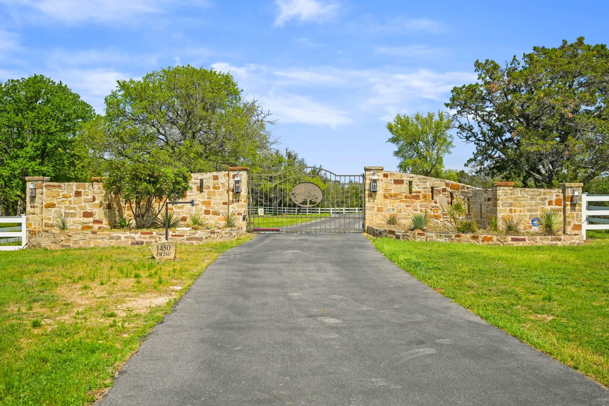 Luxurious Lakefront Horse Ranch Retreat! Nestled on the tranquil shores of Lake LBJ, this breathtaking Gated 20-acre +/- estate offers an unparalleled blend of luxury living and equestrian paradise. Boasting stunning Lake and Hill Country views, this meticulously crafted property is a haven for those seeking ultimate serenity and sophistication. Key Features: Custom-built 2 Bedroom/1-Bath Stone/Brick/Hardiplank Home with High Ceilings, Stained Concrete Flooring, Leathered Granite Countertops, Stainless Steel Appliances and Custom Wrap-Around Patio with Fireplace! Newer 4 Stall Horse Barn with Tack Rooms and Electric! Perfect for Equestrian Enthusiasts and Horse Lovers! Newer Insulated Workshop with Electric, Ideal for Hobbyists or Those Needing Additional Workspace! 2 Ponds and Partially Cleared/Partially Wooded Land! Tranquil Natural Beauty Surrounds the Propert!y! Two Slips in Community Marina...One for a Boat/One for Two Jetskis...comes with this Home! Easy Access to Enjoy Lake Activities and Waterfront Living! Mature Trees, Manicured Grounds with Bluebonnets and partial Sprinkler System. Enchanting Landscape Perfect for Outdoor Entertaining and Relaxation. Propane Tank and Security System Ensuring Safety and Convenience for Your Peace of Mind! With approximately 95 feet of Lakefront and a private dock with electric, every day is a lakeside retreat! Whether you're unwinding on the patio, exploring the vast grounds, or indulging in water sports, this property offers the ultimate in lakeside luxury. Don't miss the opportunity to experience this slice of paradise! Schedule your private showing today and discover the endless possibilities awaiting you at this remarkable Lake LBJ waterfront estate.