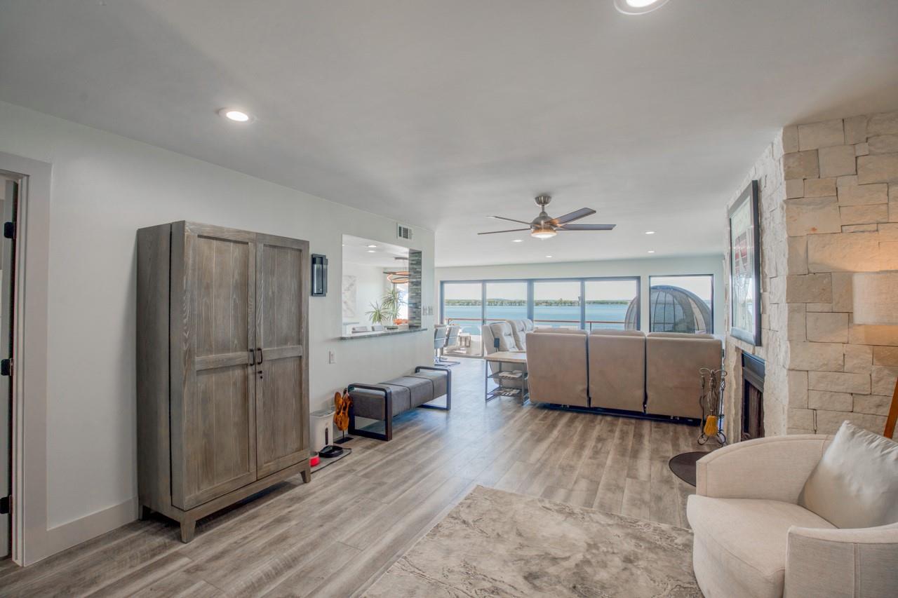 East-facing waterfront townhome with amazing views of the Horseshoe Bay Lighthouse. This home features over $350,000 in updates, including new interior and exterior paint, stucco, flooring, appliances, granite counter top and tile backsplash, stucco exterior, redesigned entryway and front door, new sliding glass doors, deck, hydraulic boat lift, and more. Move in, relax, and enjoy! Located within a gated community walking distance to the Horseshoe Bay Yacht Club, this is resort living at its best! Walk to the resort spa, marina, and Waterfront restaurant. Buy now and enjoy fireworks over 4th of July weekend, as well as spectacular moonrises. *Membership required to enjoy resort amenities. Furniture negotiable with a great offer.