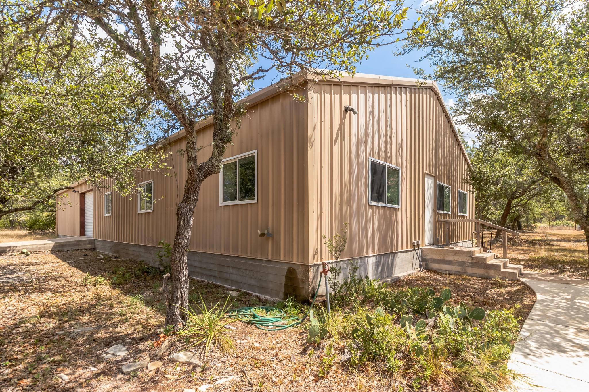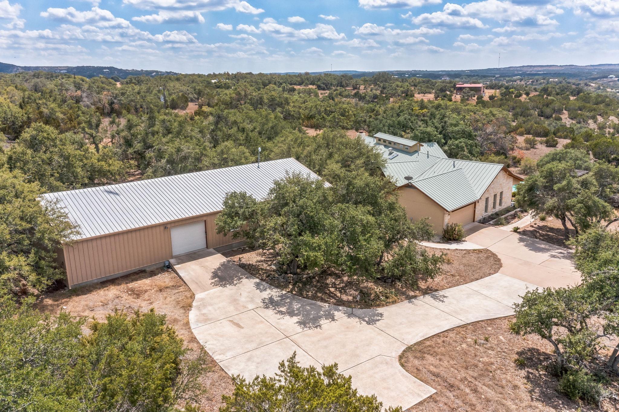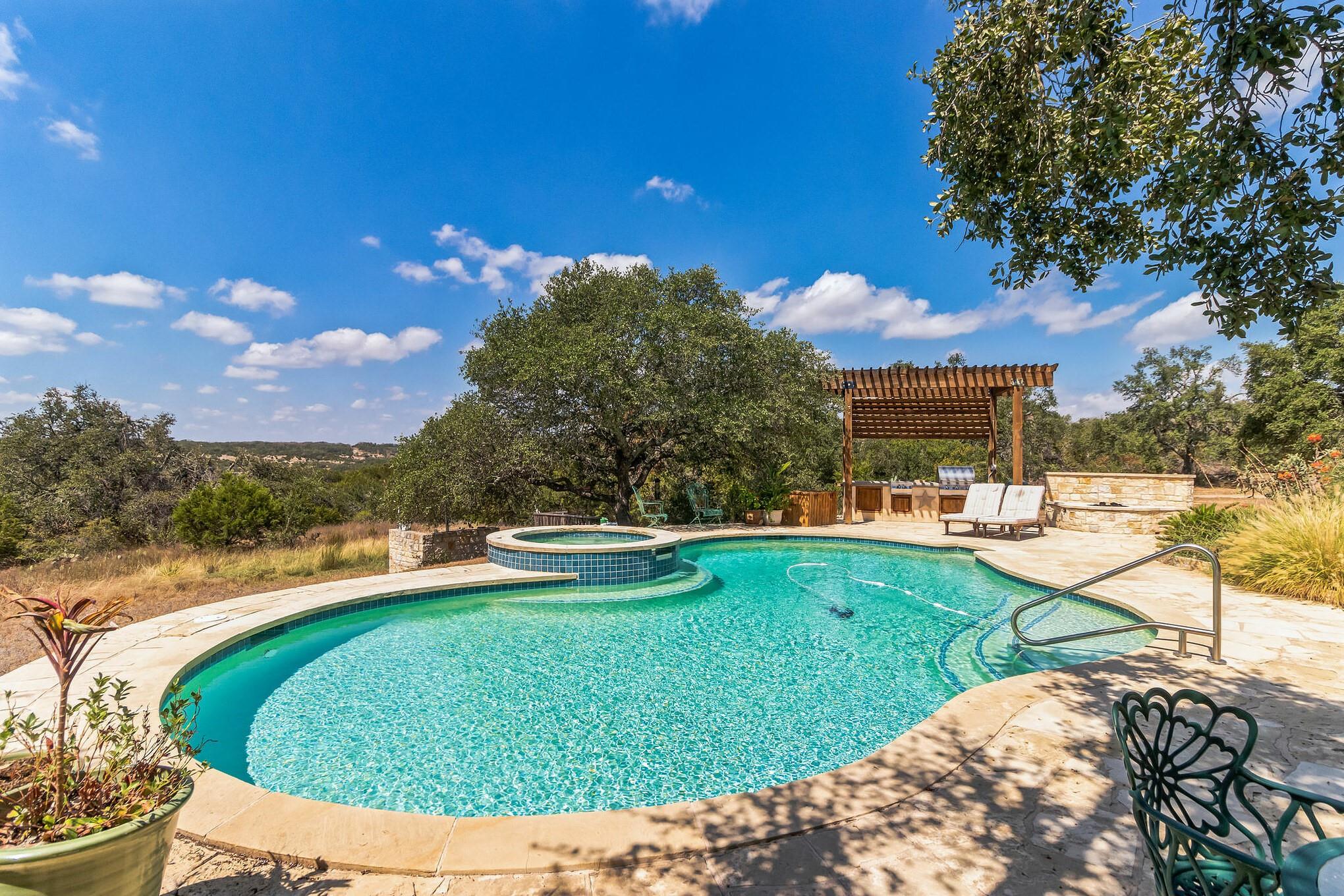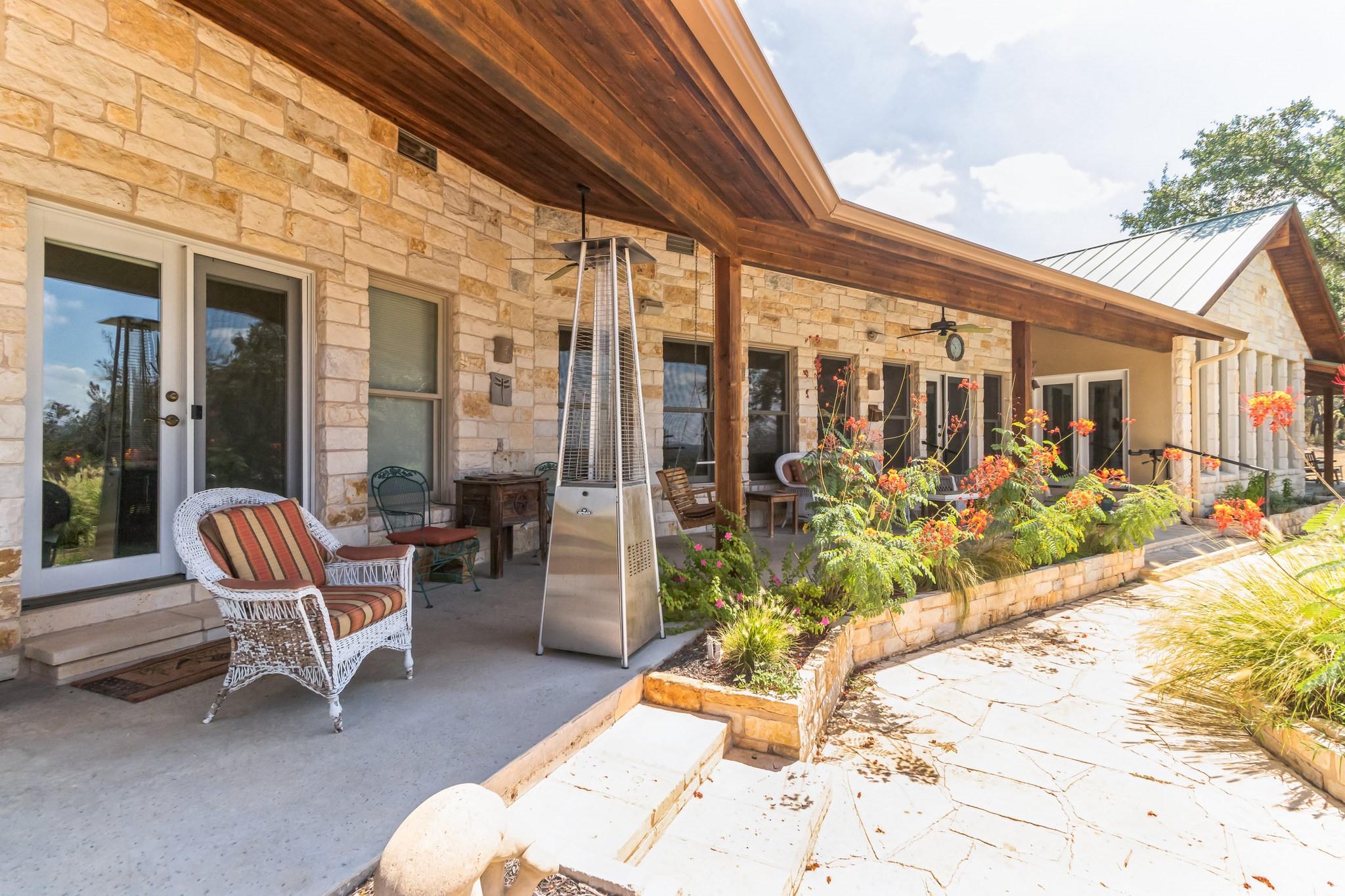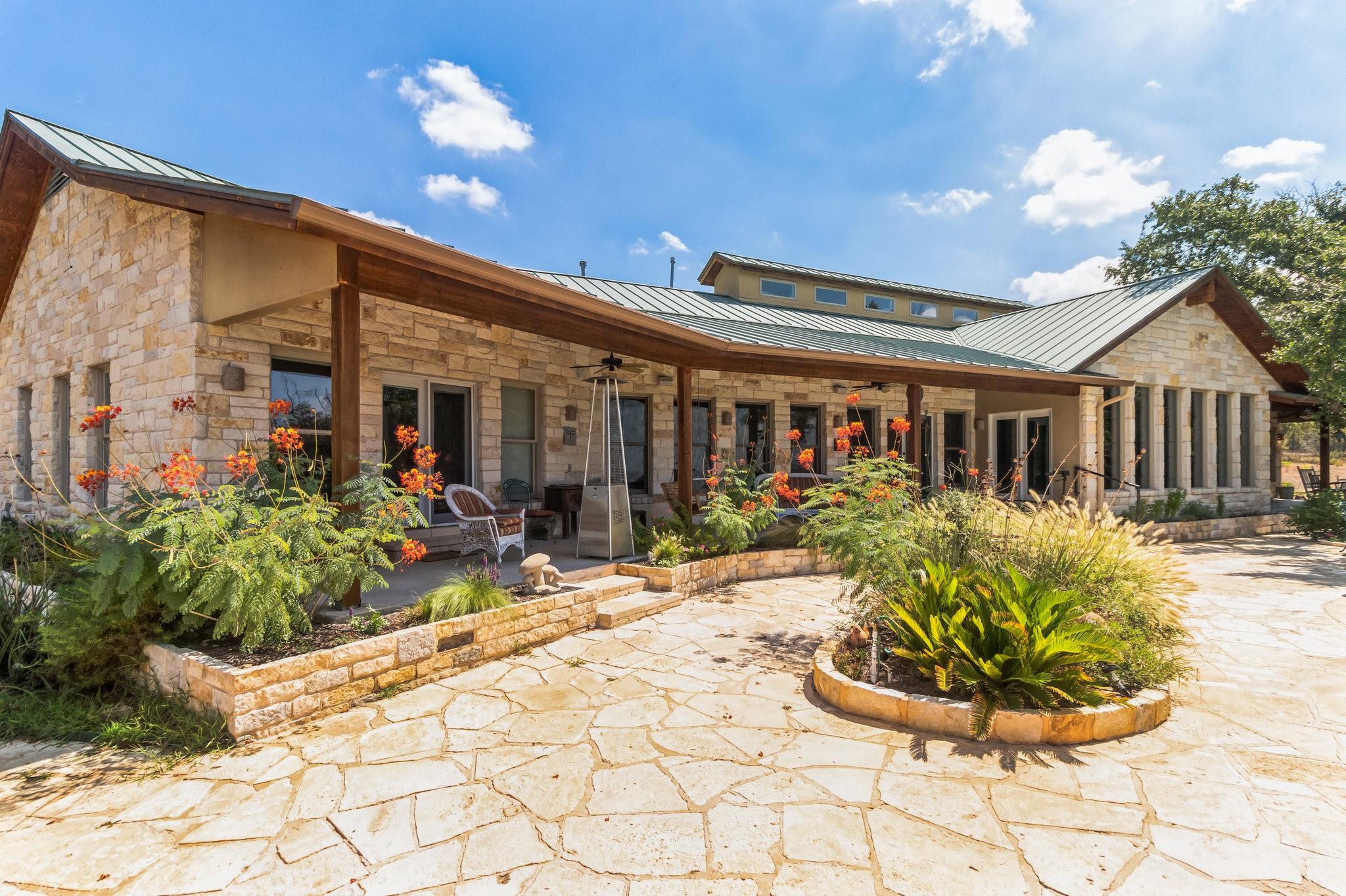 GREAT PRICE IMPROVEMENT! Incredible Hill Country Retreat w/ Picturesque Panoramic Views… gorgeous home w/ extensive upgrades. All on 27.41 acres with a wildlife/ag exemption in place inside the gated subdivision of Hidden Creek. There are 13.08 acres in Hays County and 14.33 acres in Blanco County. Includes a 40' X 80' Barndominium of which 1600 sf is heated and cooled per seller. The Barndo has 2BR/1BA/ plus large office along w/ a full kitchen & living area. The other area has 1600sf of workshop with 220V, lots of workspace, storage and a large commercial duty exhaust fan on the back outside wall to suck the heat out. The Main Home is stone veneer with 3BR/2.5BA/2GA, 2 Dining Areas, a wonderful over the top Gourmet Kitchen w/ stainless steel appliances. All open to a large great room w fireplace. Approximately 3400 sf per seller. Very private & relaxing country living environment. Great recharging get-away and excellent recreation property w sparkling inground resort style pool & waterfall w stone walkways, firepit, grilling area & large covered patios. Wildlife abundant. Comes with a high fenced-deer proof garden w irrigation too. All of this is in the highly sought after gated community of Hidden Creek and just 15 minutes from Dripping Springs. This also makes for a great STR with a good return.