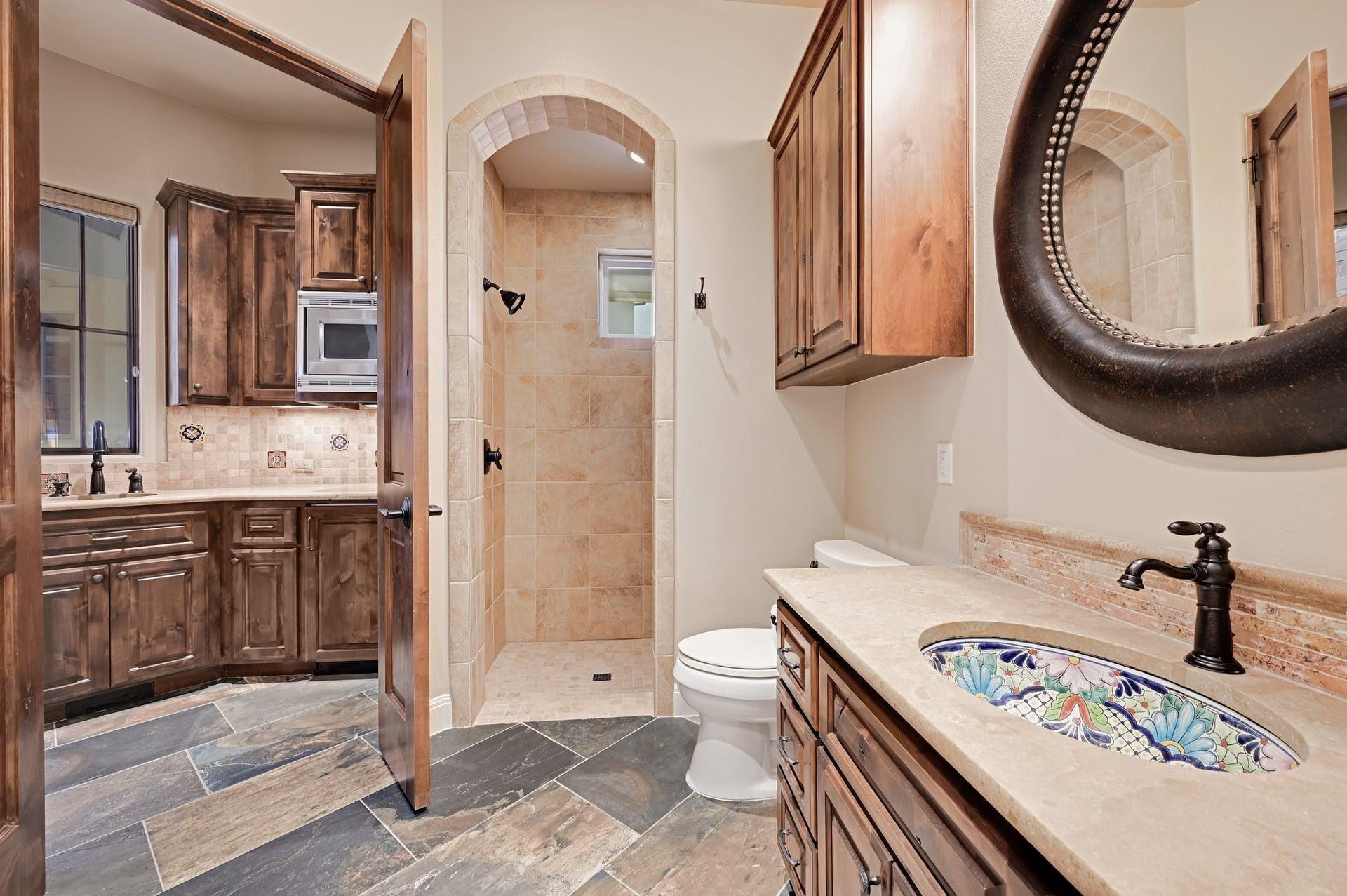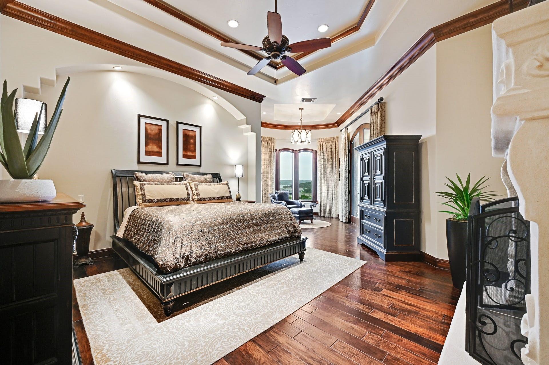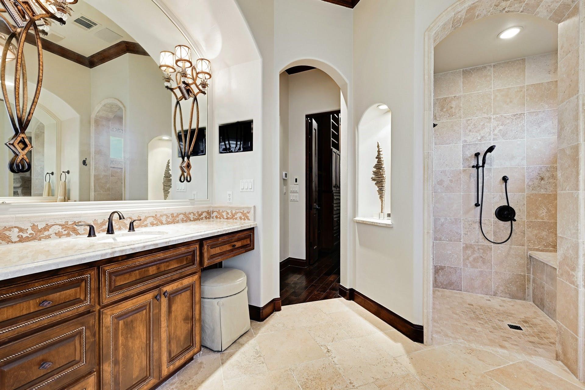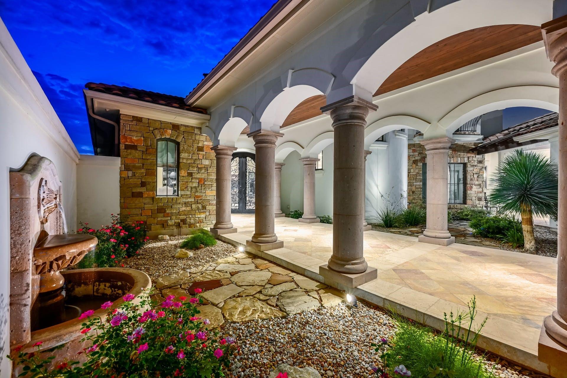 Welcome to Waters Edge, an exclusive enclave of Rough Hollow. Tucked away on a peaceful cul-de-sac, close to the yacht club, this extraordinary estate epitomizes Lakeway luxury. With an impressive architectural statement, this property offers canyonside sunset views of Lake Travis w/ an unparalleled connection to resort living. Sprawling across a lush .47 ac that is surrounded by over 100 acres of scenic canyon trails. The outdoor retreat is a masterpiece in itself, featuring a resort-style infinity edge pool/spa that opens to wooded landscape and sunsets which adds an element of serenity to the surroundings. Don't miss the sports court where you can perfect your free throws! You will always have special accommodations for your favorite guests in the separate guest casita which features a full bath and kitchenette. Executive office on the main floor with separate study space. Take the grand staircase or elevator to the upper level where you will find a living area with a bar, a second laundry area, and a game room with panoramic views. Sterling Custom Homes was retained to construct this impressive 6300+ square foot estate. The soaring ceilings adorned with magnificent wood beam ceiling treatments create a sense of expansiveness, while the open kitchen design becomes a focal point for gatherings and hosting special occasions. The island kitchen is equipped with SubZero and Wolf appliances. The residence offers three distinct living areas - an open living room, large game room with wood trimmed ceiling, and a comfortable family room - each contributing to the tapestry of luxury living and featuring lake views. Security is paramount, and this estate features security gates and the entry breezeway and motor court that leads to the 3 car garage. In summary, this Rough Hollow estate combines timeless elegance with modern conveniences. It's a symphony of luxury, privacy, and natural beauty, offering an unparalleled lakeside lifestyle for those who demand the very best.