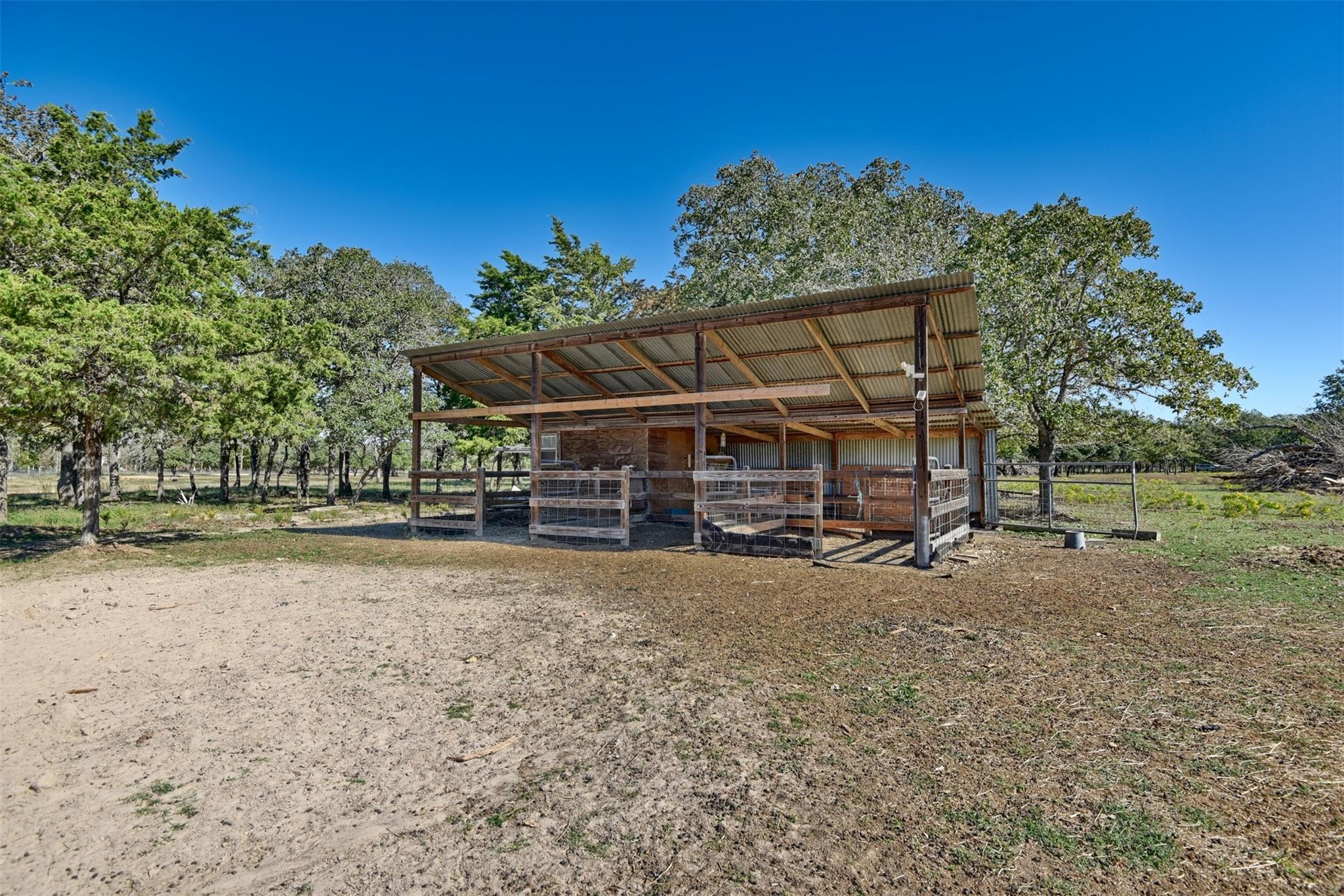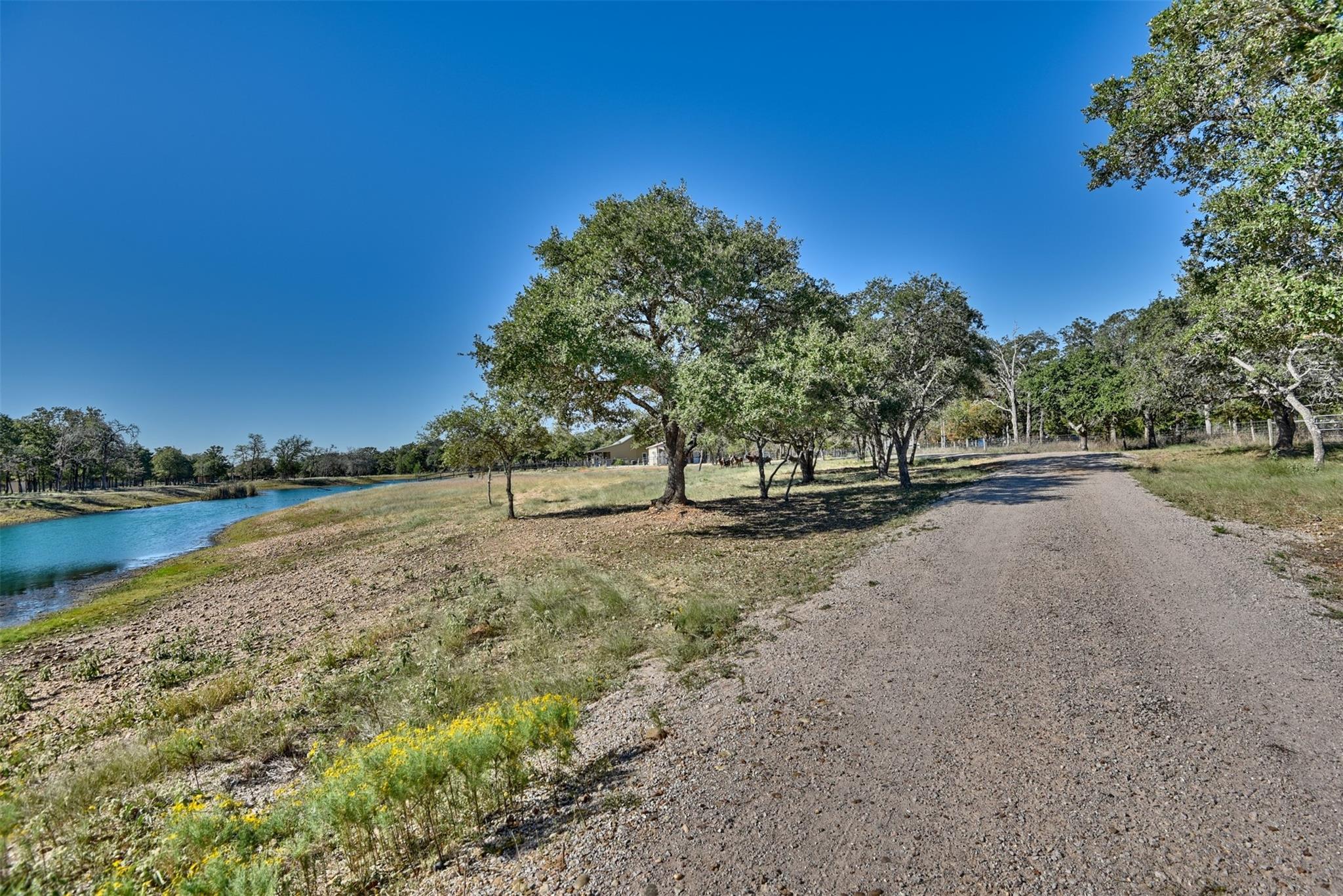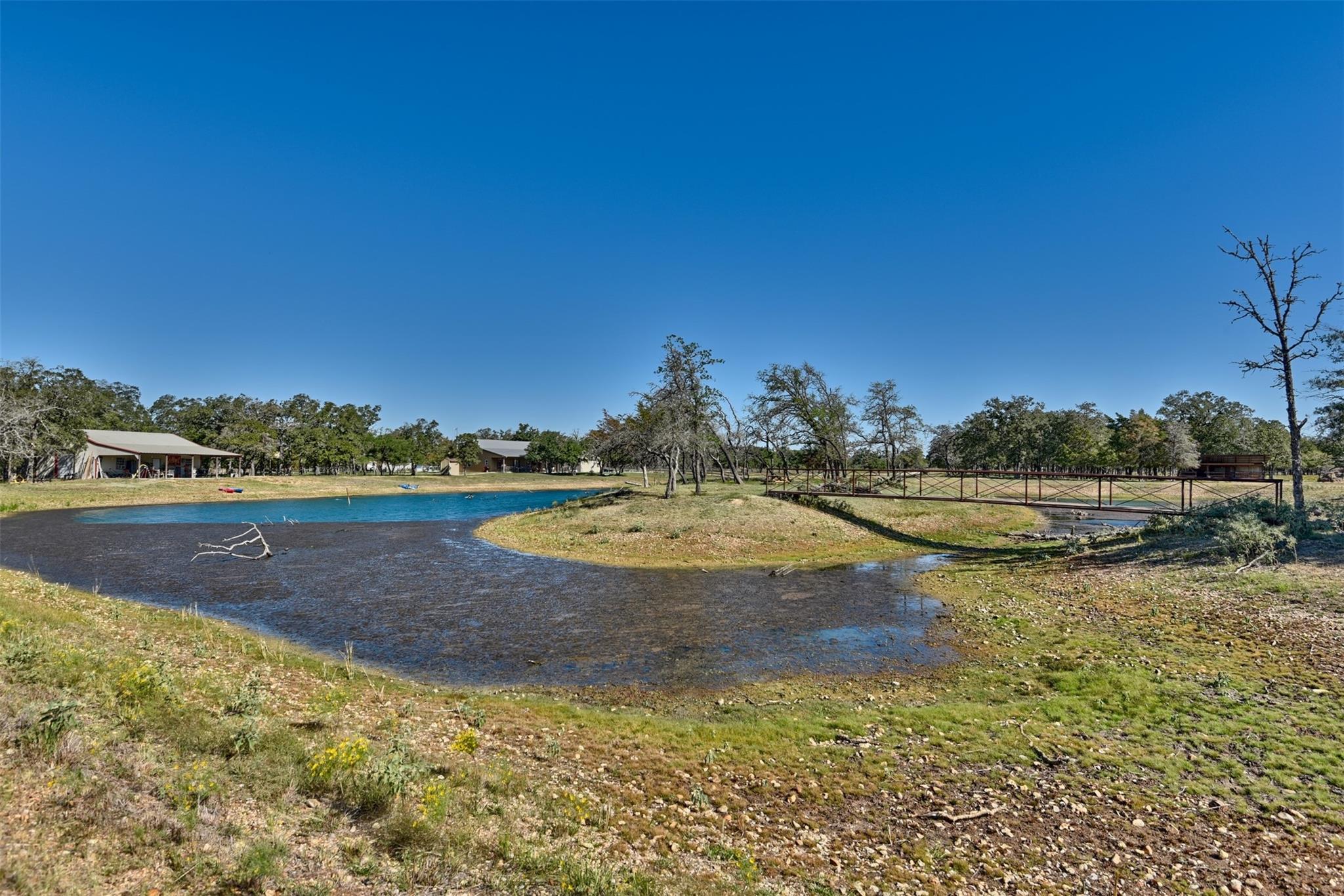 Welcome home to this small farm on 13 +/- acres on the highly sought after Round Top Road, on the South side of highway 290 and only 6 miles from downtown Round Top. The main house consists of three bedrooms, two baths with tall cathedral ceilings in the living and master bedrooms. Step outside onto a covered front porch where you can admire the gorgeous three-acre stocked pond surrounding an island is accessible by an iron/wooden walk-on bridge. A 644sqft building with two separate & cozy, efficiency cabins are located next to the main house and can be used for guests or rentals. The property also provides 3 (50 amp) dedicated RV spots in various locations. An additional electrical pole, and water well was added to the barn-side of the acreage, with a separate entrance. An added benefit, this property is AgExempt and crossed fenced with no known restrictions. A large shop is located toward the back of the property.