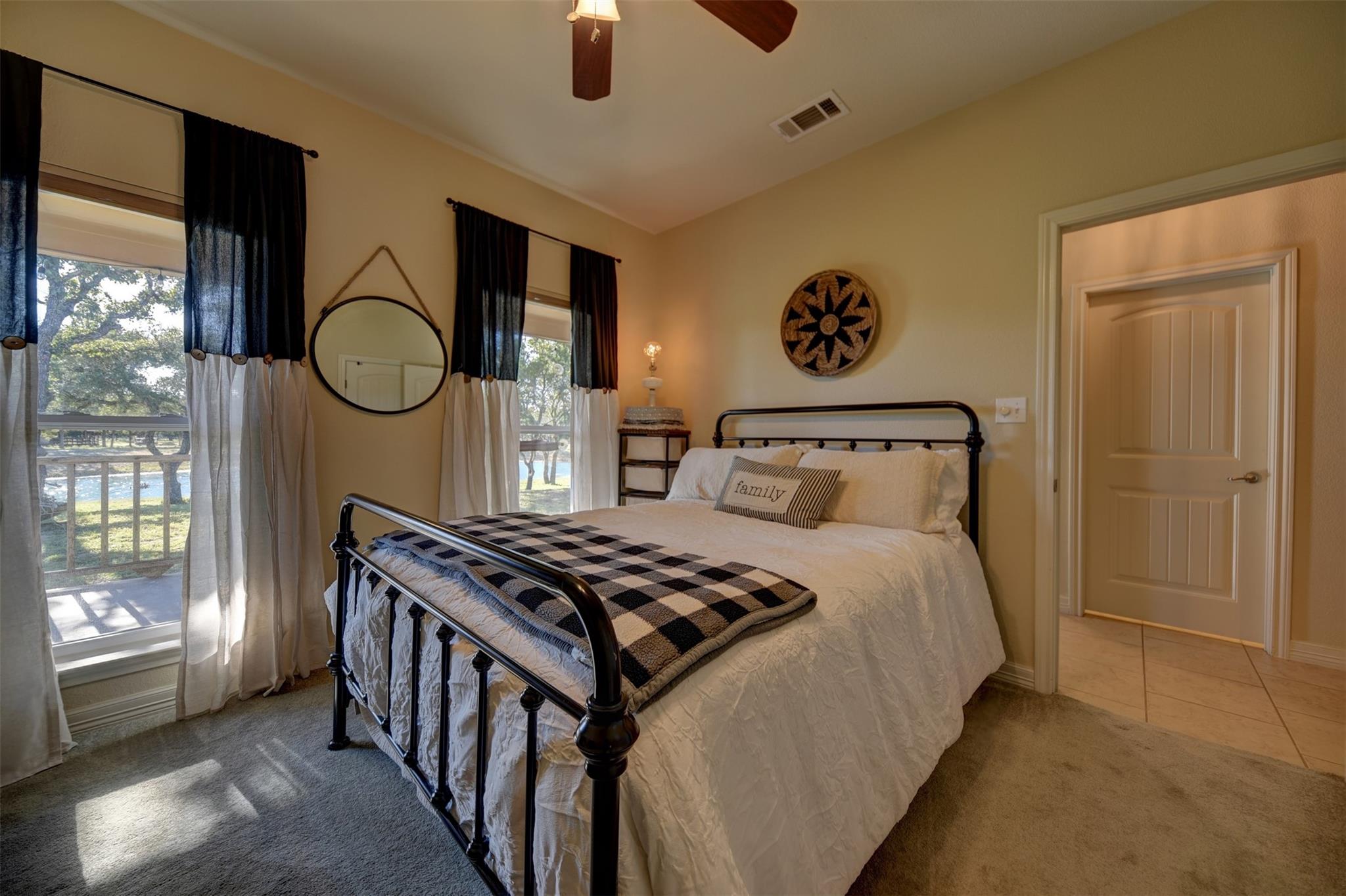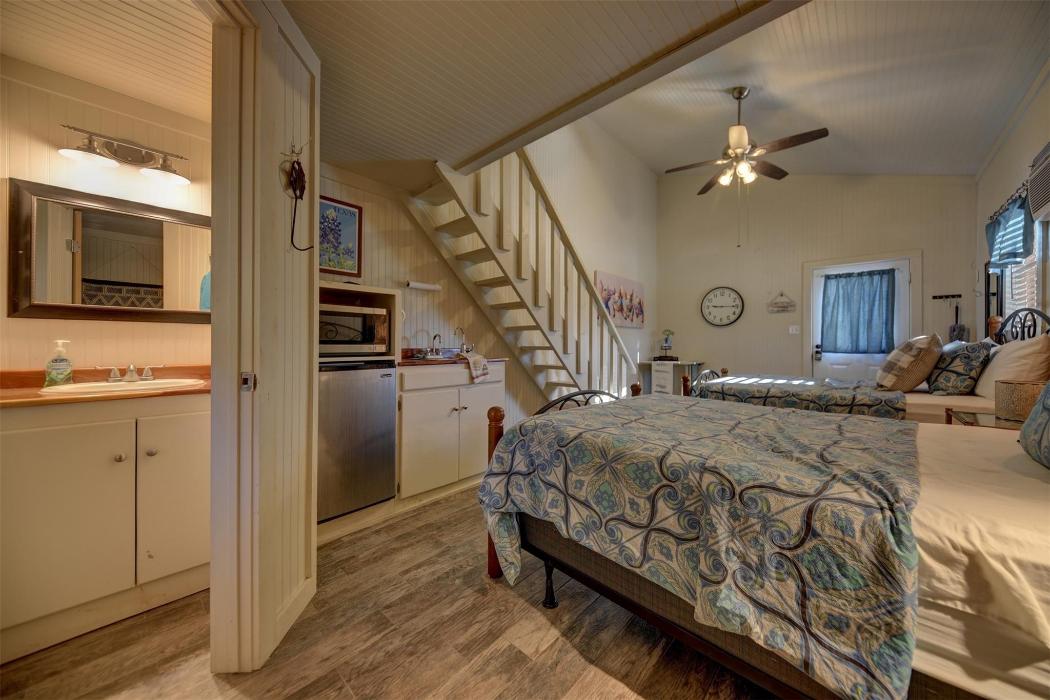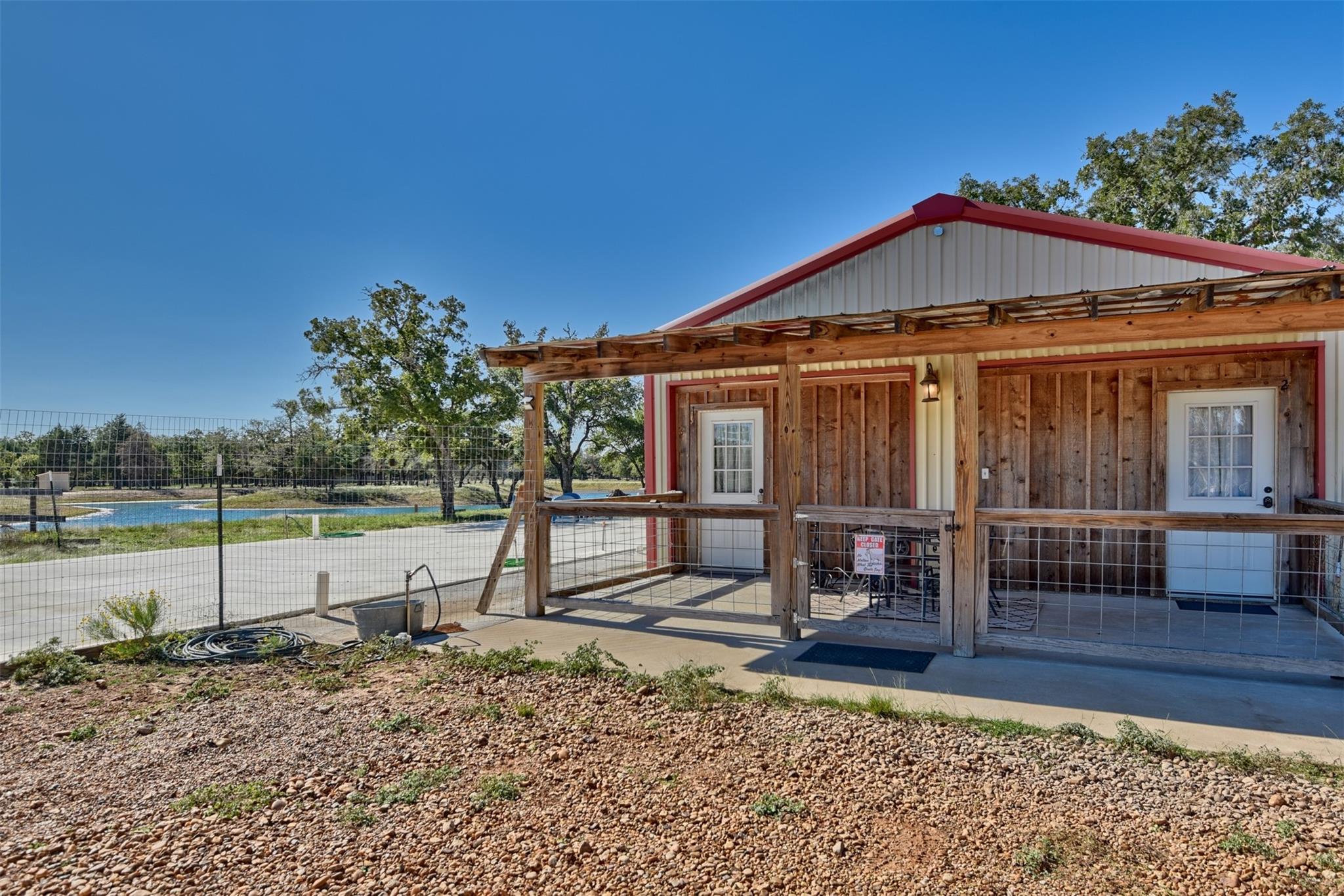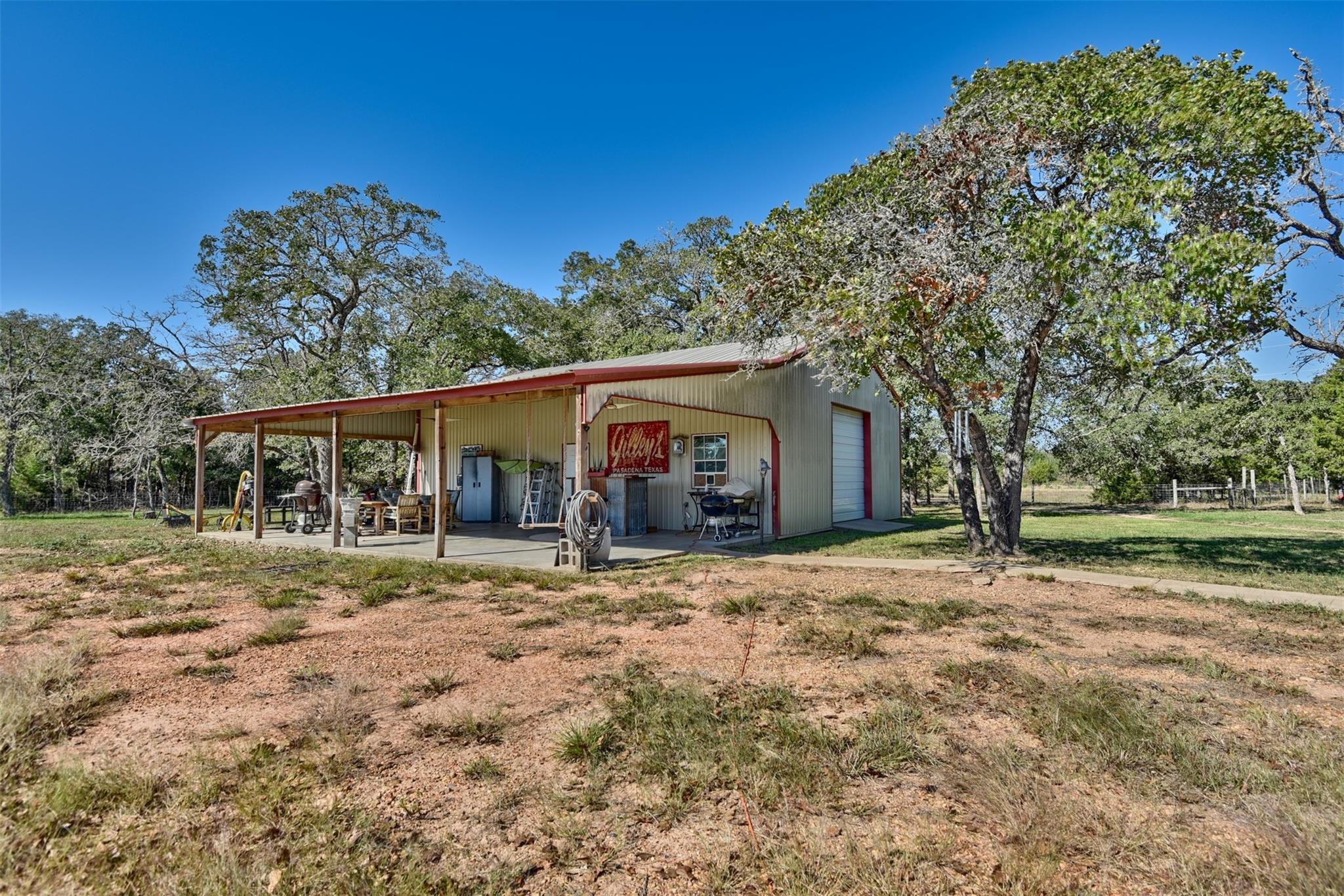 Welcome home to this small farm on 13 +/- acres on the highly sought after Round Top Road, on the South side of highway 290 and only 6 miles from downtown Round Top. The main house consists of three bedrooms, two baths with tall cathedral ceilings in the living and master bedrooms. Step outside onto a covered front porch where you can admire the gorgeous three-acre stocked pond surrounding an island is accessible by an iron/wooden walk-on bridge. A 644sqft building with two separate & cozy, efficiency cabins are located next to the main house and can be used for guests or rentals. The property also provides 3 (50 amp) dedicated RV spots in various locations. An additional electrical pole, and water well was added to the barn-side of the acreage, with a separate entrance. An added benefit, this property is AgExempt and crossed fenced with no known restrictions. A large shop is located toward the back of the property.