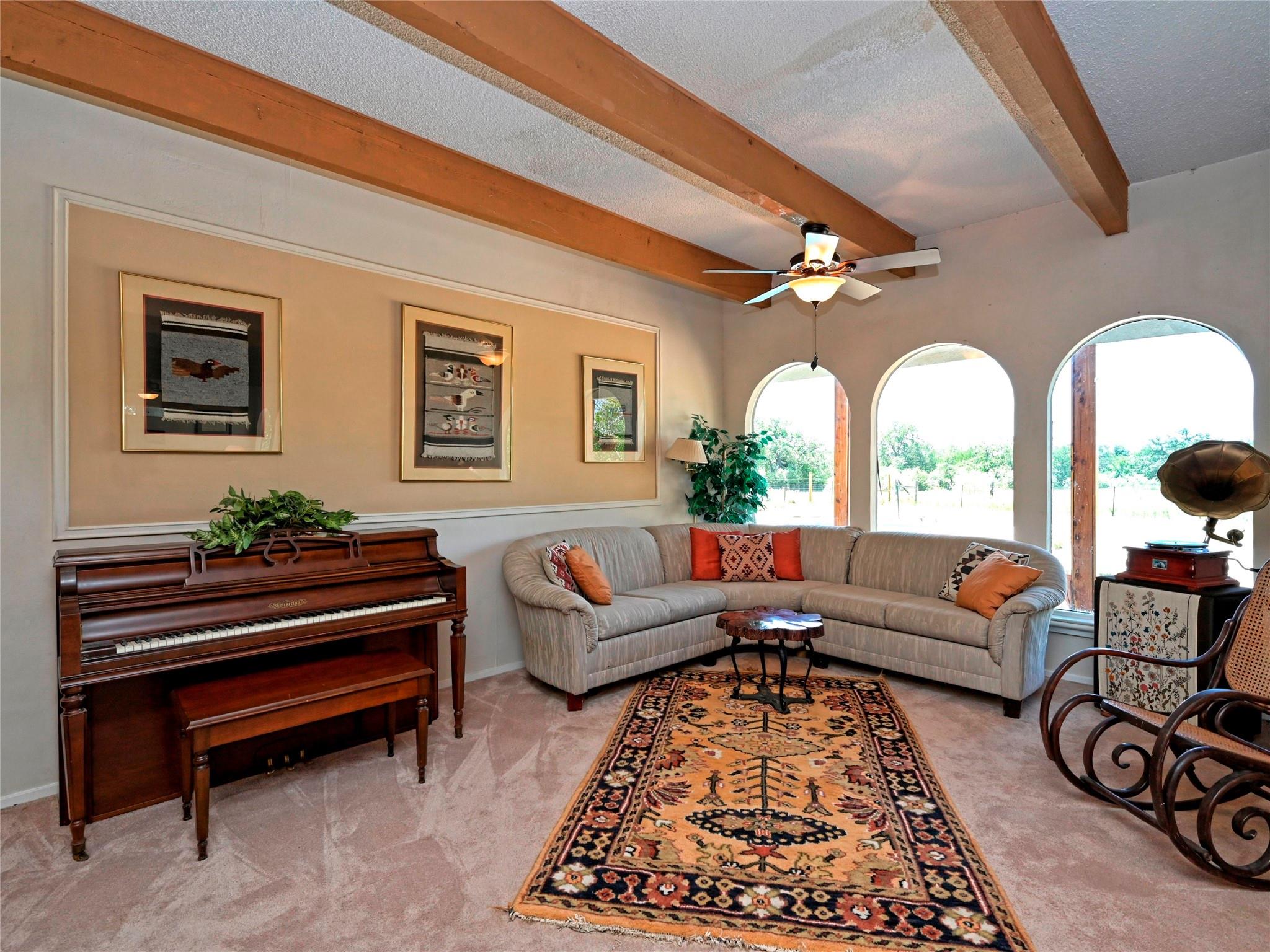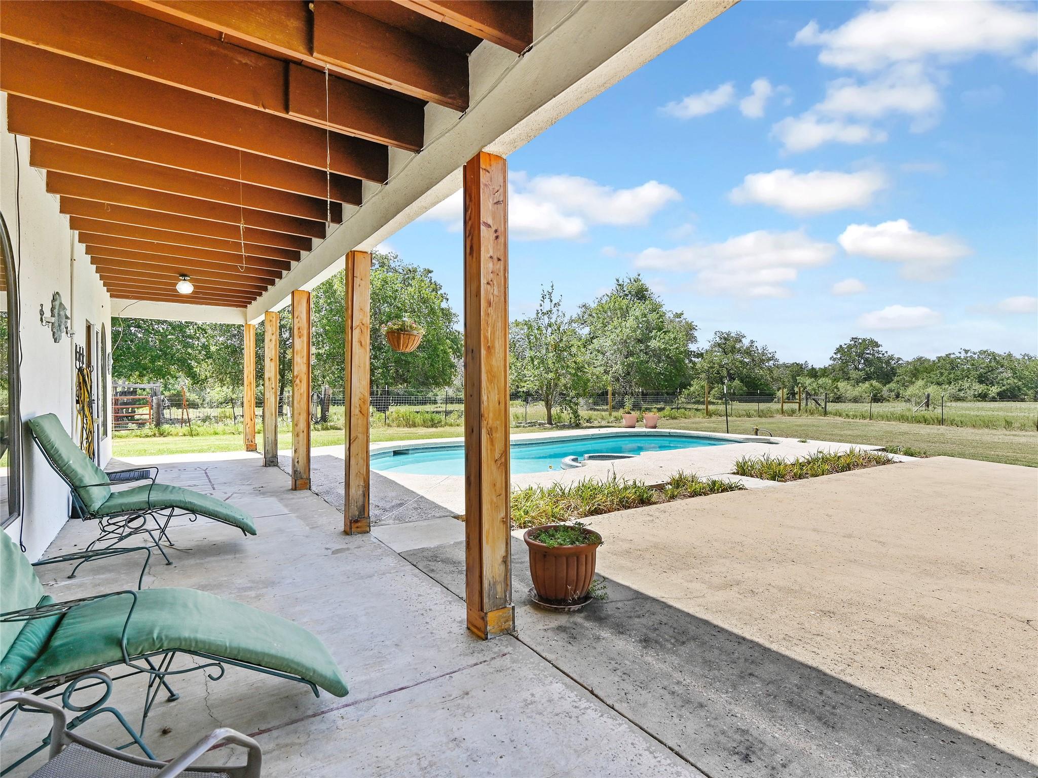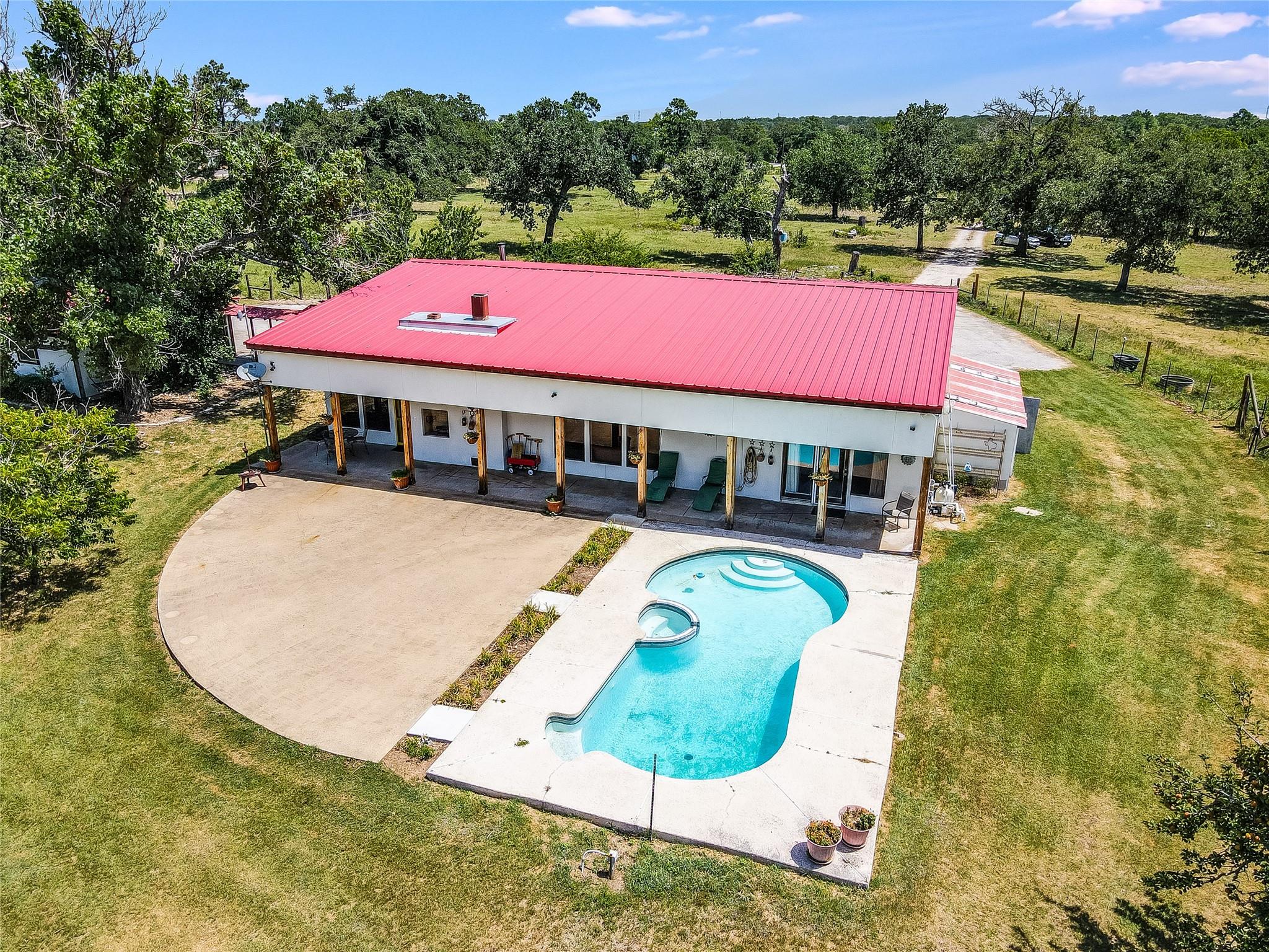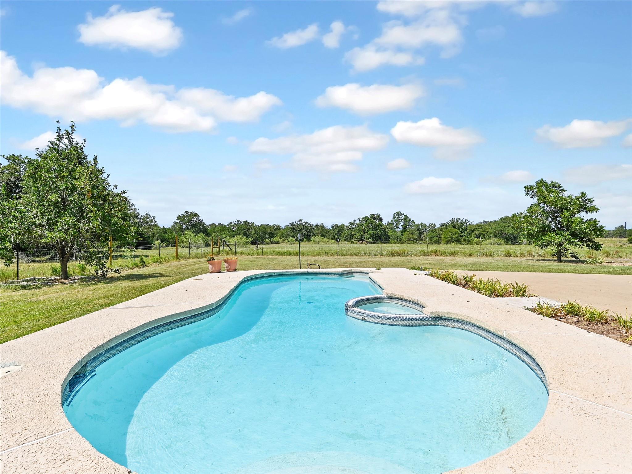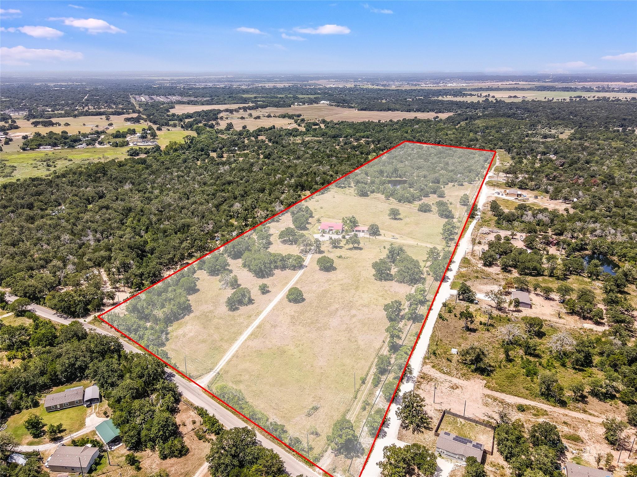 This parcel is beautifully situated on a bit of a hill~ is ready for development or your very own personal retreat. Only about 1.5 miles to downtown Bastrop. Nice stock pond in the back with many walking paths throughout the property. The home is open living space with a living area and a great office and 2 places for dining. The expansive living room windows leads right out to the pool. There is also a guesthouse with a separate entrance and an ADA bathroom. It consists of kitchen, living and murphy bed and a bathroom with a shower. Sayers Rd aka N. Main is road frontage, lots of potential development in the area.