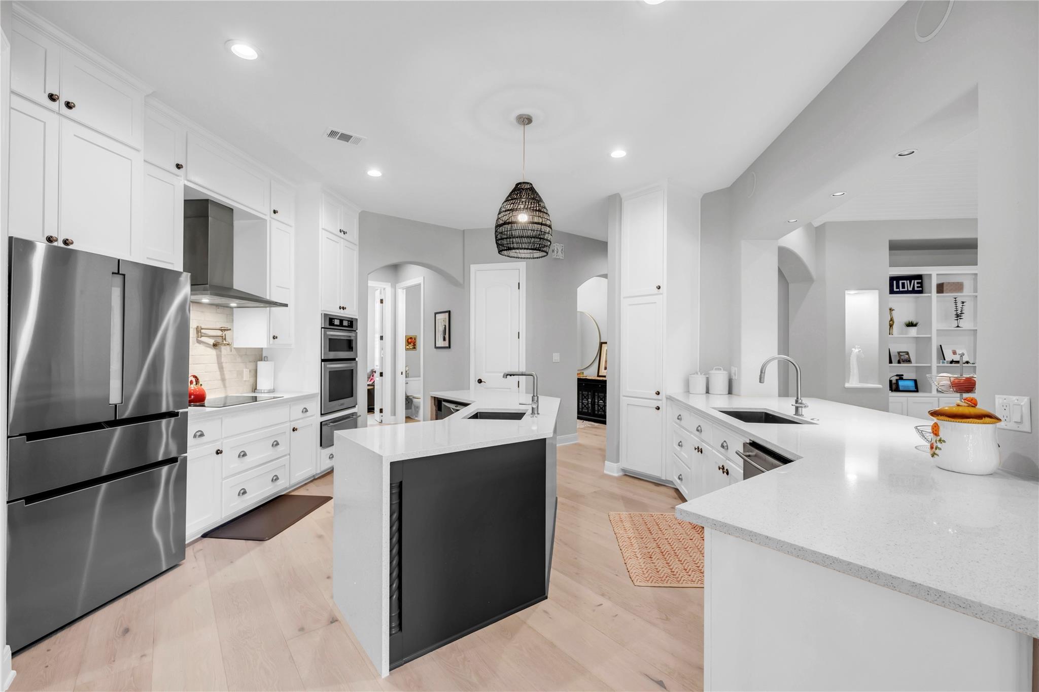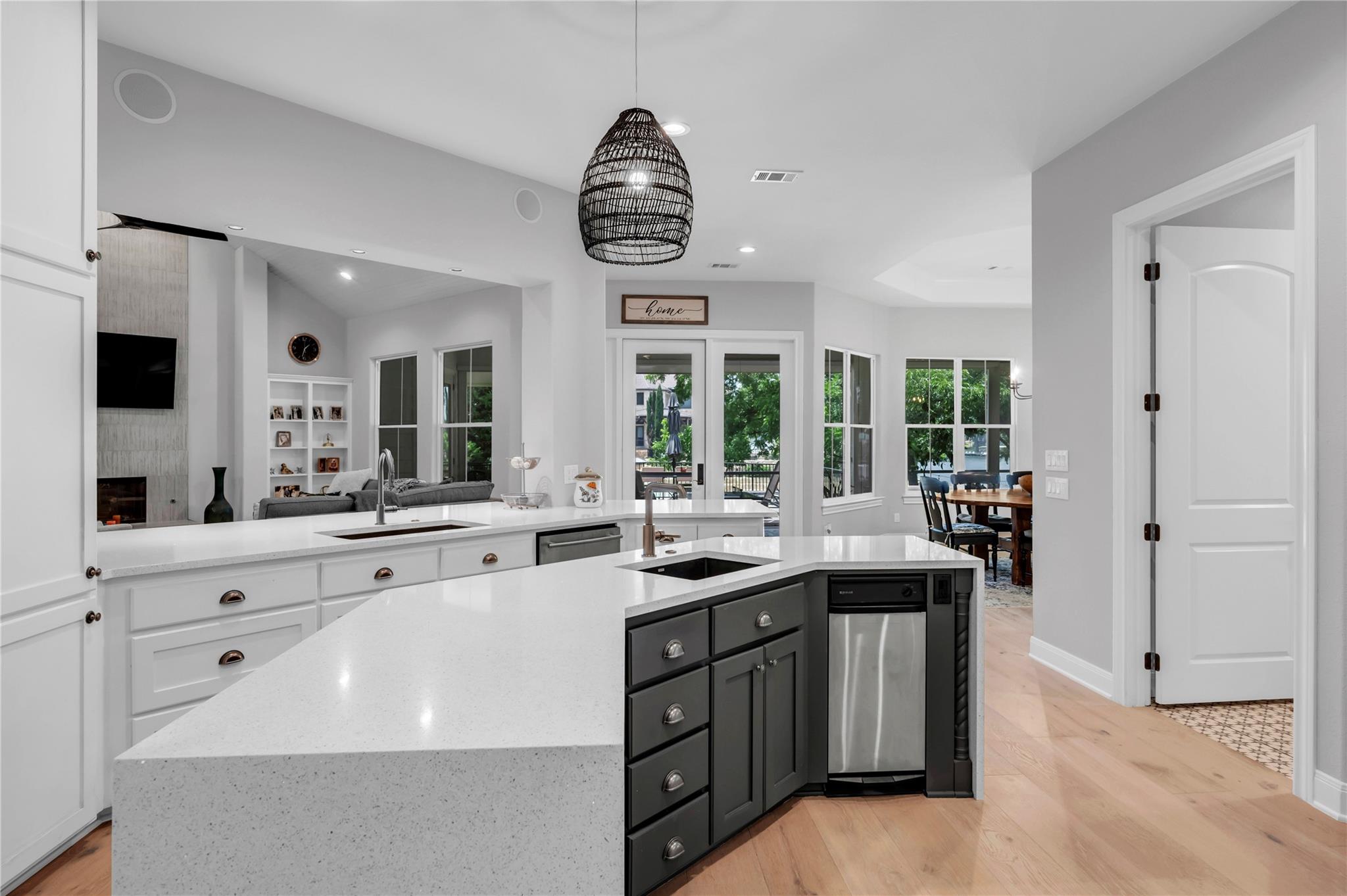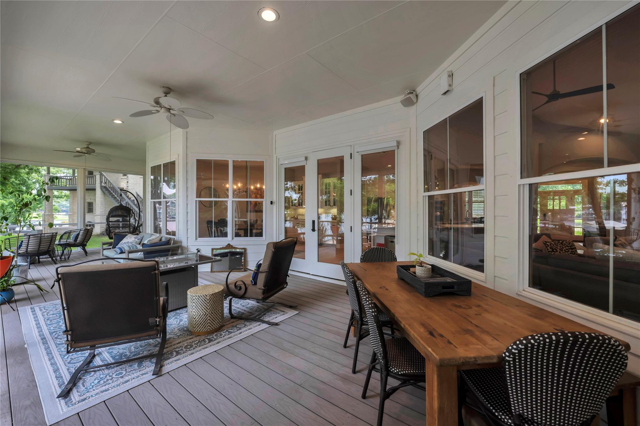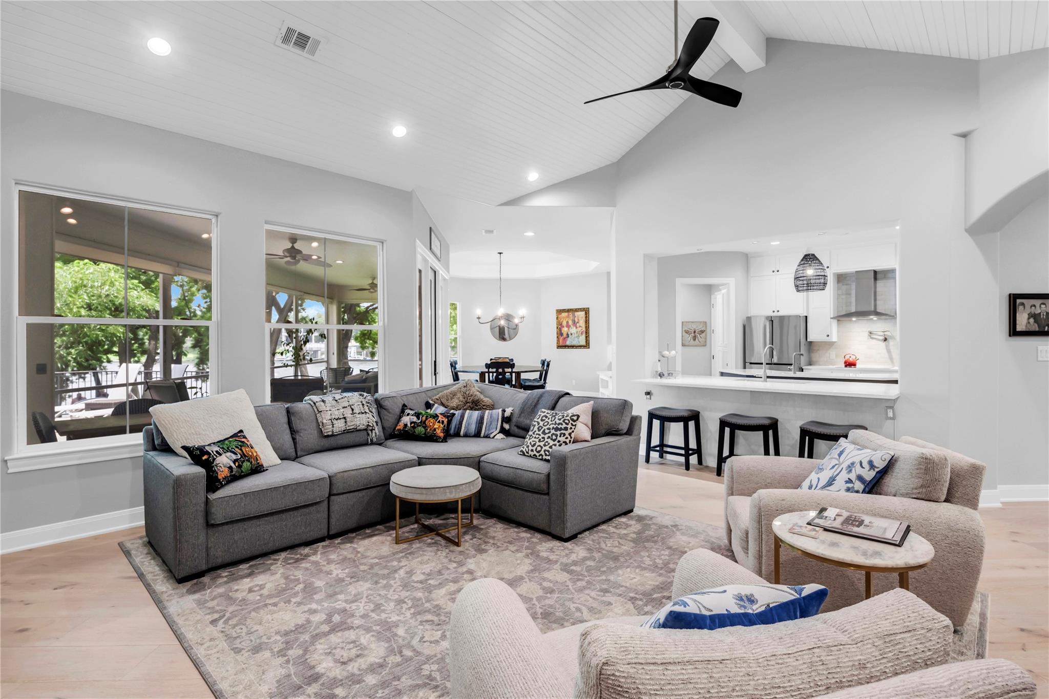 Welcome to your dream waterfront property at 311 River Ranch Road in the charming town of Kingsland. This stunning home boasts over an acre of beautifully wooded land, complete with majestic pecan trees and 150 feet of water frontage. As you enter the home, you will be greeted by an abundance of natural light and modern finishes, including a cozy fireplace and energy-efficient appliances. The gourmet kitchen is a chef's delight with double islands, granite countertops, and top-of-the-line stainless steel appliances including 3 dishwashers, a double oven & warmer, and a trash compactor. The home also features a temperature-controlled storage room for all your treasured decorations and items. This property is configured with 3 spacious ensuite bedrooms plus an office and bonus room that can easily be converted into additional bedrooms by adding a closet. (Septic is permitted for up to 5 bedrooms). The primary bedroom boasts a massive closet with built-in storage large enough for all your shoes! Enjoy the peaceful surroundings on the screened-in back porch to gather with loved ones in this special outdoor entertainment area. This home also offers a multi-car garage, ample storage space throughout, and custom-built ins. Located in a gated community on a quiet street, this property offers the perfect combination of safety, privacy, and scenic surroundings. Conveniently located near entertainment and recreational activities, this home is perfect for families looking to enjoy lake time in a close in community.