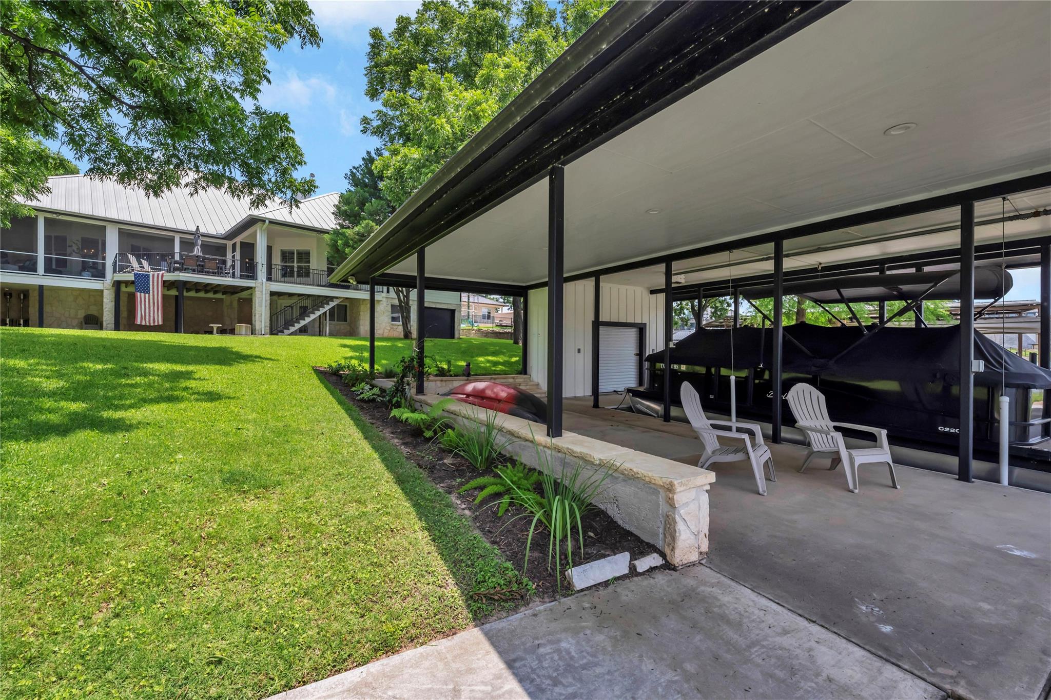 | Exterior Features | Boat Lift, Boat Lock, Boat Ramp, Boat Slip, Gutters Full, Private Yard | |