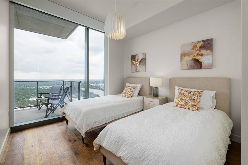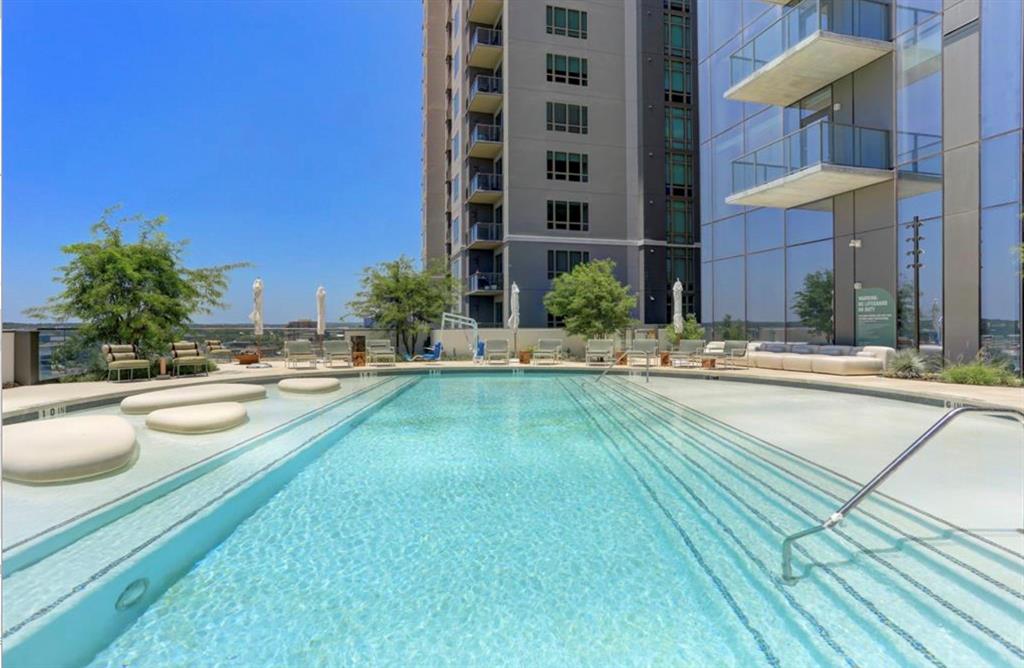 Uninterrupted lake views through its expansive ceiling windows offer an unparalleled living experience. It comprises three bedrooms, each accompanied by a full bath, and boasts an open-concept living space adorned with top-of-the-line kitchen appliances, exquisite quartz countertops, and a central island that serves as the focal point for both culinary and social gatherings. Convenience is paramount, with blackout and electric blinds, a dedicated laundry room, and the added luxury of two parking spaces. Nestled in close proximity to the Lady Bird Lake Hike and Bike trail, as well as the lively dining and entertainment options of Rainy Street, this property offers more than just a remarkable home. Residents also have access to a resort-style pool deck, a state-of-the-art fitness center, and a charming dog park, creating an all-encompassing luxury lifestyle.