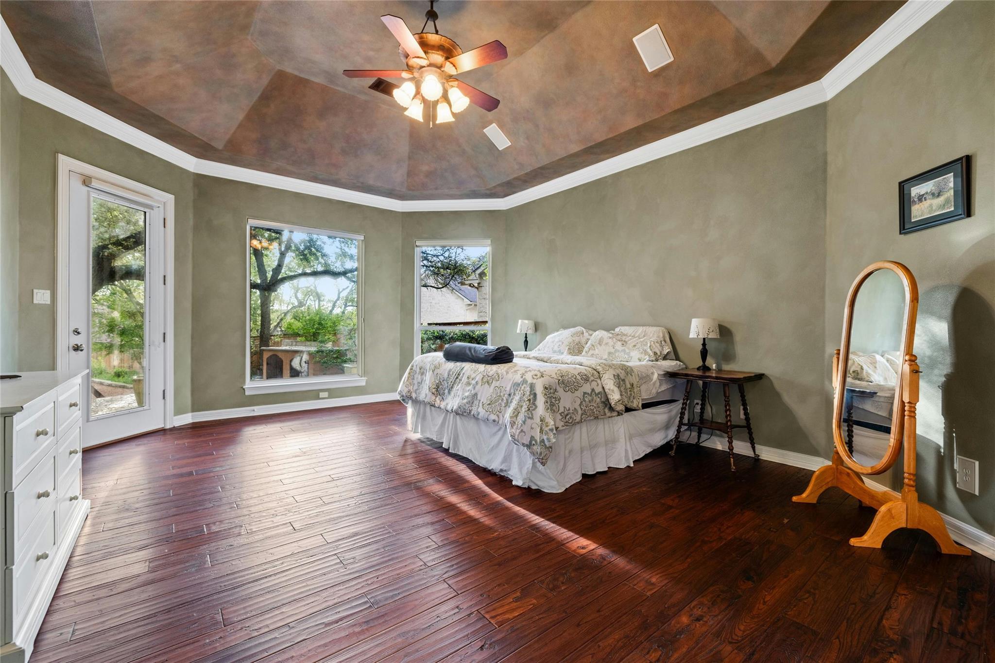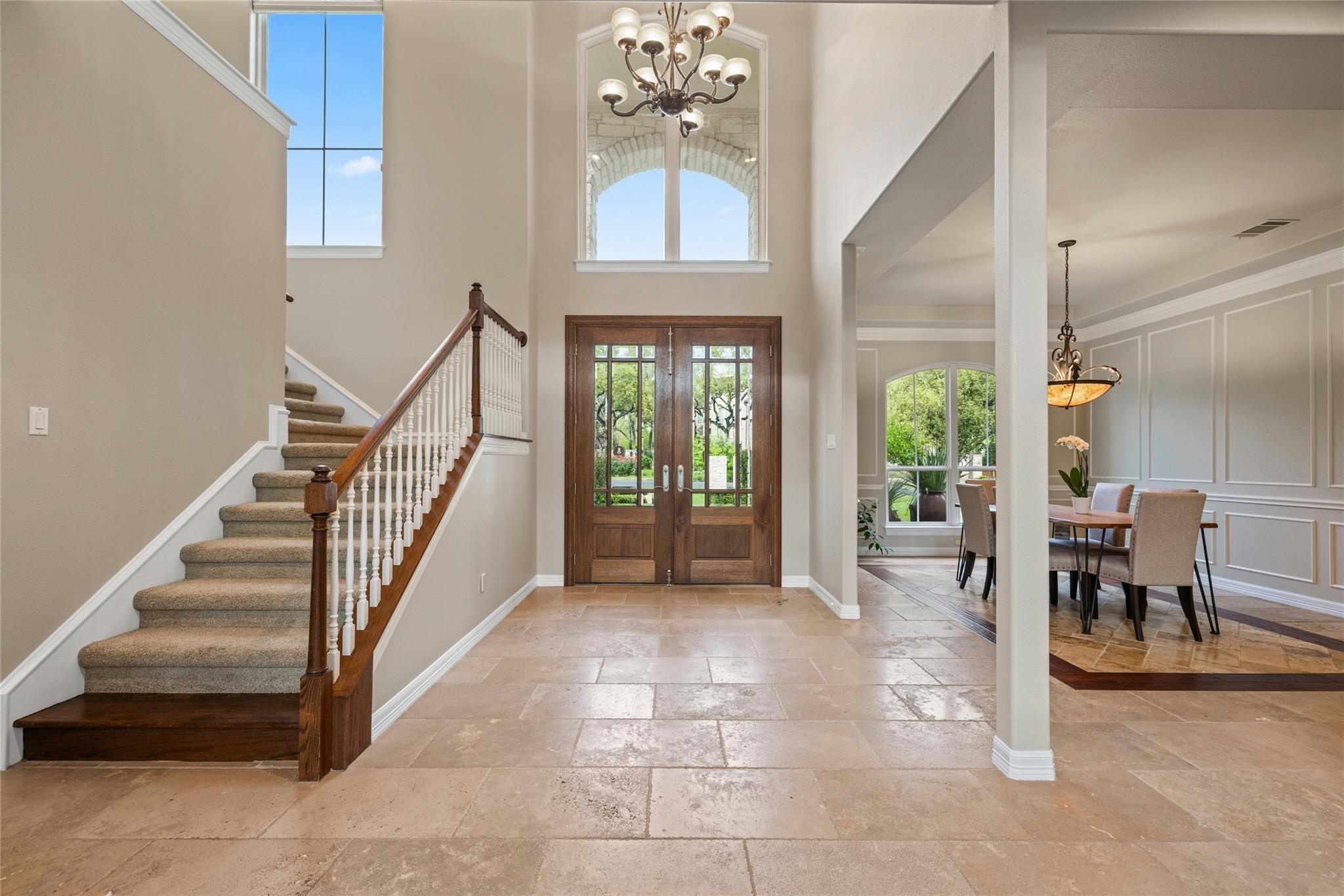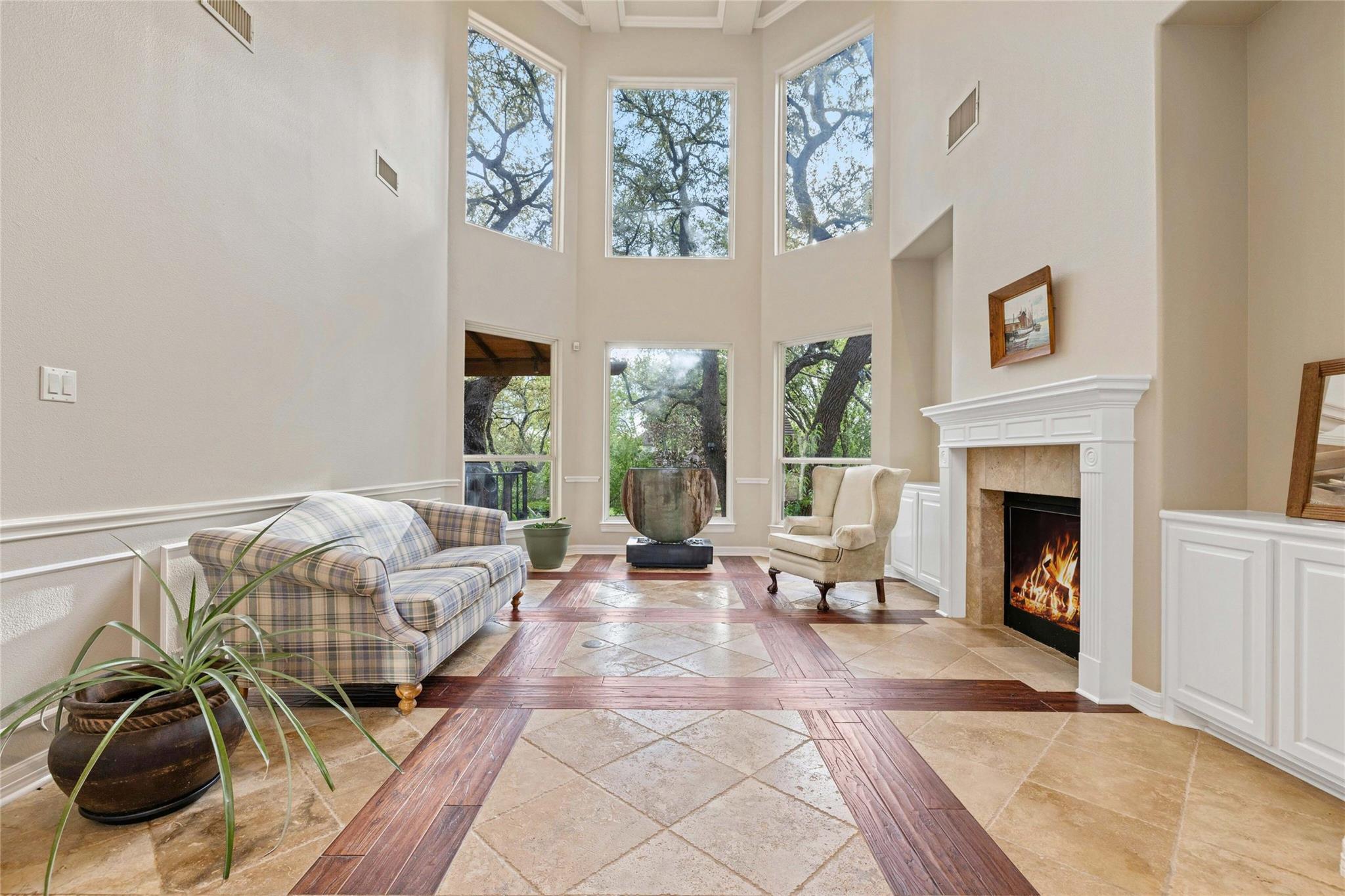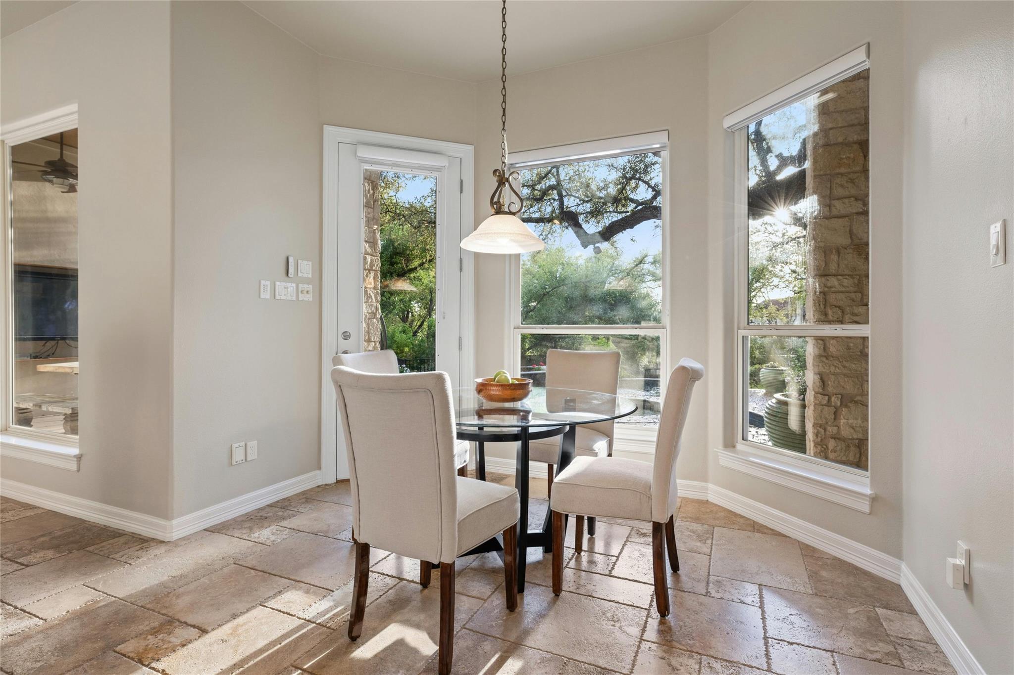 Experience the Bee Cave lifestyle! Nestled within the gated community of The Uplands, this fabulous home boasts a sparkling POOL, 4 bedrooms, 4 full baths, 2 half baths, a media room, and is on over half an acre. This is a rare gem that also offers ATTACHED guest quarters/5th bedroom, workshop, or secondary private office with PRIVATE entry and full bath. Timeless travertine marble floors with hand scraped wood accents pave the way through this cheerful and light-filled home. A double-sided fireplace adds warmth to both the private office as well as the main level secondary living space. The family room is also anchored by a gas log fireplace which is flanked by custom built-ins on either side and a wet bar for added entertainment. The oversized family room opens to the kitchen and casual dining space, all of which overlook the SPECTACULAR outdoor setting! The kitchen has recently painted white cabinetry and easy access to the outdoor summer kitchen with built-in grill. Outside, you will find a covered living area as well as an open space with enduring Ipe wood. Texas Live Oak trees and mature landscaping make the pool, spa, and water features feel like paradise in this SERENE and PRIVATE setting. The main level owner’s suite has a door leading to the outside for immediate access to the spa as well as a huge bathroom and closet. TWO sets of stairs lead to the second level with one set accessing the media room and music/craft room while the other set accesses three generously sized bedrooms and 2 full bathrooms. This home truly has it ALL but, most importantly, is in the most favored neighborhood in all of Lake Travis ISD. It is family friendly, gated, huge lots, LOW taxes, and incredibly convenient to local shopping, schools, and downtown.