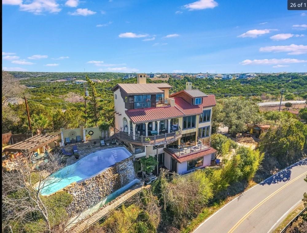 Escape to your private oasis with breathtaking views of Lake Travis at La Villa Vista! This stunning home offers panoramic views from every space, en-suite rooms, indoor/outdoor seating, wet bar, fireplaces, kitchen with stainless steel appliances, office/library, negative edge pool, and even a lower level apartment with its own full kitchen, living room, ensuite bedroom. Don’t miss your chance to own this one-of-a-kind property. The perfect entertainers home this summer or a wonderful space for events, a Bed and Breakfast, or Air B N B opportunity. Previously ranked in Top 10 B&B’s in Austin and a special space for events and weddings! STR analysis estimates ranges of up to/around $340k per year. Bonus space for a potential 6 th space with plumbing, ask me for more info. In walking distance to great dining like the Oasis and close to Steiner Ranch for more dining, coffee shops, shopping, and more. Just 27 minutes to downtown Austin, all the local Tech Giants, and within the acclaimed Leander ISD. Only 6 min to Target, Randalls, House Cinemas for ultimate convenience. Activities galore, 8 min to Marshall Ford Marina, 1 mi to Hippie Hallow Park, 5 Min to Windy Point Park for Scuba/Free Diving/Swimming/Boat launch, 8 mins to Riviera Boat Marina w/ boat/barge rentals for up to 70 of your friends/family, boat storage + more, & 9 mins to Lake Travis Zip line, the longest/fastest zip line in TX just to name a few of the many activities. Welcome to your very own Oasis on lake Travis.