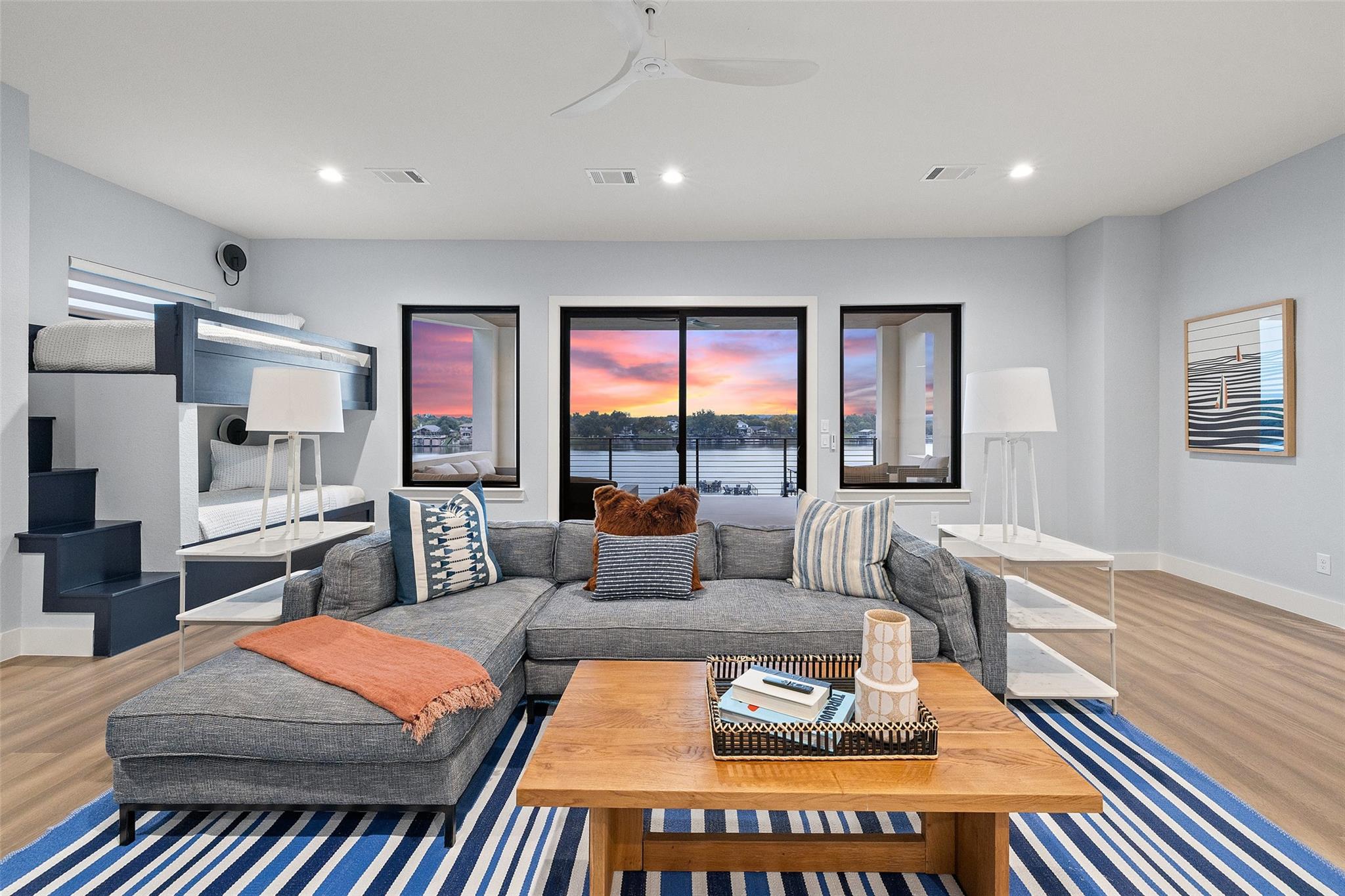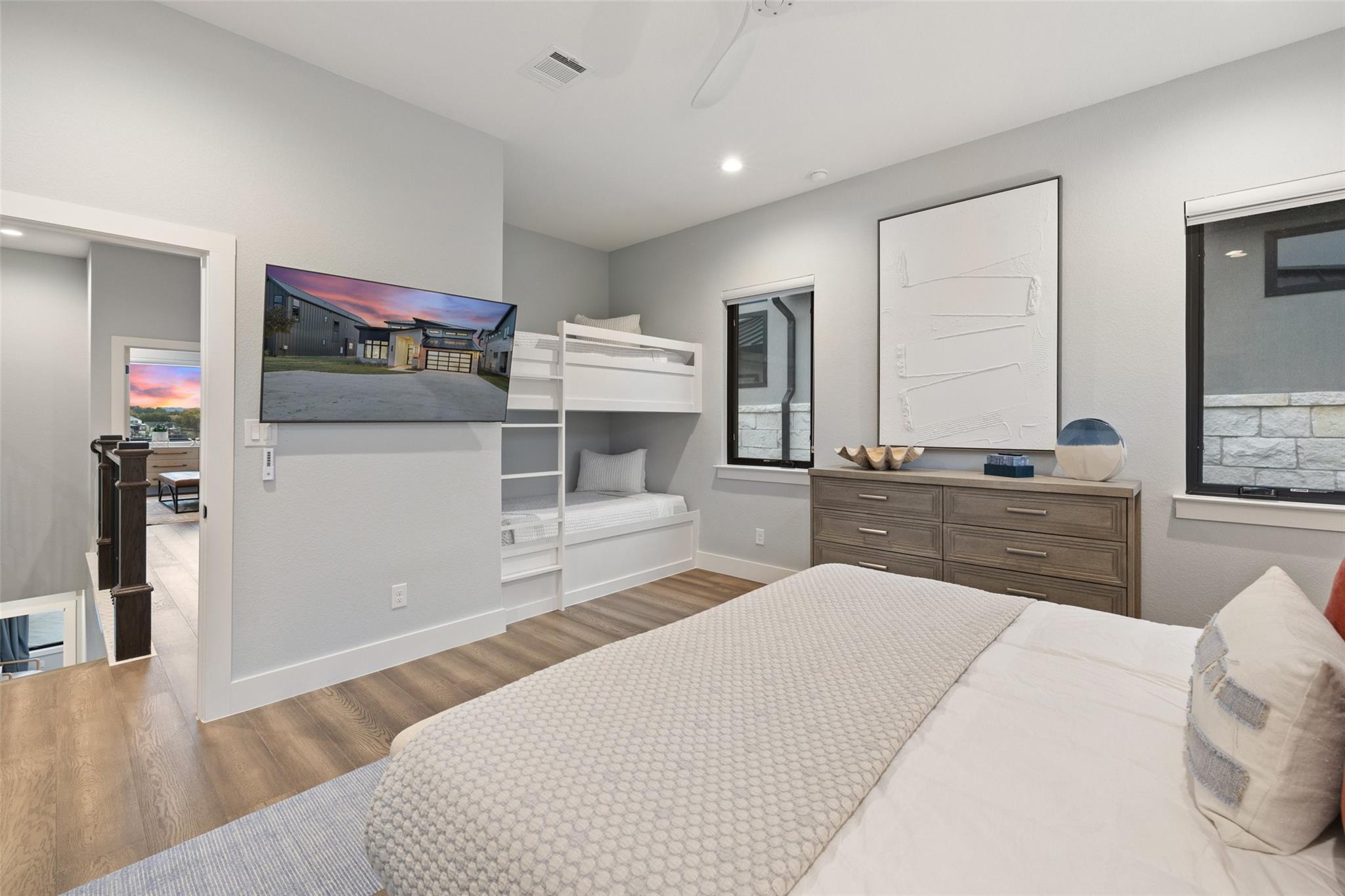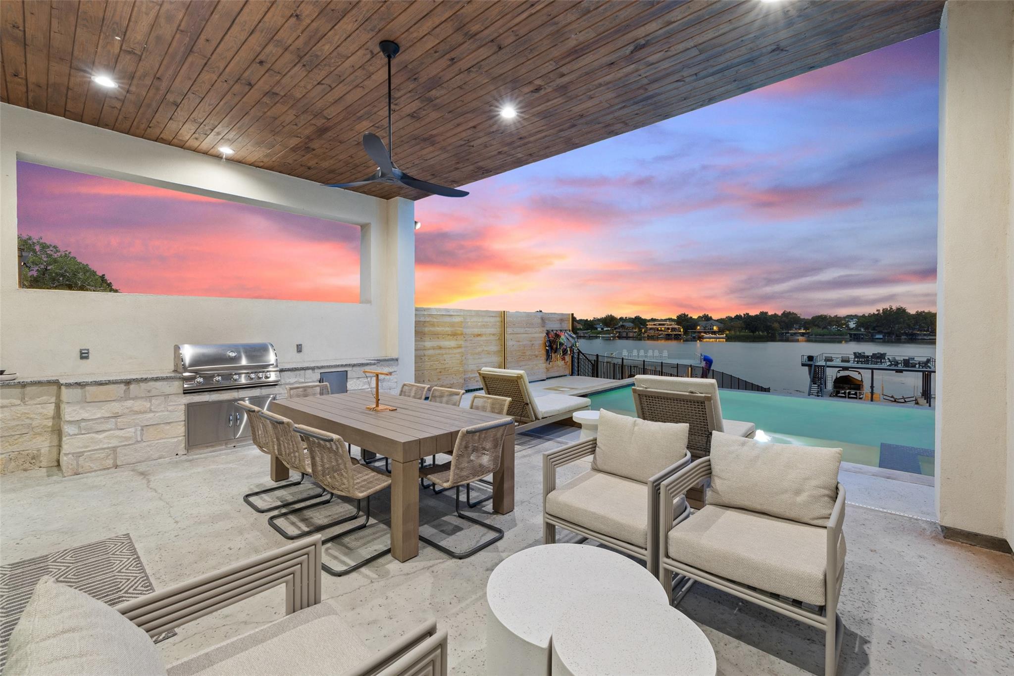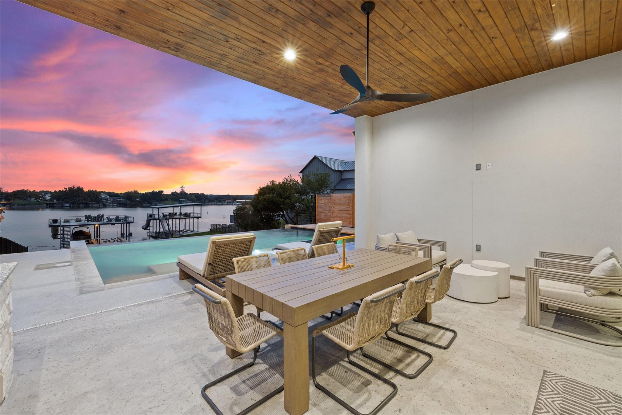 Welcome home to your modern resort on Lake LBJ. This home is fully furnished boasting beautiful furniture, art and high end stainless steel appliances offering a true turn key experience. The open floor plan with fantastic indoor/outdoor living is perfect for entertaining. Flexible living with first floor primary and guest suite. Amazing second floor with family room boasting custom built in bunks, 3 bedrooms plus 3 bathrooms. Lots of storage space in garage, mud room, oversized laundry room and big closets. And to top it off, this gorgeous property offers everything you could want to relax on the lake – covered patios, Summer kitchen, fire pit, inground custom pool and spa, big back yard as well as a private dual boat dock with lifts and an upper patio with water slide. Short term rental reports available upon request. The Location - Nestled in the heart of the picturesque Texas Hill Country surrounded by stunning hills, including the iconic Packsaddle Mountain, and bordered by the majestic Llano River and Colorado River arms of the beautiful constant-level Lake LBJ. This unrivaled location boasts miles of pristine lakefront property, offering an unmatched lake lifestyle. Enjoy various outdoor recreational activities, including swimming, fishing, boating, jet skiing, and more. For nature lovers, three renowned state parks - Inks Lake State Park, Longhorn Cavern State Park, and Enchanted Rock State Natural Area - are just a short drive away, offering endless opportunities for hiking, picnicking, and wildlife watching. If you are looking for a more relaxing experience, you can unwind at the famous “Slab†on the Llano River, which is one of the area’s favorite swimming holes. Alternatively, Kingsland Community Park provides public access to the lake, where you can lounge on the beach, enjoy a picnic, or simply soak up the tranquil surroundings.