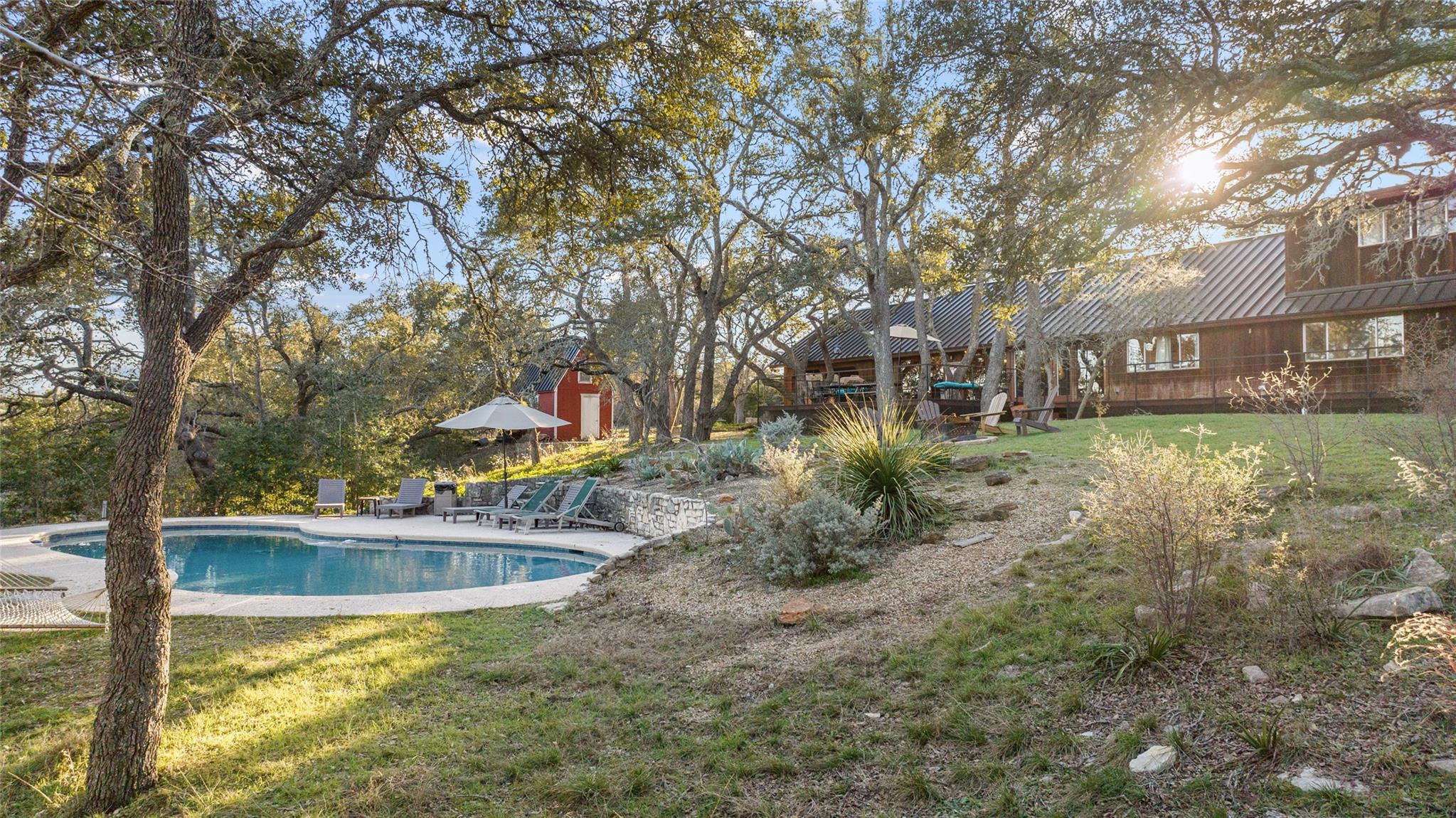 Amazing development potential with 15.01 acres with approximately 438' of HWY 290 frontage, 1400+ ft of frontage on Whitetail Ridge, city water along Hwy 290. Deed restrictions were legally removed in 2022. Has two 911 addresses (one for Tract 1 and one for Tract 2); 411 Whitetail Ridge and 129 Whitetail Ridge. Has a variance on Tract 2 to allow construction or building on that tract. Power utilities brought on Tract 2 for future hook up.Home is an active STR managed by Vacasa, showings will need to be scheduled around bookings. Sold fully furnished! STR income statements available upon request.