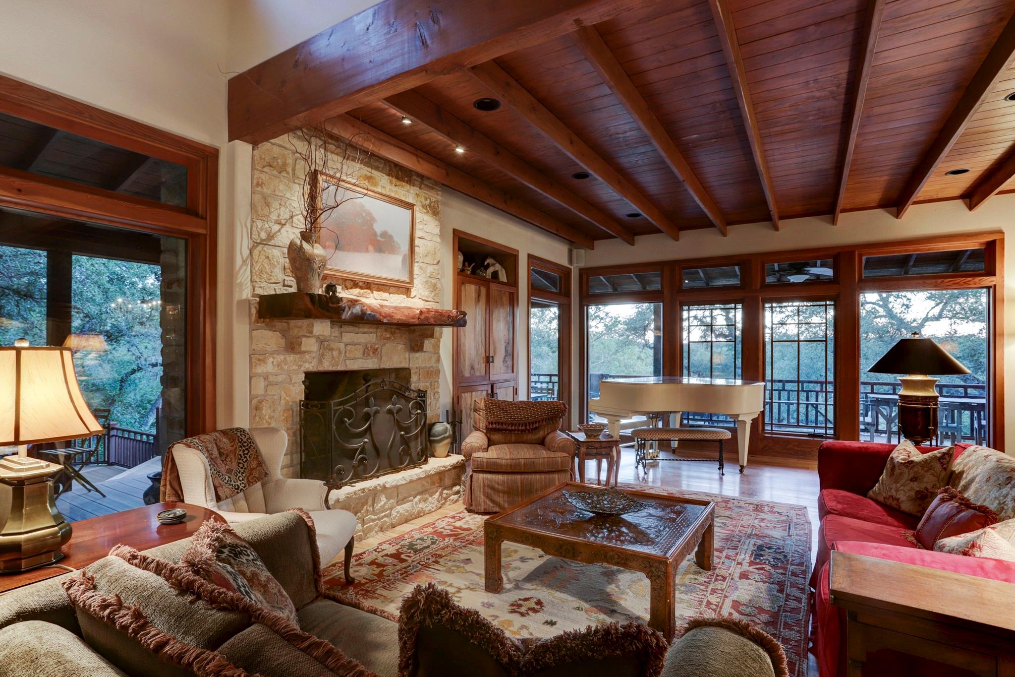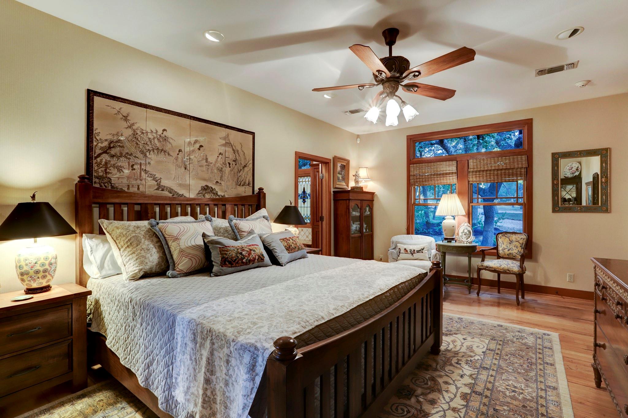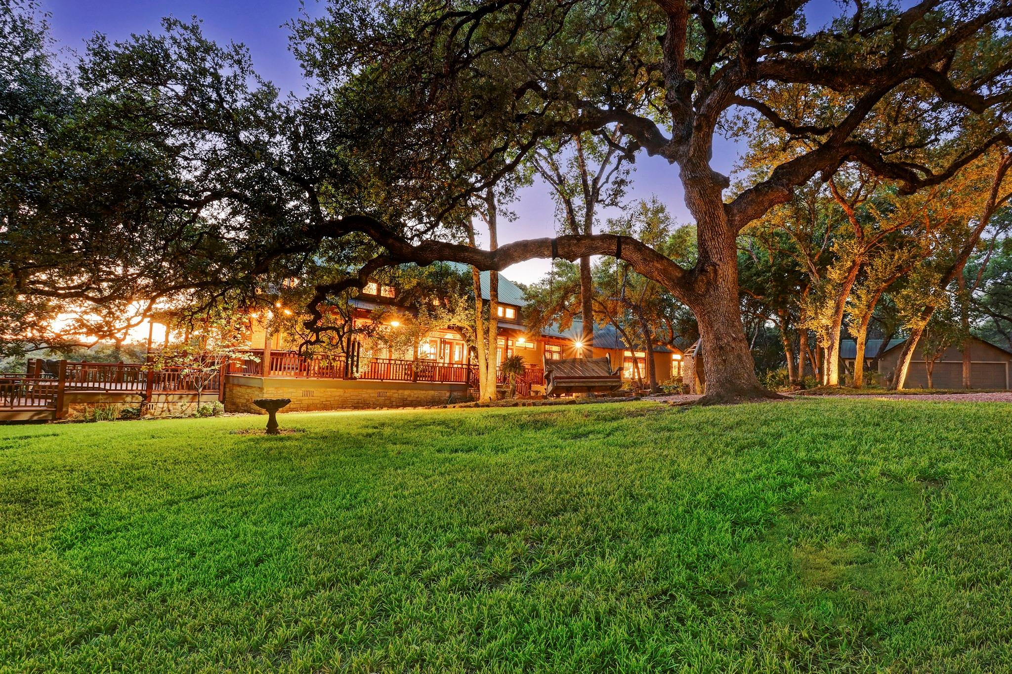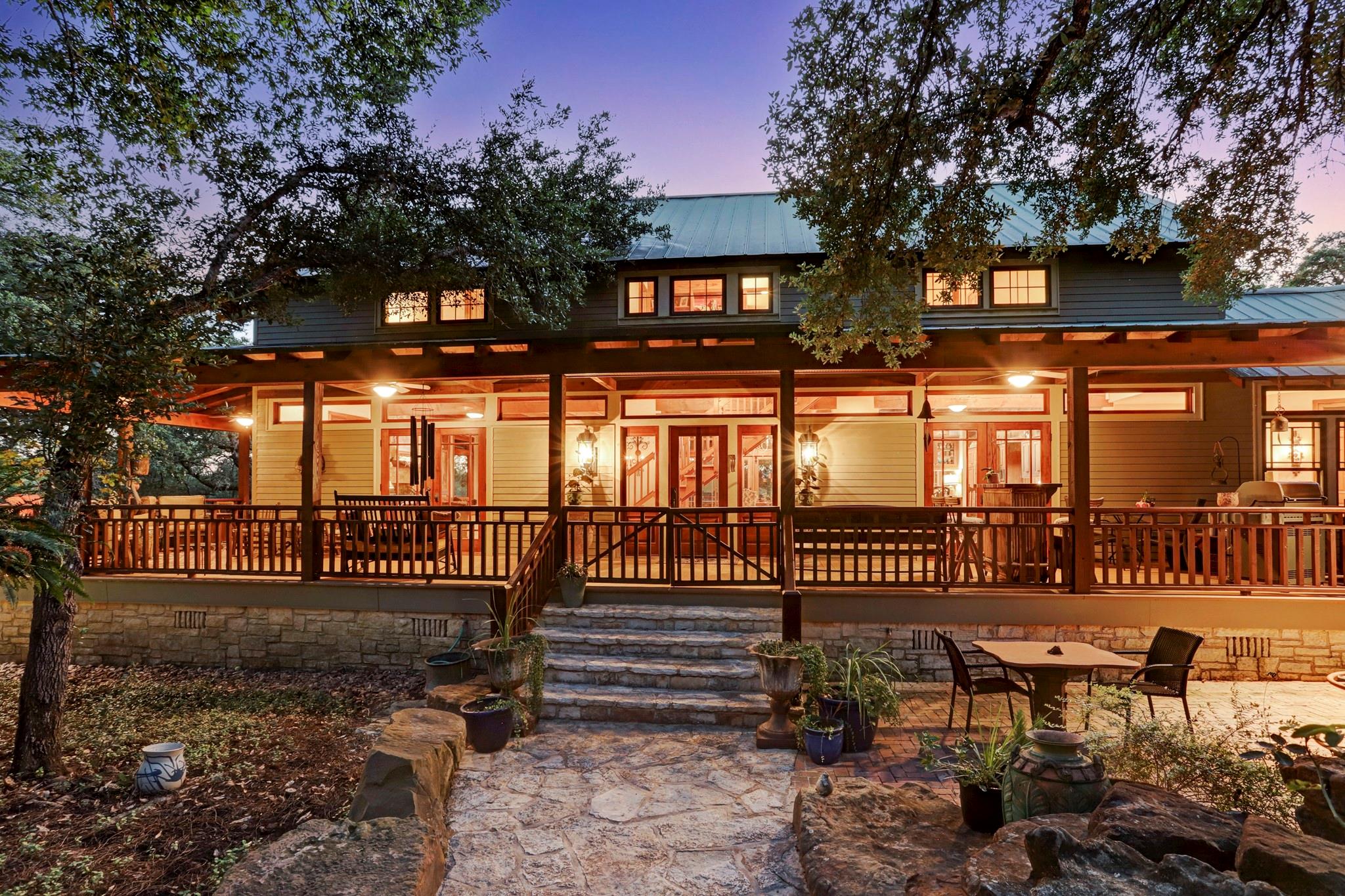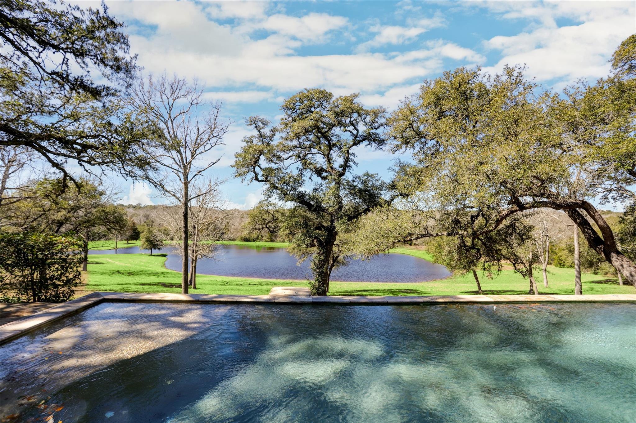 With a dramatic hilltop view at Round Top's very edge, this property offers 18 acres of groomed, rolling terrain with two ponds and Rocky Creek as one of its boundaries. Abundant Century Live Oaks appoint the landscape with the gracious custom home (4873 sf) nestled within them. Living and dining open to wrap around porches (1200 sf) and decking (500 sf) for ideal outdoor entertainment. 2 primary suites down and 2 bedrooms/1 bath up. Gourmet kitchen with 6 burner range, Sub-Zero, custom cherry cabinetry throughout, huge walk-in butler's pantry and bar. 1st floor home office for 2 with built-ins. Pecan hardwood floors in living/dining/primary suites with Old Chicago brick in kitchen, gallery and sitting areas. Pella windows throughout. Craftsman style architectural detail throughout home. Pool with waterfall. 2.5 detached garage with artist studio. So private, yet so close to all that Round Top offers. 90 miles from Houston, 80 miles from Austin and 57 miles from College Station.