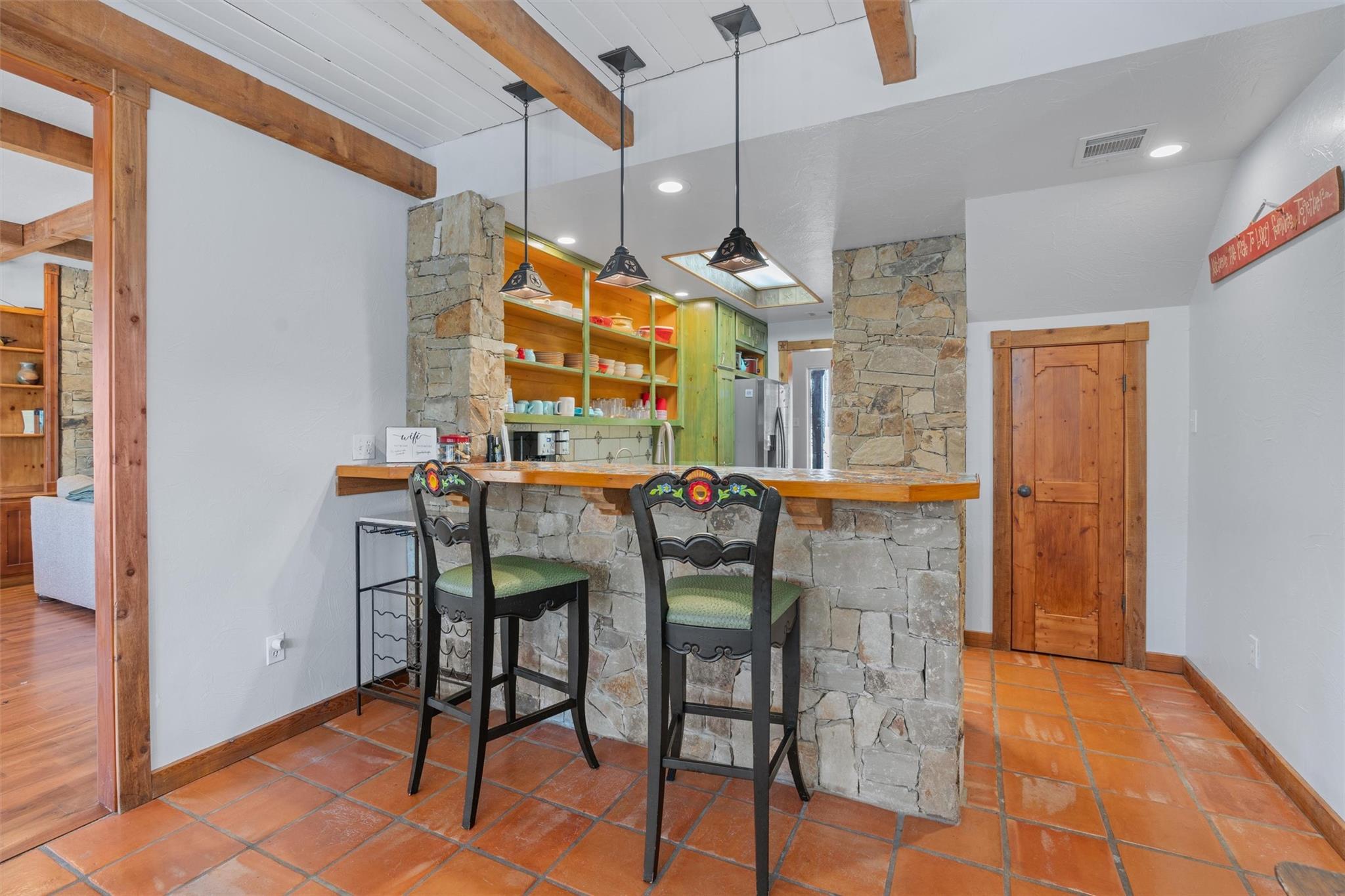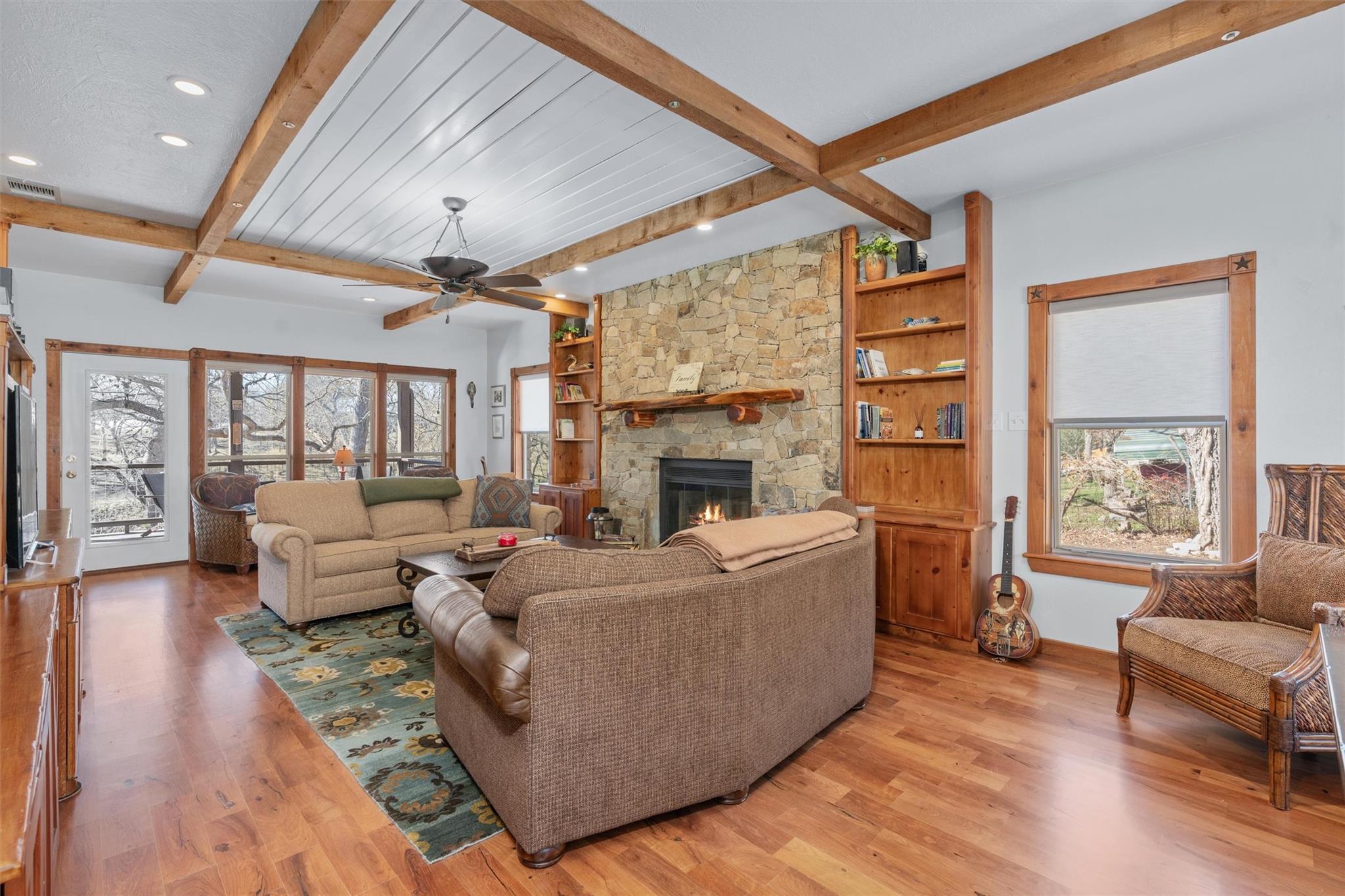 | Interior Features | Two Primary Baths, Two Primary Suties, Bidet, Bookcases, Built-in Features, Cedar Closet(s), Beamed Ceilings, High Ceilings, Granite Counters, Quartz Counters, Electric Dryer Hookup, Eat-in Kitchen, Elevator, Kitchen Island, Multiple Dining Areas, Multiple Living Areas, Pantry, Primary Bedroom on Main, Walk-In Closet(s), Washer Hookup | |