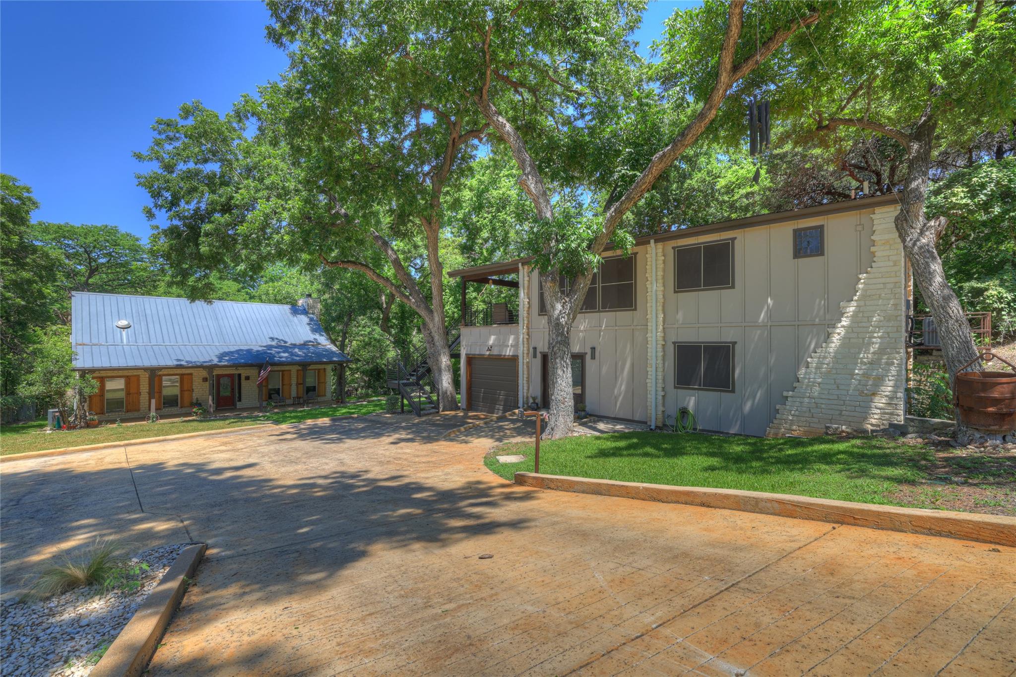 A truly unique real estate opportunity ideal for those seeking both a tranquil residence & multiple income generating opportunities. This property features 2 homes on 1 riverfront lot. Both structures are STR approved & both can be sold completely furnished! Furniture not included w/list price; negotiated separately. House 1 is 2/2 2160 sq ft & features a down-to-the studs, high-end remodel w/no detail spared. This 2 story home could serve as 2 separate rental units. Upstairs does have exterior entry. The luxurious remodel features steel framing, spray foam insulation, elevator, custom finishes, 2 HVACs, & more. Downstairs showcases a commercial grade kitchen w/60" range, custom vent hood, in counter deep fryer, subzero 48" built in fridge, & large kitchen island. Hop on the elevator to go upstairs where you'll be greeted w/an abundance of natural light, vaulted ceilings, kitchenette, spacious open concept, en-suite bathroom w/soaking tub, walk-in shower, board & batten ceiling details, & vintage farmhouse finishing touches. Walk out to your oversized upstairs balcony w/custom railing & river views. This front home also has a fully finished 1 car garage insulated w/electrical & separate entry access. This could be converted into another small rentable unit or used in a plethora of ways such as work from home space, studio, gym, garage etc. Move into the 2nd home & explore your quintessential Guadalupe riverfront property! This 3/2 1782 sq ft home features a cozy wood burning fireplace, built in bookshelves, & breathtaking views from every bedroom! Make the easy walk down to immerse yourself in your very own private piece of nature surrounded by mature trees & the sounds of the Guadalupe river slowly flowing past. 2779 Edgegrove is a rare opportunity showcasing options such as 3 separate turnkey short term rentals, or live on the property w/an option to rent 1 or 2 units, or separate multigenerational home options & more. See virtual tour link for 3D walkthrough!