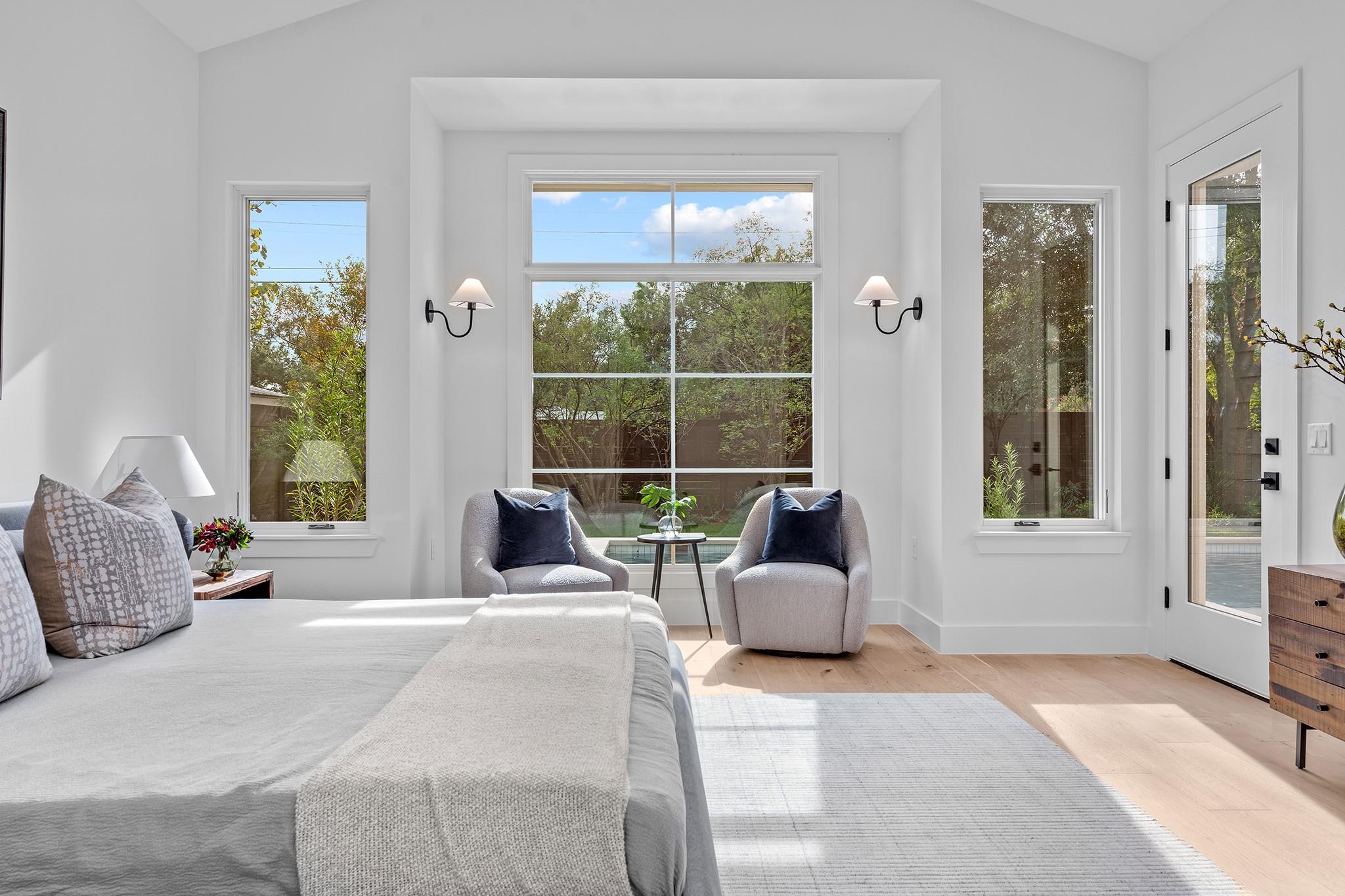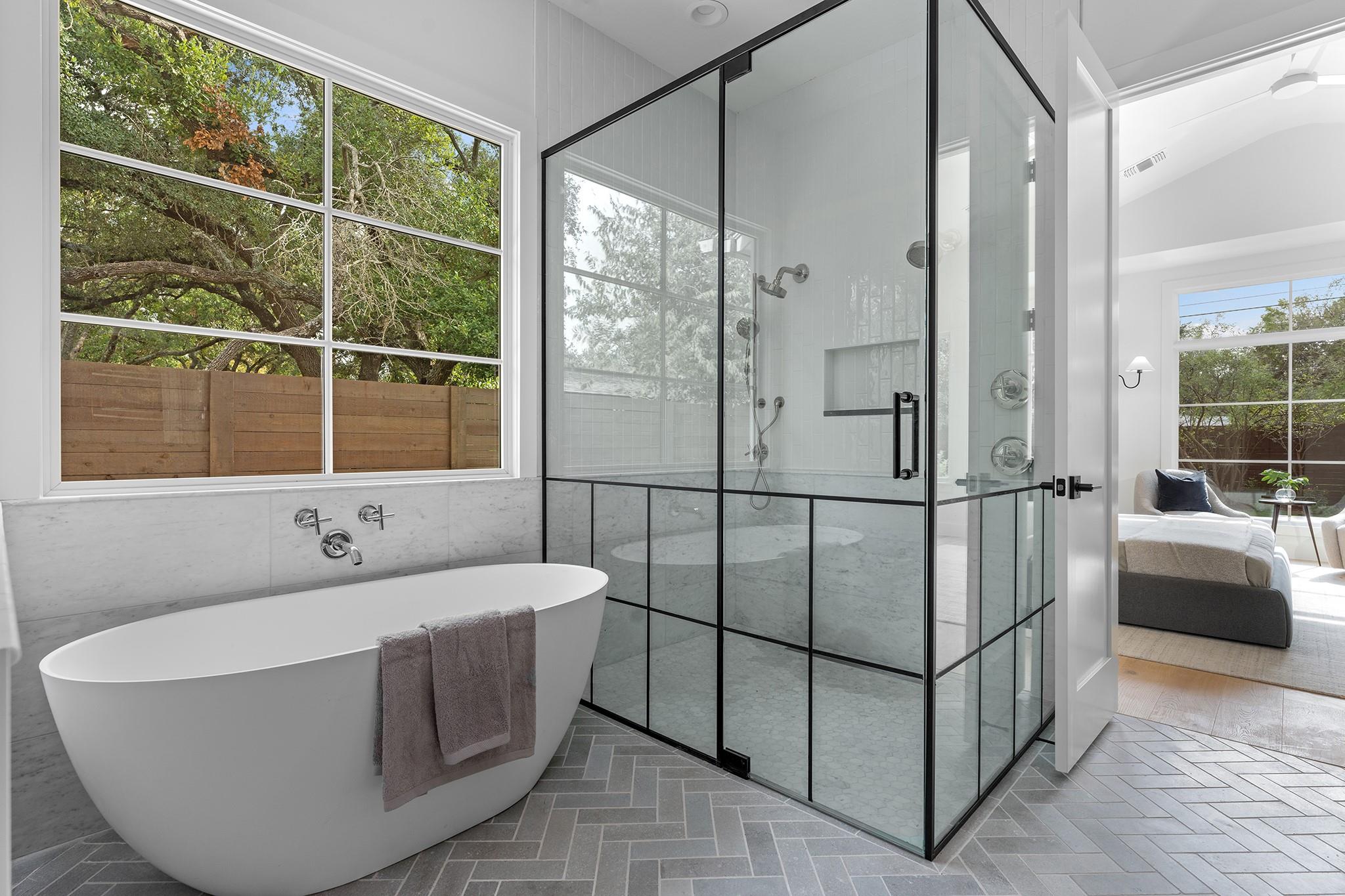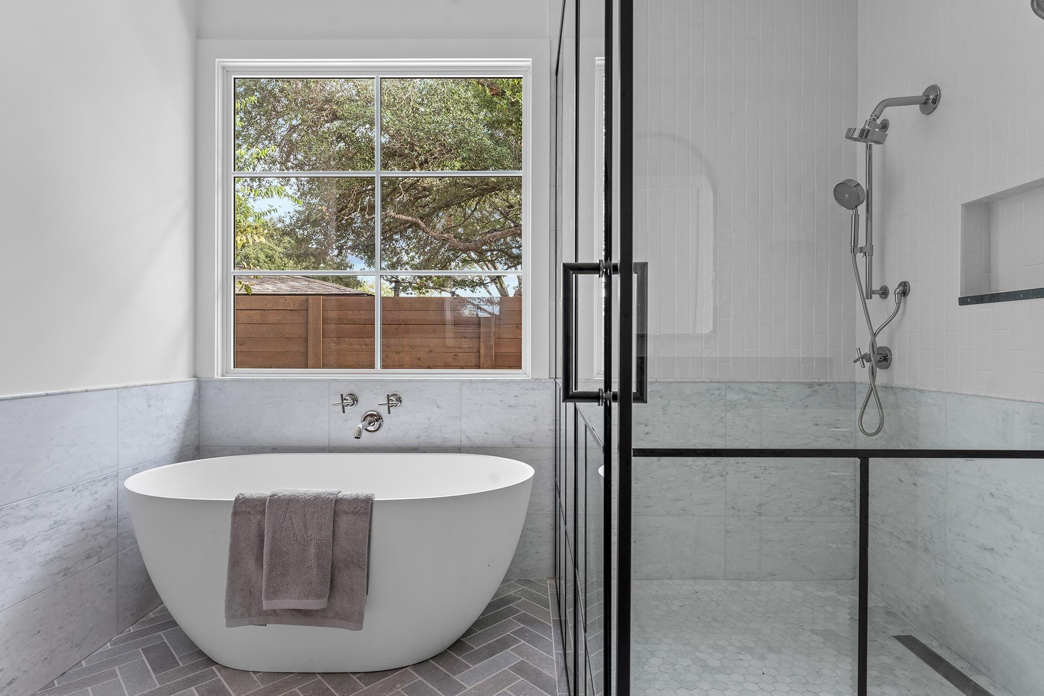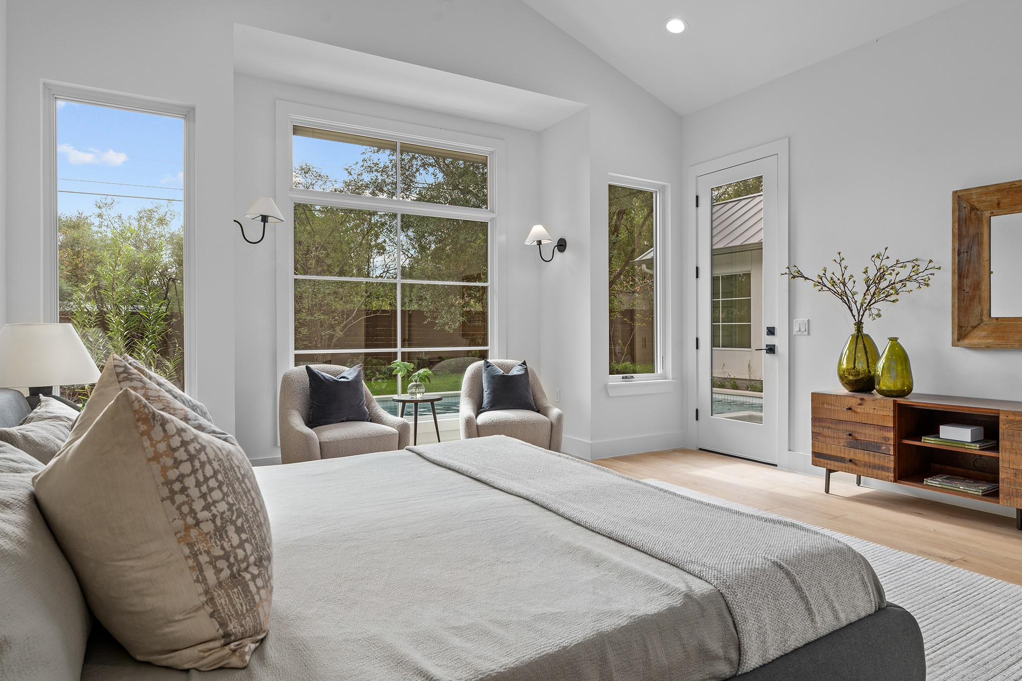 Nestled on a quiet, tree-line side street in central Allandale, this home is the latest in a long line of successful Newcastle Homes. With beautiful & warm contemporary design by Architecture by George, this single story + mezzanine takes full advantage of the oversized lot, while offering maximum outdoor space. We designed this home for both entertaining & everyday life, with seamless flow between entertaining spaces, both indoors & out; with a private living wing & an independent guest suite off the 2nd family room. The kitchen, dining, living & family rooms share an open floor plan as well as two massive three-panel multi-slide doors to the outdoor living & pool deck. There is plenty of space for outdoor dining & lounging, and we provide every amenity to ensure you can enjoy these spaces year-round with an outdoor kitchen, gas fireplace, pool & spa, plus a dedicated pool bath. With an office overlooking the front yard and a second studio/flex room upstairs overlooking the pool & backyard, this is a work-from-home/hobby paradise. To compliment the thoughtful design, we chose quality, timeless finishes throughout. The designer kitchen exemplifies this, with soapstone perimeter countertops contrasting with a white Zellige backsplash & book-matched marble island. An abundance of cabinetry & a walk-in working pantry ensure you'll never run out of storage. The wine fridge and beverage center save space in your 48†refrigerator & keep the drinks flowing. The 48†dual fuel range w. double ovens can accommodate everything from a simple meal to Thanksgiving dinner. The theme of timeless luxury continues in the primary bath with warm white oak cabinetry, Belgian Blue limestone top, tumbled limestone herringbone floor & Carrara marble around the soaking tub & dual shower. Every space in this home was carefully designed to be both beautiful and functional, with a focus on crafting natural materials into timeless spaces. *ASK about 5.875% financing with preferred lender.*