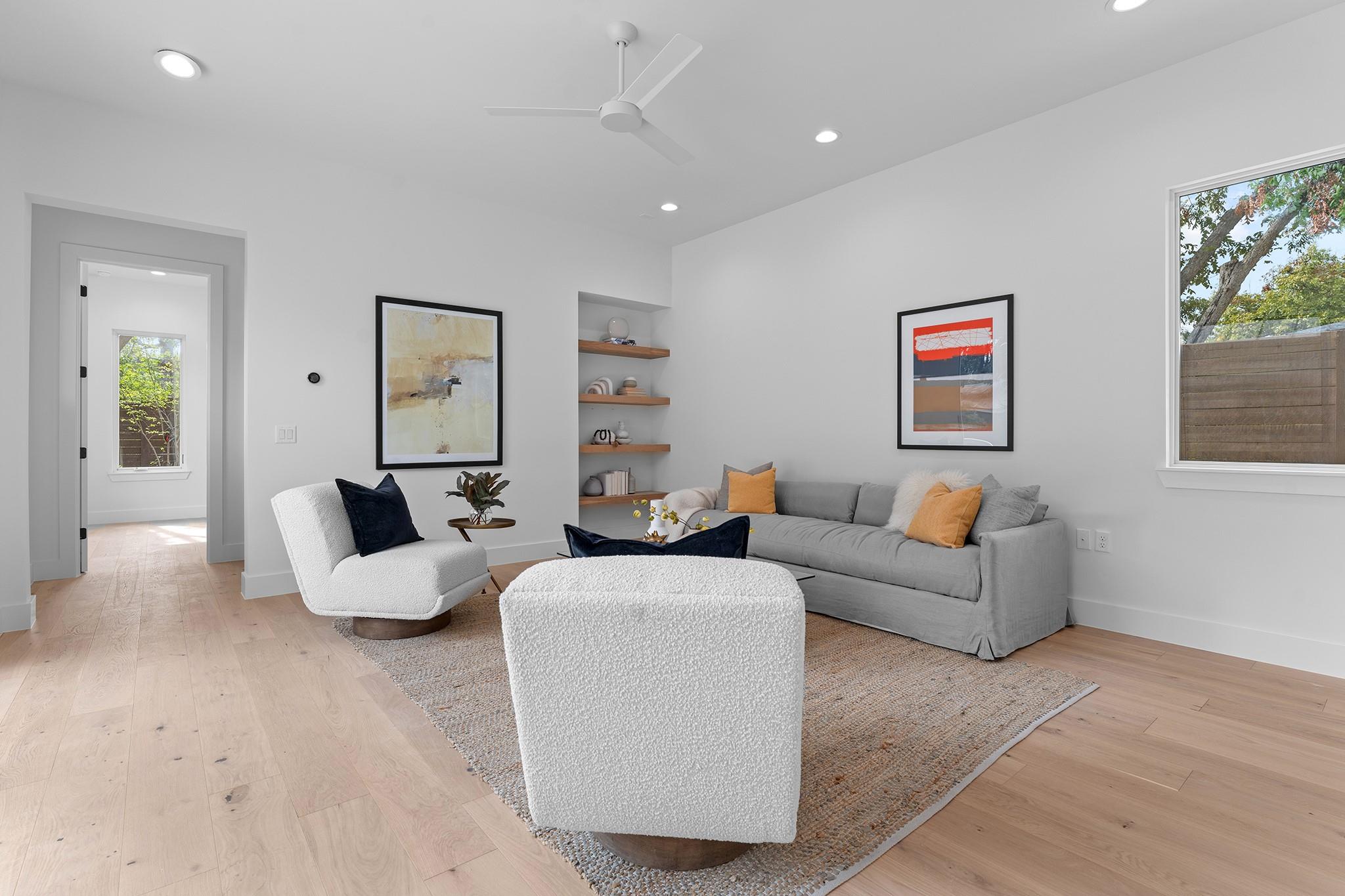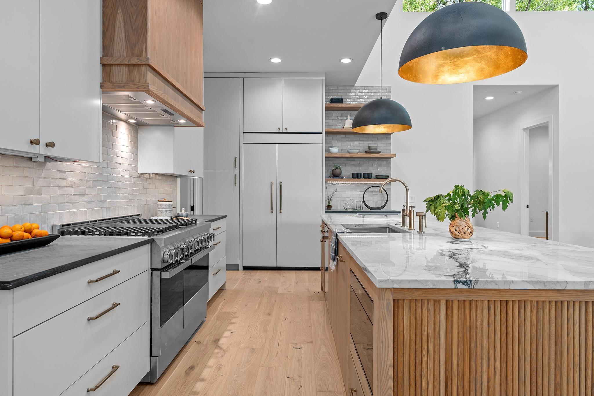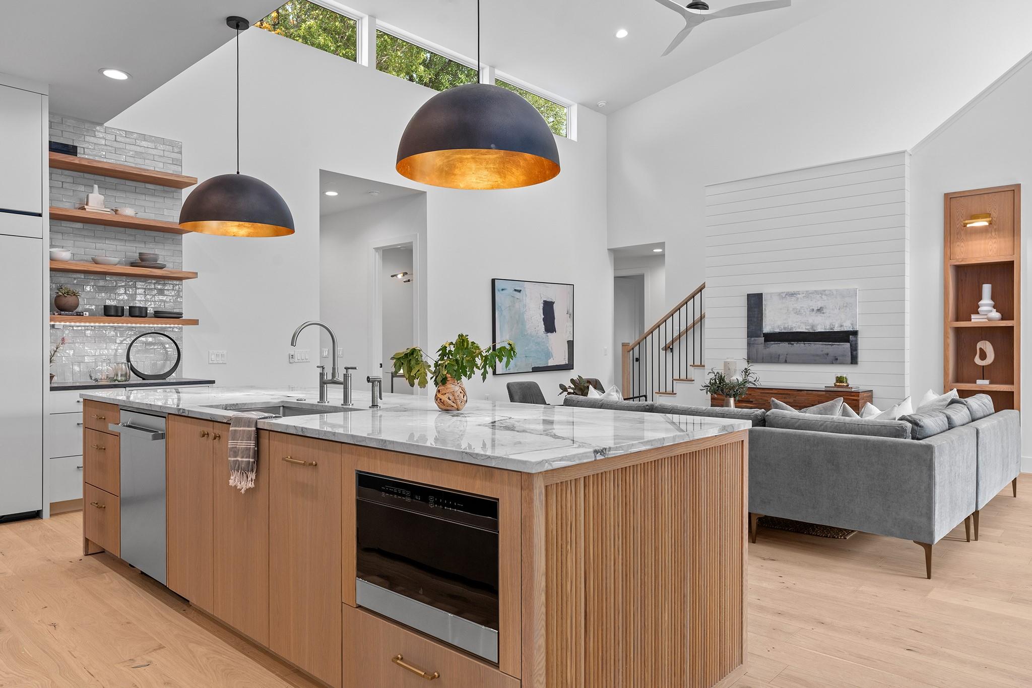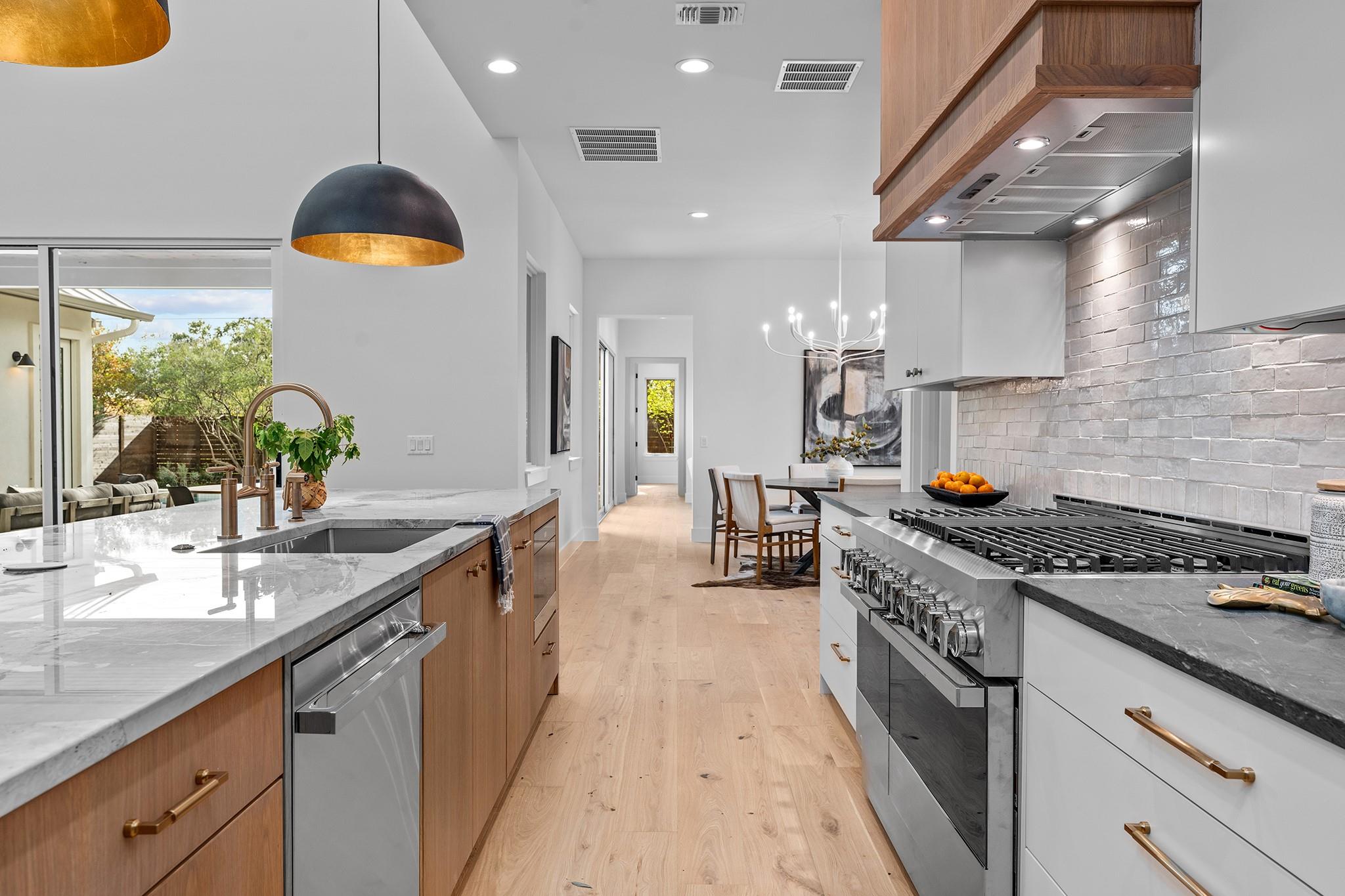 Nestled on a quiet, tree-line side street in central Allandale, this home is the latest in a long line of successful Newcastle Homes. With beautiful & warm contemporary design by Architecture by George, this single story + mezzanine takes full advantage of the oversized lot, while offering maximum outdoor space. We designed this home for both entertaining & everyday life, with seamless flow between entertaining spaces, both indoors & out; with a private living wing & an independent guest suite off the 2nd family room. The kitchen, dining, living & family rooms share an open floor plan as well as two massive three-panel multi-slide doors to the outdoor living & pool deck. There is plenty of space for outdoor dining & lounging, and we provide every amenity to ensure you can enjoy these spaces year-round with an outdoor kitchen, gas fireplace, pool & spa, plus a dedicated pool bath. With an office overlooking the front yard and a second studio/flex room upstairs overlooking the pool & backyard, this is a work-from-home/hobby paradise. To compliment the thoughtful design, we chose quality, timeless finishes throughout. The designer kitchen exemplifies this, with soapstone perimeter countertops contrasting with a white Zellige backsplash & book-matched marble island. An abundance of cabinetry & a walk-in working pantry ensure you'll never run out of storage. The wine fridge and beverage center save space in your 48†refrigerator & keep the drinks flowing. The 48†dual fuel range w. double ovens can accommodate everything from a simple meal to Thanksgiving dinner. The theme of timeless luxury continues in the primary bath with warm white oak cabinetry, Belgian Blue limestone top, tumbled limestone herringbone floor & Carrara marble around the soaking tub & dual shower. Every space in this home was carefully designed to be both beautiful and functional, with a focus on crafting natural materials into timeless spaces. *ASK about 5.875% financing with preferred lender.*