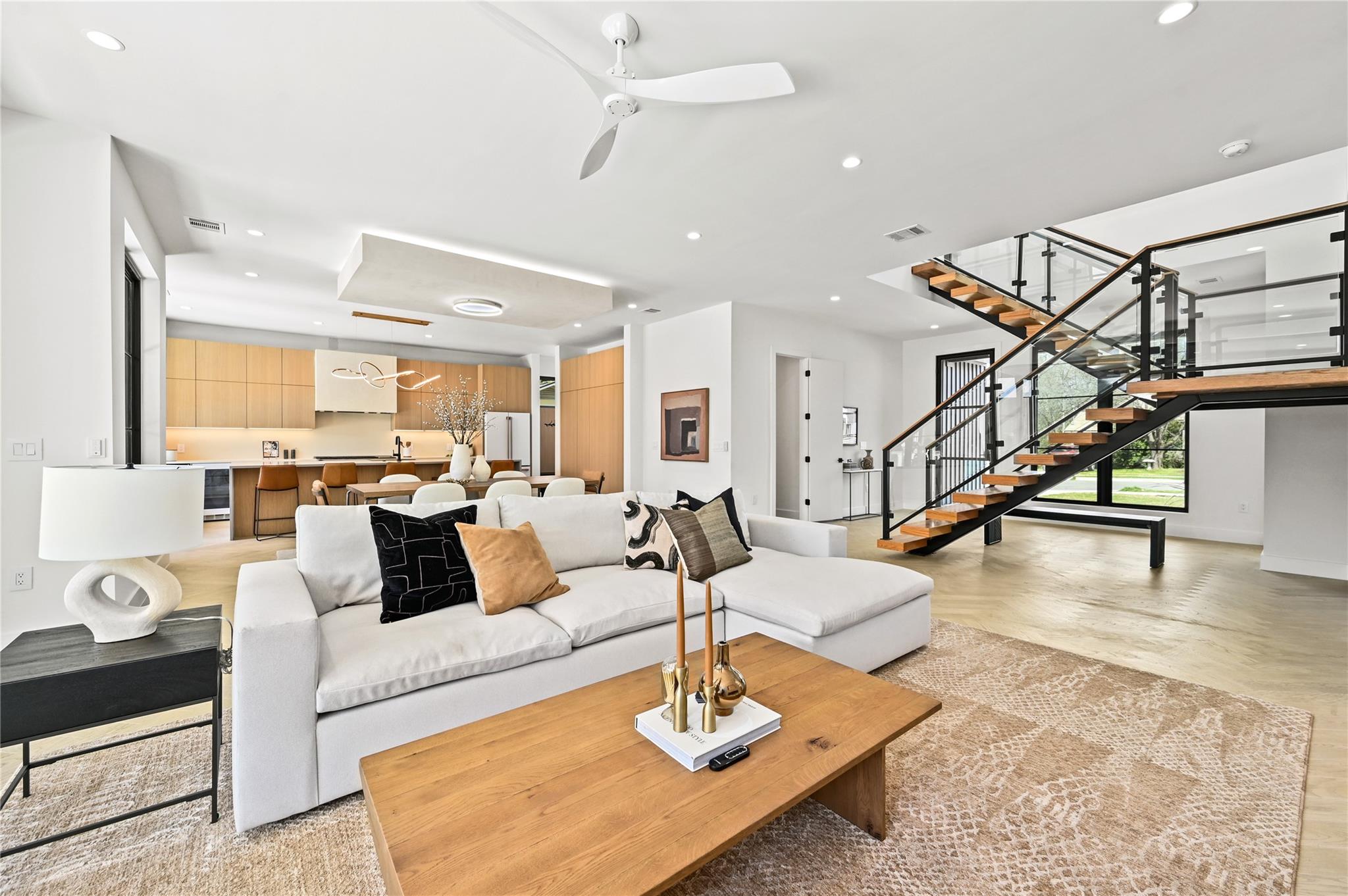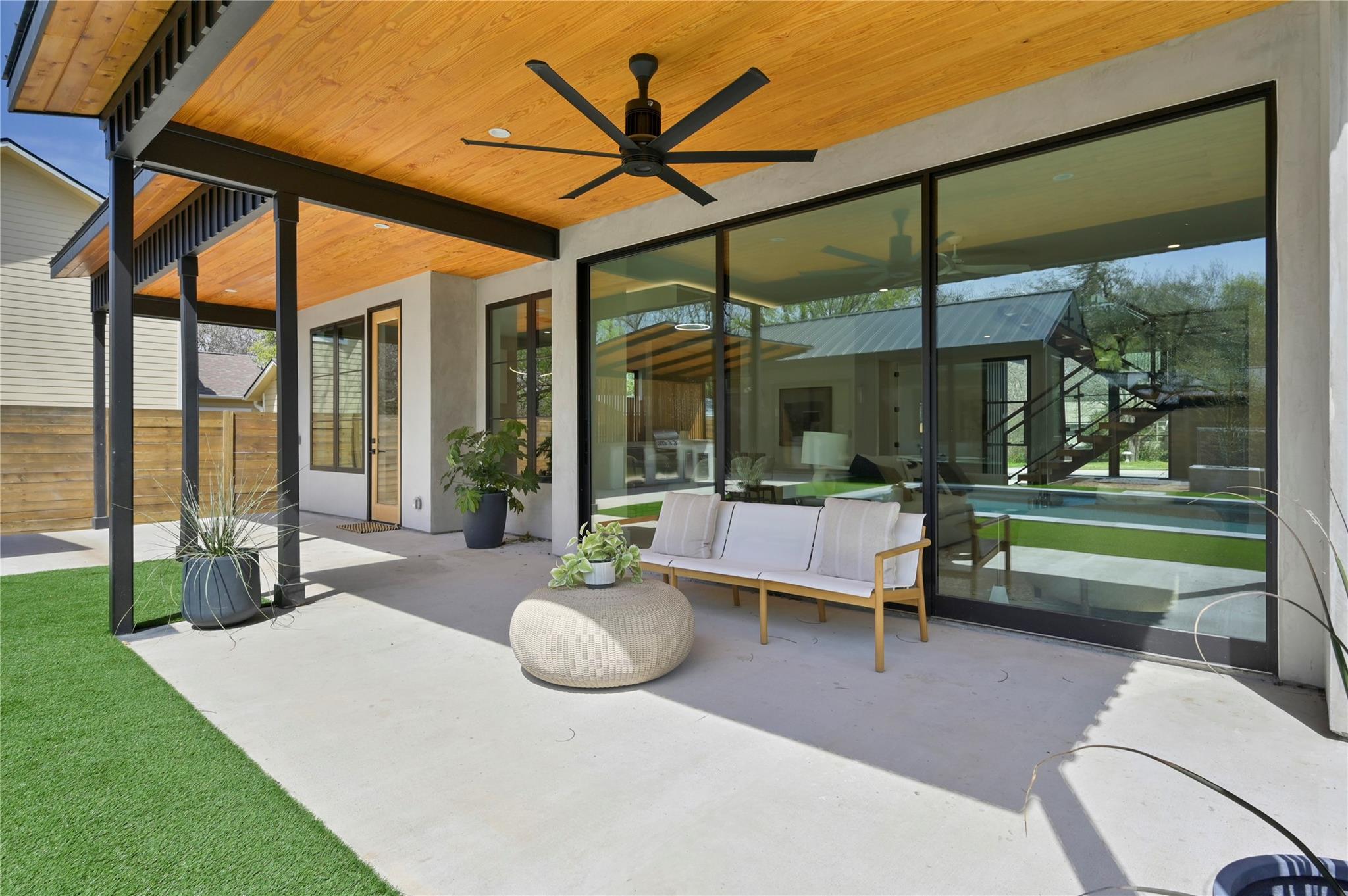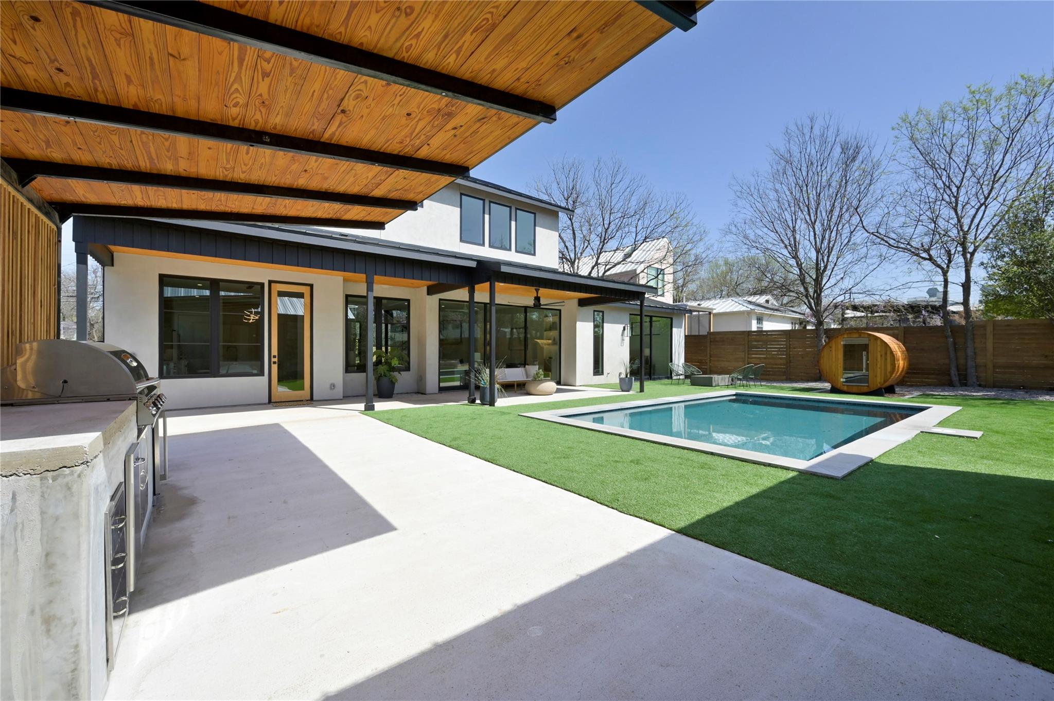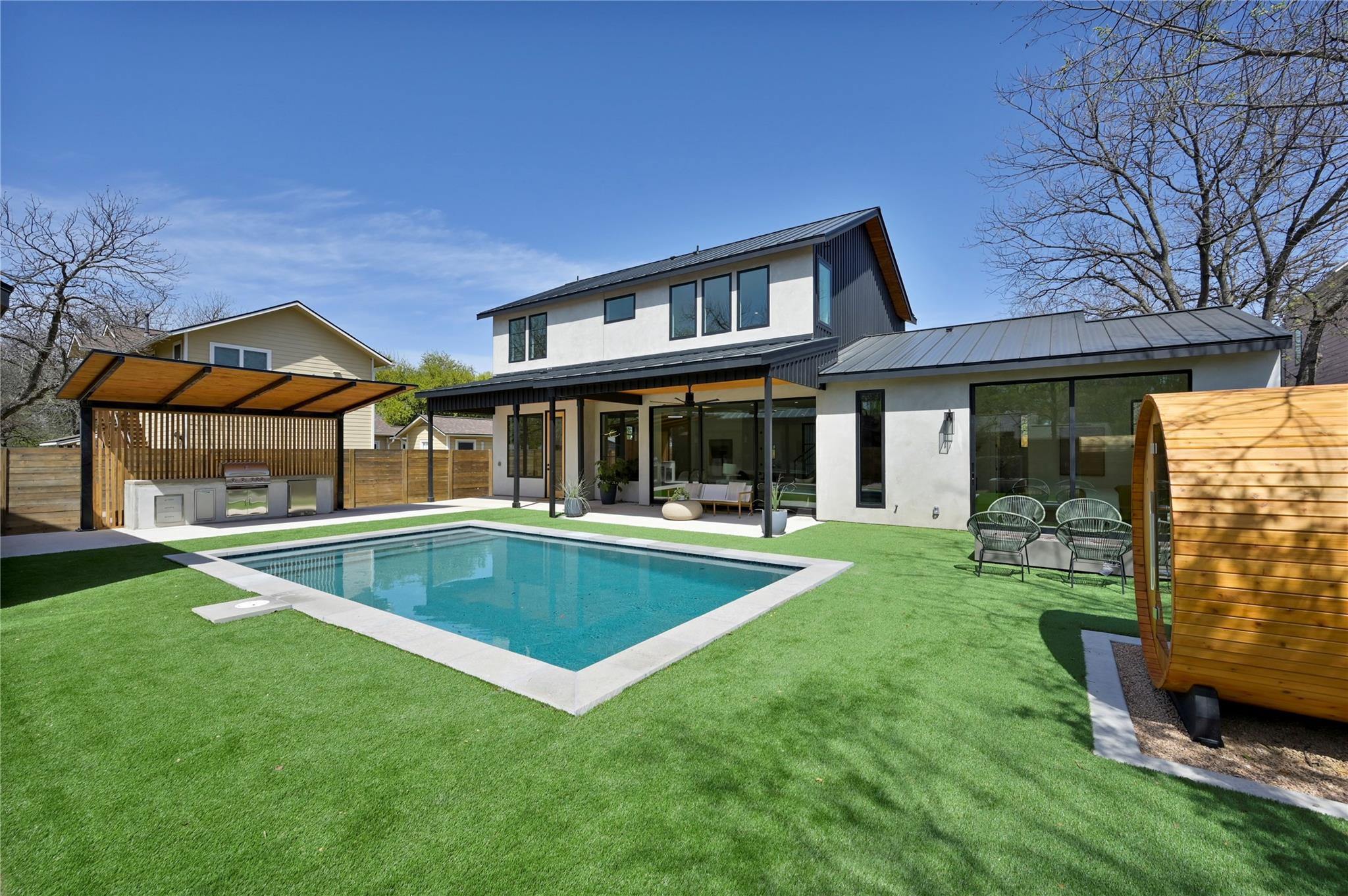 Welcome to 903 Brentwood, an exceptional luxury property nestled in the prestigious Brentwood neighborhood of Austin, TX, 78757. This extraordinary estate offers a seamless blend of refined elegance and modern luxury living. As you step into this remarkable sanctuary, you're greeted by floating stairs that lead to an upper level of sophisticated design and opulent comfort. The expansive entertainment space on the ground floor, surrounded by sliding glass doors, seamlessly integrates indoor and outdoor living—a perfect embodiment of Brentwood's desirable lifestyle. The outdoor oasis features a built-in grill, a stunning pool, and a casita with a full bath, creating a picturesque retreat for relaxation and entertainment. This residence is a haven for culinary enthusiasts, boasting a state-of-the-art kitchen with modern wood cabinetry, sleek quartz countertops, and high-end White Cafe appliances, including a 48” Gas Range, 36” Refrigerator, Ice maker, and Wine Fridge. Elegance extends throughout with 5” Brushed Oak Herringbone flooring, guiding you to the private primary suite on the same level. Open the doors from the primary bedroom to the outdoor entertainment space, offering a serene escape for moments of quiet indulgence. The spacious primary bath and walk-in closet epitomize luxury living. Ascending the floating stairs to the upper level, discover a spacious loft area for entertaining, two additional bedrooms with walk-in closets, and a shared full bath, ensuring comfort and convenience for family or guests. This property in the 78757 Austin, TX, Brentwood neighborhood, goes beyond expectations, featuring a second-floor entertainment space, a well-appointed office on the first level, a convenient mudroom off the two-car garage for organization, and a second-floor laundry room for practicality in daily living. Embrace luxury and refinement in every detail of this prestigious address.