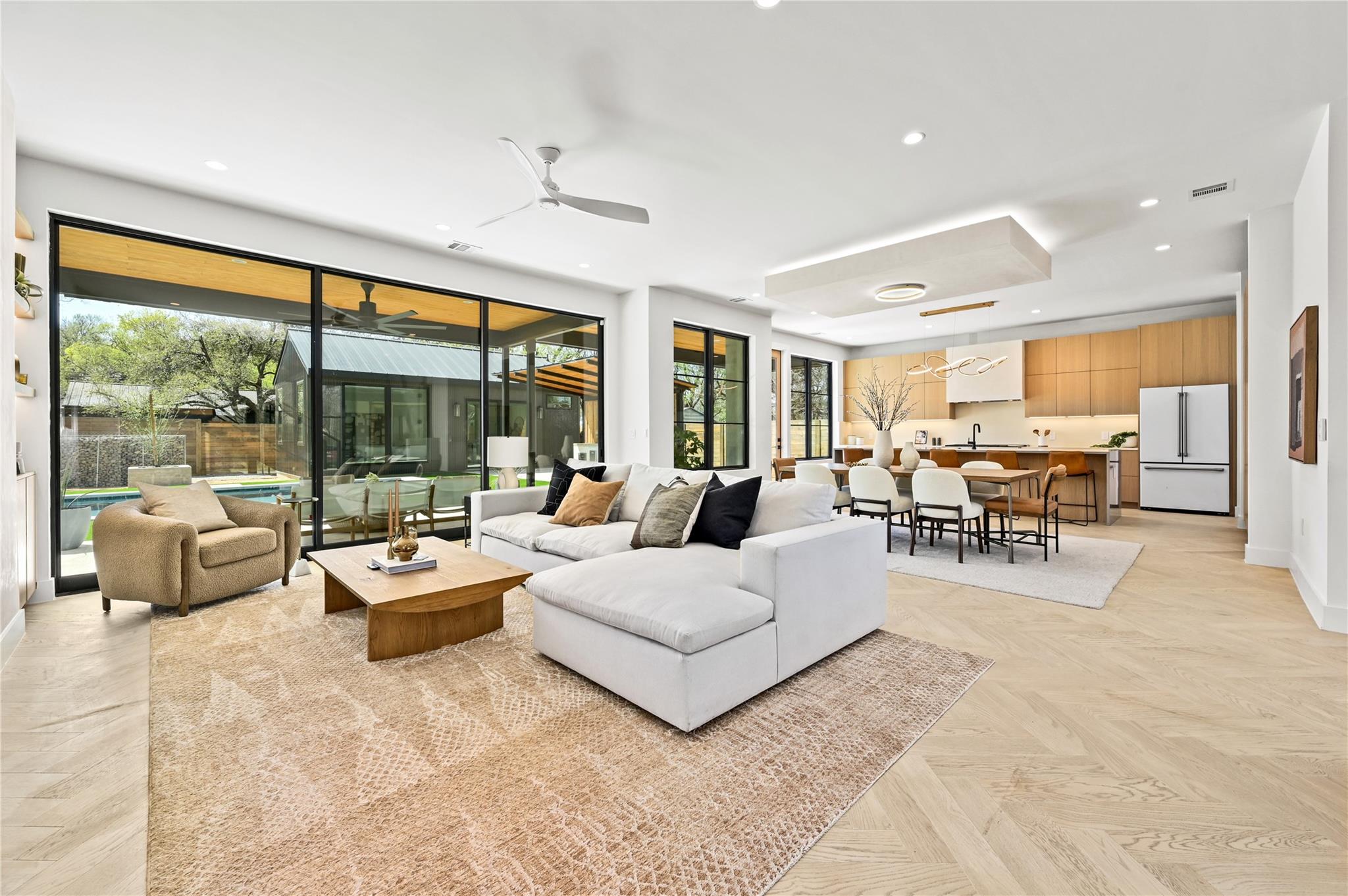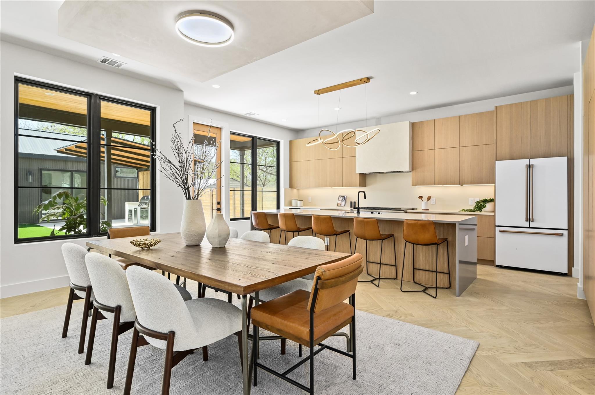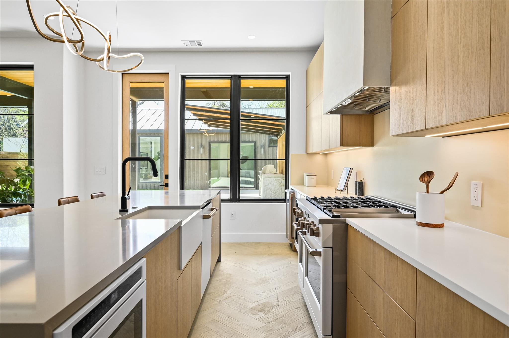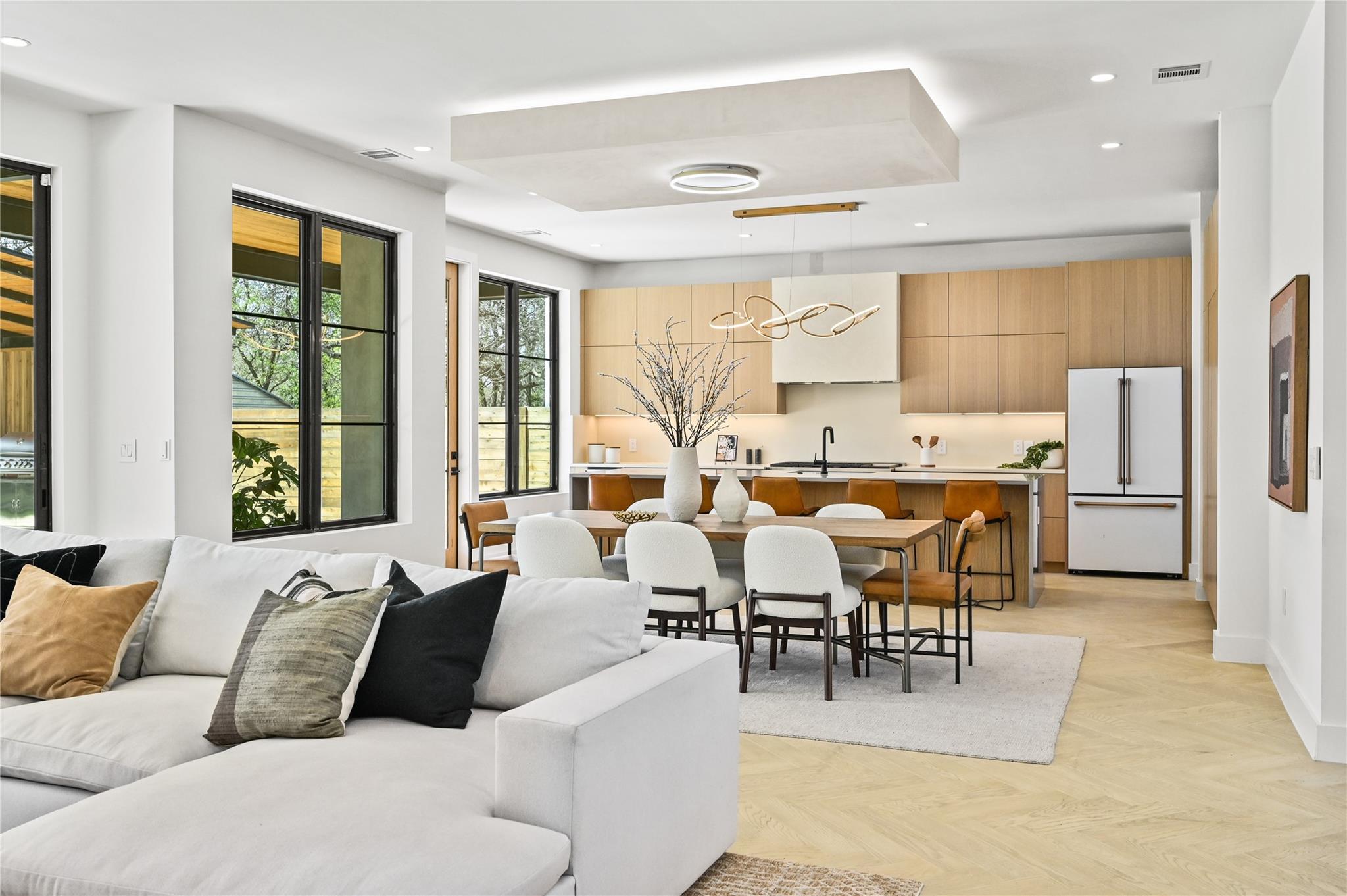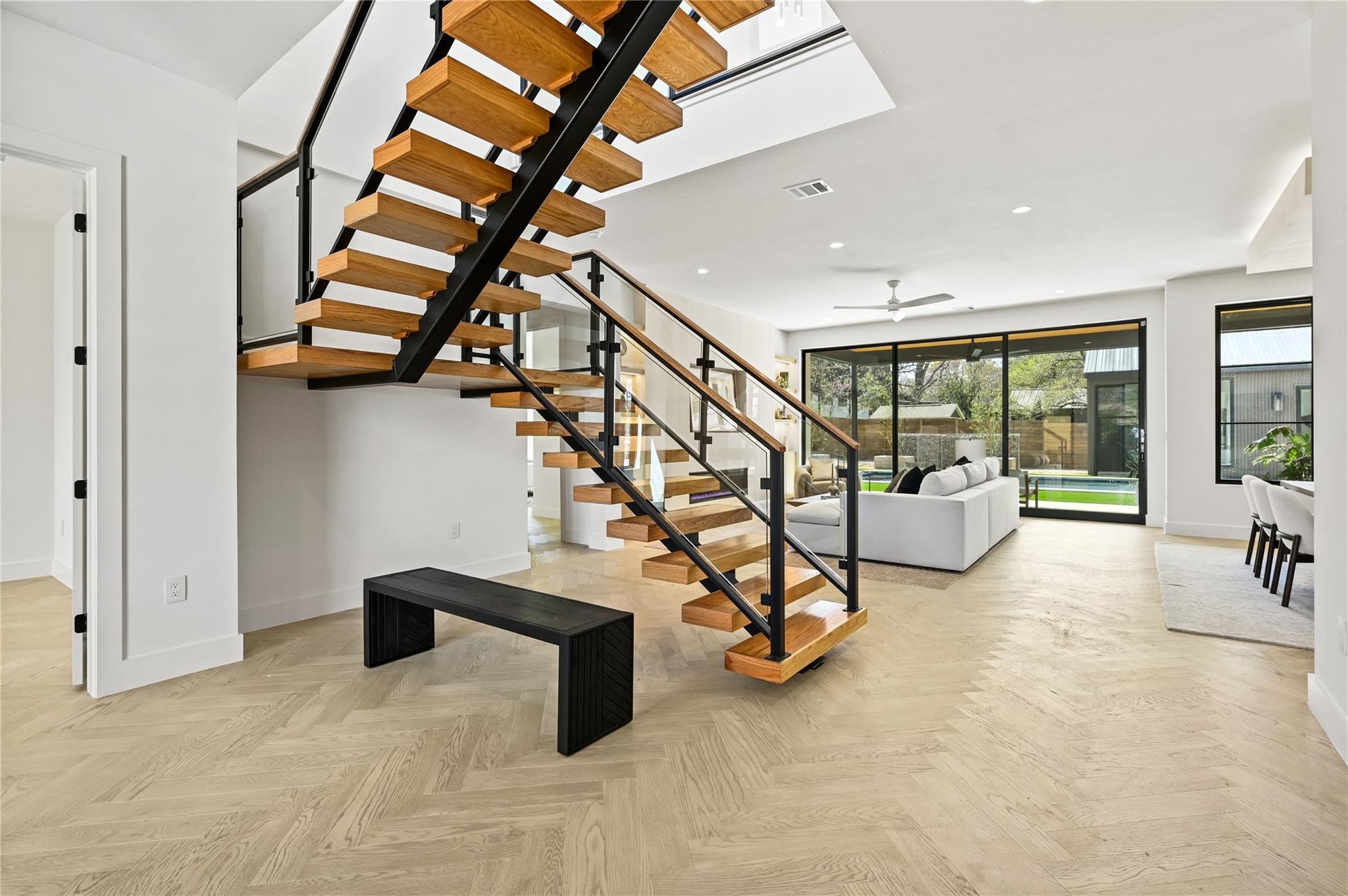 Welcome to 903 Brentwood, an exceptional luxury property nestled in the prestigious Brentwood neighborhood of Austin, TX, 78757. This extraordinary estate offers a seamless blend of refined elegance and modern luxury living. As you step into this remarkable sanctuary, you're greeted by floating stairs that lead to an upper level of sophisticated design and opulent comfort. The expansive entertainment space on the ground floor, surrounded by sliding glass doors, seamlessly integrates indoor and outdoor living—a perfect embodiment of Brentwood's desirable lifestyle. The outdoor oasis features a built-in grill, a stunning pool, and a casita with a full bath, creating a picturesque retreat for relaxation and entertainment. This residence is a haven for culinary enthusiasts, boasting a state-of-the-art kitchen with modern wood cabinetry, sleek quartz countertops, and high-end White Cafe appliances, including a 48” Gas Range, 36” Refrigerator, Ice maker, and Wine Fridge. Elegance extends throughout with 5” Brushed Oak Herringbone flooring, guiding you to the private primary suite on the same level. Open the doors from the primary bedroom to the outdoor entertainment space, offering a serene escape for moments of quiet indulgence. The spacious primary bath and walk-in closet epitomize luxury living. Ascending the floating stairs to the upper level, discover a spacious loft area for entertaining, two additional bedrooms with walk-in closets, and a shared full bath, ensuring comfort and convenience for family or guests. This property in the 78757 Austin, TX, Brentwood neighborhood, goes beyond expectations, featuring a second-floor entertainment space, a well-appointed office on the first level, a convenient mudroom off the two-car garage for organization, and a second-floor laundry room for practicality in daily living. Embrace luxury and refinement in every detail of this prestigious address.