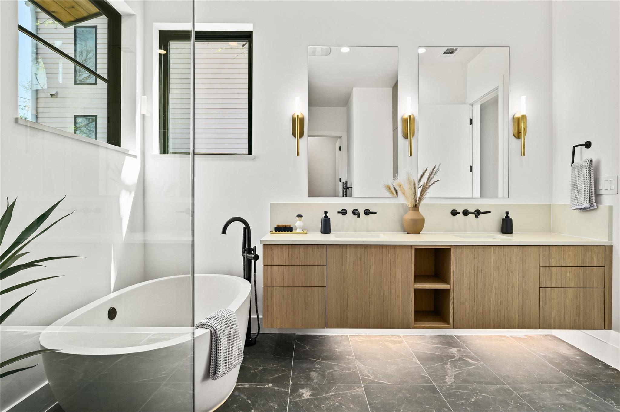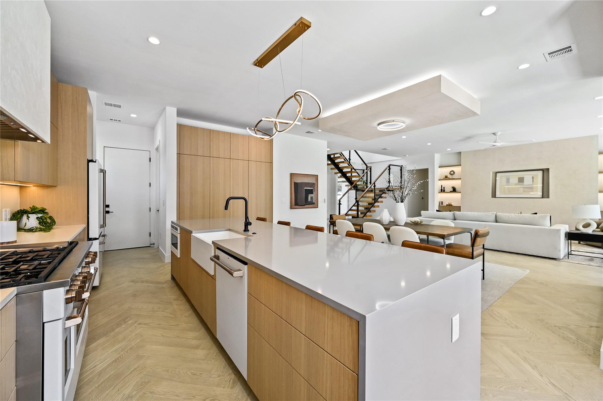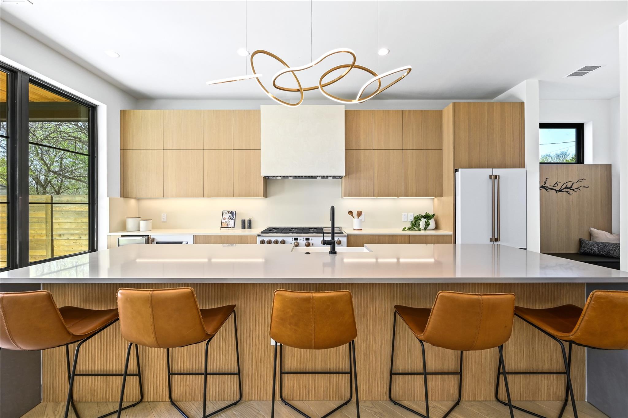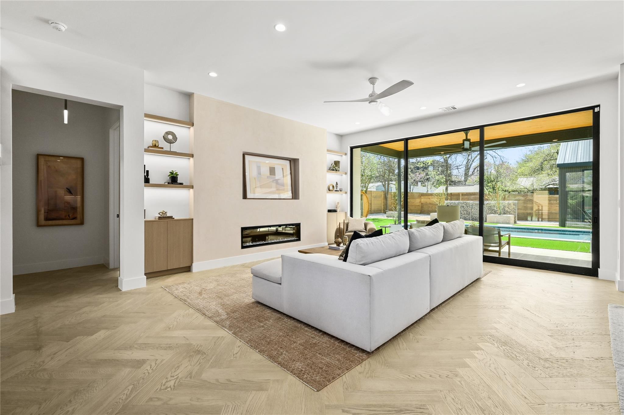 Welcome to 903 Brentwood, an exceptional luxury property nestled in the prestigious Brentwood neighborhood of Austin, TX, 78757. This extraordinary estate offers a seamless blend of refined elegance and modern luxury living. As you step into this remarkable sanctuary, you're greeted by floating stairs that lead to an upper level of sophisticated design and opulent comfort. The expansive entertainment space on the ground floor, surrounded by sliding glass doors, seamlessly integrates indoor and outdoor living—a perfect embodiment of Brentwood's desirable lifestyle. The outdoor oasis features a built-in grill, a stunning pool, and a casita with a full bath, creating a picturesque retreat for relaxation and entertainment. This residence is a haven for culinary enthusiasts, boasting a state-of-the-art kitchen with modern wood cabinetry, sleek quartz countertops, and high-end White Cafe appliances, including a 48” Gas Range, 36” Refrigerator, Ice maker, and Wine Fridge. Elegance extends throughout with 5” Brushed Oak Herringbone flooring, guiding you to the private primary suite on the same level. Open the doors from the primary bedroom to the outdoor entertainment space, offering a serene escape for moments of quiet indulgence. The spacious primary bath and walk-in closet epitomize luxury living. Ascending the floating stairs to the upper level, discover a spacious loft area for entertaining, two additional bedrooms with walk-in closets, and a shared full bath, ensuring comfort and convenience for family or guests. This property in the 78757 Austin, TX, Brentwood neighborhood, goes beyond expectations, featuring a second-floor entertainment space, a well-appointed office on the first level, a convenient mudroom off the two-car garage for organization, and a second-floor laundry room for practicality in daily living. Embrace luxury and refinement in every detail of this prestigious address.