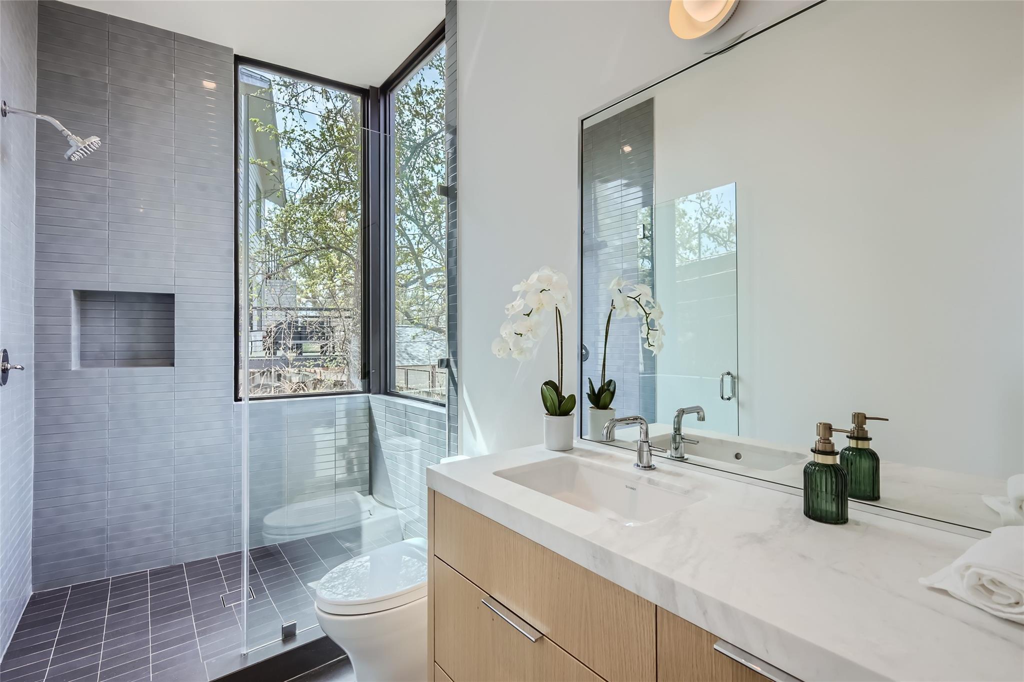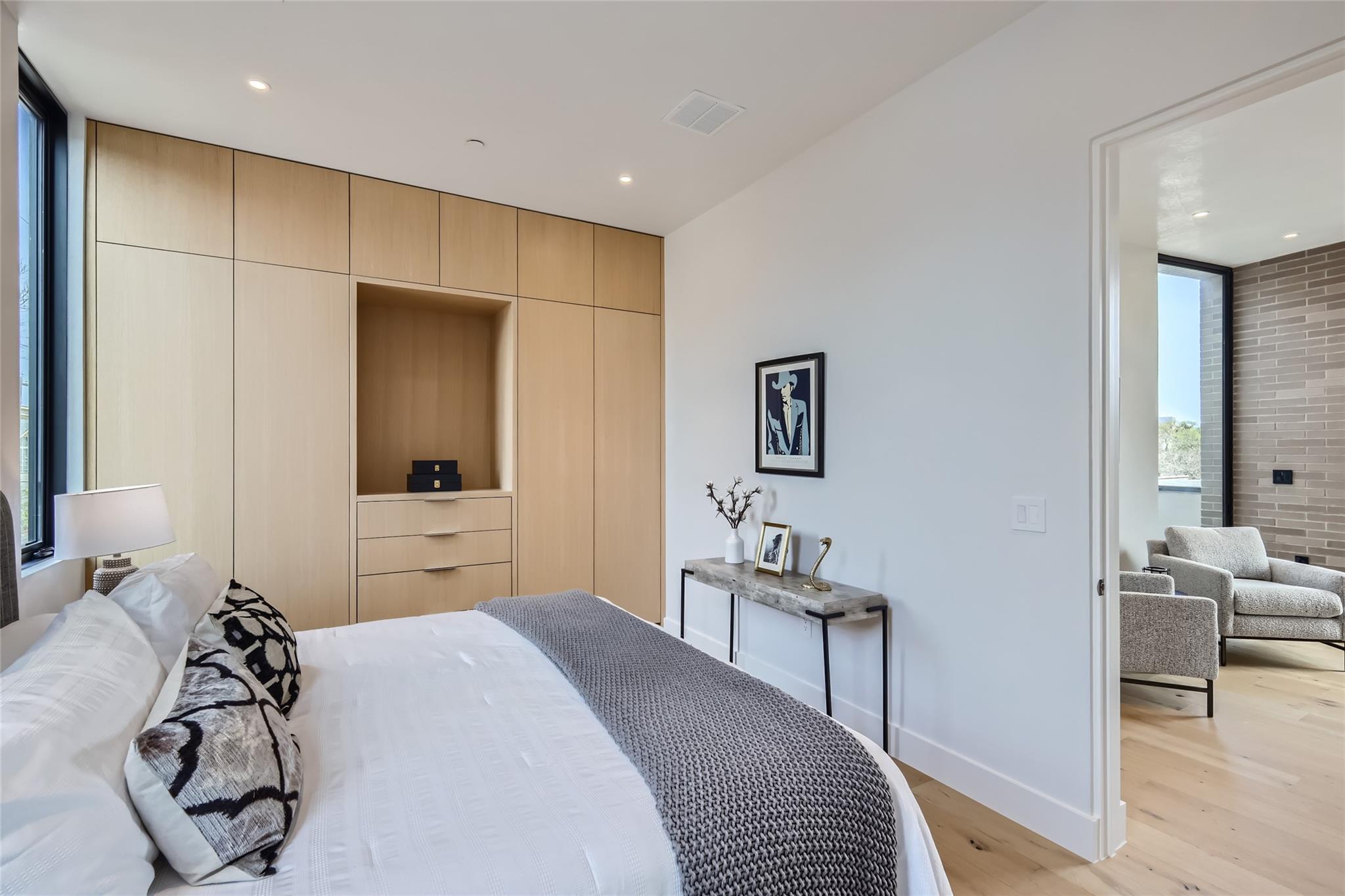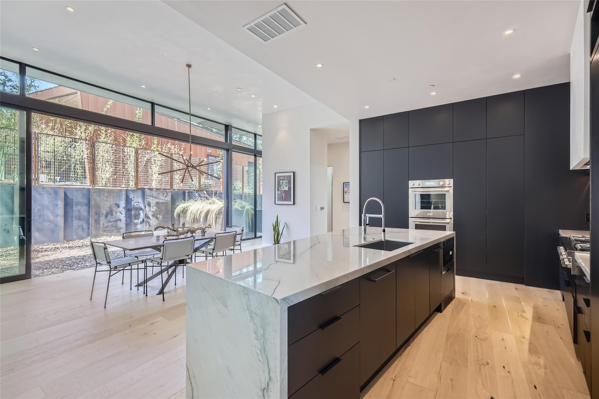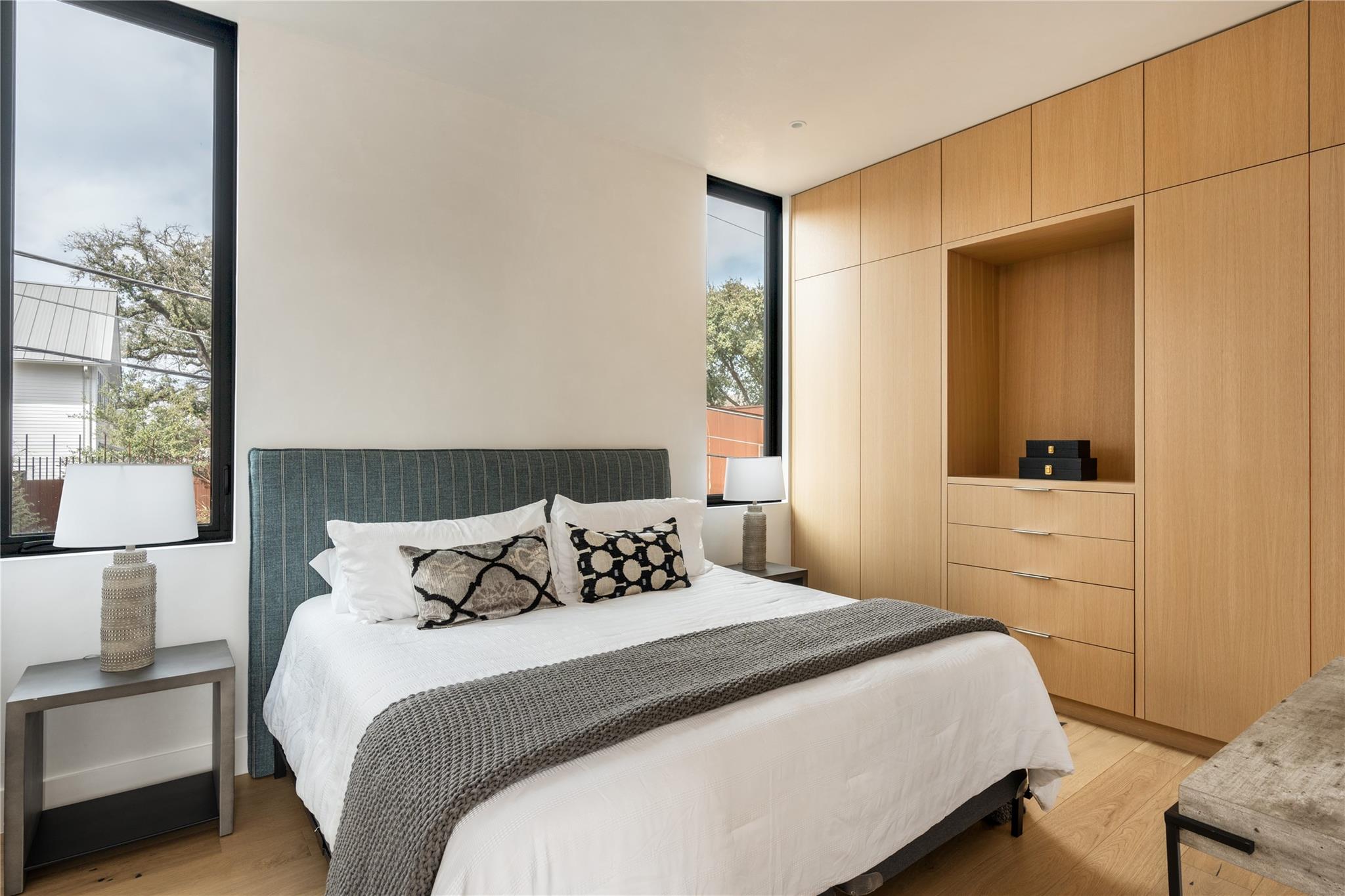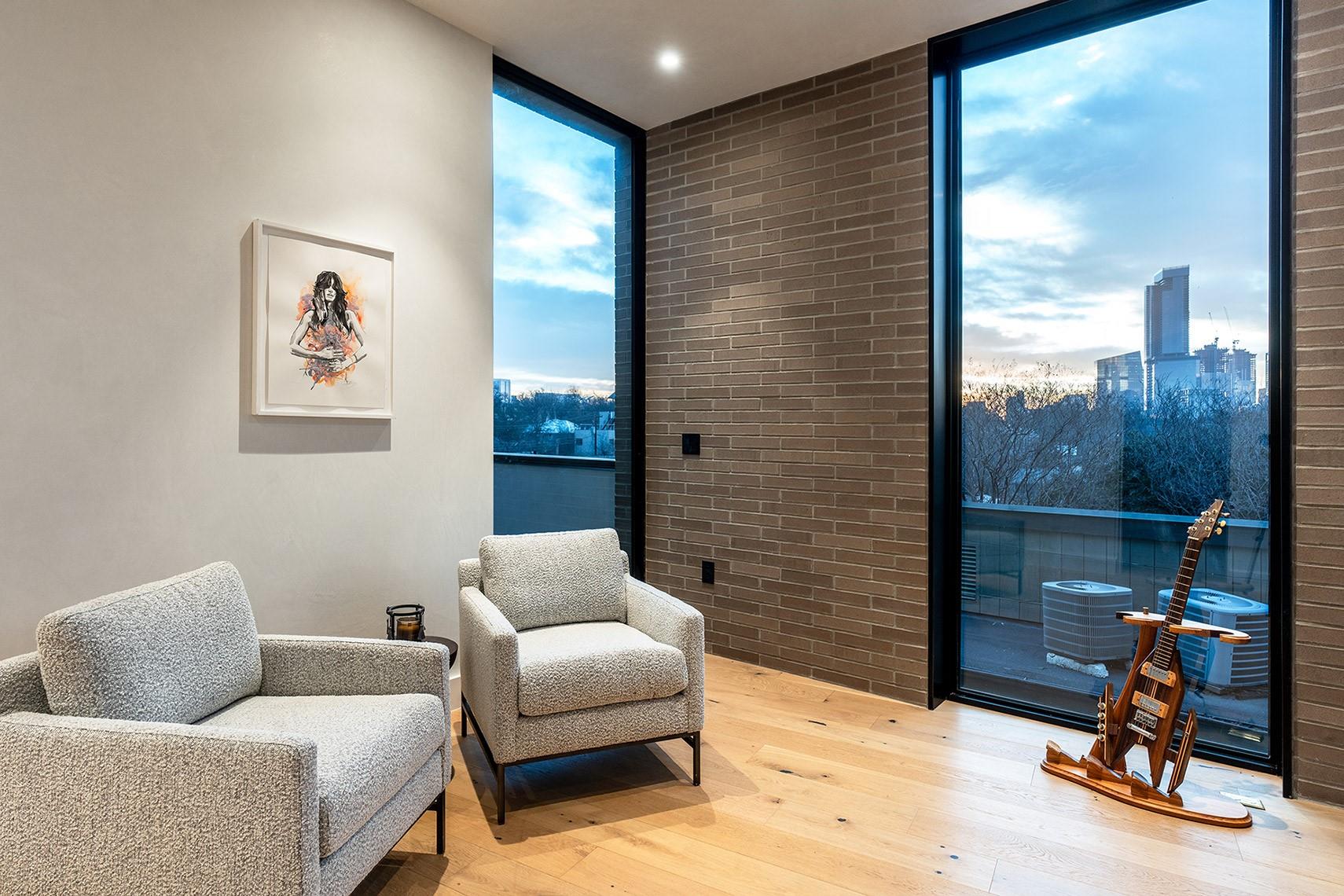 An architectural marvel, meticulously designed with a focus on both functionality and aesthetics by Dick Clark + Associates and Vinson | Radke Homes. Its prime location in the heart of Clarksville adds to its allure. The unit boasts high-end finishes throughout, creating an atmosphere of luxury and sophistication. Upon entering, one is greeted by an open and spacious floor plan that seamlessly connects the living, dining, and kitchen areas. Large windows flood the space with natural light, creating a bright and inviting ambiance. The interior features a harmonious blend of modern and contemporary elements, with sleek lines and premium materials. The kitchen is a chef's delight, equipped with top-of-the-line appliances, custom cabinetry, and exquisite countertops. It provides a perfect setting for culinary adventures and entertaining guests. The adjacent dining area offers a refined space for enjoying meals and socializing. The primary bedroom is a sanctuary of tranquility, featuring a spacious layout and elegant finishes with soaring views of the downtown skyline. Ample storage options and thoughtfully designed en-suite bathrooms provide convenience and privacy. The bathrooms showcase luxurious fixtures, premium materials, and meticulous attention to detail. Access your balcony and private rooftop deck and soak in the views of downtown and the neighboring park. This unique 2 unit development epitomizes the best of Austin's architecture and design. Its prime location, high-end finishes, and thoughtful layout create a sophisticated living space that combines luxury, comfort, and convenience in the heart of the city. Finish out includes Western 12 Ft Windows & Sliding Doors, Thermador Appliances, Venetian Plaster Walls & Ceilings, White Oak Custom Cabinetry, White Oak Engineered wood floors, Gallery L7 Light Fixtures, Waterworks Plumbing Fixtures, Ann Sacks Tile to name a few.