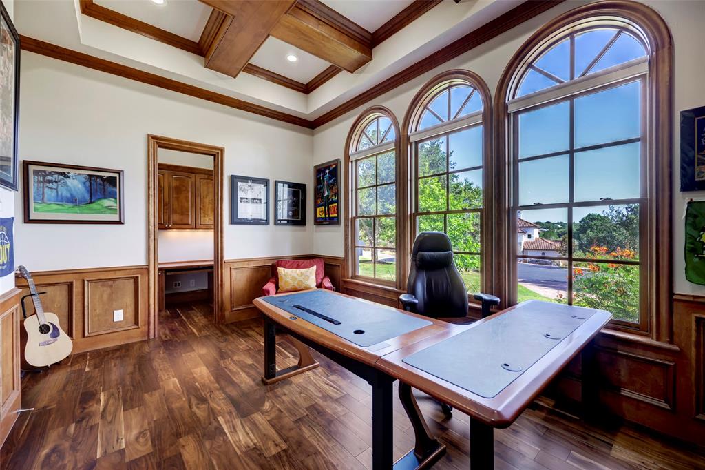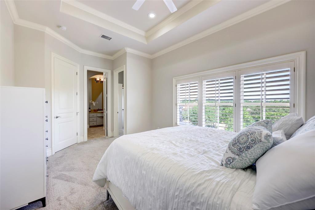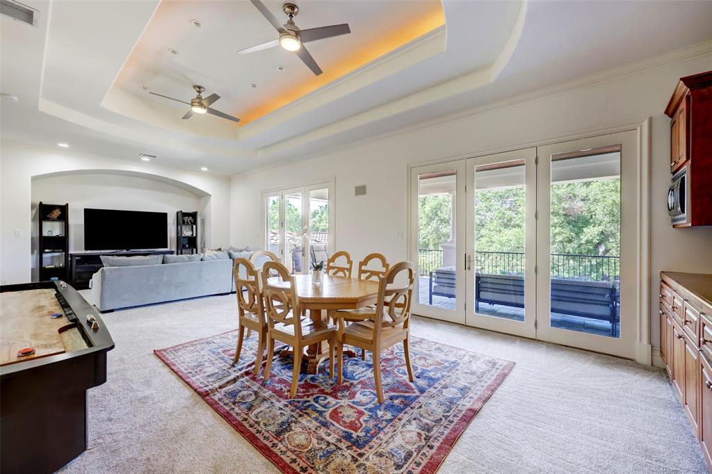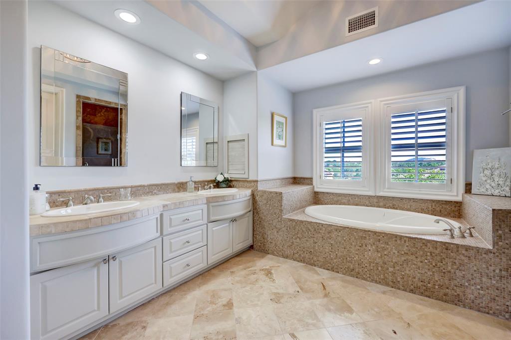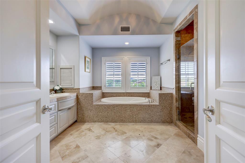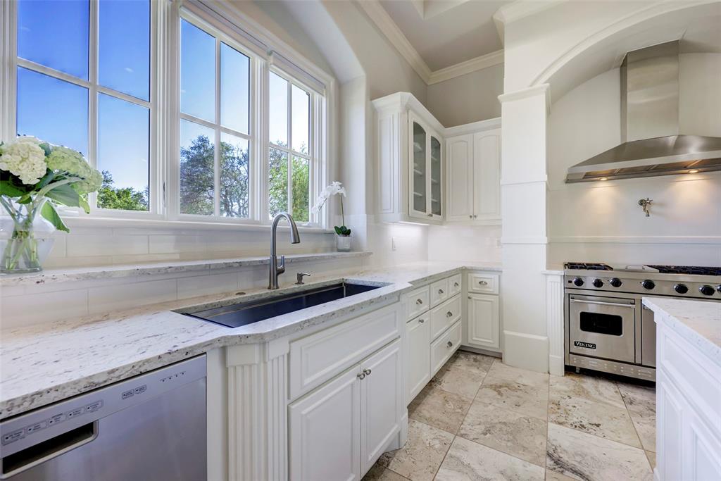 Nestled among lush greenery and rolling hills sits this picturesque Mediterranean Lakeway estate on 1.3 acres within the gated waterfront community of Costa Bella. Upon entering the recently updated retreat, you’re greeted by soaring ceilings and a light-filled sitting area that looks onto the sparkling pool. As you make your way further into the home past the impressive wine cellar and large dining room, you’ll arrive at the newly renovated kitchen, which includes a built-in refrigerator, Viking range, and an oversized granite island with breakfast bar. The kitchen flows into the family and breakfast room. The main level of the residence features a luxurious primary suite, complete with a fireplace and spa-like bathroom with a soaking tub and oversized shower. Another ensuite guest bedroom is conveniently located on the main level. As you make your way upstairs, you’ll find a spacious game room with wet-bar and covered patio, a second primary suite, and two more ensuite guest bedrooms. In addition, the home offers many amenities, including an office with handsome built-in cabinetry, a mudroom with desk and shelving, and a refreshed laundry room. As you step outside, you’ll discover a covered outdoor living, dining, and grill area that sits next to the heated pool and spa. Past the pool is a park-like yard with mature landscaping. Attached to the home is a 3-car garage with new garage doors, LiftMasters, and untouched epoxy floors. In addition, there is a 2-car garage across the driveway. Square footage of the home includes a bonus room above the garage that could be a perfect office. The home conveys with a golf cart and a boat slip, located within the neighborhood. Together, they grant instant lake access. The owners spared no expense in renovations and updates, which include a new tile roof (2021), pool equipment (2022), water heater (2023), and HVAC (2021-2023), to name a few. *All info per seller.