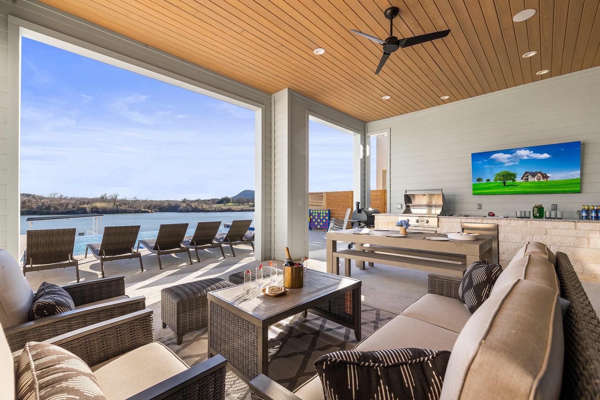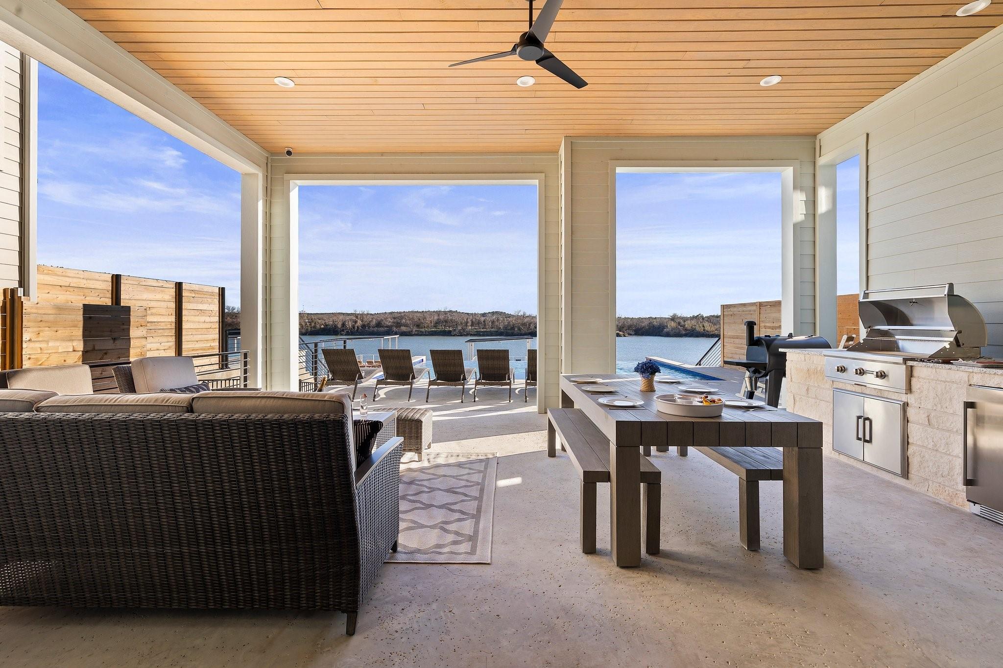 Special Financing Available at 2% Below Prime Rate on this brand-new custom-built contemporary style 4634 sq ft home located on the nicest part of the Llano River Arm of Lake LBJ. High-end features and design throughout shout out fabulous taste! Enjoy luxury vinyl plank floors, quartz & granite counter tops, specialty lighting throughout the house and gorgeous kitchen appliances. The floorplan works especially well for large families and friends. THIS IS A GREAT VRBO.THAT IS BOOKING UP QUICKLY!IMMEDIATE CASH FLOW THE DAY OF CLOSING. Five bedrooms with 51/2 baths includes cleverly placed bunk areas, a games room/ media room/ second living large poolside patio with outdoor kitchen Enjoy beautiful sunrise & sunset views up and down the lake on excellent water with little boat traffic allowing for swimming, paddle board, kayaking, and the best white bass fishing in early Spring. House plans are in the associated documents of this listing.