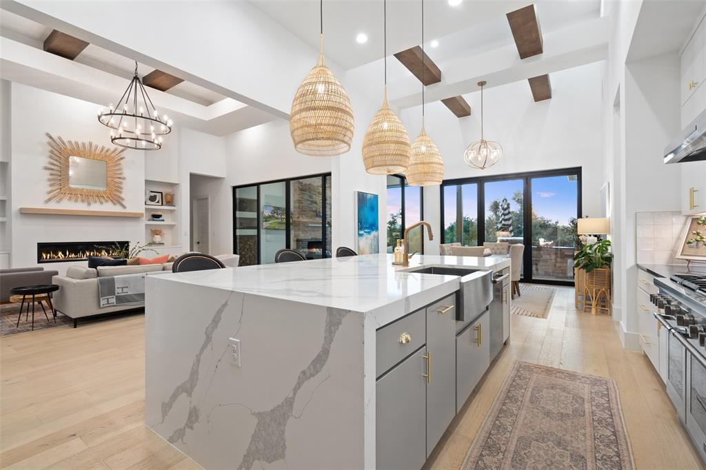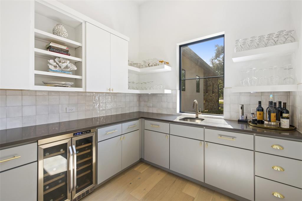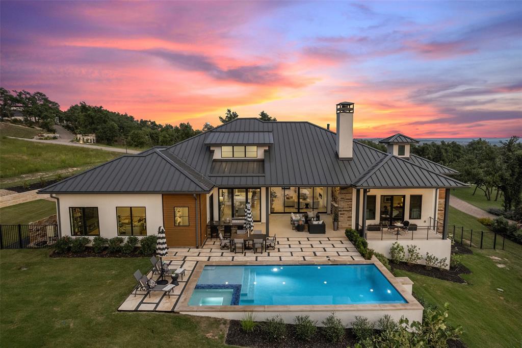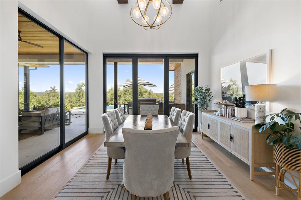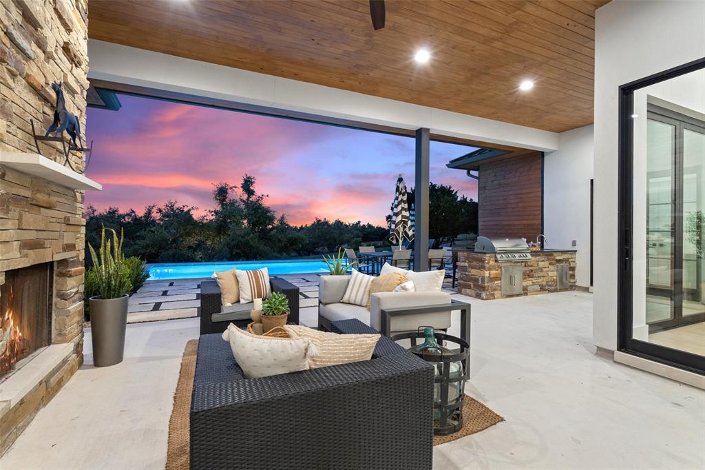 Nestled on one of Belvedere's most enchanting home-sites at just over 1.34 acres, this exquisite Hill Country-inspired Contemporary residence epitomizes refined living. Collaboration w/ renowned architect Ken Smith of Venture Four Architects, recipient of the TAHB award for "Best New Custom Home 2019," and meticulously crafted by Capital Hills Development Corporation. Spanning 4,638 sf, this single-story dwelling combines elegance w/ functionality. Featuring custom millwork that accentuates each space w/ meticulous artistry. Ann Sacks tiles in the powder room bath & Phillip Jeffries wallpaper infuse the atmosphere w/ a touch of lavishness. Artisan-quality custom millwork & stonework, solid core doors throughout, and Marvin windows are testaments to the commitment to excellence. The gourmet kitchen boasts a remarkable suite of professional-grade appliances. Three stunning masonry fireplaces serve as captivating focal points. Step into the sunlit open-concept floor plan, where soaring ceilings reaching up to 20 feet and walls of glass with accordion doors seamlessly merge the indoor & outdoor spaces. The covered outdoor living space offers a haven for entertaining guests or savoring quiet moments overlooking the sparkling pool and spa while enjoying the breathtaking views of the surrounding hill country. A spacious 4-car garage, providing ample room for vehicles and the possibility of a workshop. Complete with cutting-edge smart home technology, featuring a wireless security system with cameras, NEST thermostats, wireless control for pool features, and pre-wiring for electric vehicles. Within a gated community, this residence offers both privacy and convenience. Its proximity to essential amenities, highly acclaimed schools, and Austin's renowned wineries, vineyards, and breweries ensures an unparalleled lifestyle. With downtown Austin just 35 minutes away, immerse yourself in the enchantment of Austin's hill country while embracing the pinnacle of dream living.