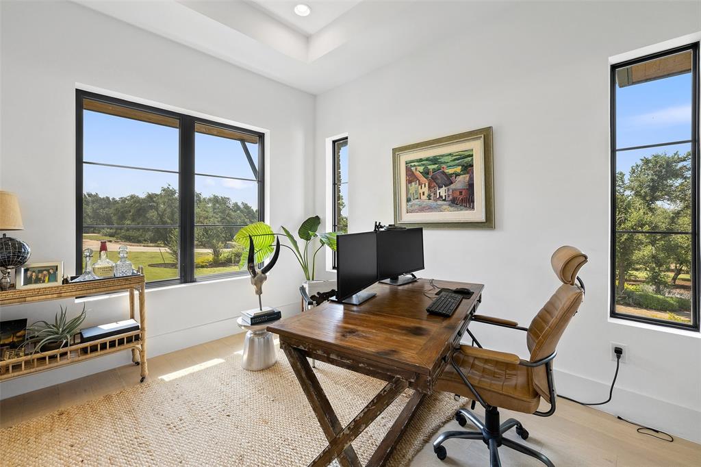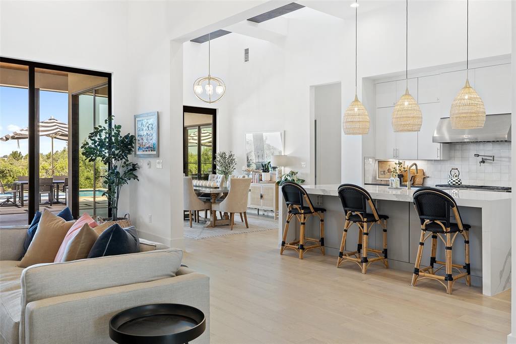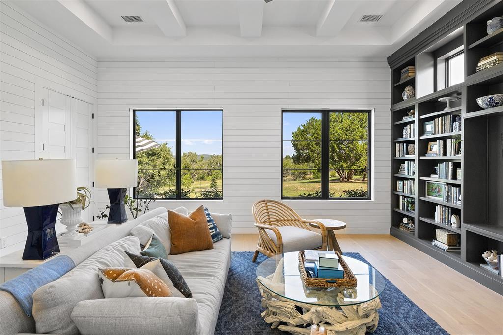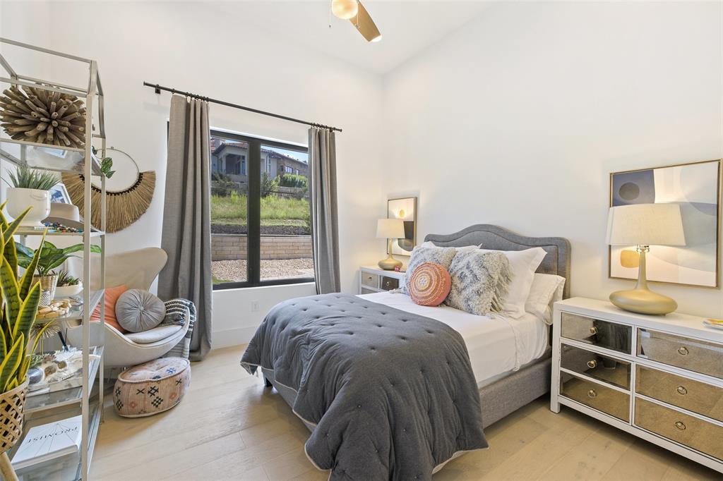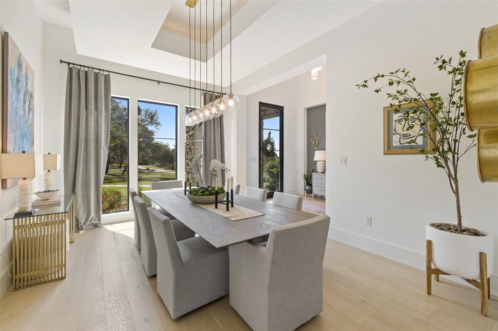 Nestled on one of Belvedere's most enchanting home-sites at just over 1.34 acres, this exquisite Hill Country-inspired Contemporary residence epitomizes refined living. Collaboration w/ renowned architect Ken Smith of Venture Four Architects, recipient of the TAHB award for "Best New Custom Home 2019," and meticulously crafted by Capital Hills Development Corporation. Spanning 4,638 sf, this single-story dwelling combines elegance w/ functionality. Featuring custom millwork that accentuates each space w/ meticulous artistry. Ann Sacks tiles in the powder room bath & Phillip Jeffries wallpaper infuse the atmosphere w/ a touch of lavishness. Artisan-quality custom millwork & stonework, solid core doors throughout, and Marvin windows are testaments to the commitment to excellence. The gourmet kitchen boasts a remarkable suite of professional-grade appliances. Three stunning masonry fireplaces serve as captivating focal points. Step into the sunlit open-concept floor plan, where soaring ceilings reaching up to 20 feet and walls of glass with accordion doors seamlessly merge the indoor & outdoor spaces. The covered outdoor living space offers a haven for entertaining guests or savoring quiet moments overlooking the sparkling pool and spa while enjoying the breathtaking views of the surrounding hill country. A spacious 4-car garage, providing ample room for vehicles and the possibility of a workshop. Complete with cutting-edge smart home technology, featuring a wireless security system with cameras, NEST thermostats, wireless control for pool features, and pre-wiring for electric vehicles. Within a gated community, this residence offers both privacy and convenience. Its proximity to essential amenities, highly acclaimed schools, and Austin's renowned wineries, vineyards, and breweries ensures an unparalleled lifestyle. With downtown Austin just 35 minutes away, immerse yourself in the enchantment of Austin's hill country while embracing the pinnacle of dream living.