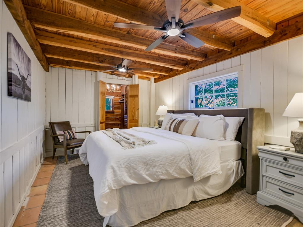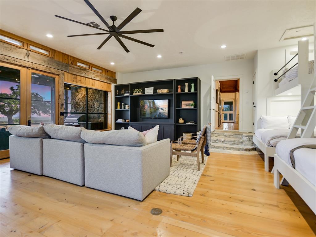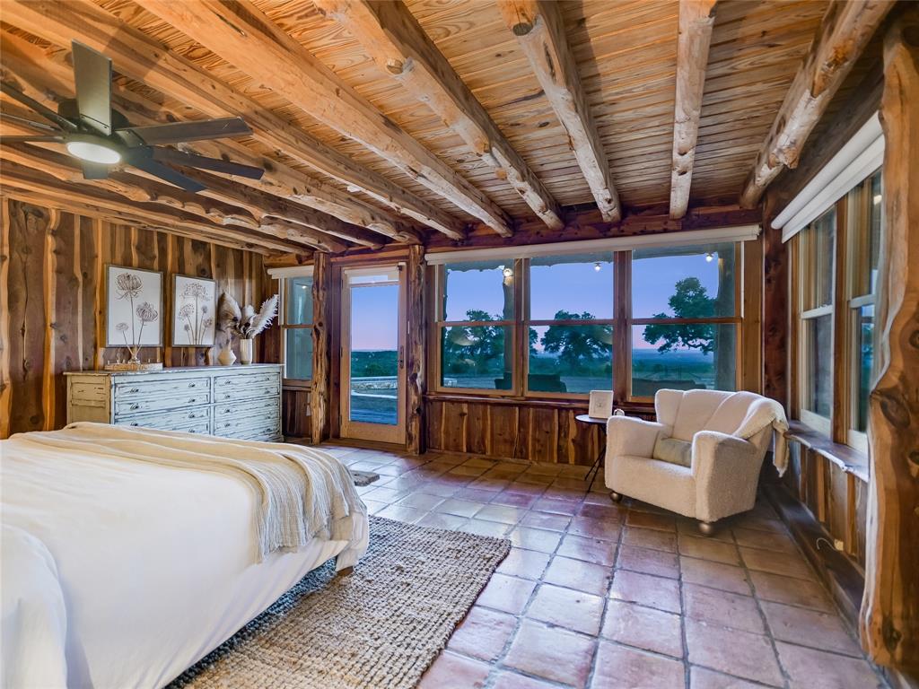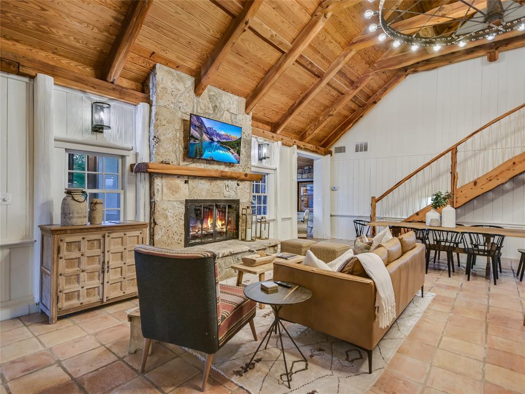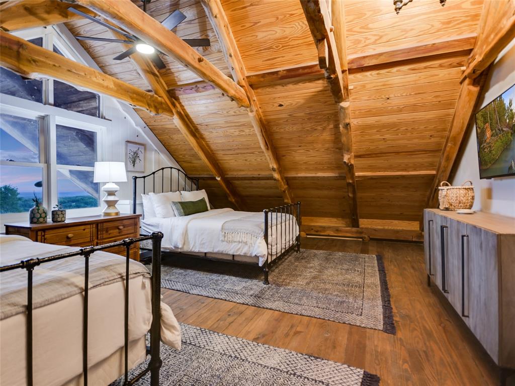 UNRESTRICTED, HIGH on a Hilltop, 15 minutes from Wimberley area attractions, THE OVERLOOK, an 11.88 acre private ranch, income producing short term rental, has sweeping views of the Wimberley Valley and surrounding Texas Hill Country. Large updated farmhouse with wrap around porches, spacious bunk room with entertainment center. 5 bdrms, 4 baths. Pictures barely describe the old saltillo and plank floors, amazing stone work over kitchen range top, creative woodwork in ceilings and beams, enhanced with current owner's magic touch. Sunrise, sunsets, breezes with multiple entertaining areas, inside and outside. Enjoy the lap pool with a view by day and dark sky stars at night. Make your way through the private gate - up the winding drive to this completely fenced and cross fenced property for your seclusion. Outbuildings include storage, a workshop, art space and stable for animals. 7 - 2500 gallon water collection tanks. AG EXEMPT.