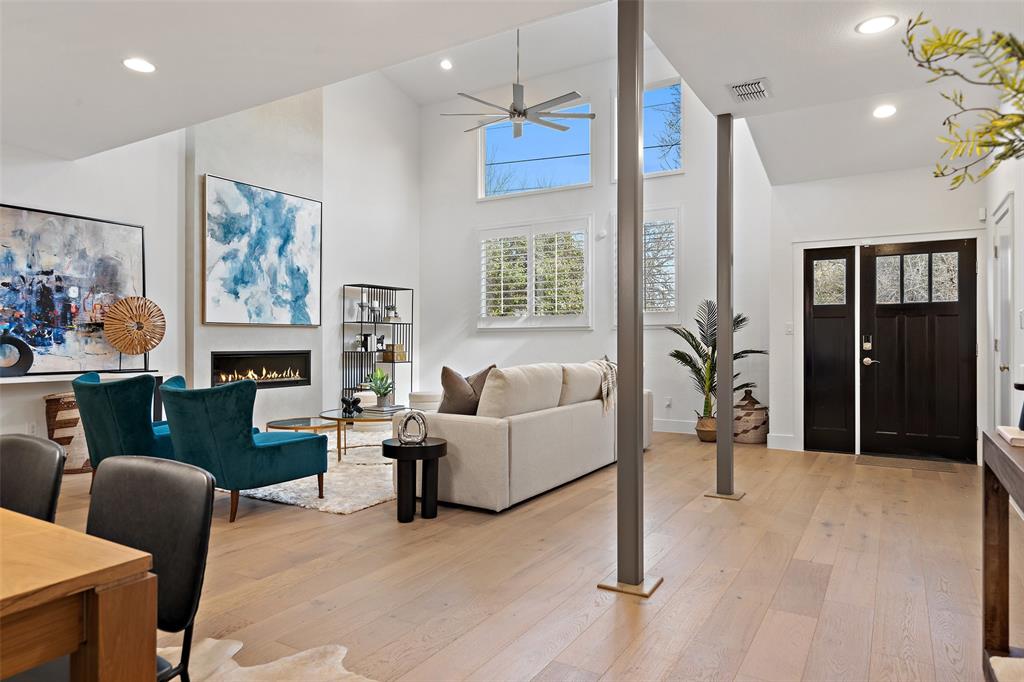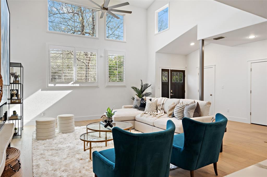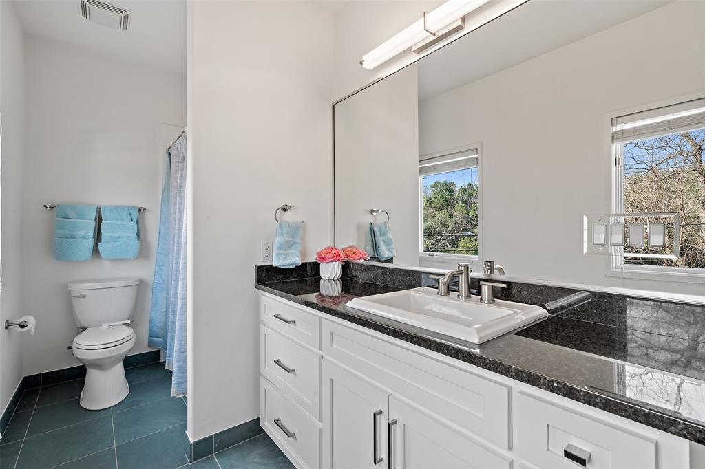 A well-appointed, low maintenance Deep Eddy home for the active Austinite. The open floorplan home boasts sun-filled rooms with an entertaining-ready kitchen. Renovated in 2020 by ButterLutz, the home boasts new French oak floors, designer lighting, a grand 30 foot tall fireplace, plantation shutters and designer wallpaper. The first floor primary suite has a newly-designed oversized closet with luxurious built-ins and an oversized bathroom, complete with a makeup counter and dual-head shower. The upstairs has a second open living area that is encased with a glass railing. There are also three large carpeted bedrooms and two renovated bathrooms. Designed for max function, the home has an enclosed two-car garage, a mudroom, storage for kayaks (hello Lady Bird Lake!), a second refrigerator, and solar panels. The yard was recently re-landscaped with new over-sized modern flower beds and winter-proofed plants. The backyard oasis is complete with a newly-planted green wall. Steps from Lady Bird Lake, Deep Eddy Pool, MUNY, HEB, Westenfield and Maudies, the home is well situated for the good life. To access disclosures & other details about the property, got to: https://wkf.ms/45fyW5l