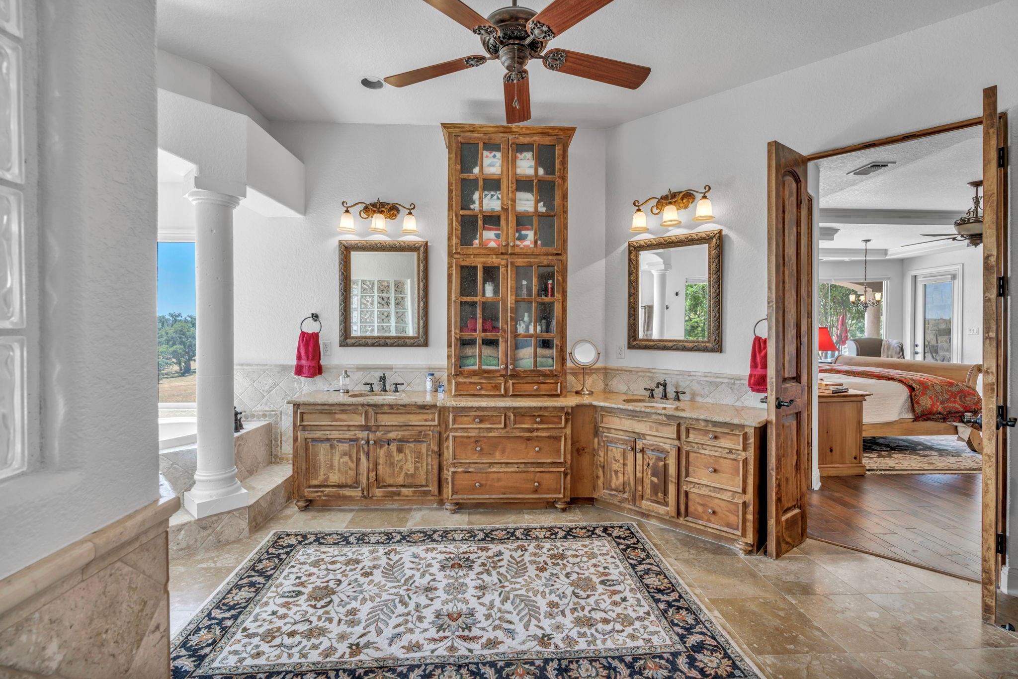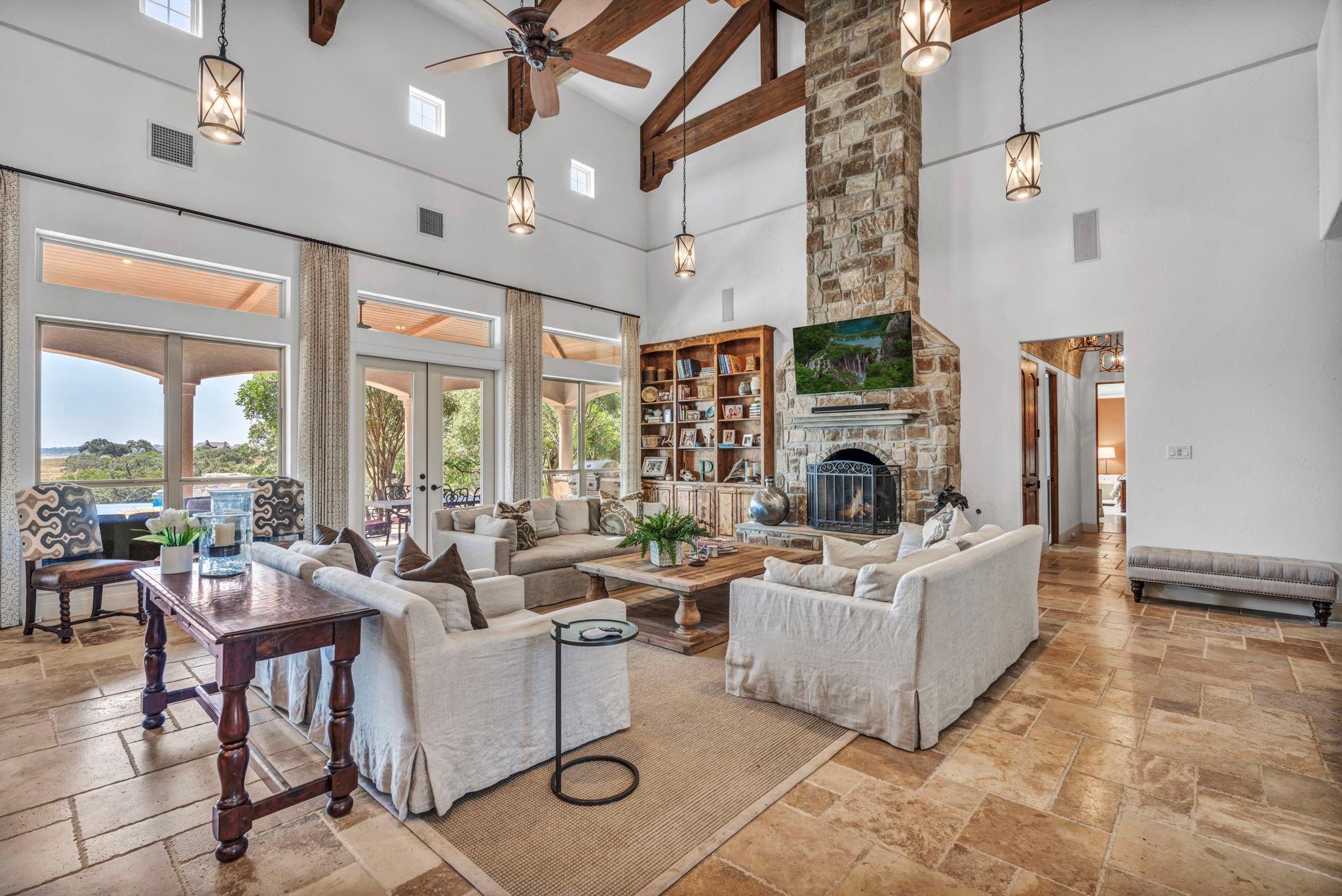 | Interior Features | Bar, Bookcases, Breakfast Bar, Built-in Features, Beamed Ceilings, Cathedral Ceiling(s), Central Vacuum, Granite Counters, Double Vanity, Kitchen Island, Open Floorplan, Pantry, Primary Bedroom on Main, Sound System, Storage, Walk-In Closet(s) | |