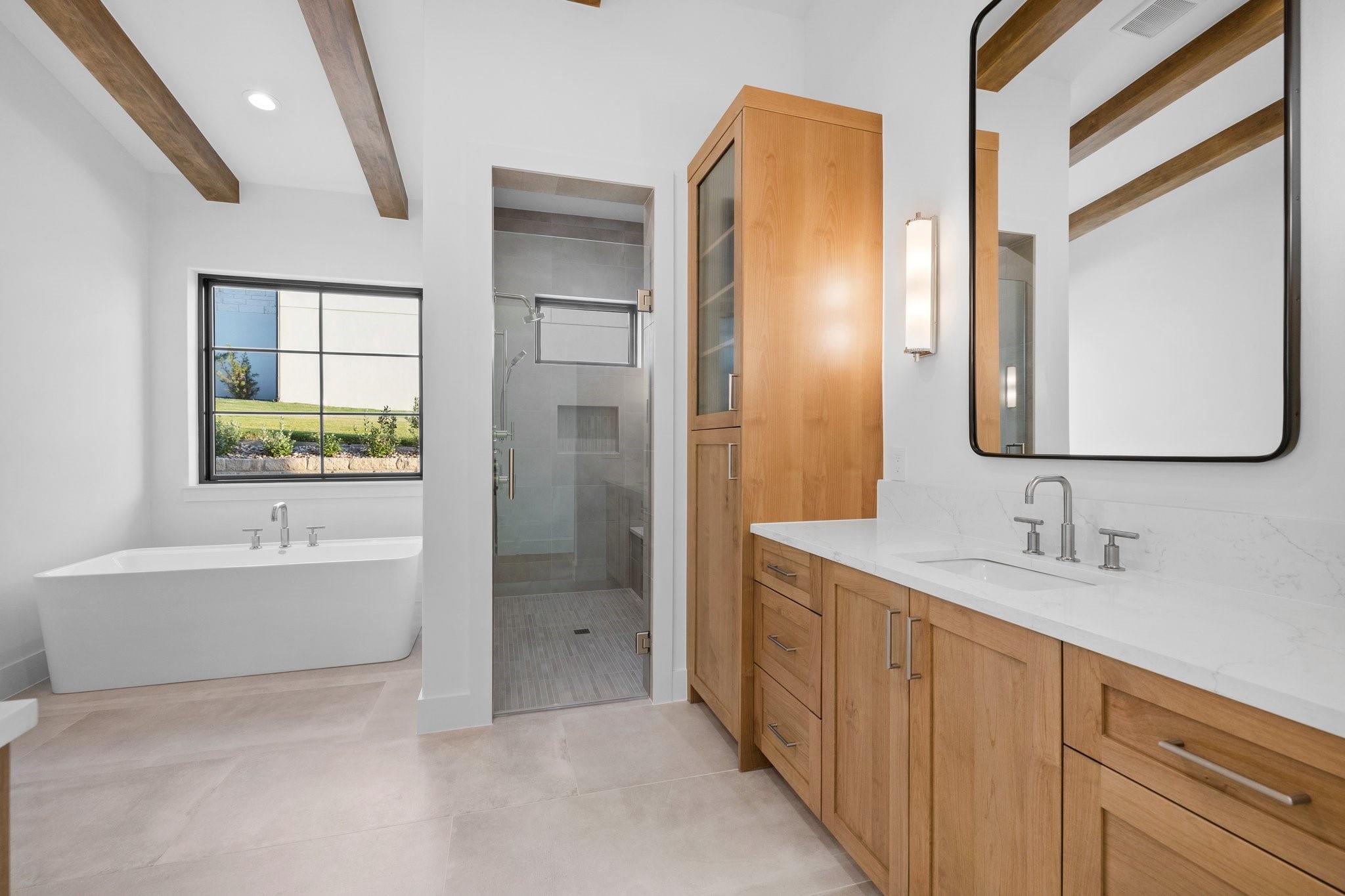 | Interior Features | Built-in Features, Ceiling Fan(s), Beamed Ceilings, High Ceilings, Vaulted Ceiling(s), Granite Counters, Quartz Counters, Double Vanity, Electric Dryer Hookup, Gas Dryer Hookup, Entrance Foyer, In-Law Floorplan, Interior Steps, Kitchen Island, Natural Woodwork, Open Floorplan, Primary Bedroom on Main, Recessed Lighting, Soaking Tub, Walk-In Closet(s), Wired for Data, Wired for Sound | |