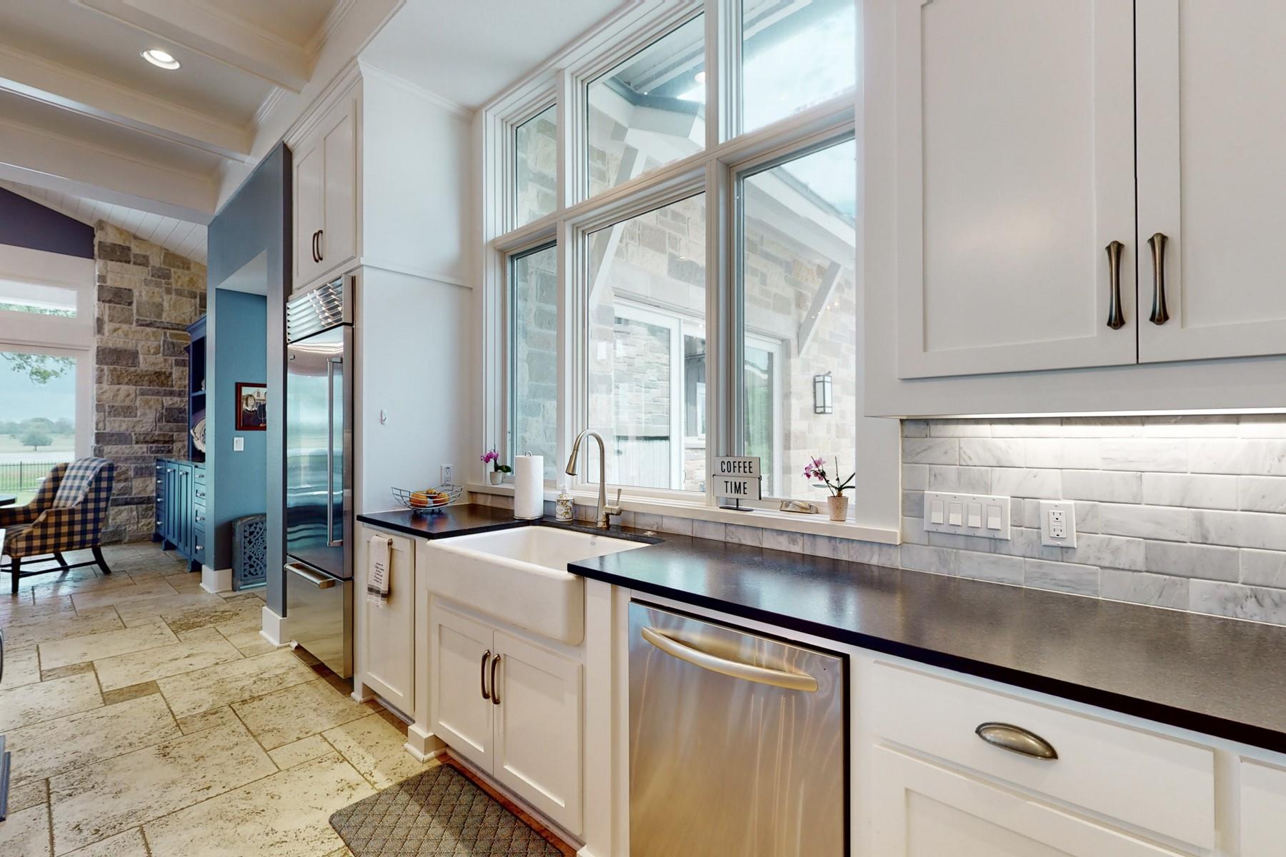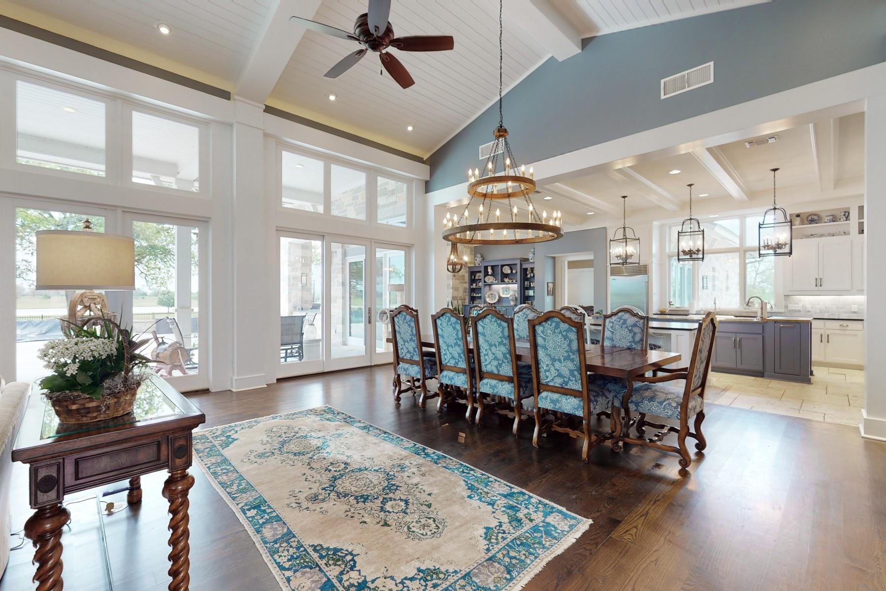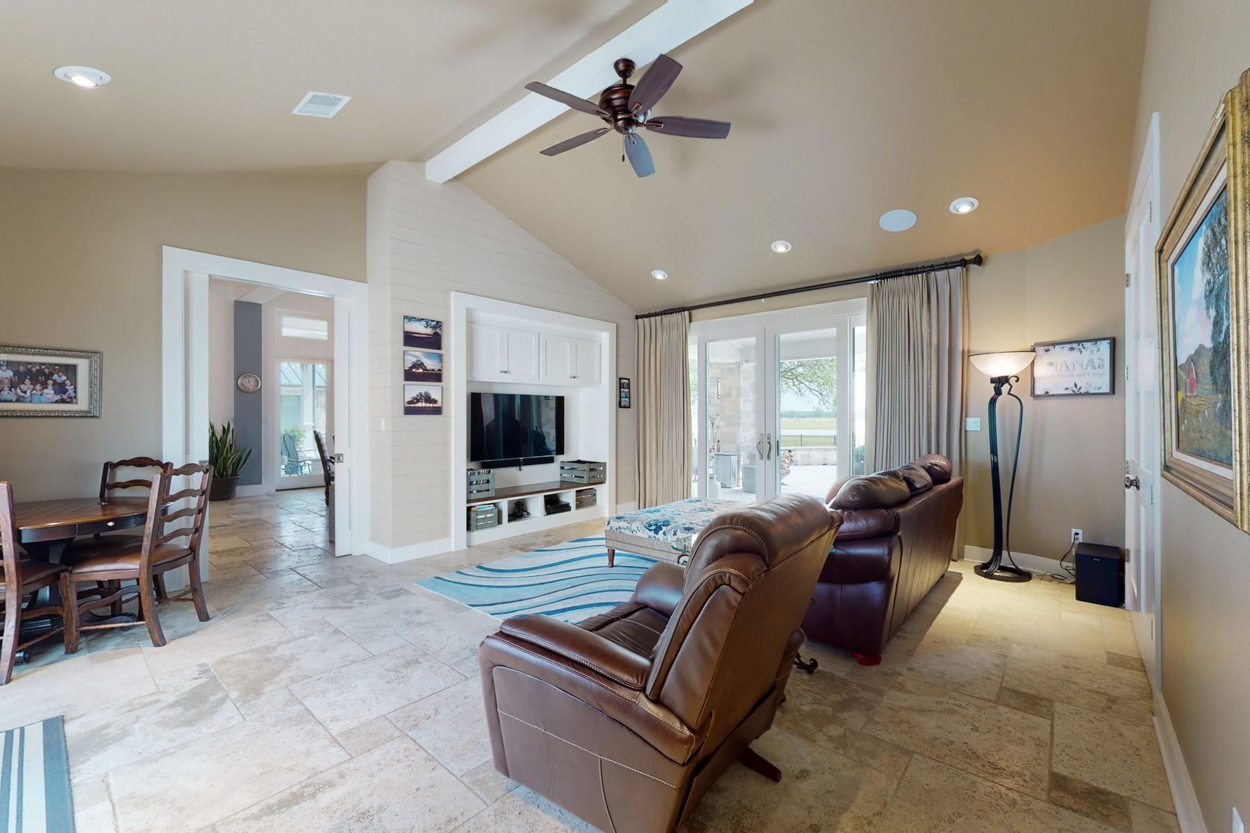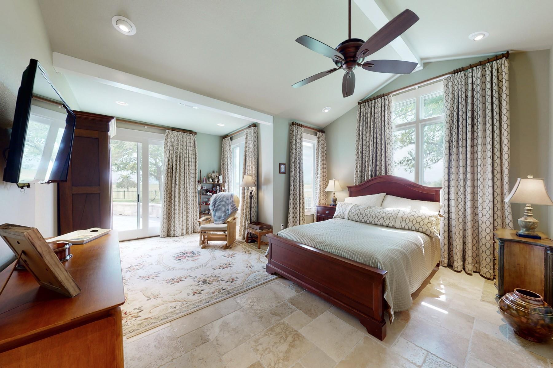 Heaven is not that far away with this gorgeous custom home with all the bells and whistles and 175 acres of land! It looks like a park with its lake and ponds. When you drive up to this home you will immediately notice the beautiful Austin Stone and amazing landscaping. No details were left out of this custom built home with an open concept living area and an oversized Chef kitchen complete with 2 islands, farmhouse sink, gas stove with double ovens, pendulum lights and a pantry you will get lost in! The pantry is home to an extra refrigerator, wine cooler and SO much extra space! Two dining areas two living areas and a separate office. The family room has vaulted ceilings with white shiplap, built in book shelves, recessed lighting, an oversized Austin Stone fireplace and a wall of windows for natural light. The primary bedroom closet is a dream come true and offers an abundance of space, built in dressers and a lighted vanity. The Austin Stone is showcased throughout the home in the study and primary bedroom for added detail and warmth. This home has extensive tiled work. Two garages with six bays, relax on your back patio overlooking the sparkling pool and lake with an outdoor kitchen, fire pit and plenty of space to host parties or family gatherings. This property comes with an oversized barn, greenhouse, and a smaller storage building. The property has pipe fencing at the entry way, perimeter fencing and the house is surrounded by (metal) fencing. Look no further for your perfect dream home because this one will have everything!