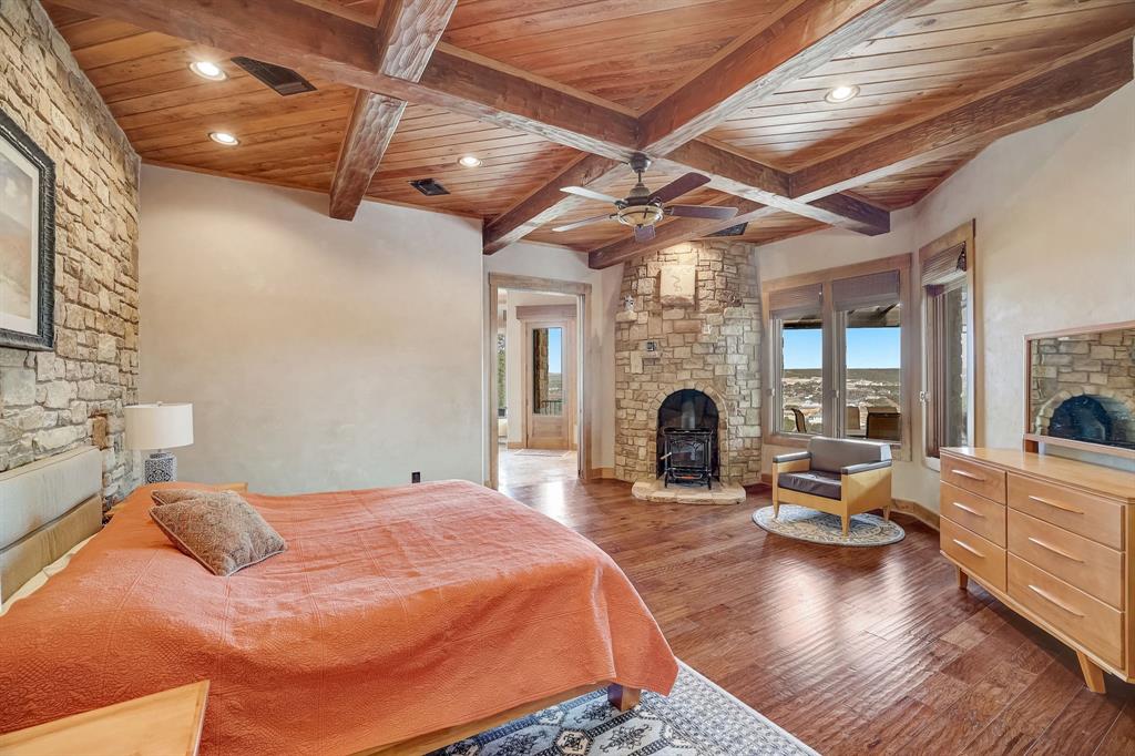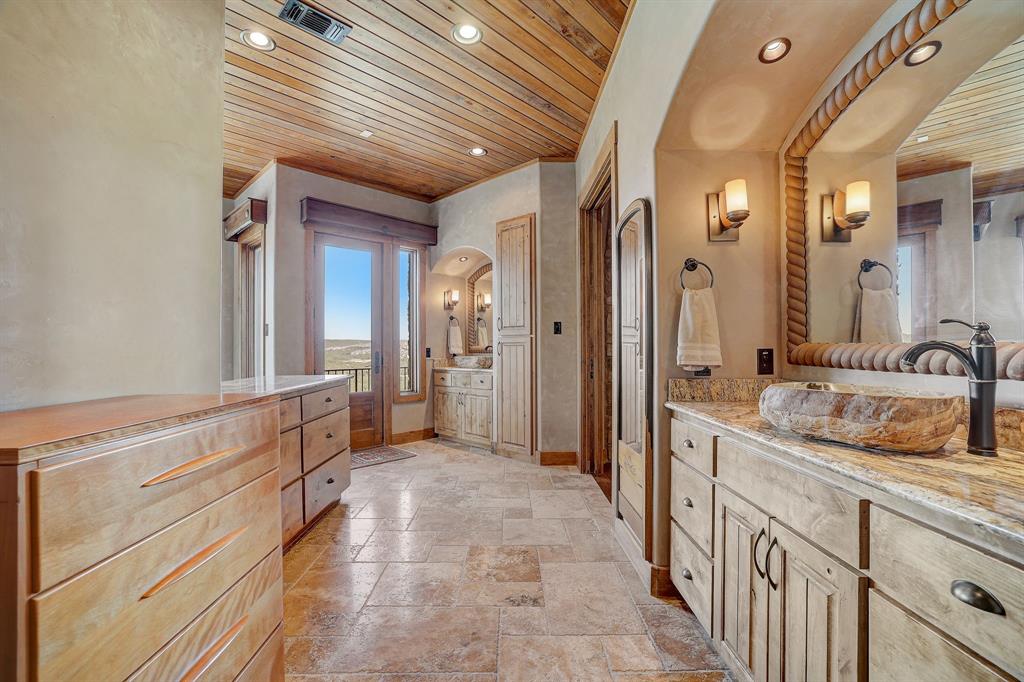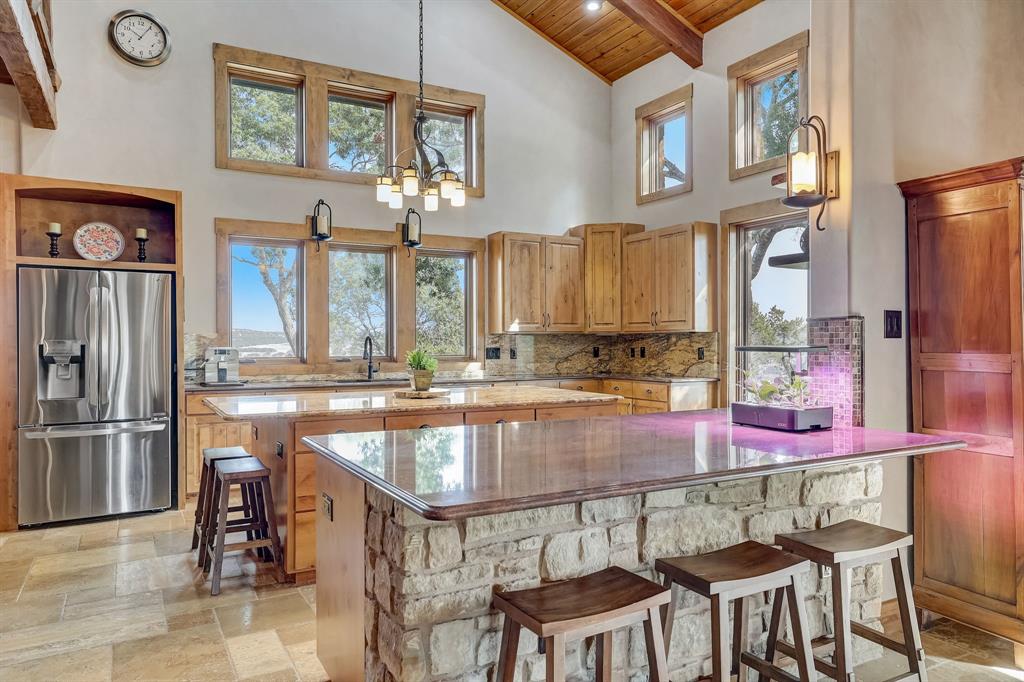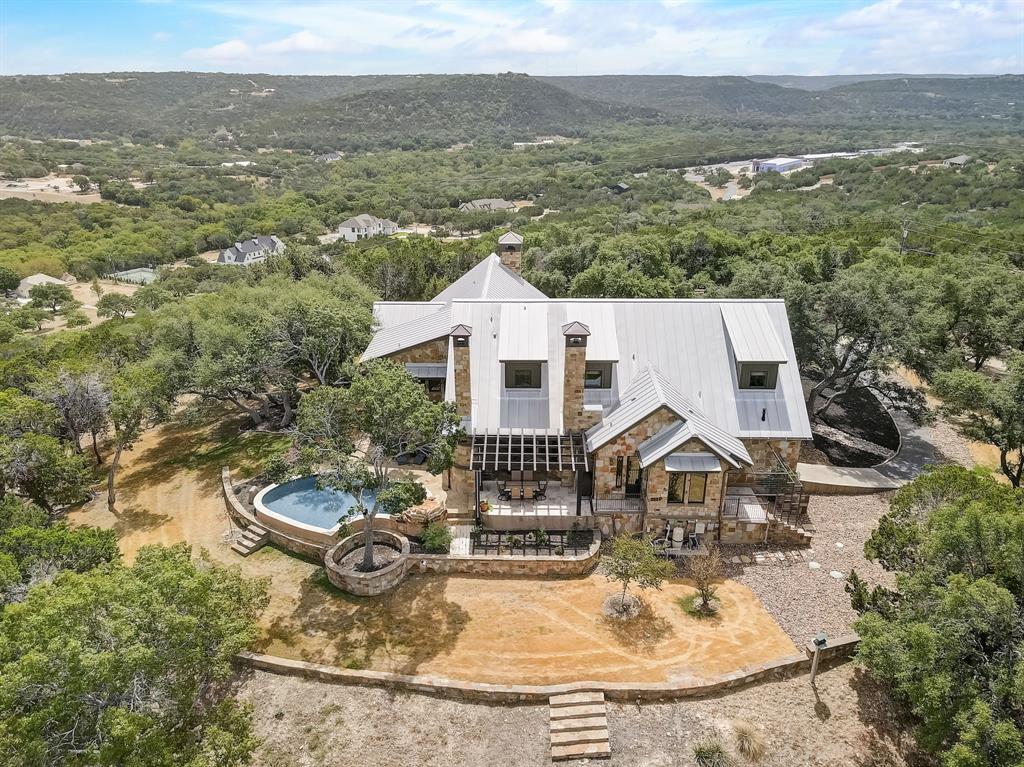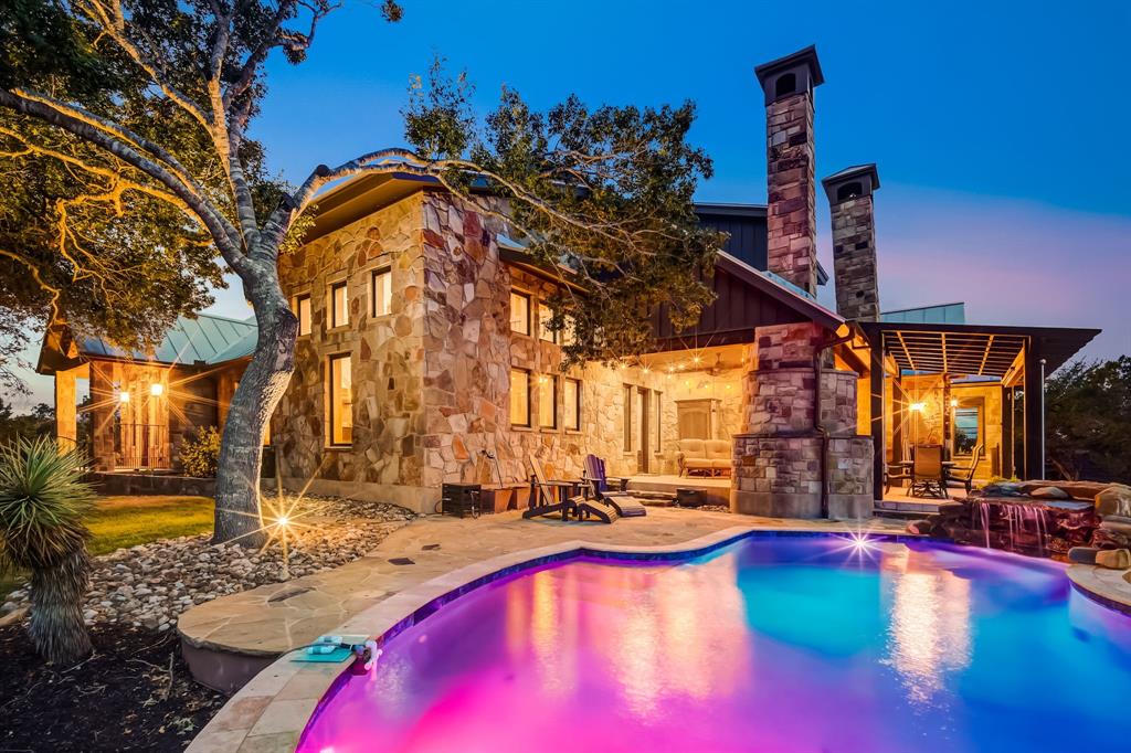 Perched atop a tranquil hill, this stunning two-story estate boasts breathtaking panoramic views of the Texas hill country! An incredibly rare custom-built home, it commands a sprawling 8.5 acres of natural beauty within the prestigious gated community of Lone Mountain Ranch. The private backyard oasis is absolutely spectacular, where a captivating pool and waterfall blend seamlessly with the surrounding landscape, inviting you to unwind while gazing upon the majestic views! Crafted with impeccable attention to detail, this home exudes quality in every aspect. The main floor unveils an open plan family room adorned with a rustic stone fireplace. Adjacent, the dining room and chef’s gourmet kitchen provide an ideal setting for hosting gatherings, with the kitchen offering a generous center island, granite countertops, pantry, and stainless steel appliances. The wine cellar adds a touch of sophistication, great for wine enthusiasts and collectors. The main floor further indulges with a gracious primary bedroom connected to a spa-like ensuite bath. Two additional secondary bedrooms on the main level are connected by a Jack-and-Jill bath. Ascend to the upper level to discover a versatile loft area and a spacious game room, complete with its own full bath. The massive bonus room can be easily transformed into two separate bedrooms. This extraordinary property encompasses more than just a home. A separate guest house with its own entrance, living area and full bath provides a retreat for visitors. An RV barn, a cowboy kitchen with a BBQ pit, and a gardener's dream greenhouse cater to your diverse interests. The 900-foot paved driveway takes you to your private haven, offering both privacy and grandeur. Located just minutes to Lake Travis and Cedar Park, this property is convenient to shopping, dining, entertainment options and all the amenities of hill country living. Zoned for the acclaimed Leander ISD. See 3D tour and aerial video. Call to see this treasure!