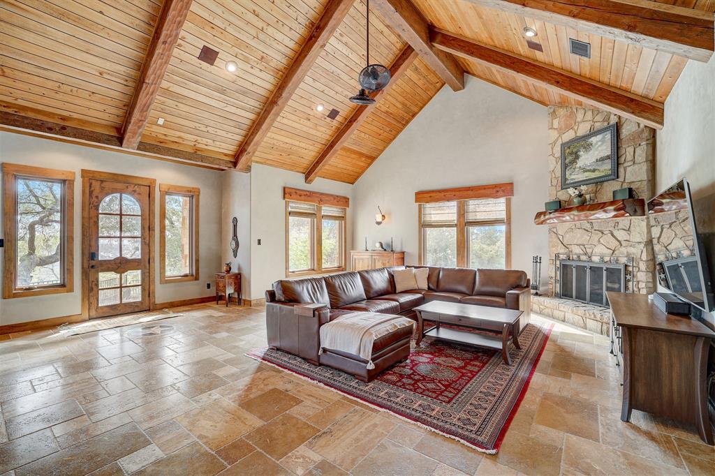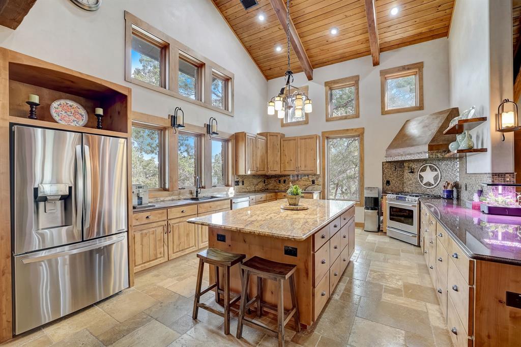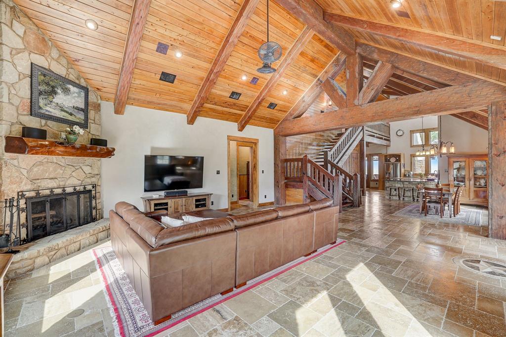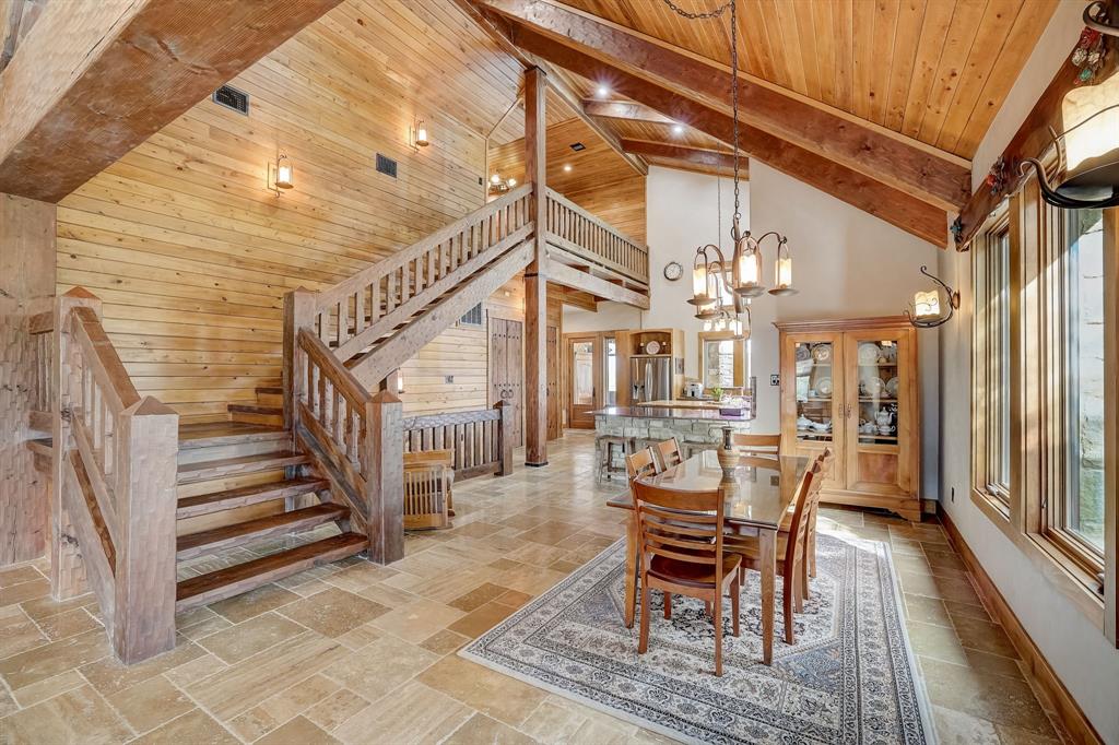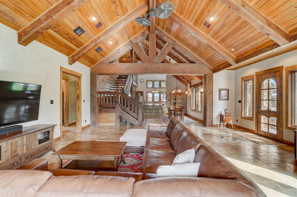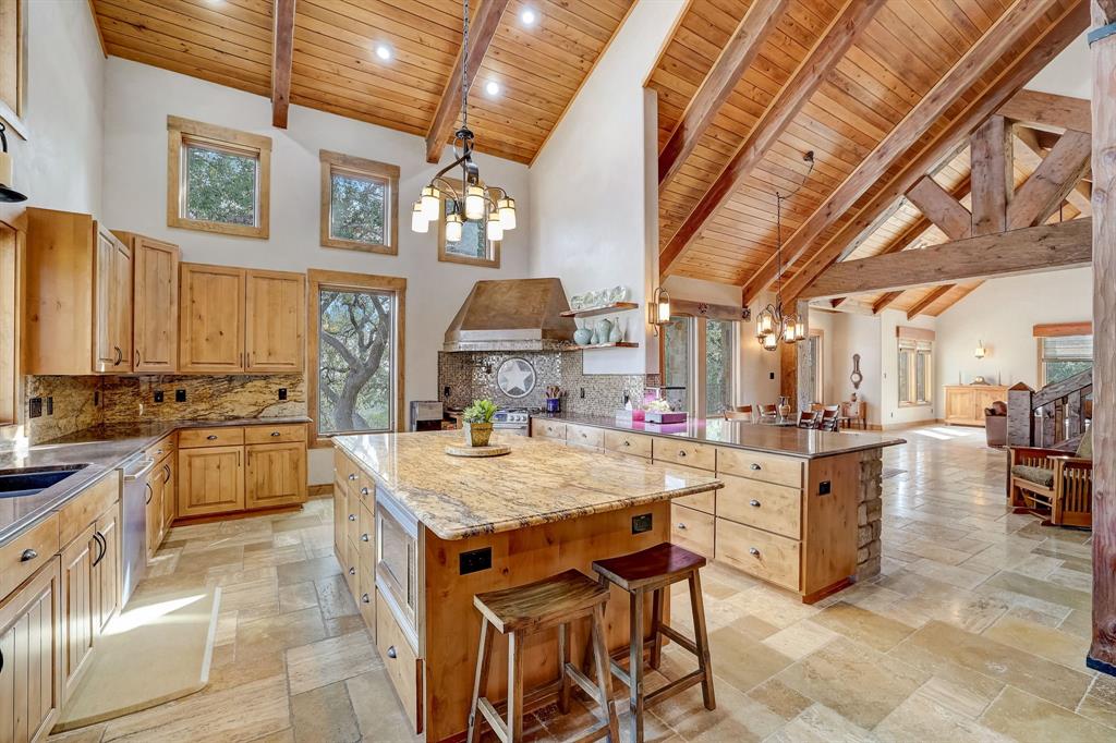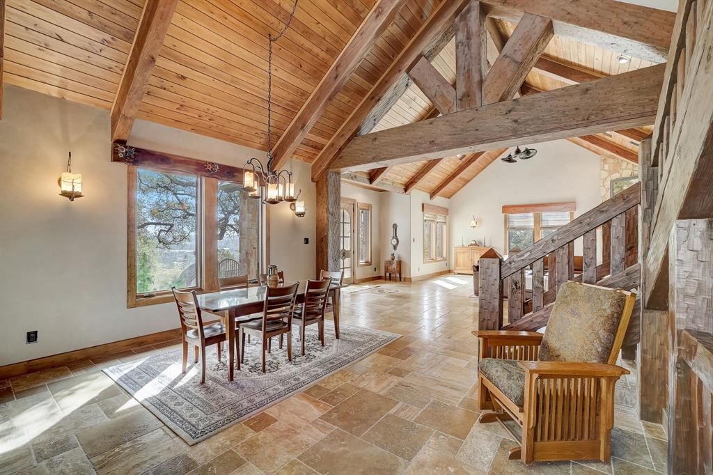 | Interior Features | Breakfast Bar, Beamed Ceilings, Cathedral Ceiling(s), High Ceilings, Vaulted Ceiling(s), Chandelier, Granite Counters, Stone Counters, Electric Dryer Hookup, Interior Steps, Multiple Living Areas, Open Floorplan, Pantry, Primary Bedroom on Main, Recessed Lighting, Walk-In Closet(s), Washer Hookup, Wired for Sound | |