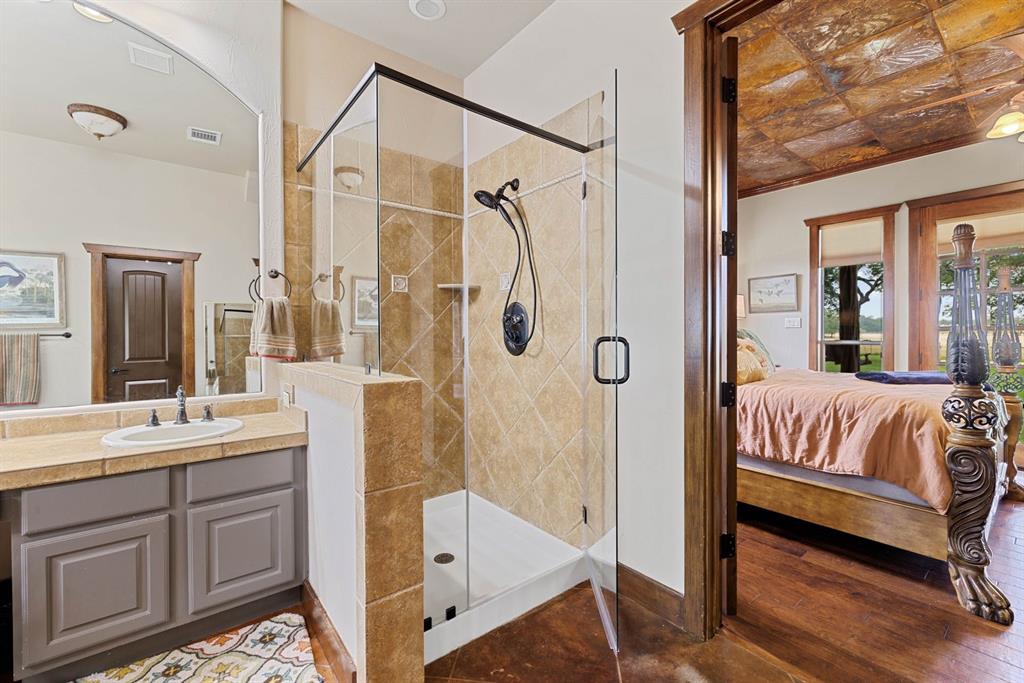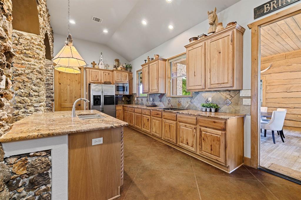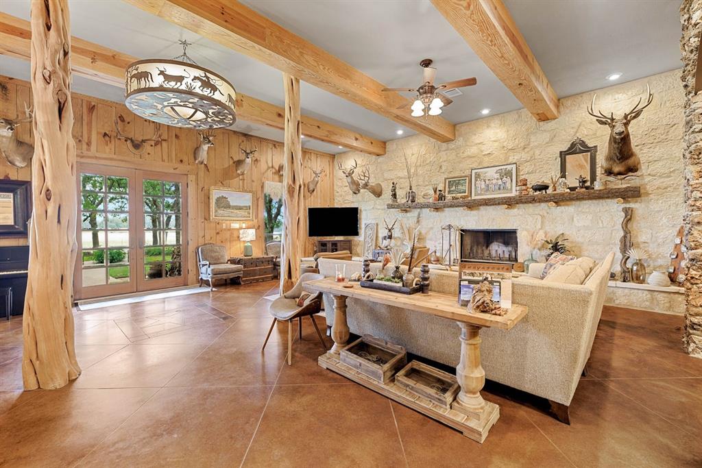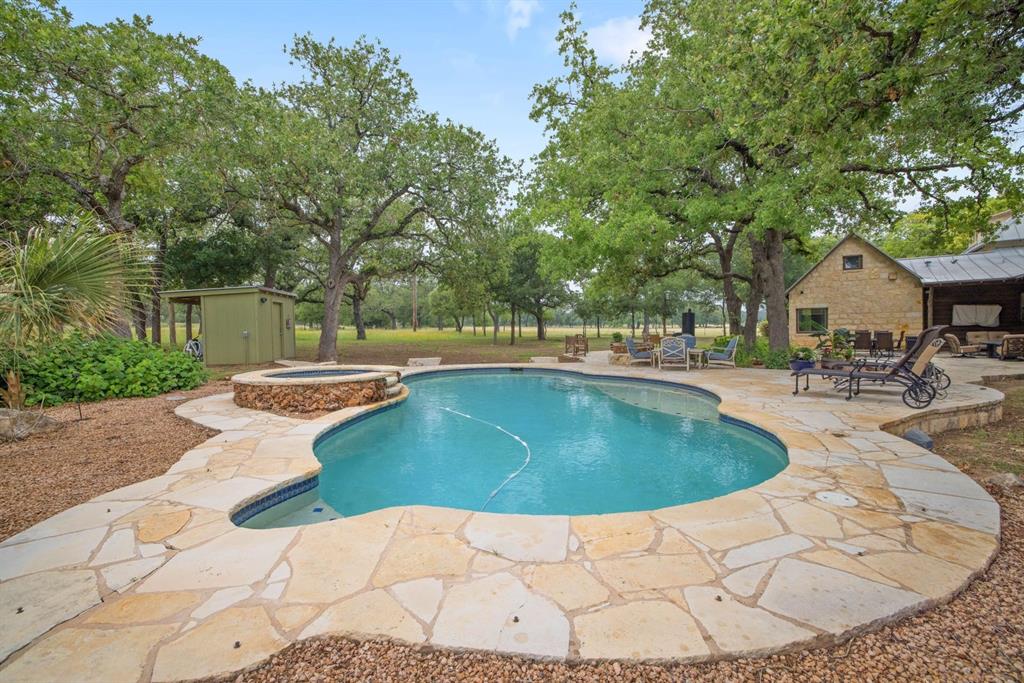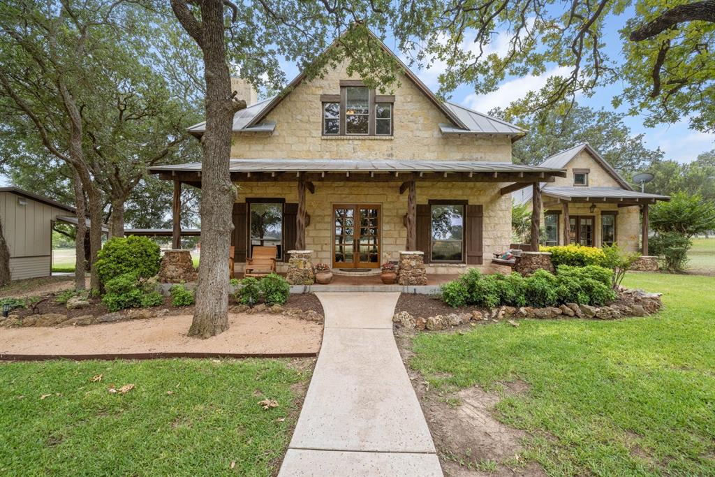Beautiful hill country oasis on 59.91 acres minutes from downtown Burnet and nearby lakes. Immaculate custom-built home with all the details and ideal floor plan. From the front entry you'll find an impressive great room with natural woodwork, stone fireplace and ample space for everyone. The kitchen features a custom stone archway, expansive island, all the upgrades and a butler's pantry. Off the kitchen is the epitome of hill country dining - beautiful custom wood and stonework, ample natural light and plenty of room to entertain. The primary bedroom includes a sitting area/foyer, private patio with french doors, custom tile ceiling and private staircase access to second-level bonus room perfect for an office, craft room, library or extra storage. Primary bathroom features double vanity, tub with stone overlay, separate shower and oversized walk-in closet. Also on the main floor is the guest suite with a full bath. The second level features two bedrooms with a jack-and-jill bathroom, game room with built-in desk and cabinetry and a media room with projector and screen that can also double as another bedroom or flex space. The exterior features include custom Austin stonework on all sides, metal roof and multiple covered porches. Off the back porch is a covered patio with stone walkways leading to the pool, spa and fire pit. Attached to the main house via a covered walkway is a ~600sf office/studio with kitchen and covered parking - perfect for casita, guest house, etc. At the back of the property is a large barn with horse stalls, pens, multiple storage/workshop rooms, garage doors, covered parking for cars/boats/equipment and two separate portable buildings for additional office space or storage. Large, manicured oak trees cover the property. This property is a diamond in the rough - the perfect combination of luxury, privacy and convenience.