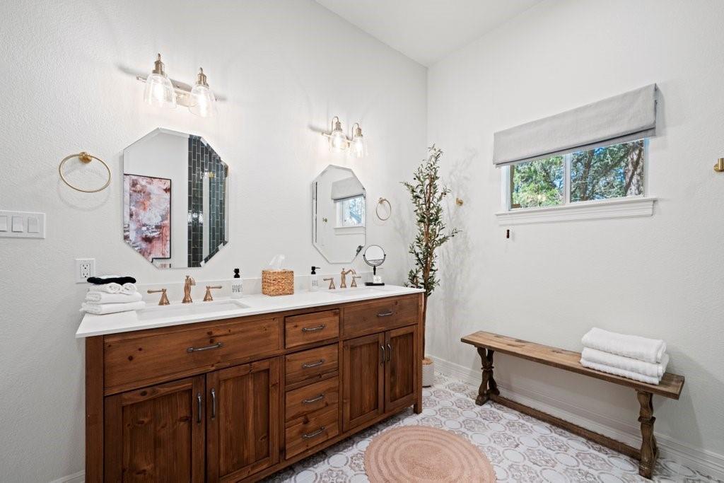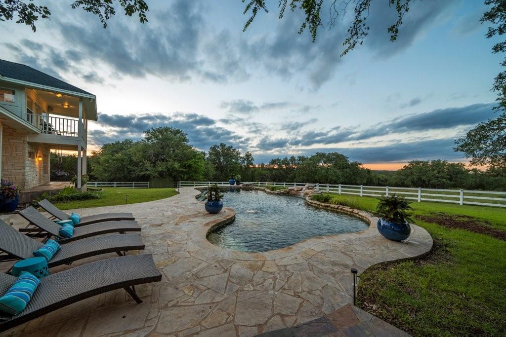 Hill Country luxury awaits in this two-story estate on 25 acres in the heart of San Marcos. Features game room, private office library, pool, horse barn & more! This 3,975 sqft home was completely remodeled in 2023. No corner was left unturned, so it will serve brilliantly as a stunning family resident ranch. You'll find quartz & granite countertops, all new fixtures and ceiling fans & new flooring and high-end carpet throughout the home. A chef's kitchen with double oven & induction stovetop opens up to a gorgeous dining area & living room with seemingly never-ending views of the pool & outdoors. The primary suite & a mother-in-law suite are downstairs along with a game room, office library, roundabout mud room, & walk-in laundry room. Head upstairs via two different staircases for another large bedroom suite, two additional bedrooms with a Jack & Jill bathroom, and a massive 4th bedroom with walk out balcony & breathtaking views. This 4th bedroom could easily transition to another office, theatre room or playroom. Custom painted murals in the game room & horse barn add to the uniqueness of the property. Two AC units have just been replaced and spray foam insulation in the attic will help to beat the TX heat. State of the art security systems are owned (not leased) & Nest thermostats and outdoor cameras throughout. Owner/Agent will consider conveying all furnishings and decor. Outdoors: Pool with Waterfall Feature, Italian-Style Courtyard Fountain, ˜2,000 sqft Horse Barn, Outdoor Kitchen, Fire Pit Area w/ Seating, Porch Swing, Hanging Swings & Hammock, Fully-Fenced, Automatic Entrance Gate, Ample Parking in Addition to 3 Car Garage. Ag Exempt - LOW TAXES, No Deed Restrictions or HOA, Removed from ETJ. Directly between Austin & San Antonio. Mins from Texas State, Tanger Outlets, Convention Center, Wonder World & soon-to-be Hill Country Studios. Can be turn-key vacation rental and/or sold with adjacent 20 acres & home at MLS #4182947. Buyer to confirm all info.