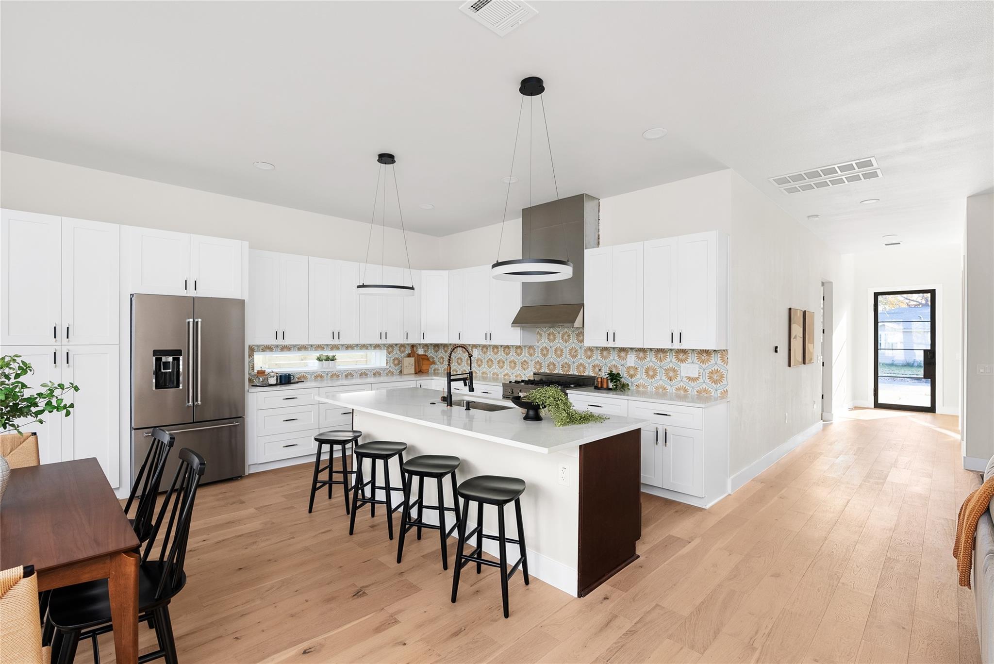 If you’ve been looking for your Brentwood dream home, this is it. This home is the exact balance of contemporary and warm traditional in one of Austin’s most revered communities. Known for the walkability to numerous top rated restaurants, the amazing Violet Crown Coffee shop and Wine Bar as well as the Brentwood Social House, Fresh Plus Grocery (one of the nicest grocery stores you’ll ever go into), and an elementary, middle and high school that people fight to get into for the amazing programs and staff, this home has it all. This neighborhood is the perfect balance of urban walkability, with the quietness of a suburban community. Inside, you’ll note a true chef’s kitchen, imported 5 burner stove, Kitchenaid appliance package, tons of counter space with designer finishes. Soaring ceilings, engineered hardwood floors, and windows to complete the open concept living areas. Downstairs you’ll also note 2 large guest rooms with walk in closets, a full guest bath with custom finishes, the laundry room fully built out, and lots of additional storage. The backyard, the lot being just shy of 1/4 acre with plenty of room for a future pool, ADU, and room for any 2 or 4 legged family members. The huge backyard deck makes it ready for hosting. Upstairs is all about family. 2 more guest rooms with walk in closets, a flex room that leads to the 2nd floor balcony. This balcony is the perfect space to have your own outdoor area, and the privacy to have an outdoor space all of your own separate from your entertaining space. The primary suite is most certainly the best room in the house. The primary closet is built out with stone counters, soft close drawers, etc. The primary bath is finished to the highest end, double vanities, a dream shower and bath. Pool can be added after close. Other features: full spray foam insulation, tankless water heater, Google Fiber, and a large 2 car garage. Pool rendered to illustrate what can be contracted with builder to be built after close.
