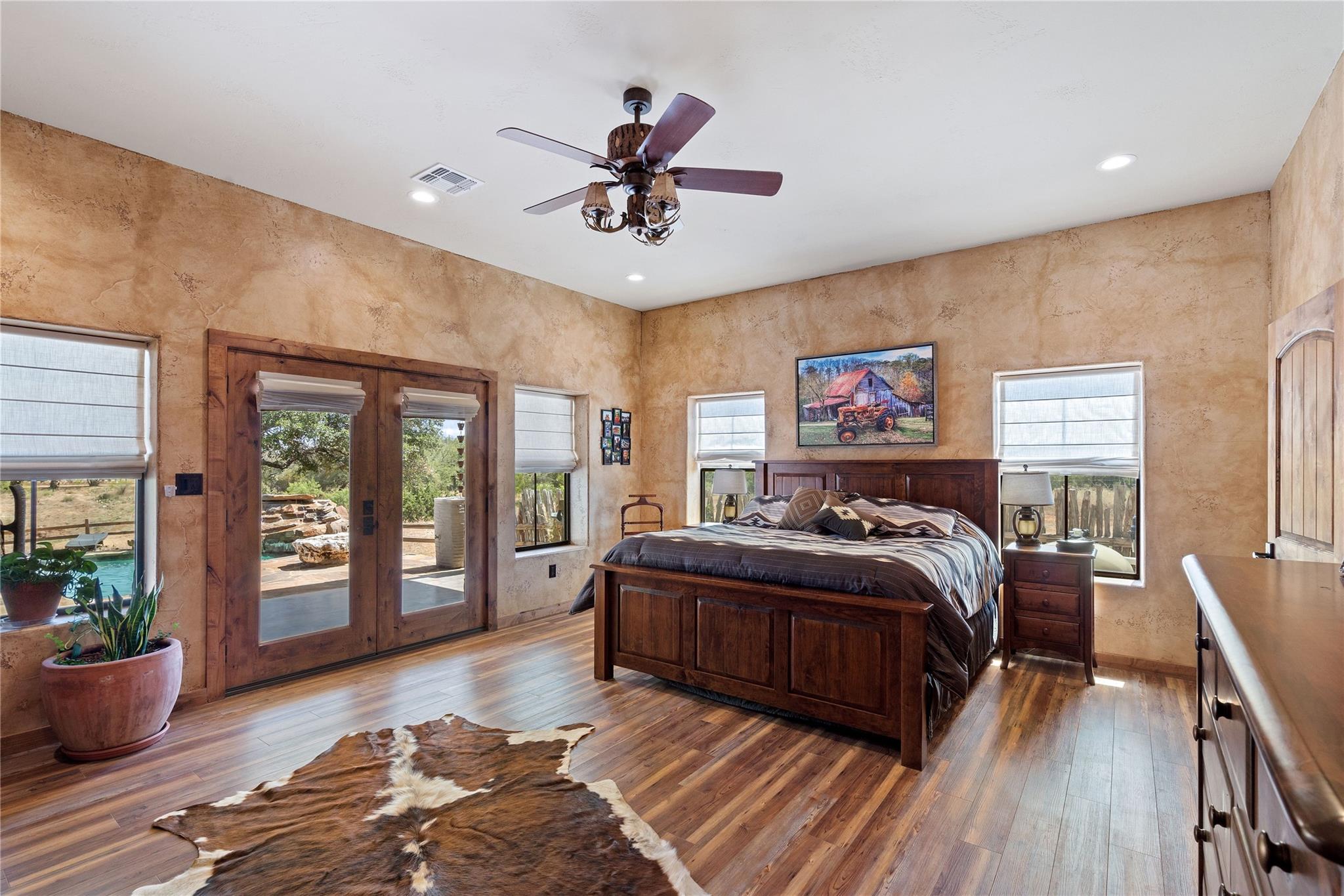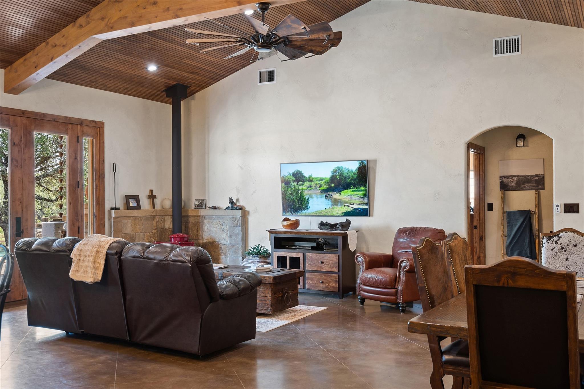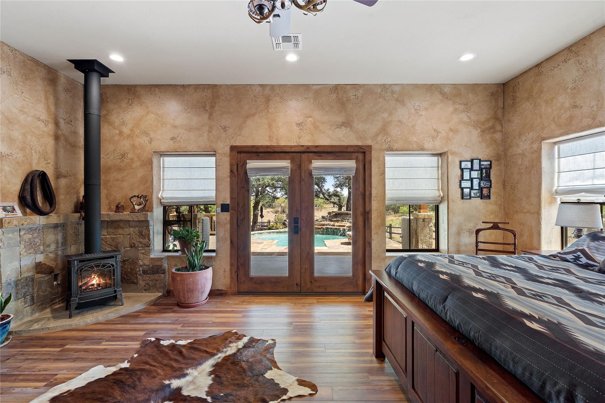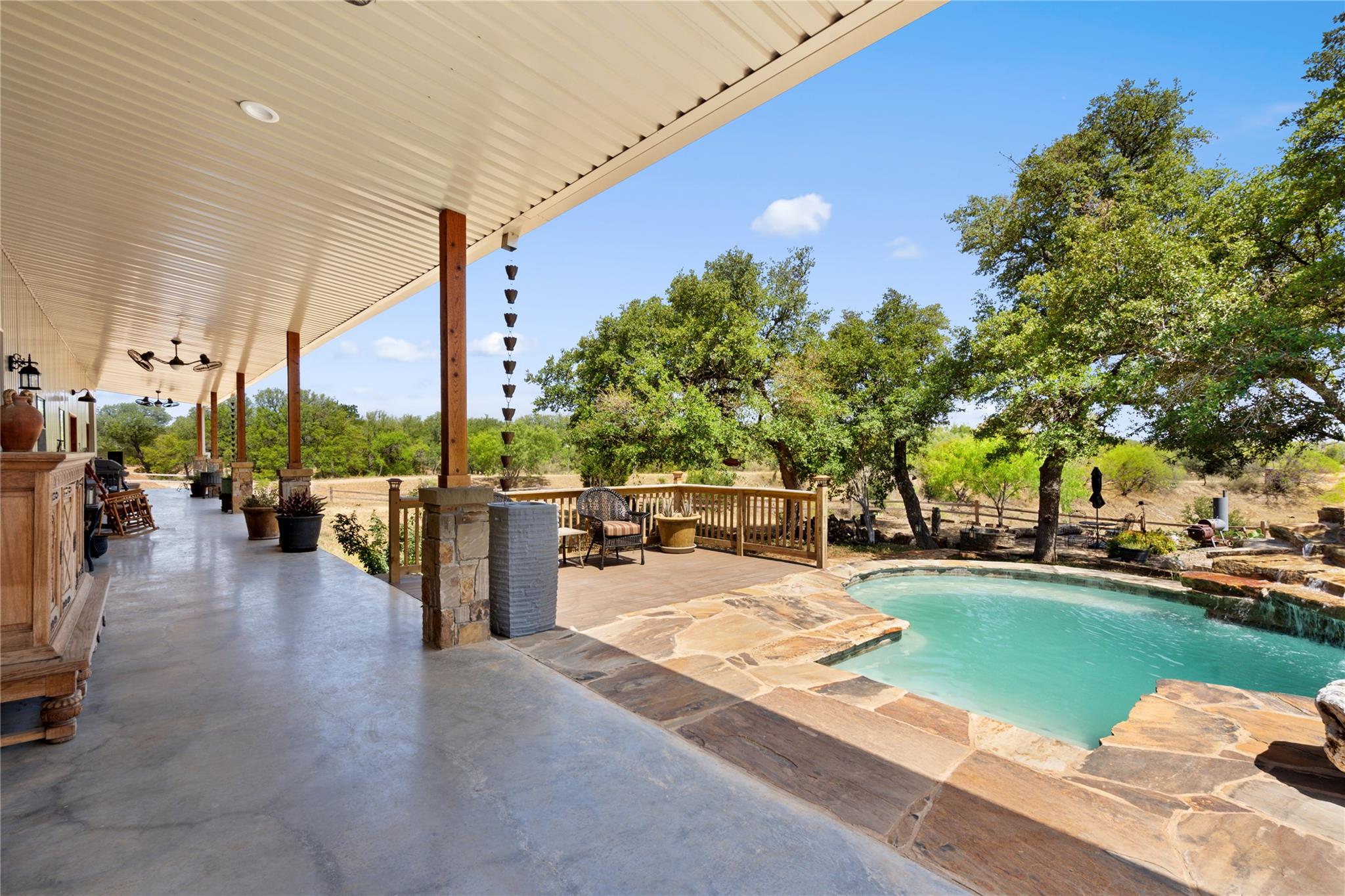 Spectacular 167.93 Acre Ranch on the Blanco and Llano County Line. This Ranch offers tons of vertical improvements including a main house, a new barn (40x75) with a 1,000 sqft. apartment. Offering a full bathroom and kitchen with a utility room. Also on the property is an old hunter’s cabin which can sleep a ton of guests, and a 2-bedroom 2-bath manufactured home. There are also several run-in sheds and storage buildings. The Main house is phenomenal consisting of 3 bedrooms and 2 1/2 bathrooms, showcasing an expansive open floor plan with a 1,000 sqft covered back porch and a huge hot tub pool with a waterfall. Perfect for entertaining guests. The interior has high end finishes and appliances. The main house has two wooden stoves and a propane stove in the master bedroom. The master walk in closet is huge! The property boasts amazing views of Packsaddle Mountain. There are several water tanks and 6 water wells on the property, one of which is run by solar. A 25kw generator is also on site with a 1,000gal propane tank. This ranch features its own orchard consisting of pecan, peach, pears, plum and apple trees. This is a great opportunity to own your own piece of the Texas Hill Country! It is covered in huge live oaks, mesquite, and juniper. Wildlife is abundant including whitetail deer, turkey, dove, hogs, and all other wildlife this area has to offer. With views like this it would make a great place to call home or have a great weekend retreat. Located a short drive to Horseshoe Bay, Marble Falls, Johnson City, and a little over an hour to Austin and San Antonio.
