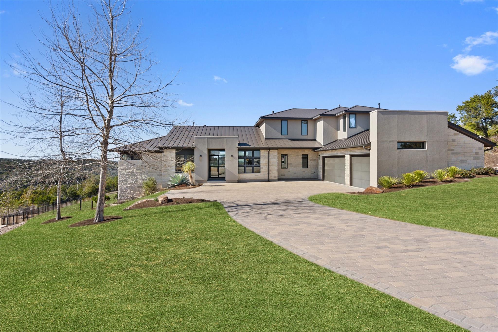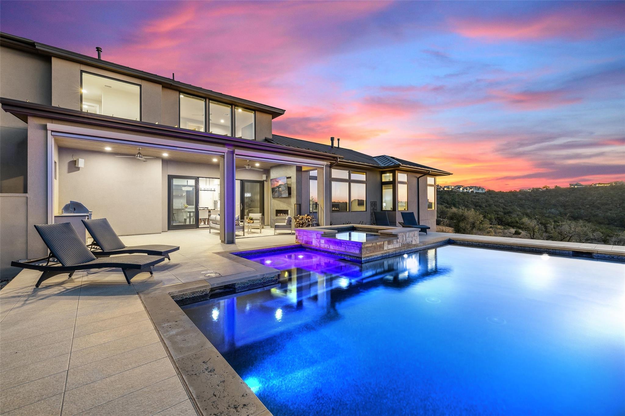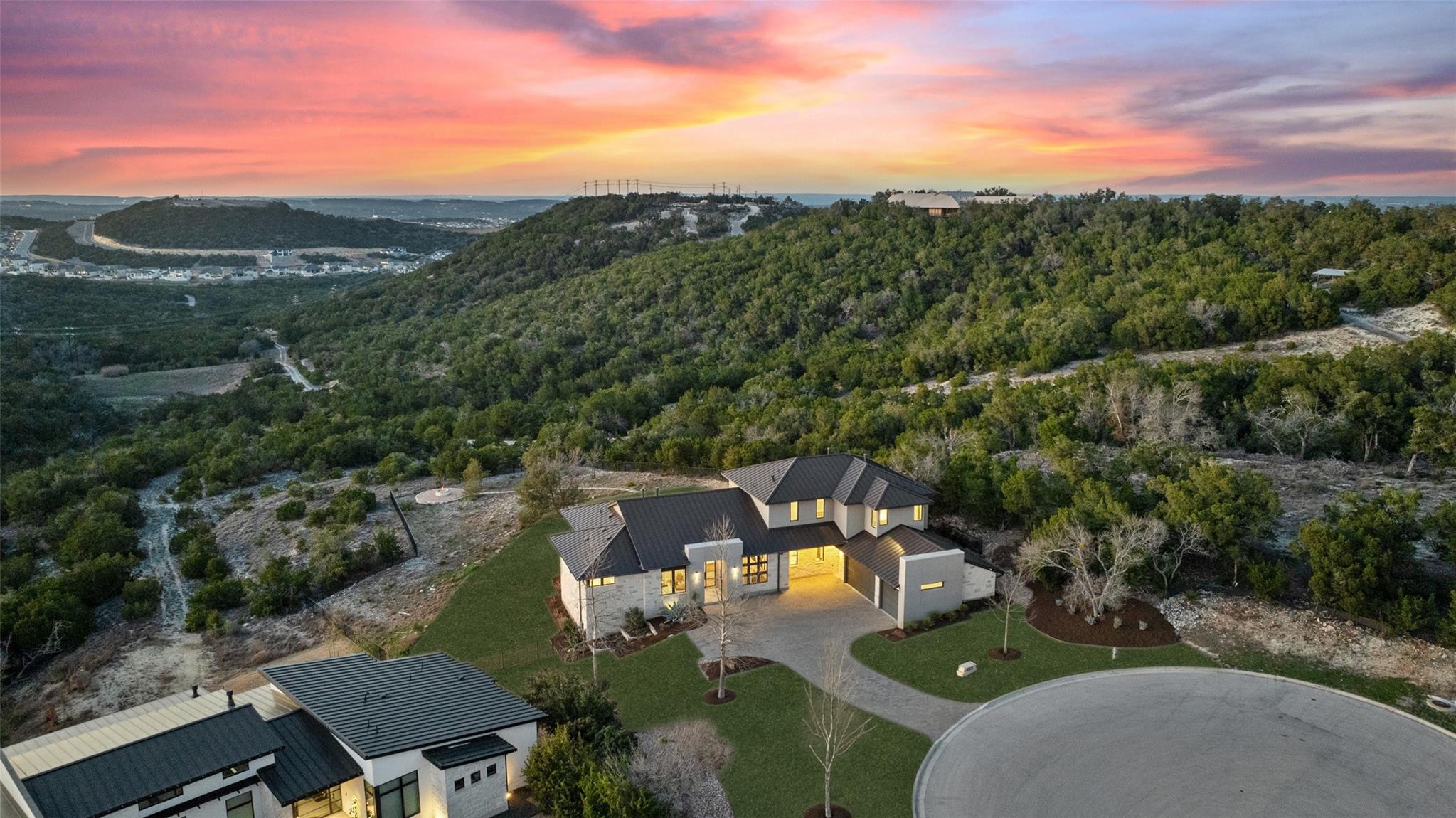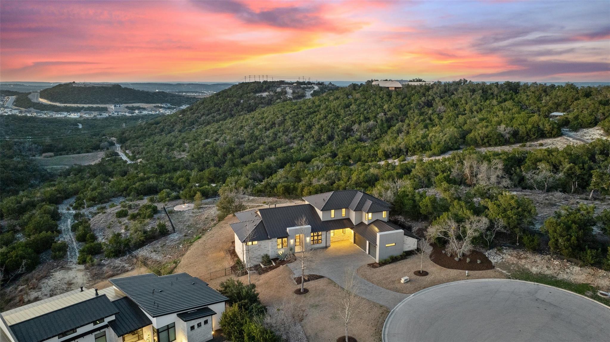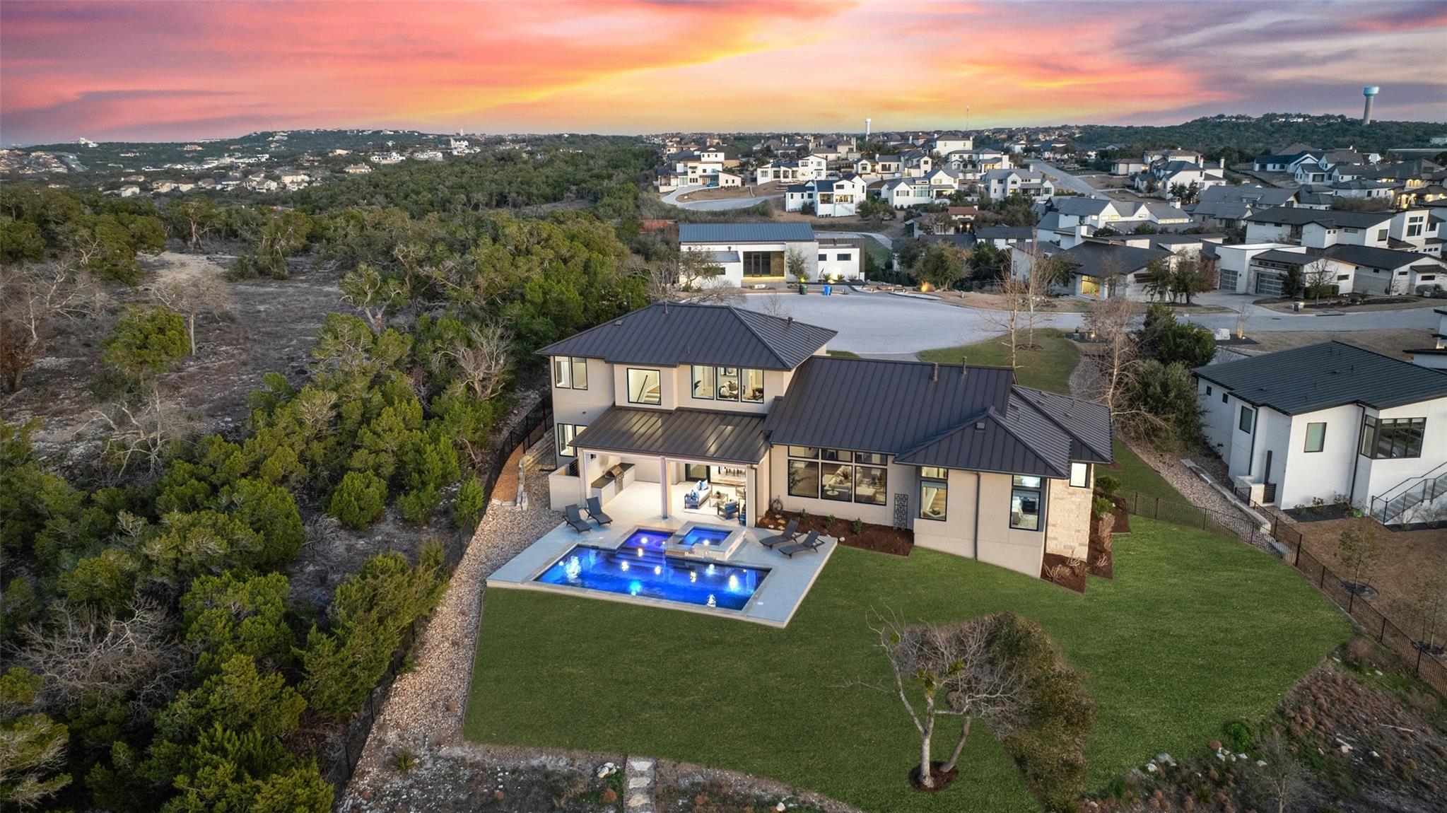 Welcome to 513 Bowcross Point, stunning modern estate living, situated on .75 acre lot in the highly sought after Serene Hills neighborhood. Panoramic and unobstructed hill country views, this custom home is one of a kind. The residence features an open floor plan encompassing 4466 square feet, offering 5 bedrooms, 4.5 bathrooms, separate office, game room and spacious layout. Meticulously crafted and built by Eppright, this home is designed for the perfect harmony of contemporary and comfortable living. Oversized windows throughout offer the perfect blend of natural lighting. The gourmet kitchen, an entertainer's delight features top-of-the-line appliances, double walk-in pantry, and grand island for hosting guests. The main level boasts a private office, guest room and primary retreat. Upstairs you will find three additional rooms and a versatile game room overlooking the backyard oasis. On its very own wing, meander to and rejuvenate in the luxurious primary suite where you will be met with a spa like bath, dual vanities, oversized soaking tub and spacious closet boasting plenty of storage. This sprawling estate and captivating floor plan welcomes an abundance of indoor / outdoor living with breathtaking surroundings. Soaring floor-to-ceiling windows and grand sliders open up to serene living. A massive, covered patio with built in BBQ and fireplace awaits. Enjoy the tranquility and beauty of a sparkling pool and spa. Stroll down a ways to find a huge yard for play and lush natural landscape where you will be met with an outdoor fire pit for gatherings and chasing sunsets.