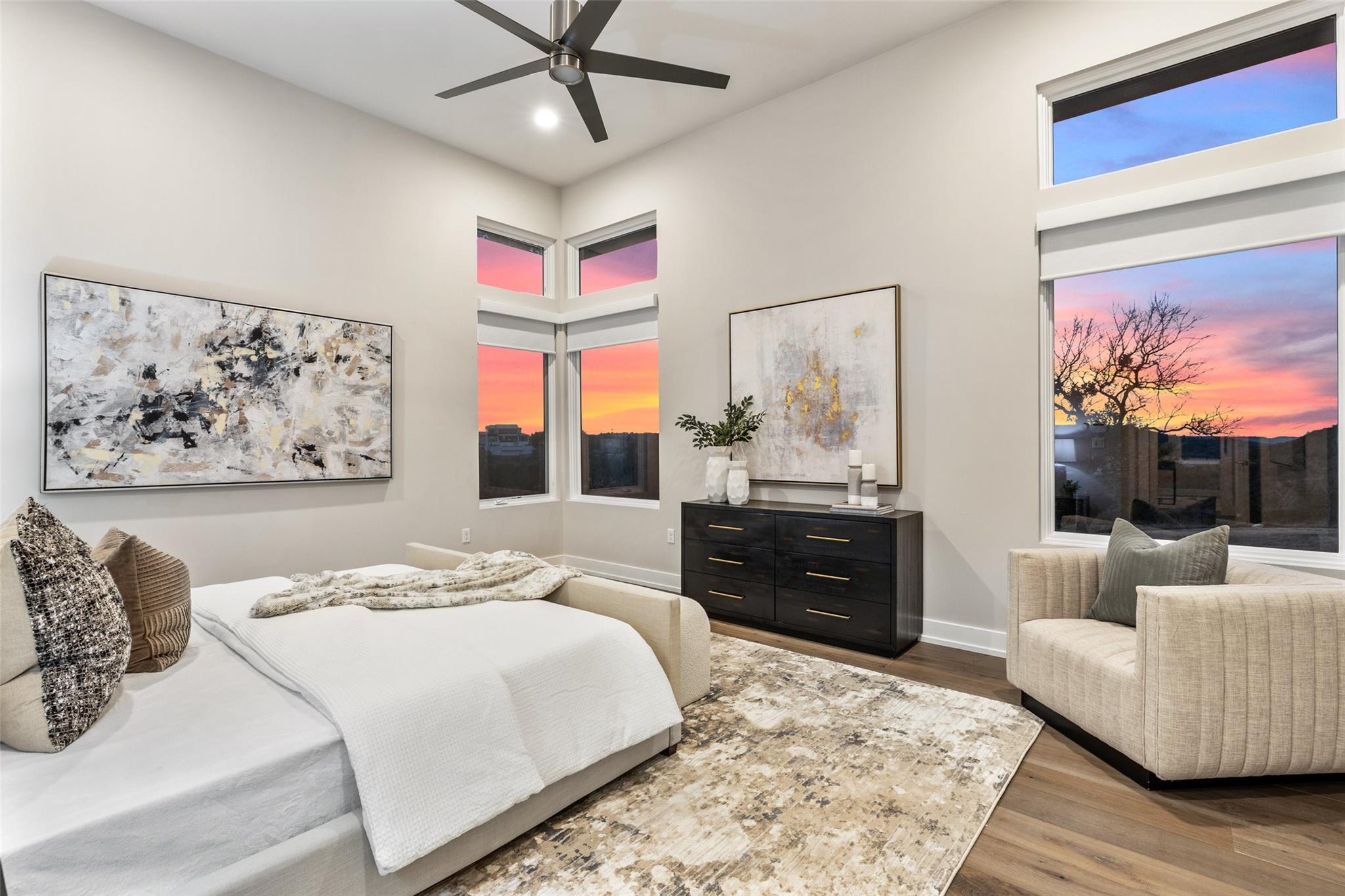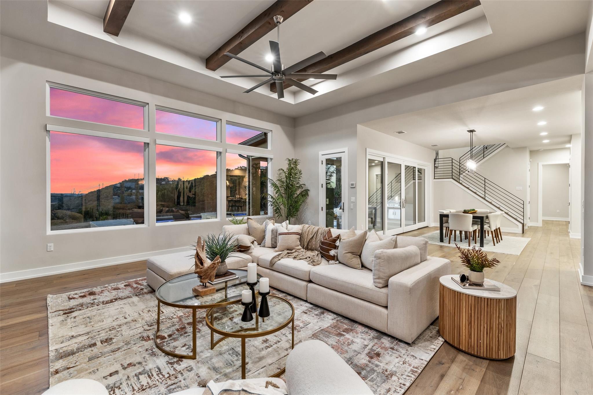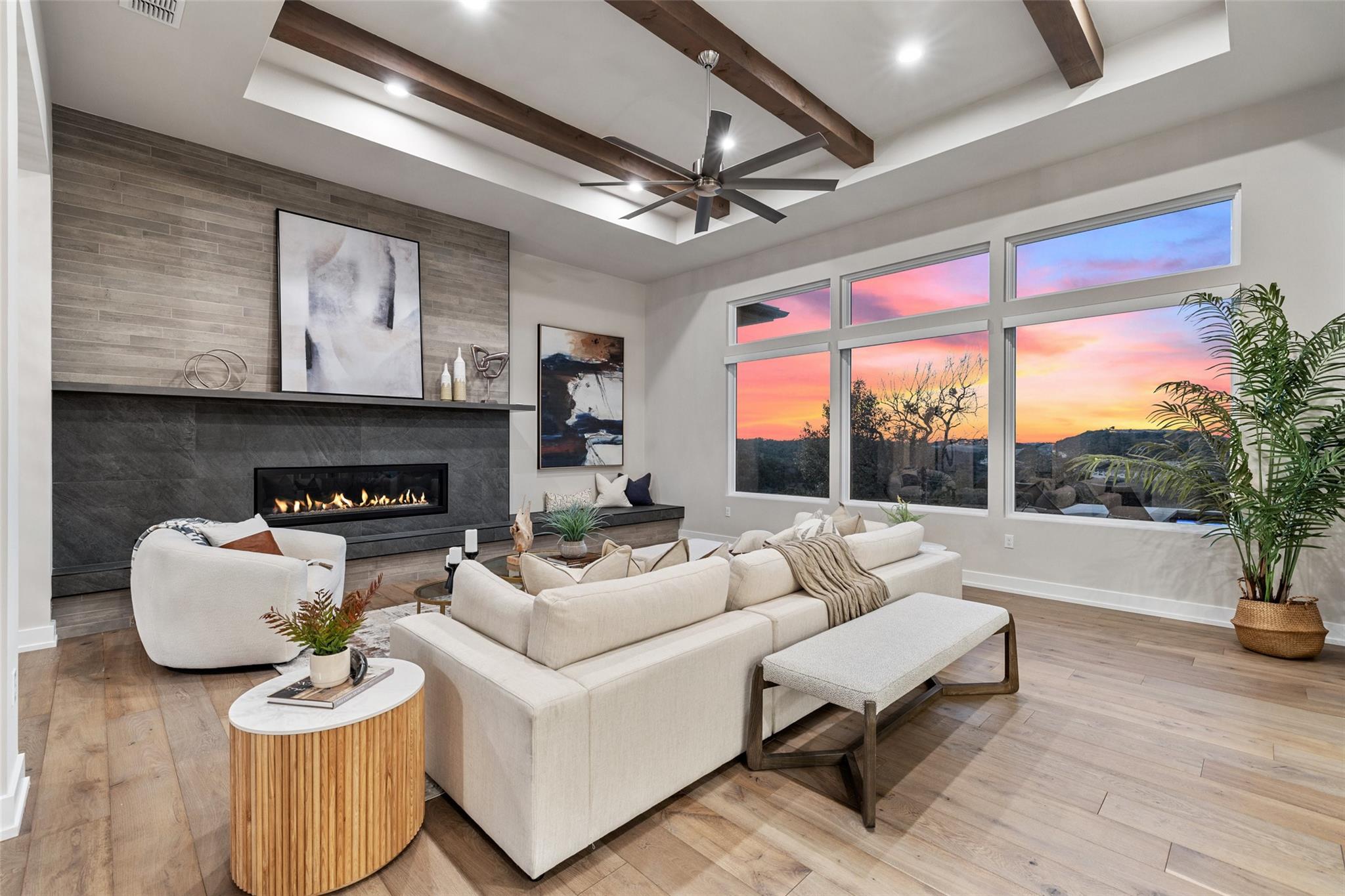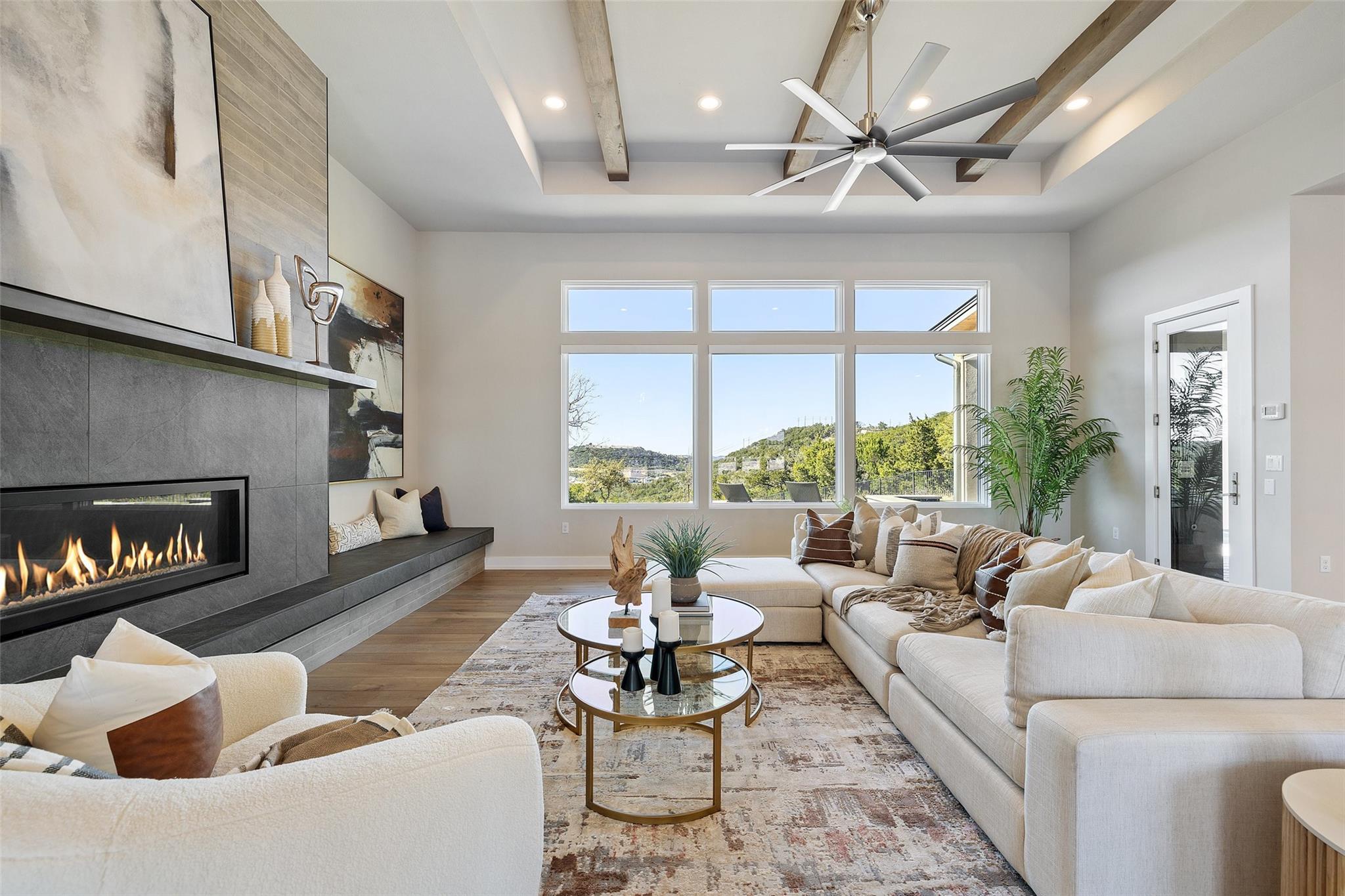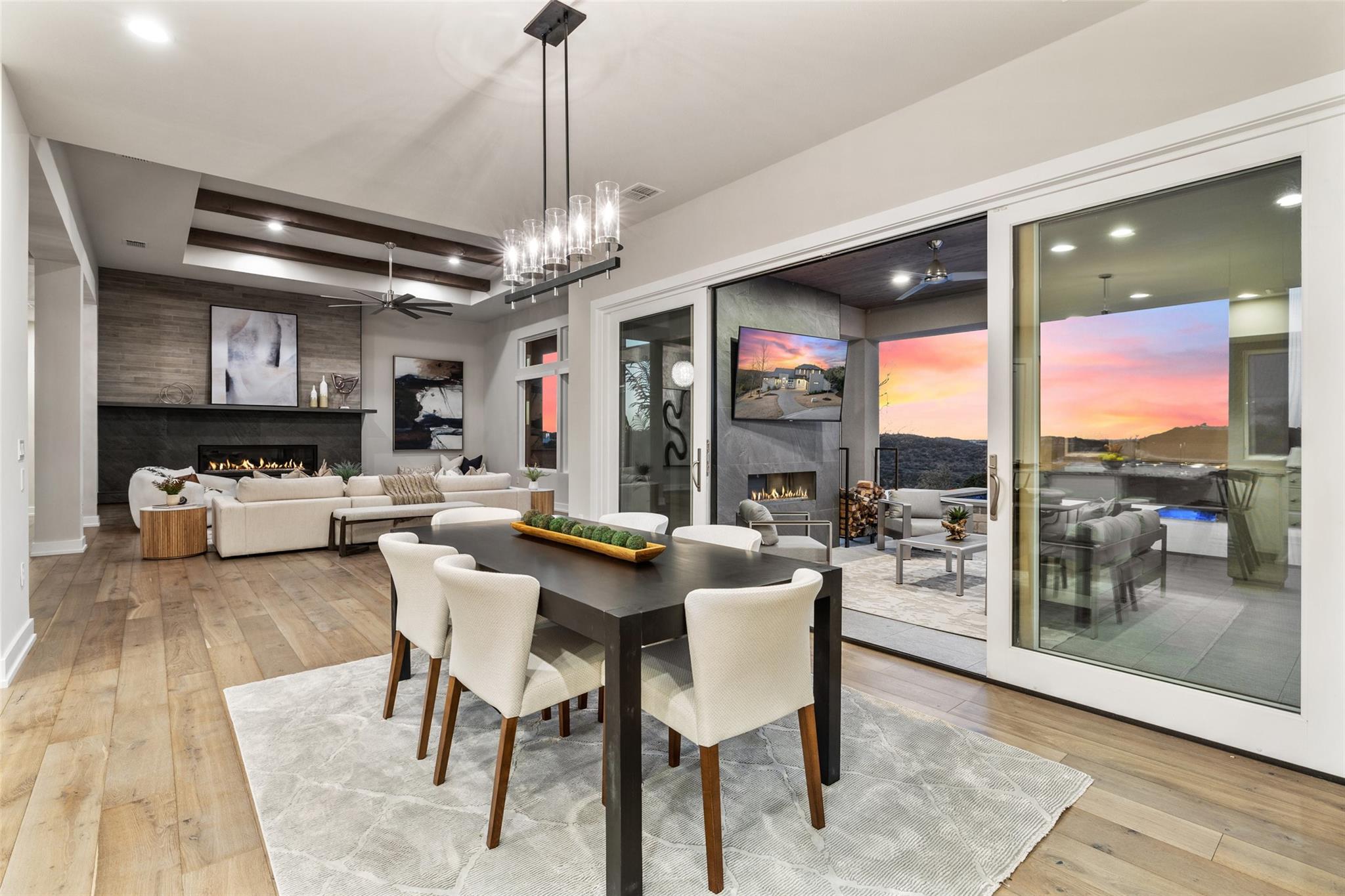 Welcome to 513 Bowcross Point, stunning modern estate living, situated on .75 acre lot in the highly sought after Serene Hills neighborhood. Panoramic and unobstructed hill country views, this custom home is one of a kind. The residence features an open floor plan encompassing 4466 square feet, offering 5 bedrooms, 4.5 bathrooms, separate office, game room and spacious layout. Meticulously crafted and built by Eppright, this home is designed for the perfect harmony of contemporary and comfortable living. Oversized windows throughout offer the perfect blend of natural lighting. The gourmet kitchen, an entertainer's delight features top-of-the-line appliances, double walk-in pantry, and grand island for hosting guests. The main level boasts a private office, guest room and primary retreat. Upstairs you will find three additional rooms and a versatile game room overlooking the backyard oasis. On its very own wing, meander to and rejuvenate in the luxurious primary suite where you will be met with a spa like bath, dual vanities, oversized soaking tub and spacious closet boasting plenty of storage. This sprawling estate and captivating floor plan welcomes an abundance of indoor / outdoor living with breathtaking surroundings. Soaring floor-to-ceiling windows and grand sliders open up to serene living. A massive, covered patio with built in BBQ and fireplace awaits. Enjoy the tranquility and beauty of a sparkling pool and spa. Stroll down a ways to find a huge yard for play and lush natural landscape where you will be met with an outdoor fire pit for gatherings and chasing sunsets.
